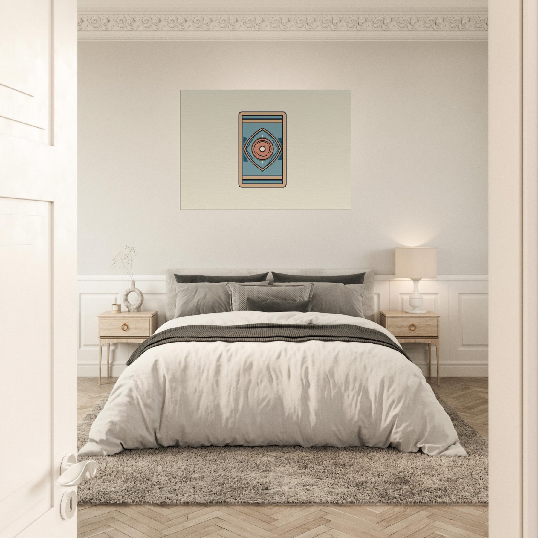 Beneath a soft, sand hued backdrop, this piece distills Tarot Cards into a calm, geometric whisper. The clean lines, restrained palette of teal, peach, and cream invite contemplation as if a candle burns beside a serene altar. It settles into a living room with a gentleness that invites conversation after dark, turning walls into a quiet sanctuary. The mystic mood remains unobtrusive yet magnetic, a subtle invitation to pause, breathe, and listen to the many possibilities within the room.