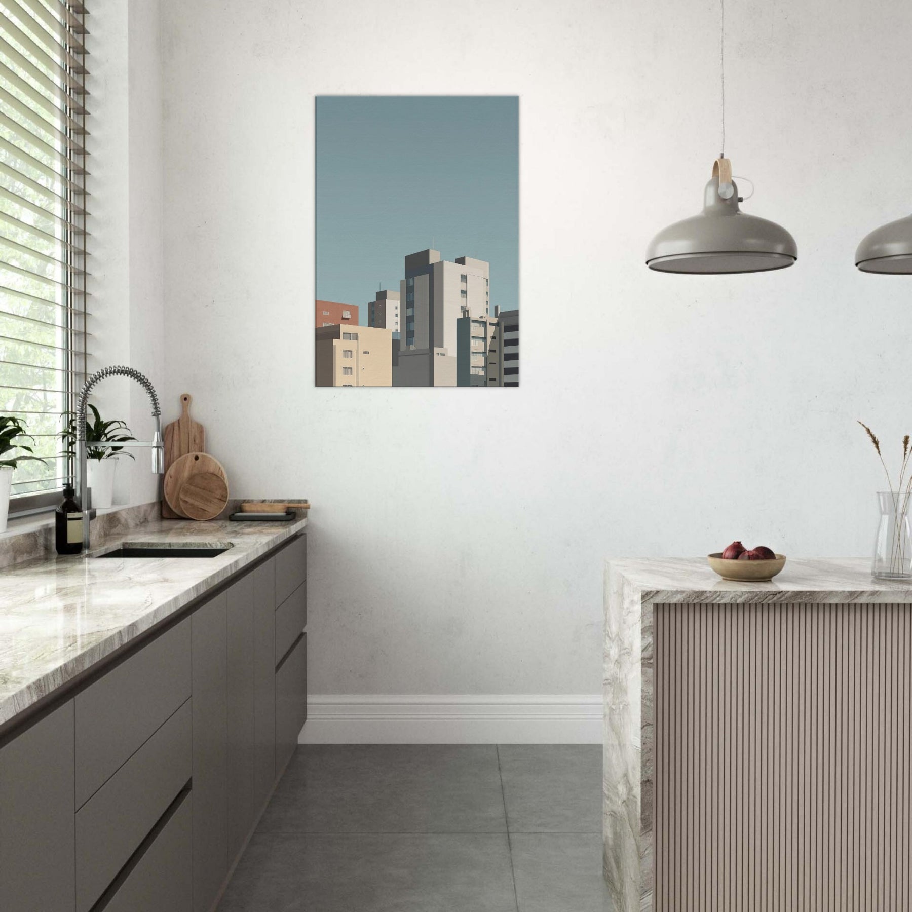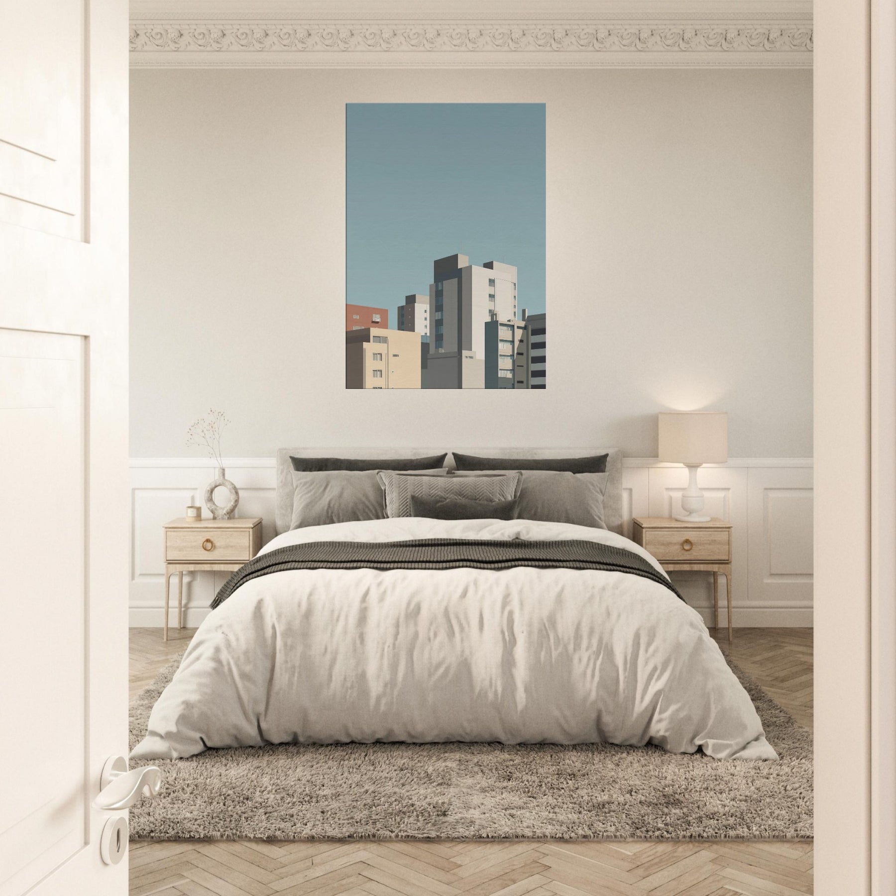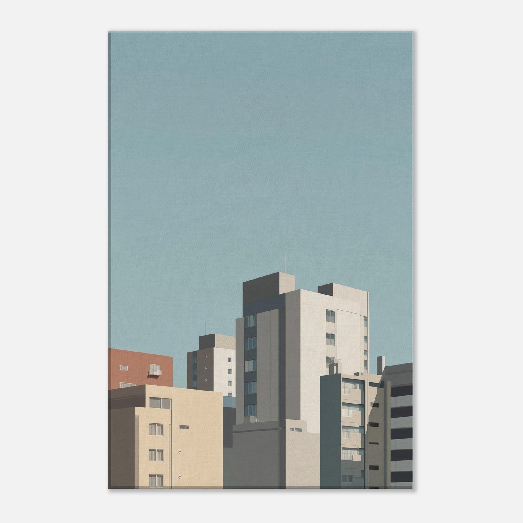 Tokyo unfolds in quiet geometry, where clean lines meet a softened horizon. This minimalist cityscape captures a moment of calm amid steel and glass, inviting light to pool along pale facades. The cool palette and simple forms create a tranquil atmosphere that enlarges a living room, pairs with neutral fabrics, and fosters focus in a busy home. Hang it above a sofa or desk to feel a gentle urban breath without distraction.