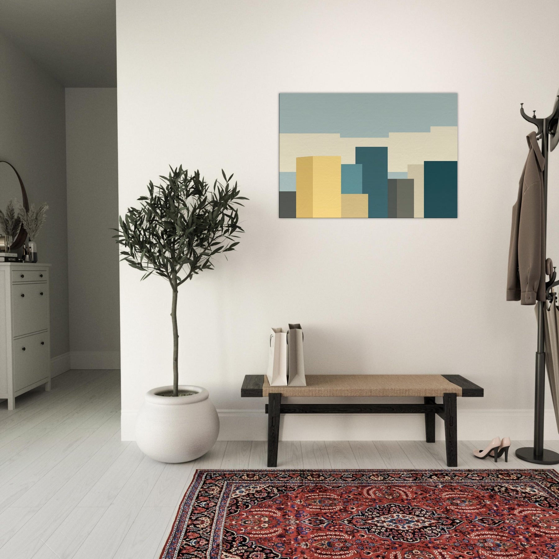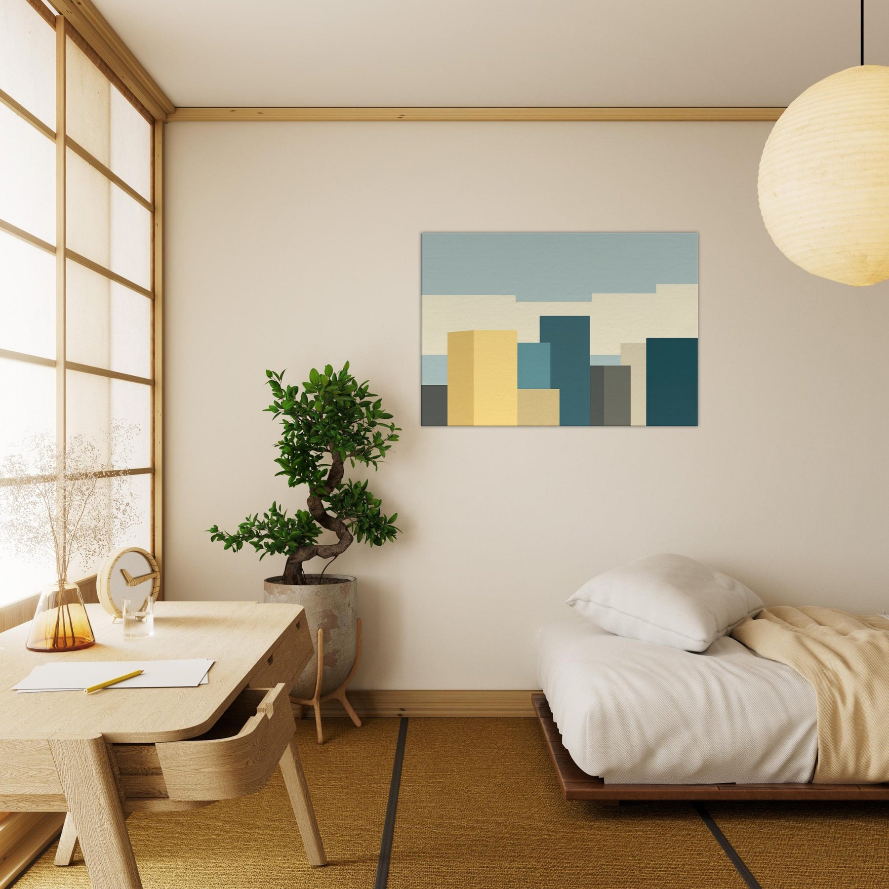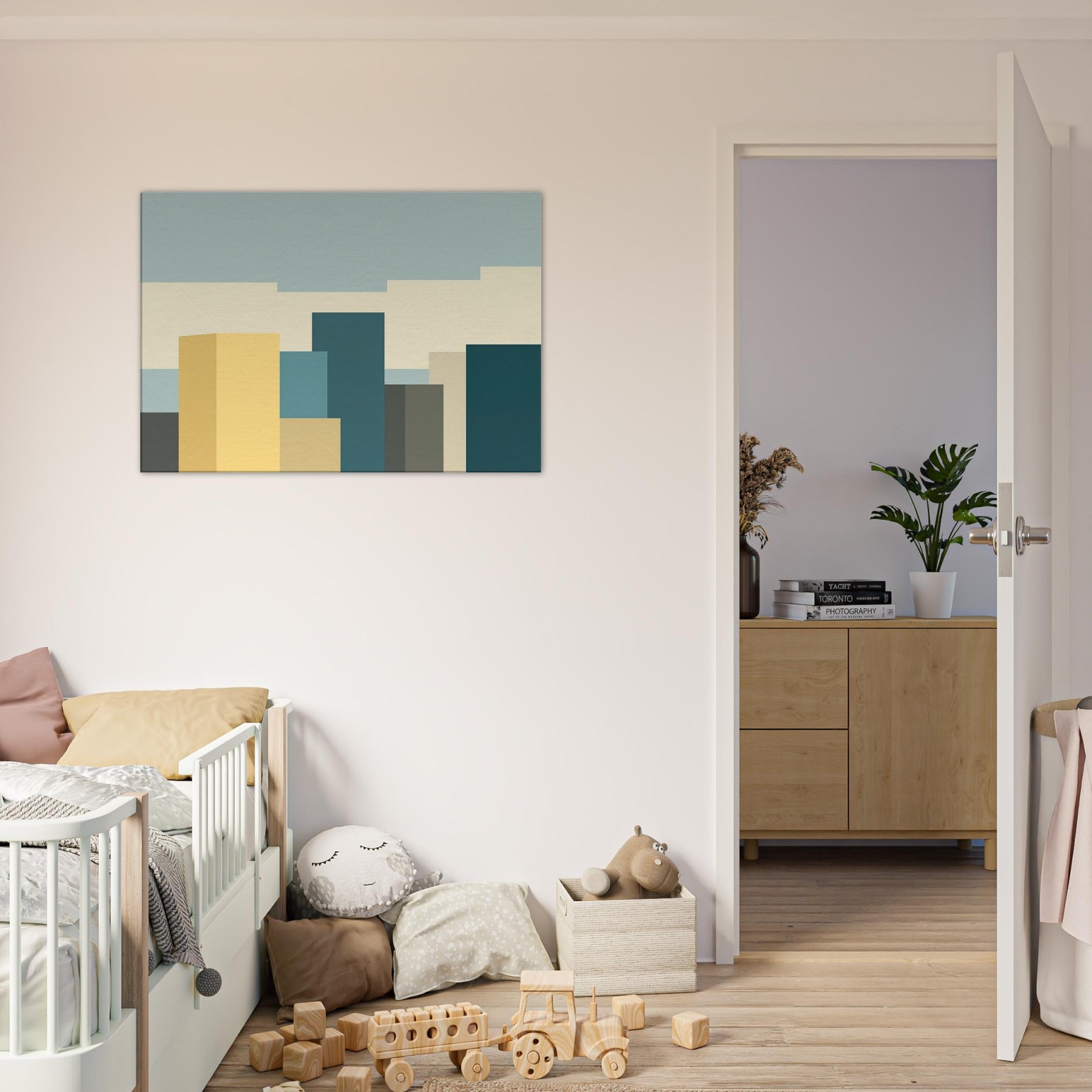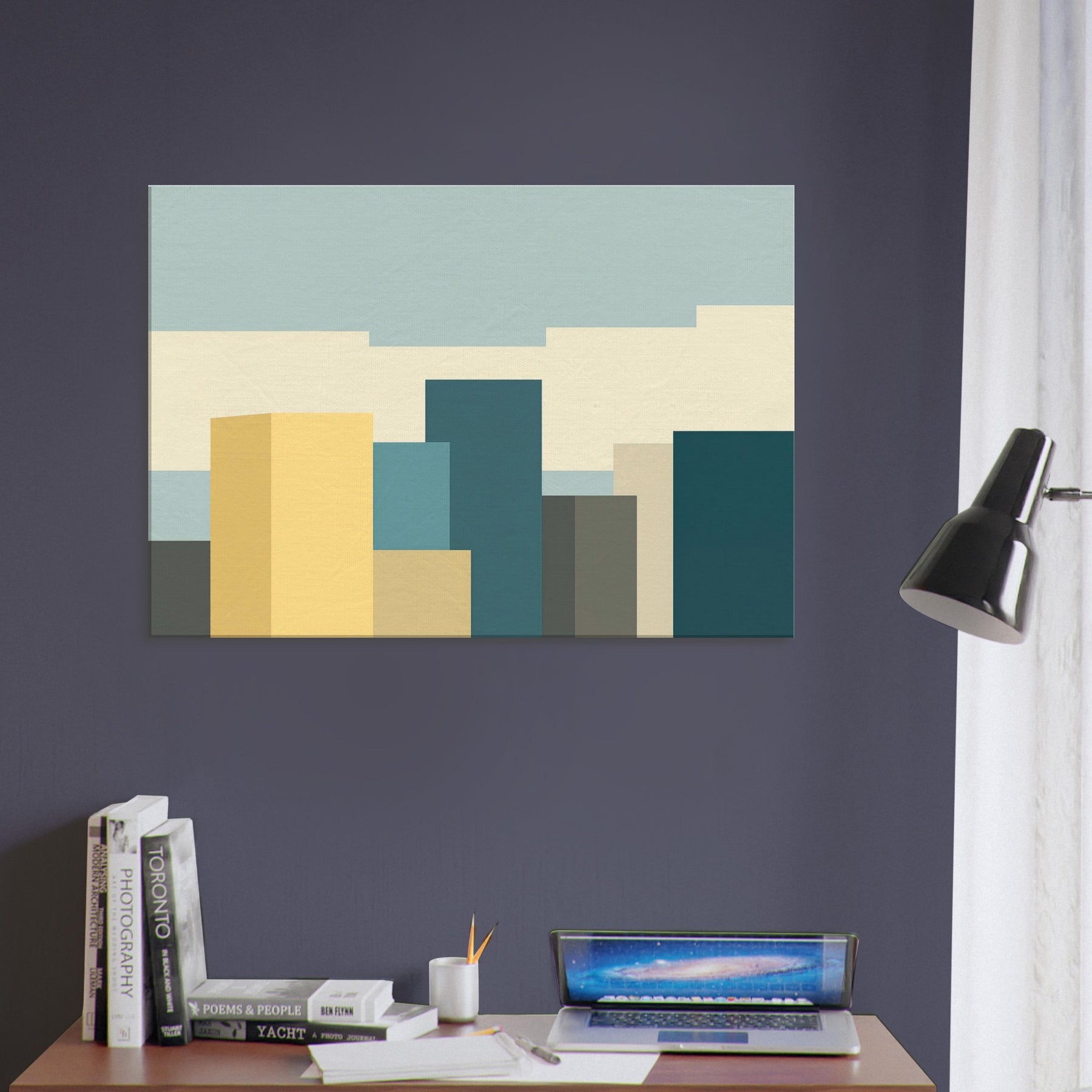 Let Toronto drift into your living room as a quiet horizon of color. This minimalist cityscape distills the energy of a bustling metropolis into clean, geometric blocks, a gentle rhythm of yellows and blues that invites stillness. Each shape rests like a moment of late afternoon light, casting soft shadows across a calm room. Perfect for a gallery wall or above a sofa, it brings urban memory and serene sophistication to any space you call home.