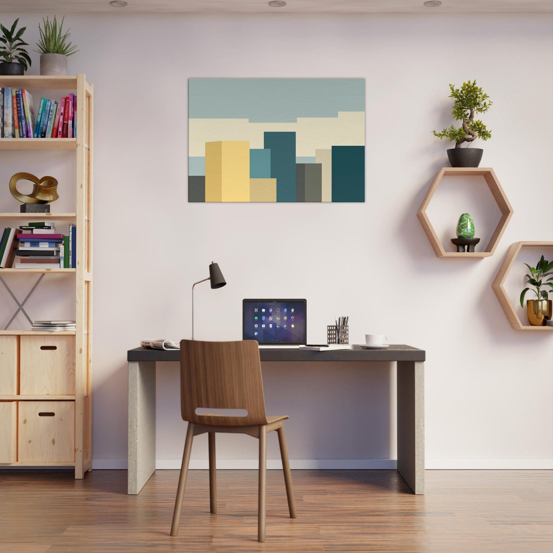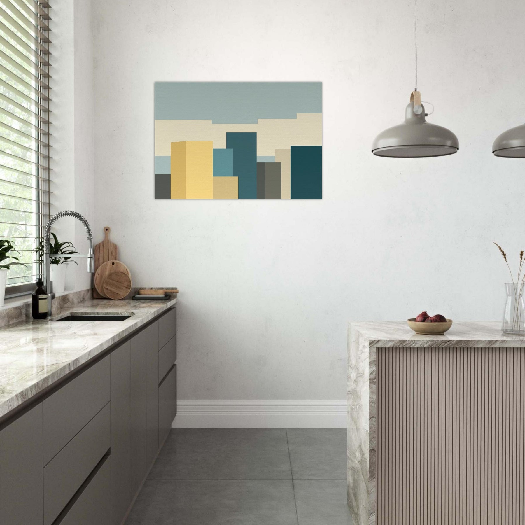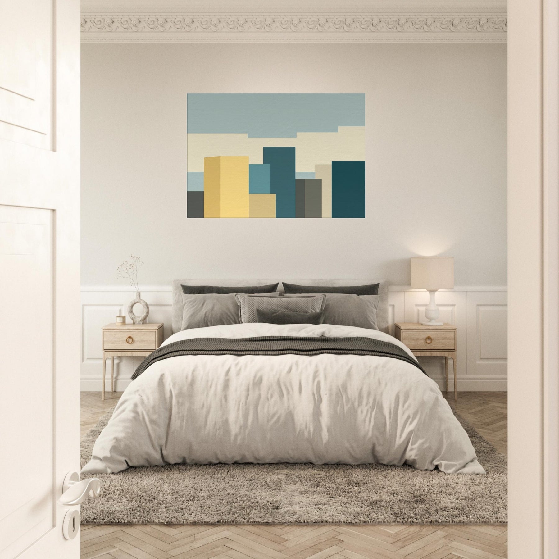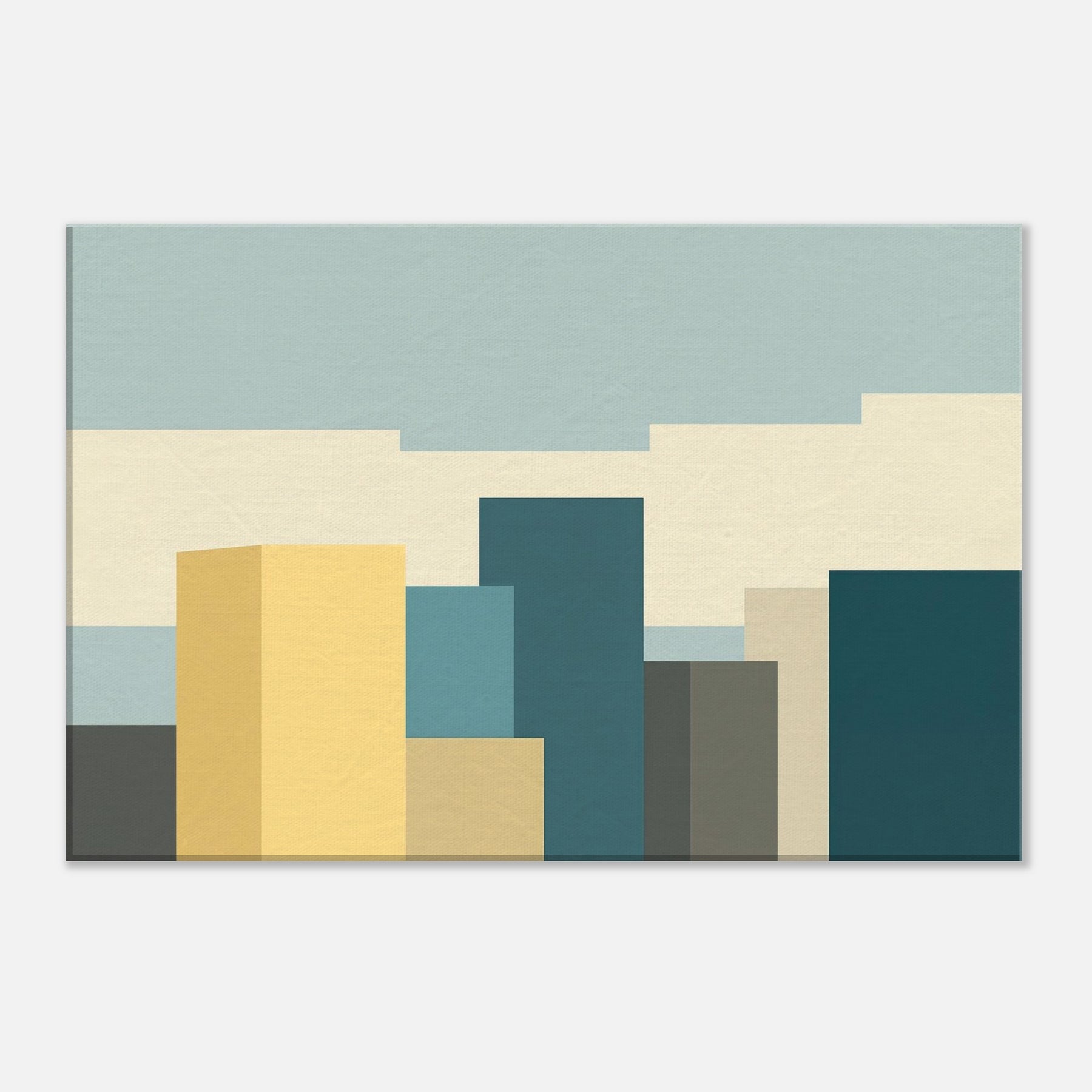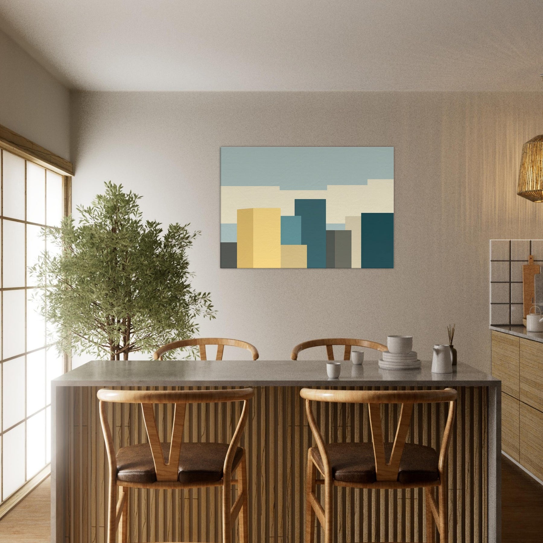 Let Toronto drift into your living room as a quiet horizon of color. This minimalist cityscape distills the energy of a bustling metropolis into clean, geometric blocks, a gentle rhythm of yellows and blues that invites stillness. Each shape rests like a moment of late afternoon light, casting soft shadows across a calm room. Perfect for a gallery wall or above a sofa, it brings urban memory and serene sophistication to any space you call home.
