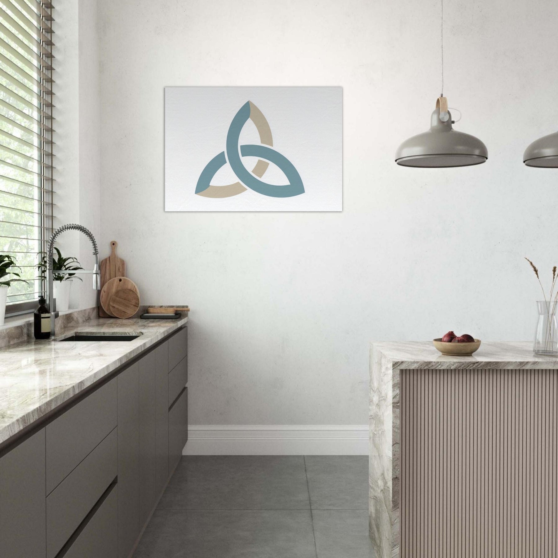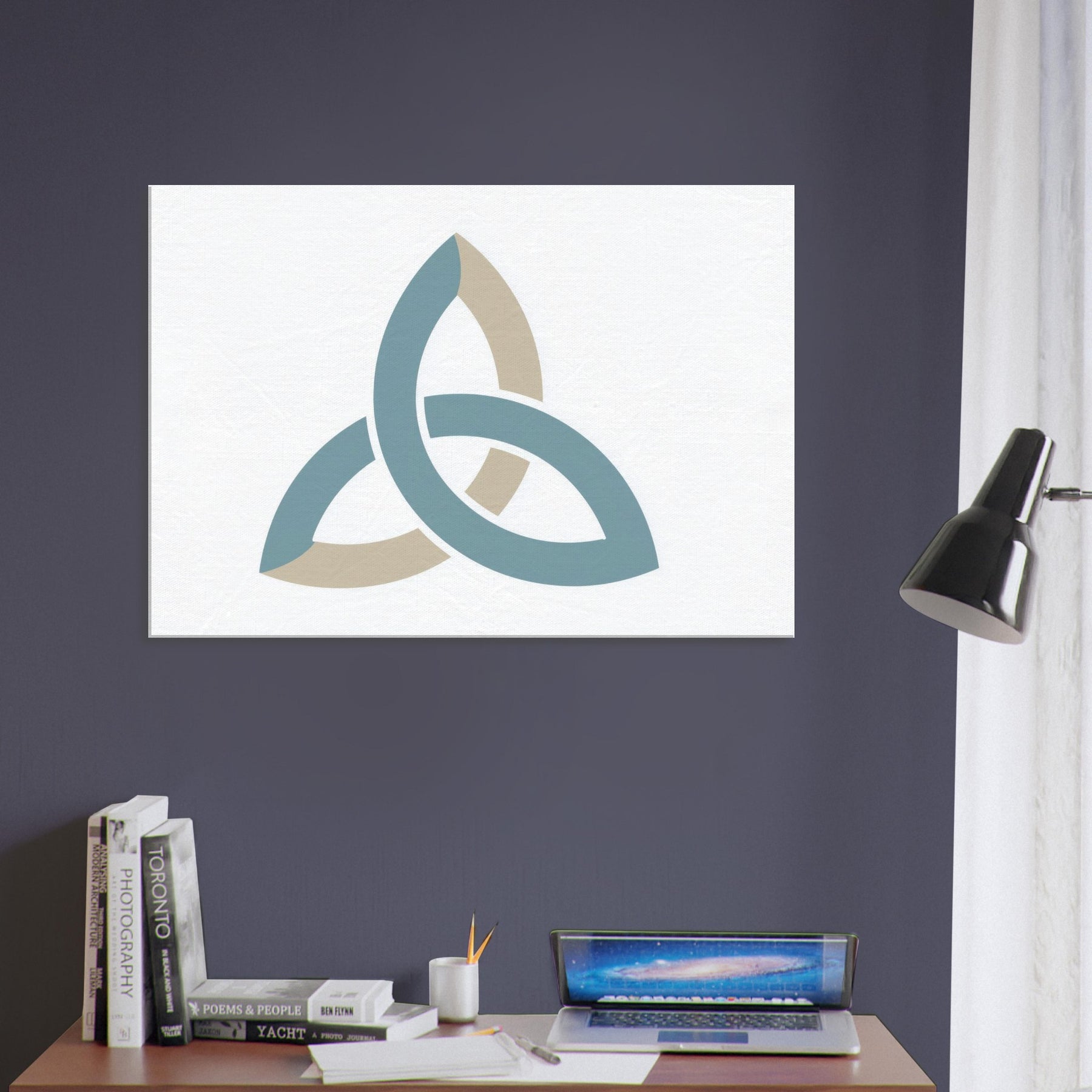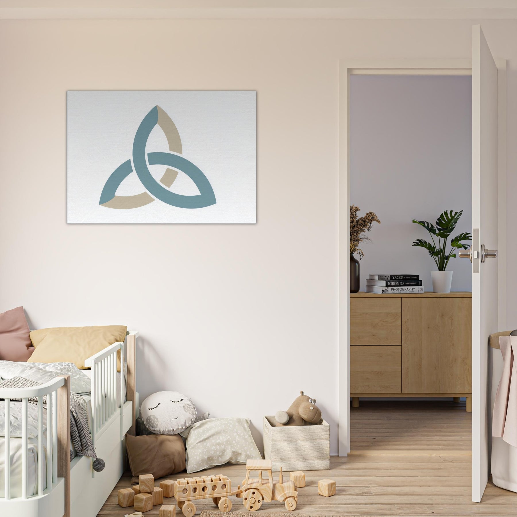 Celtic Triquetra radiates quiet elegance in this minimalist study of connectivity. The interlaced loops feel like a whispered rite, each curve catching the light and casting soft shadows that drift across your room. In muted blues and sandy beige, the symbol breathes timeless mysticism, inviting a moment of stillness amid daily bustle. Hang it where you sip coffee or unwind with a book, and let the atmosphere become a gentle, continuous ritual of calm and clarity.