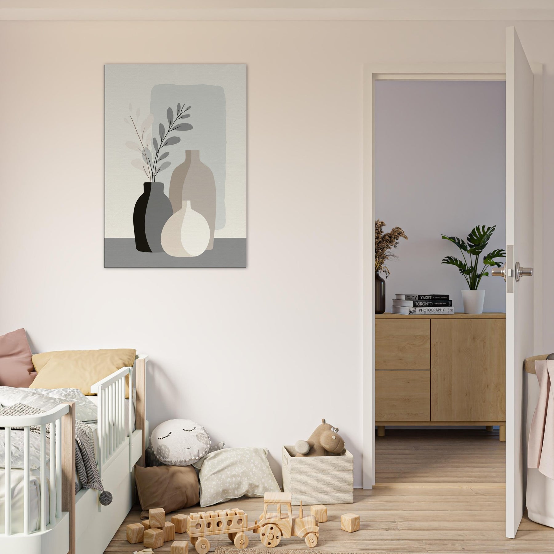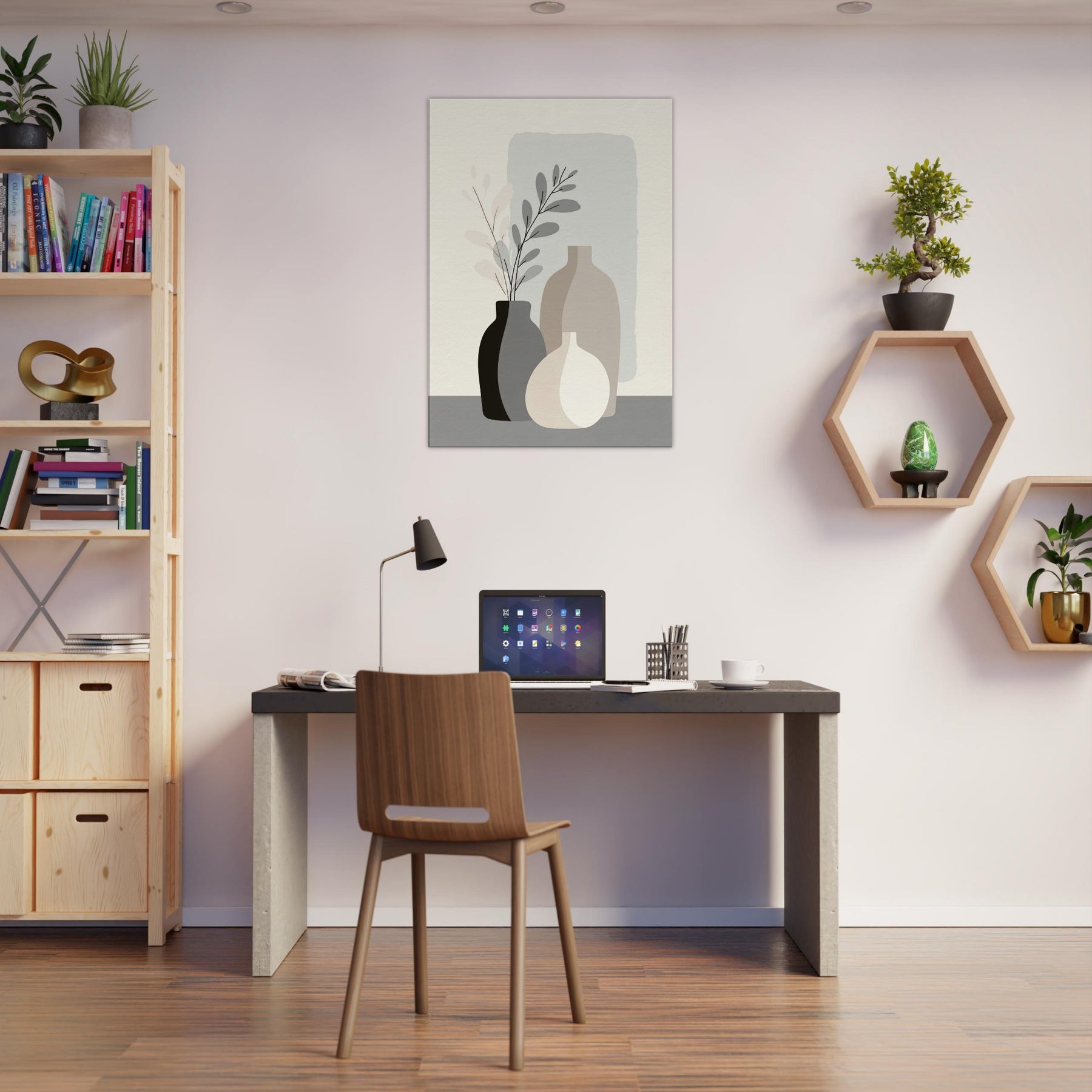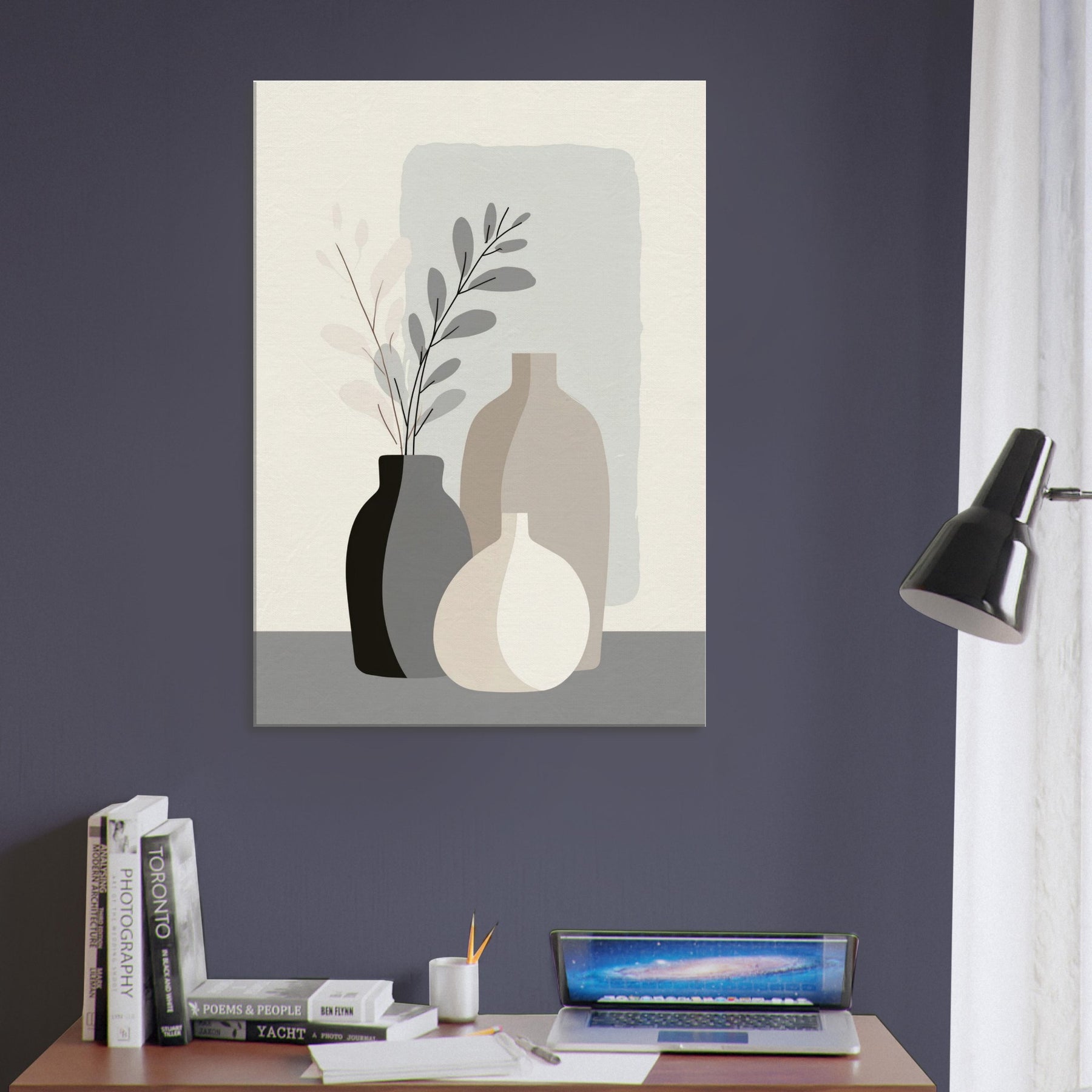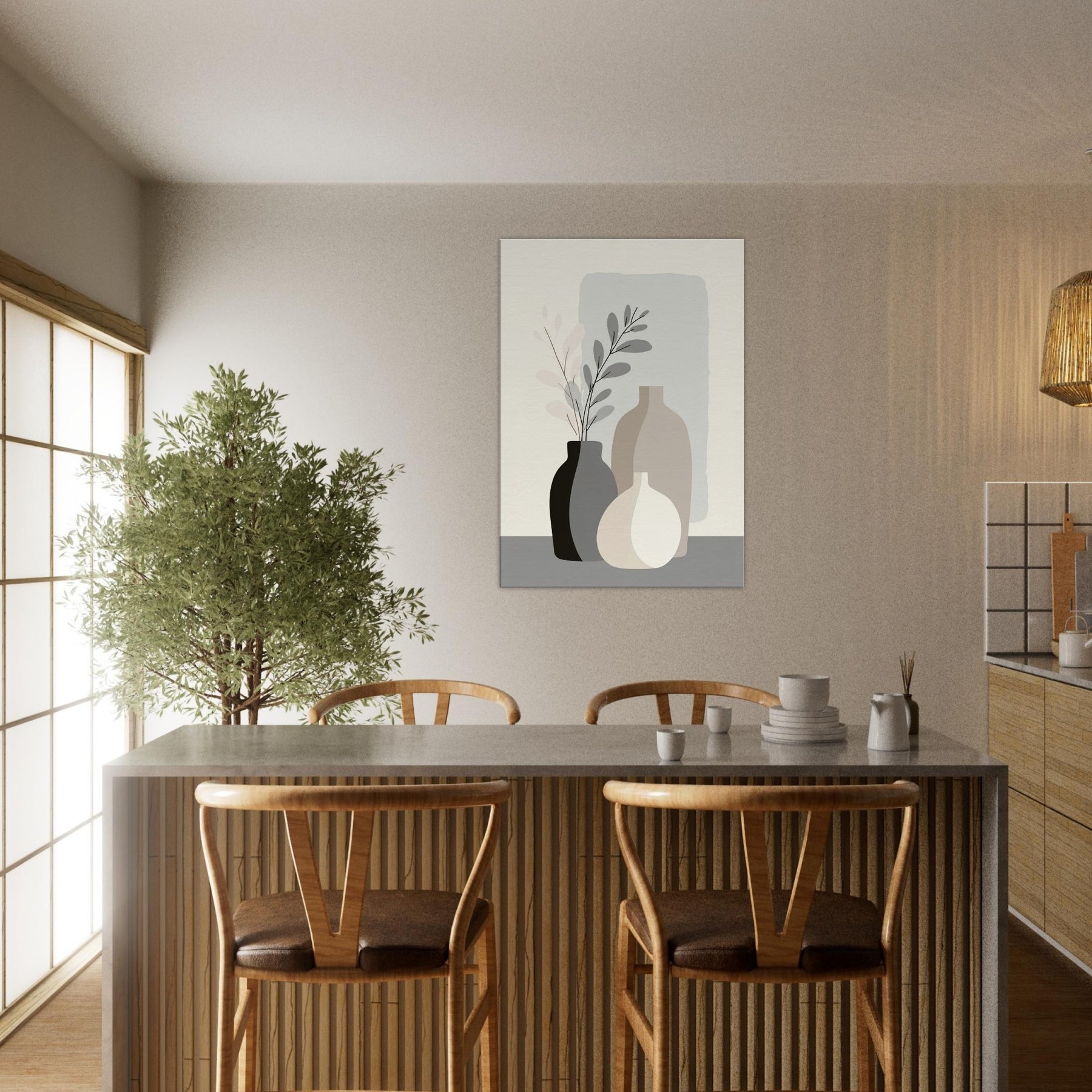 Vase Trio gathers three quiet vessels into a single, breathing moment. In a pale, restrained palette, the forms overlap with calm precision, inviting the eye to rest on balance rather than detail. This minimalist arrangement evokes a sunlit corner, where soft light glides across matte surfaces and shadows whisper along the table. A serene accent for a living space, it adds warmth, presence, and a sense of ordered stillness that makes everyday moments feel more intentional the essence of refined, modern living.