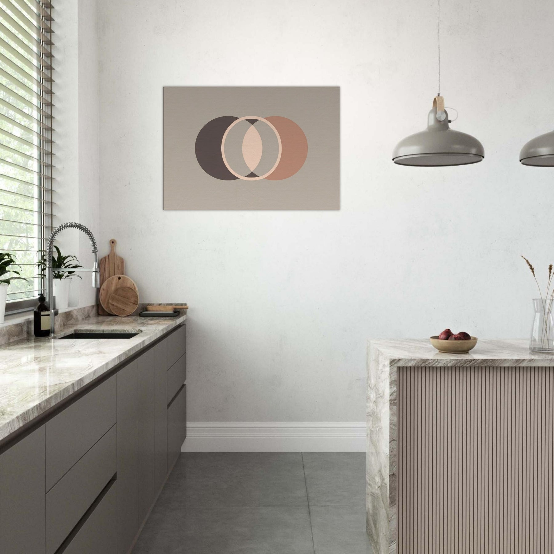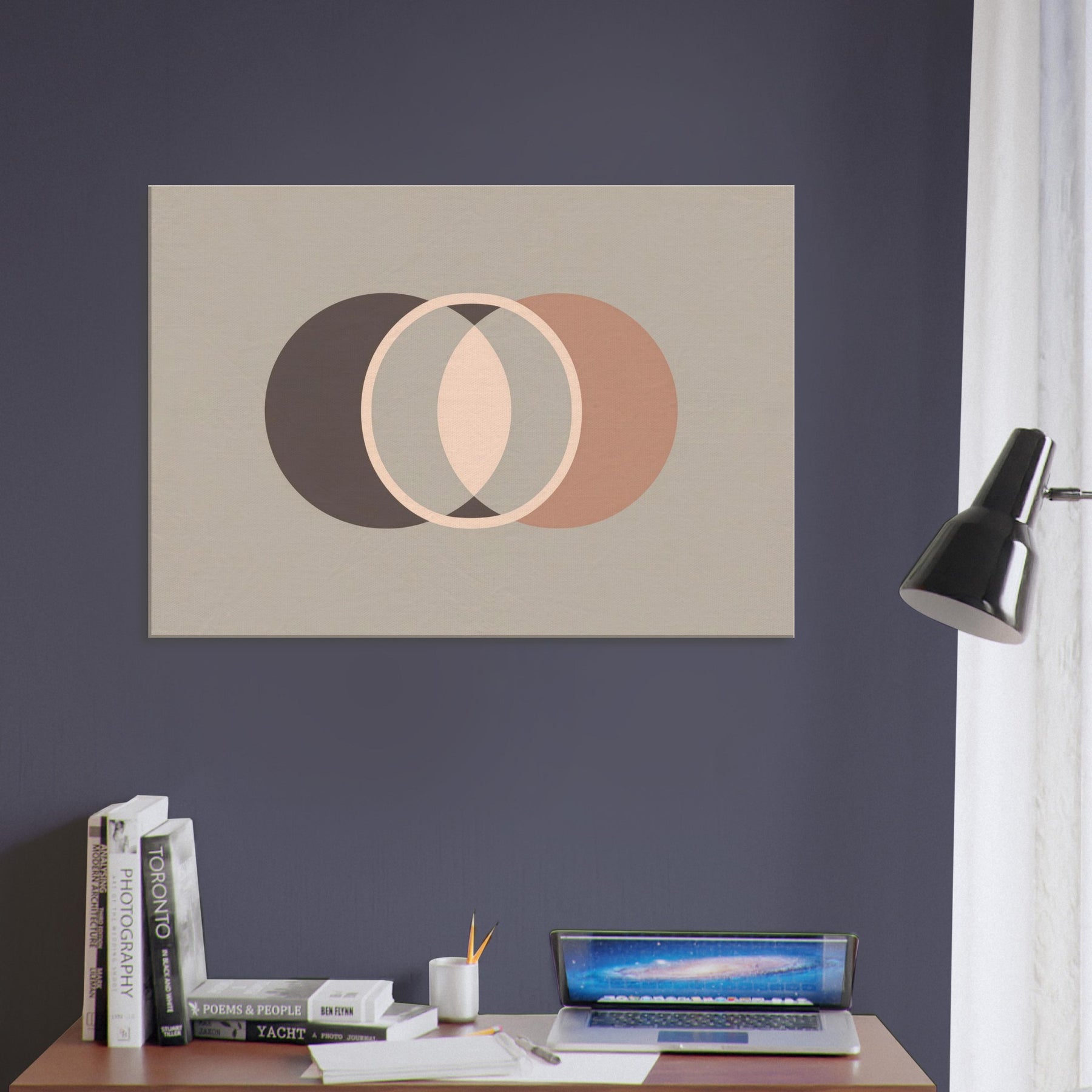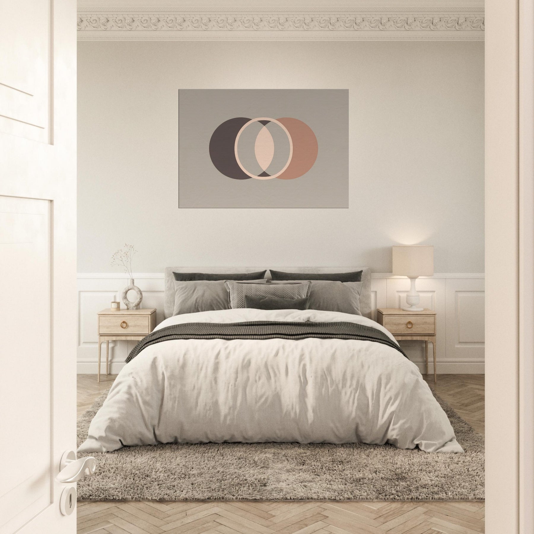 A quiet triad of moons rendered in overlapping circles of taupe, blush and sepia, this minimalist composition gathers light and shadow into a single, serene breath. The Triple Moon glows with an understated radiance, inviting contemplation as it floats above a soft, neutral background. Hang it in a living room or hallway to soften corners, slow the day, and invite mystical calm into daily rituals.
