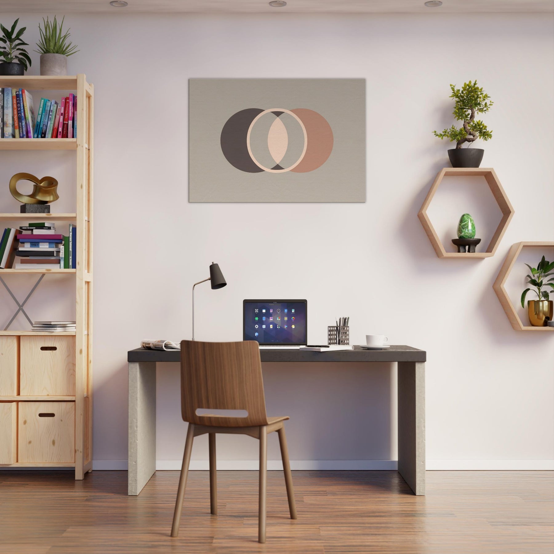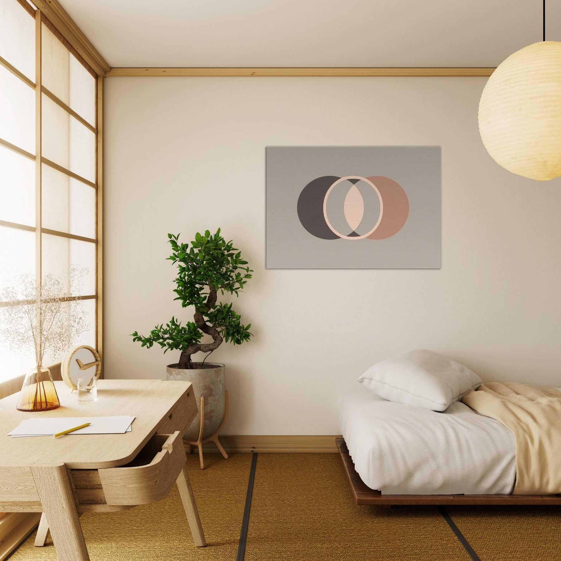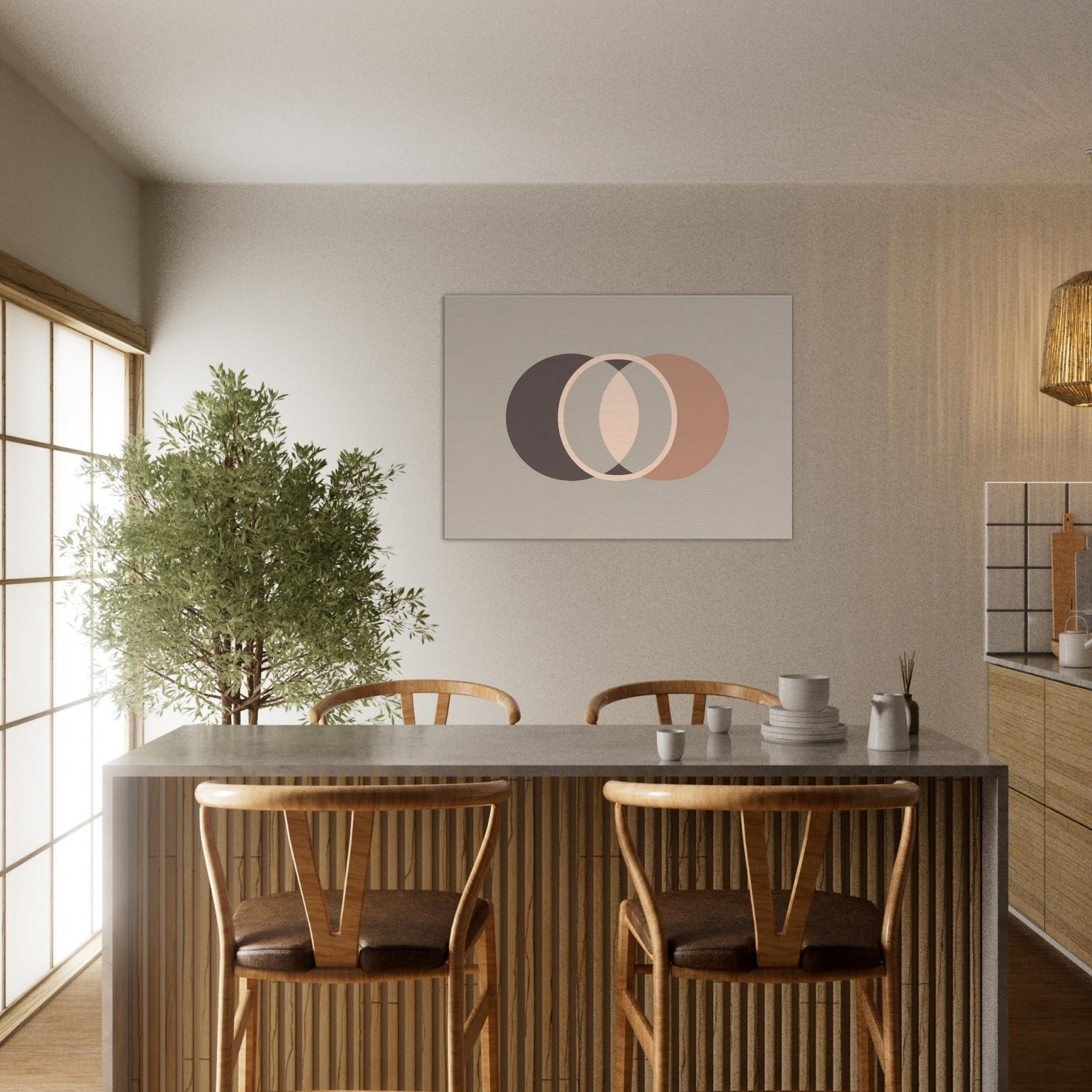 A quiet triad of moons rendered in overlapping circles of taupe, blush and sepia, this minimalist composition gathers light and shadow into a single, serene breath. The Triple Moon glows with an understated radiance, inviting contemplation as it floats above a soft, neutral background. Hang it in a living room or hallway to soften corners, slow the day, and invite mystical calm into daily rituals.