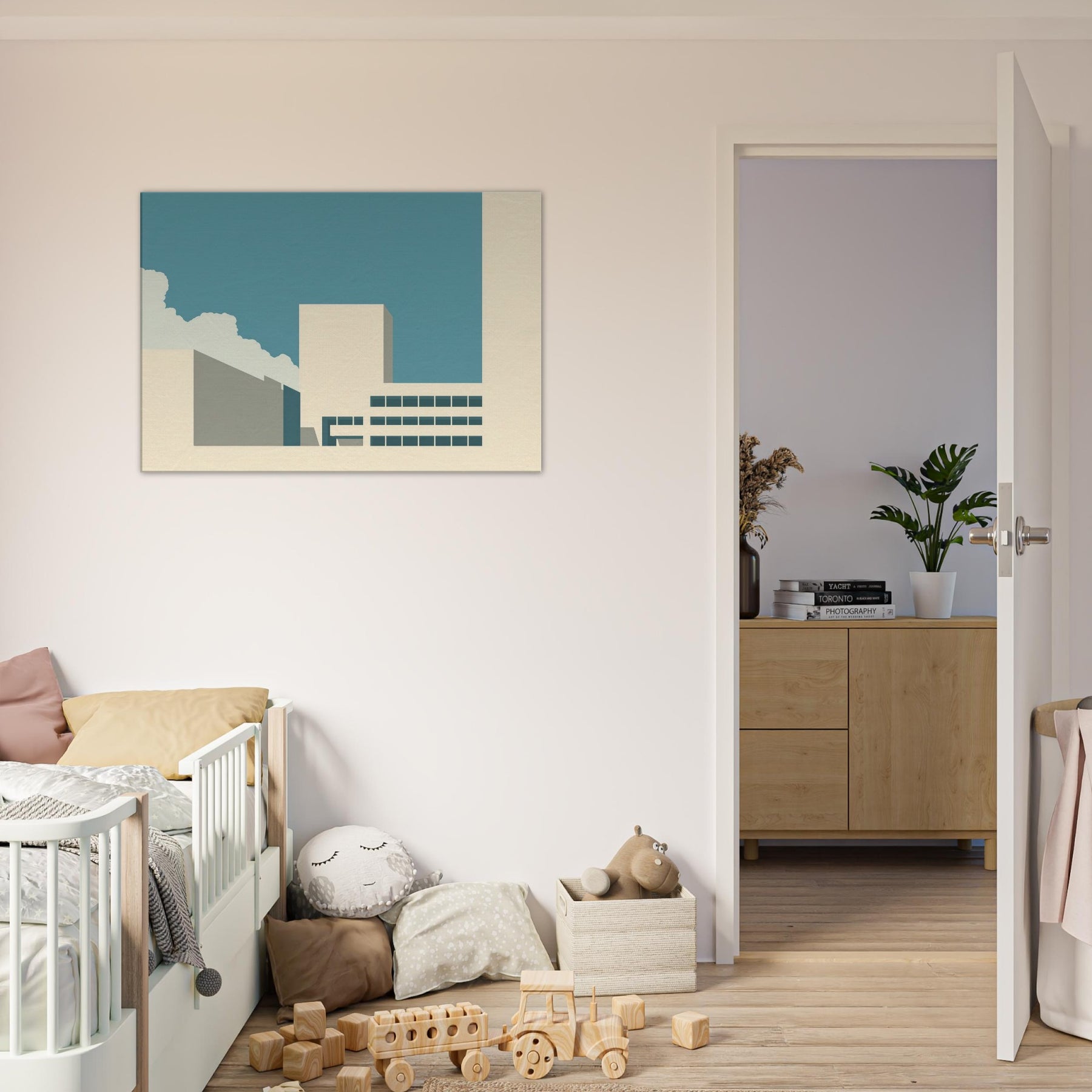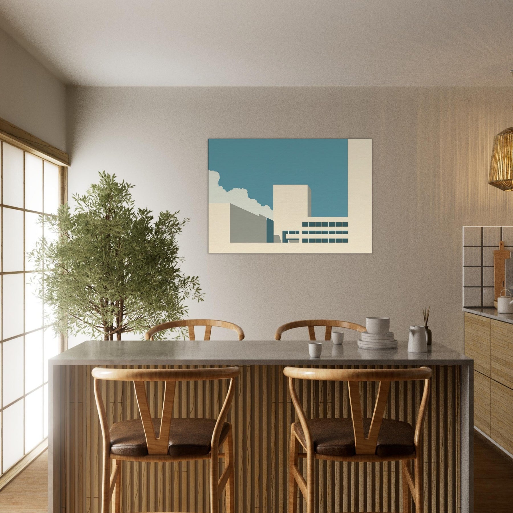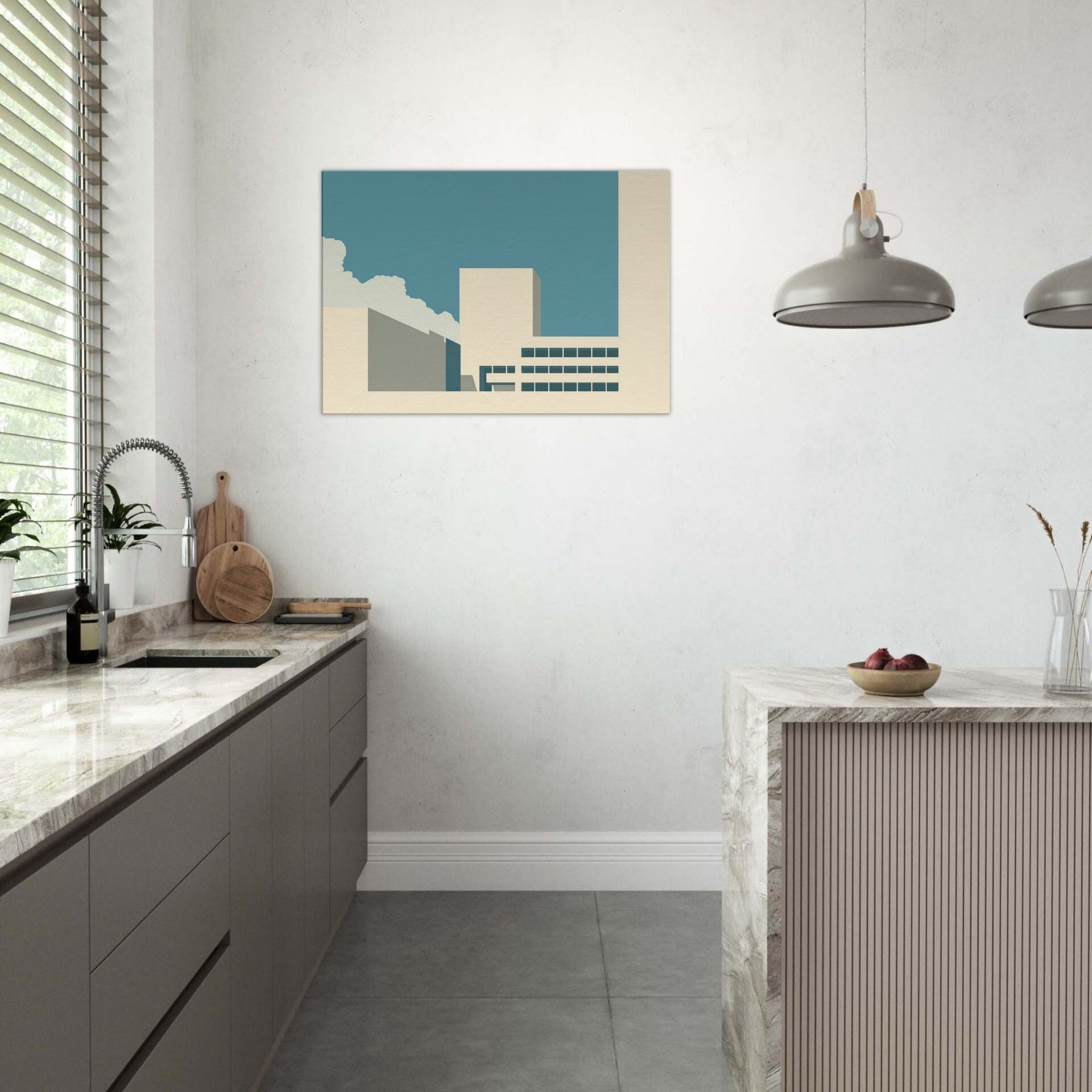 Vancouver unfolds as a quiet silhouette in this minimalist study of light and form. The clean planes, soft beige and teal, echo a city waking under a wide, pale sky. The gentle contrast invites contemplation, turning a living room corner into a calm harbor of focus and restraint. This piece balances urban memory with serene space, letting the Here and Now of Vancouver hover above your furnishings. It pairs with modern neutrals to create a breathable refuge for everyday moments.