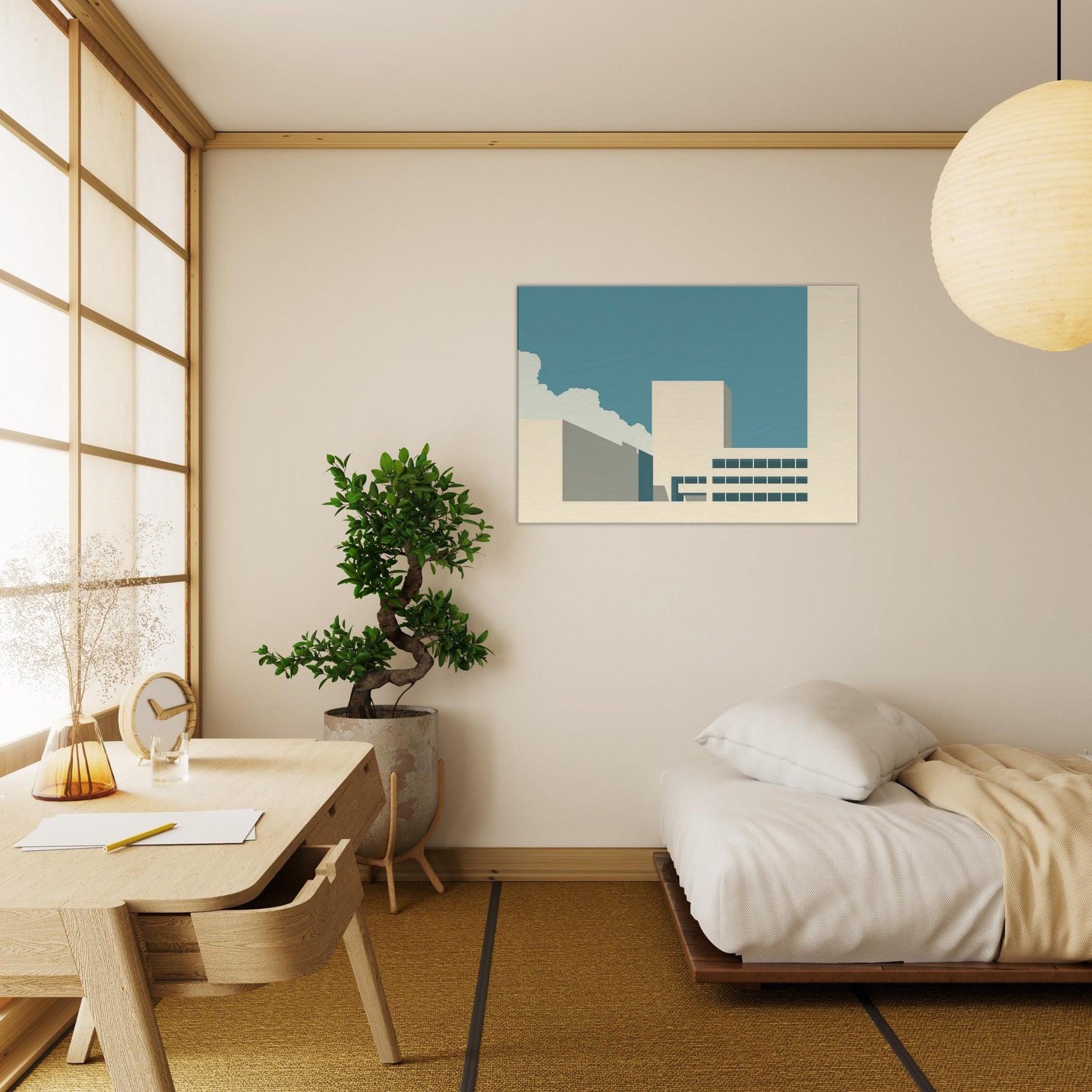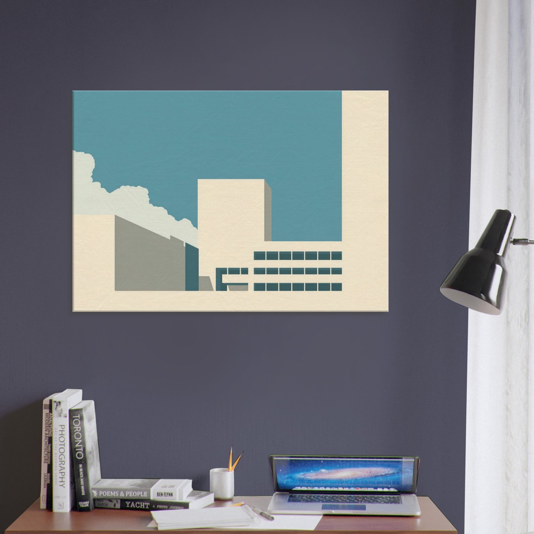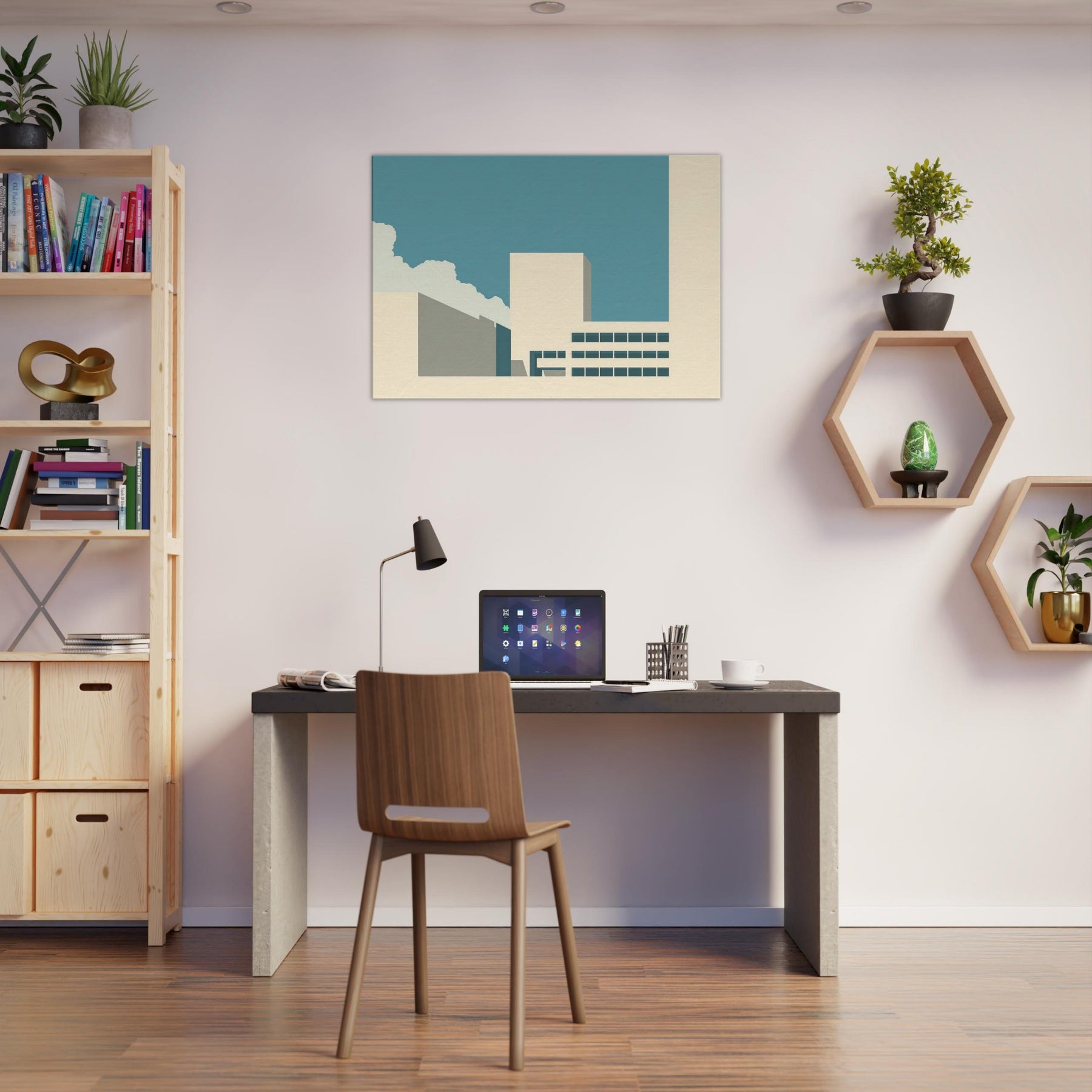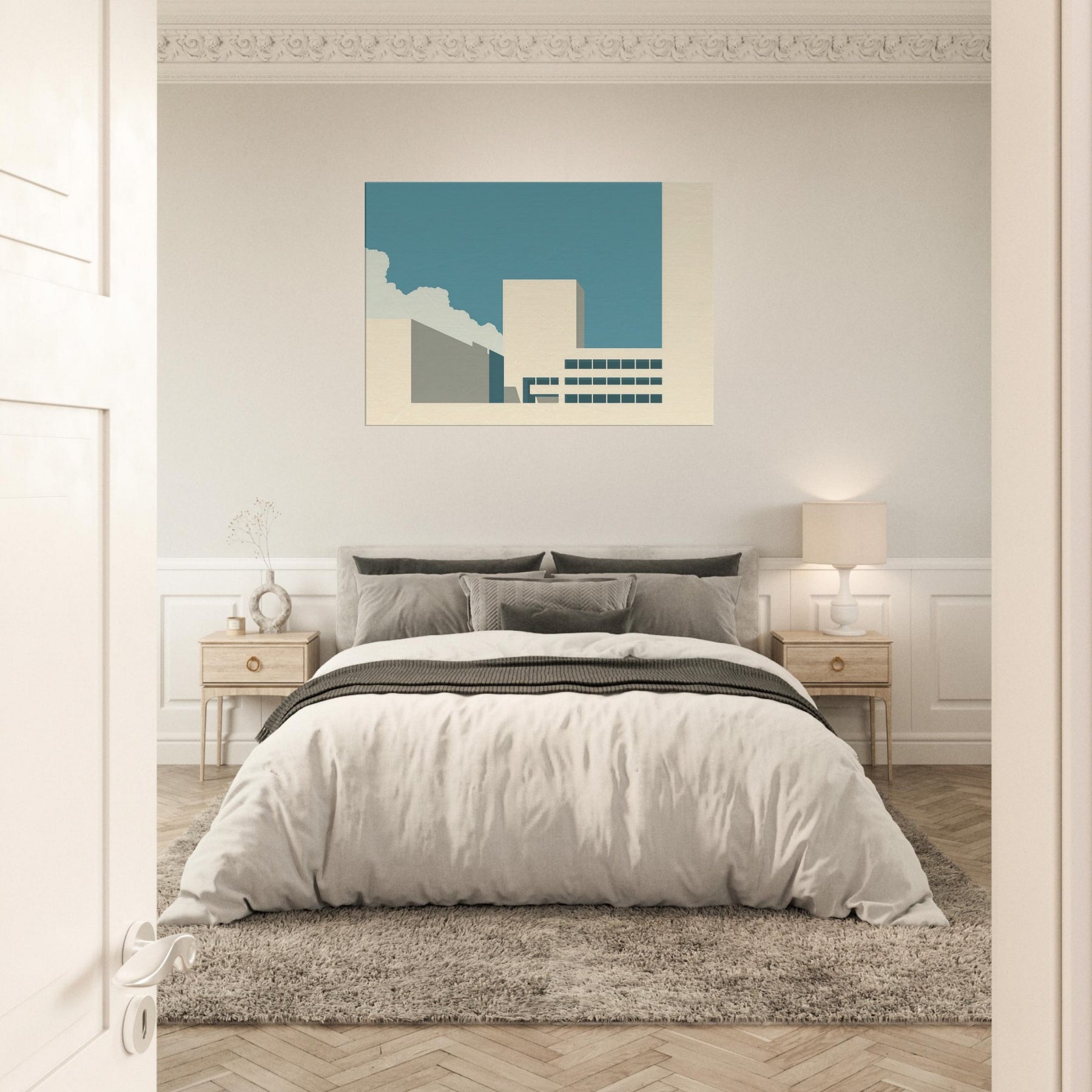 Vancouver unfolds as a quiet silhouette in this minimalist study of light and form. The clean planes, soft beige and teal, echo a city waking under a wide, pale sky. The gentle contrast invites contemplation, turning a living room corner into a calm harbor of focus and restraint. This piece balances urban memory with serene space, letting the Here and Now of Vancouver hover above your furnishings. It pairs with modern neutrals to create a breathable refuge for everyday moments.