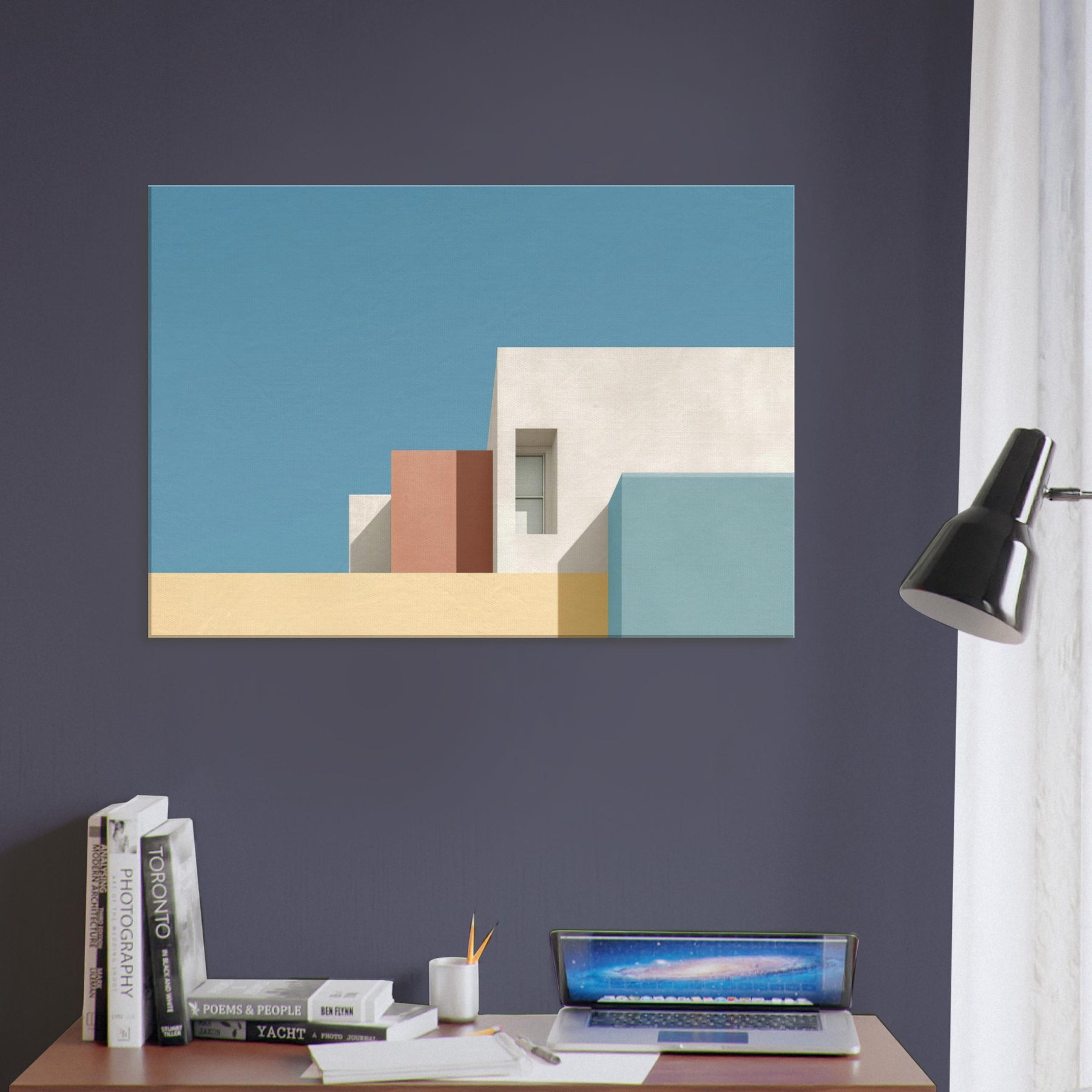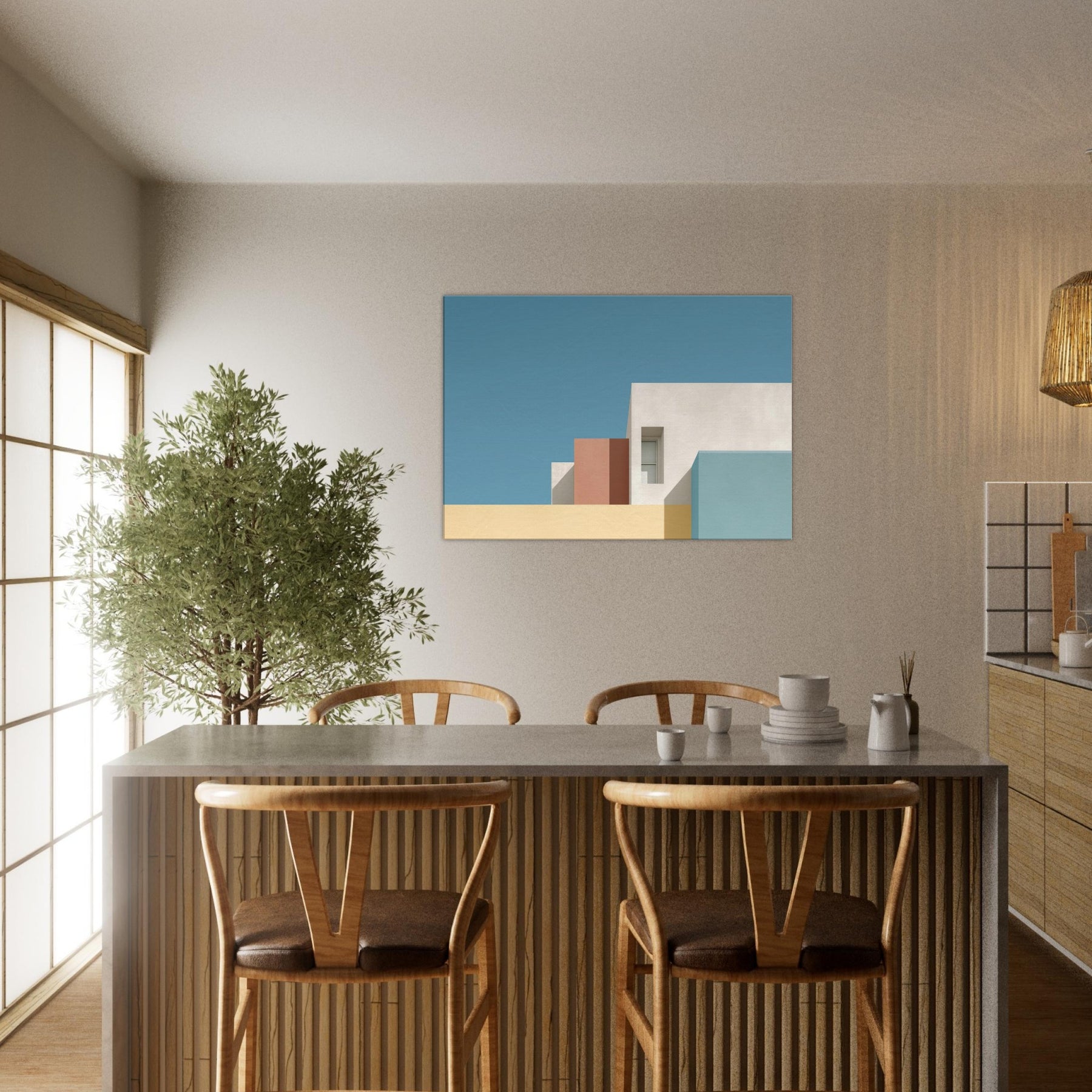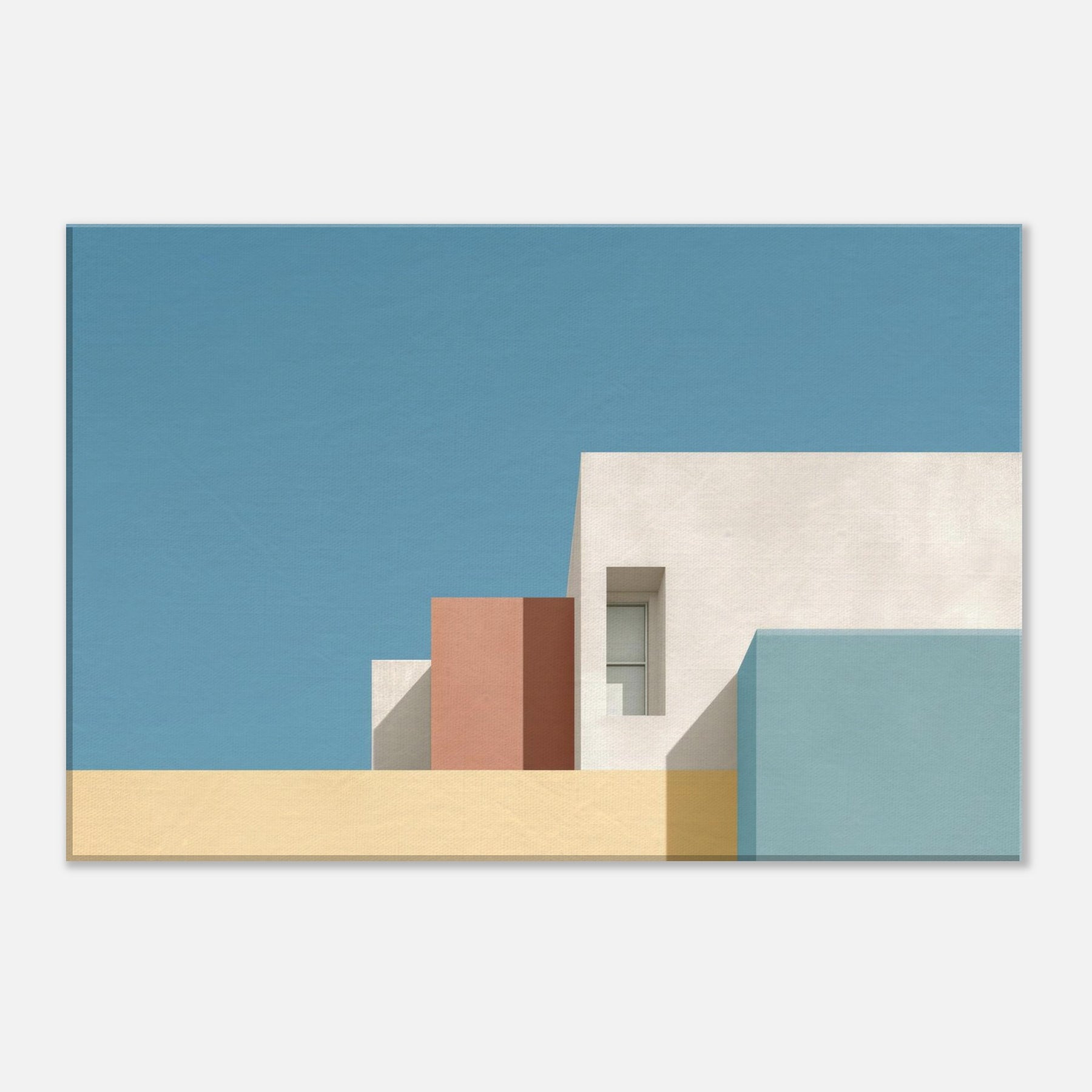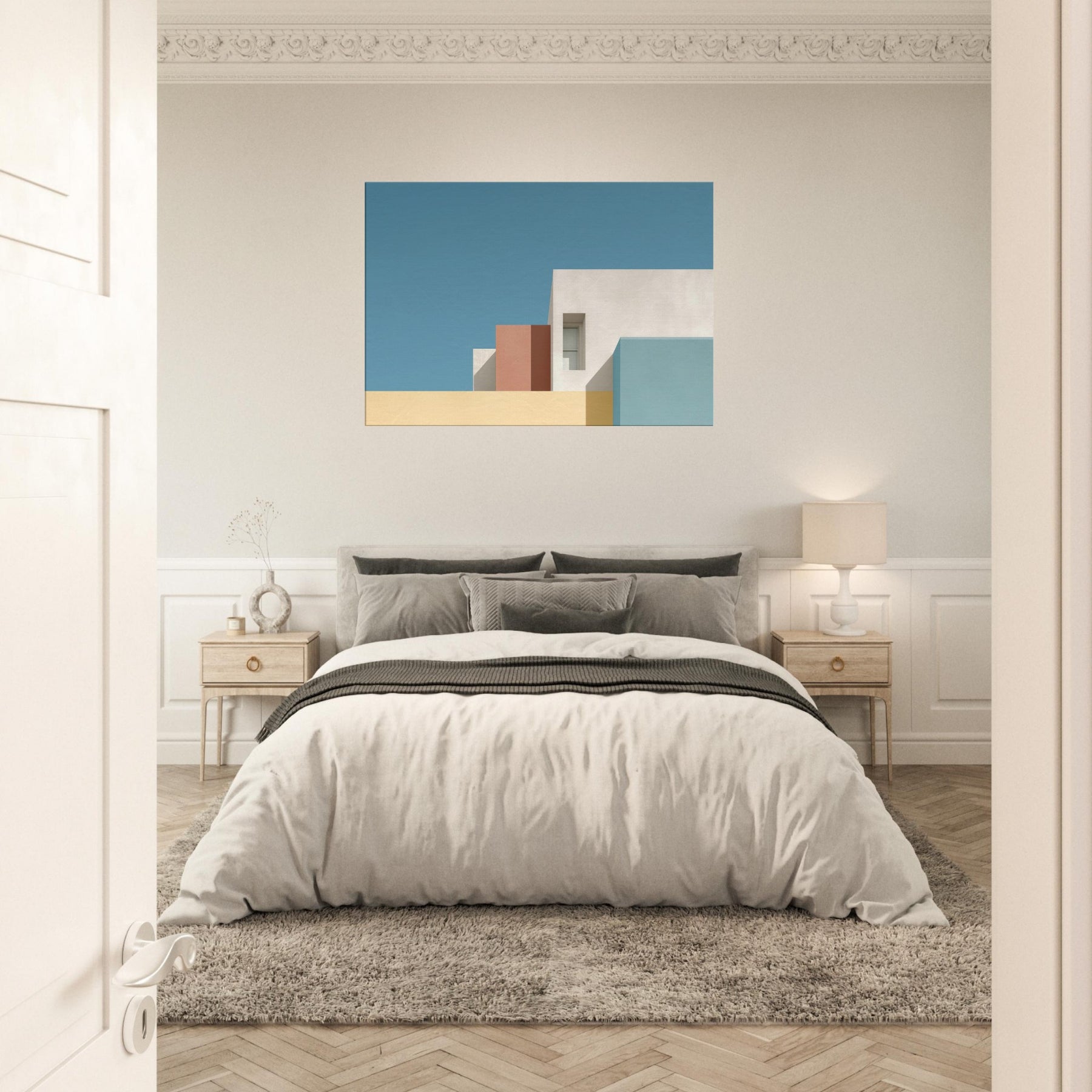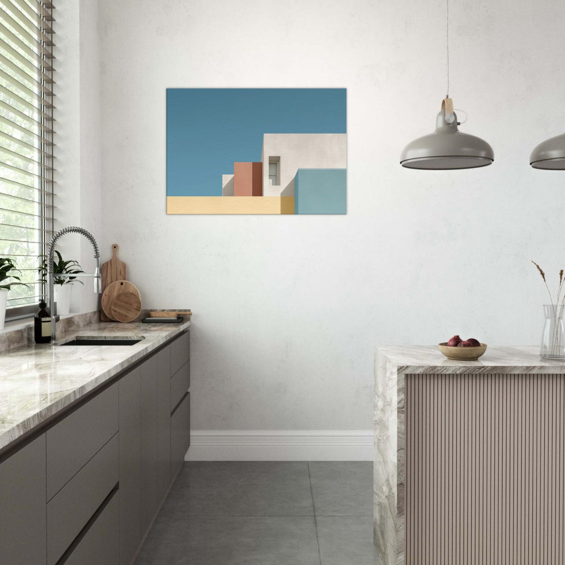 A measured study in light and form, Vancouver Quiet Lines dissolves a city into tactile blocks of sun washed color and shadow. The clean geometry evokes morning on a breezy terrace, where warm peach walls meet cool blues under a wide sky. The composition invites quiet reflection, making spaces feel more open, serene, and breathable. Hang it in a living room, hallway, or bedroom to bathe surfaces in gentle color and precise lines that frame conversation without shouting.