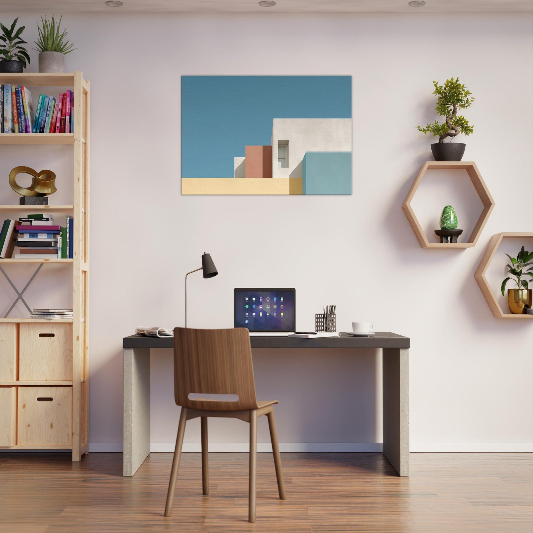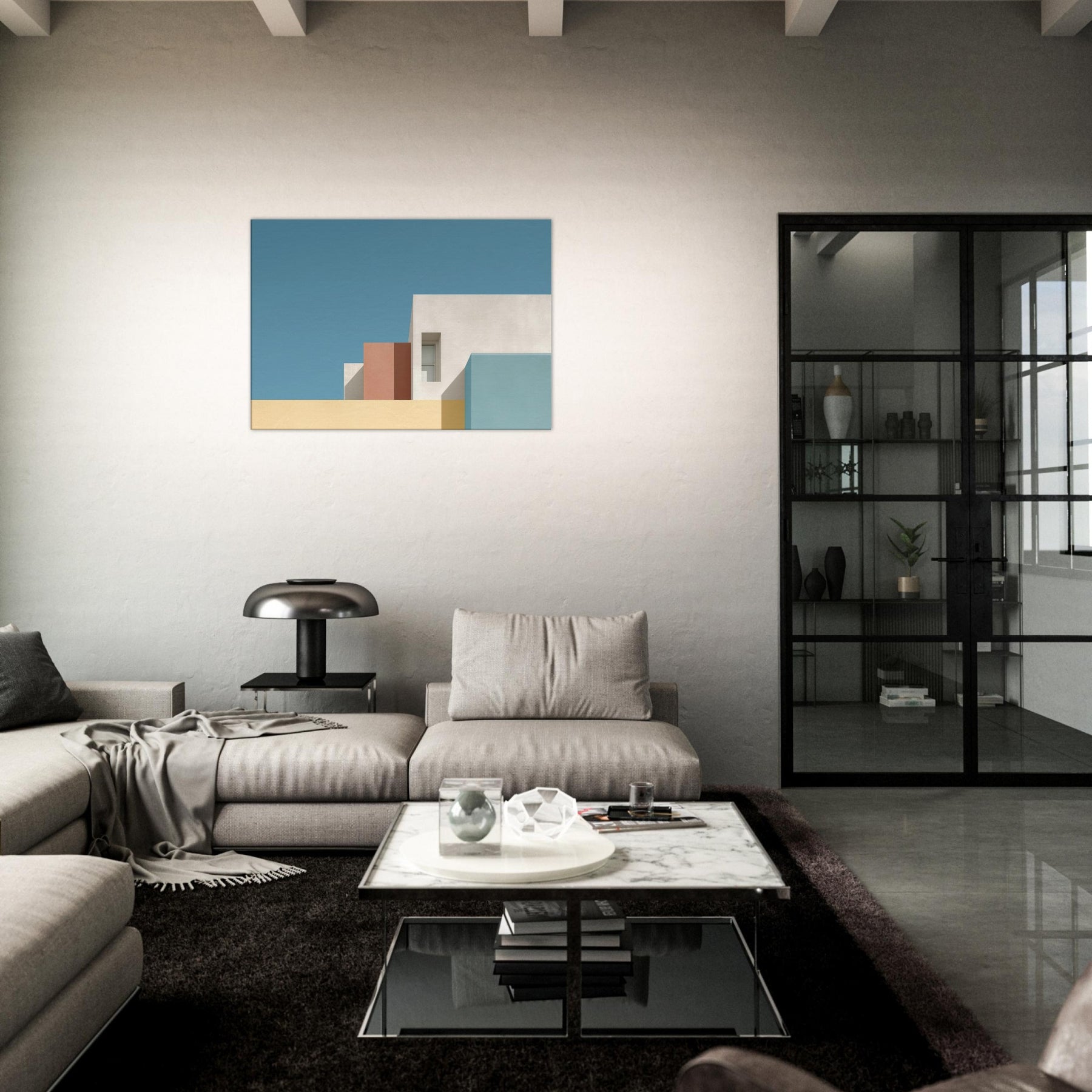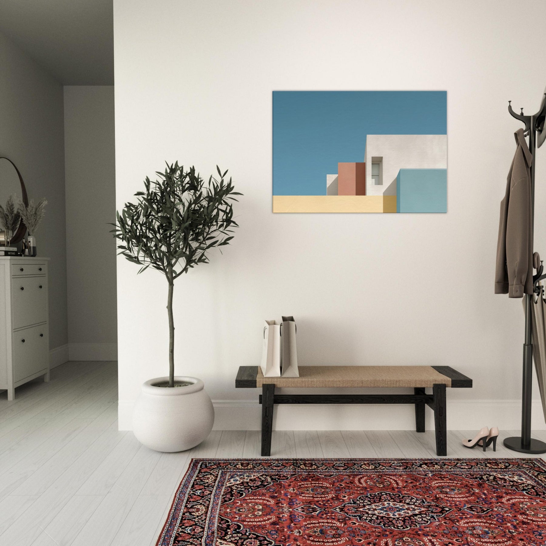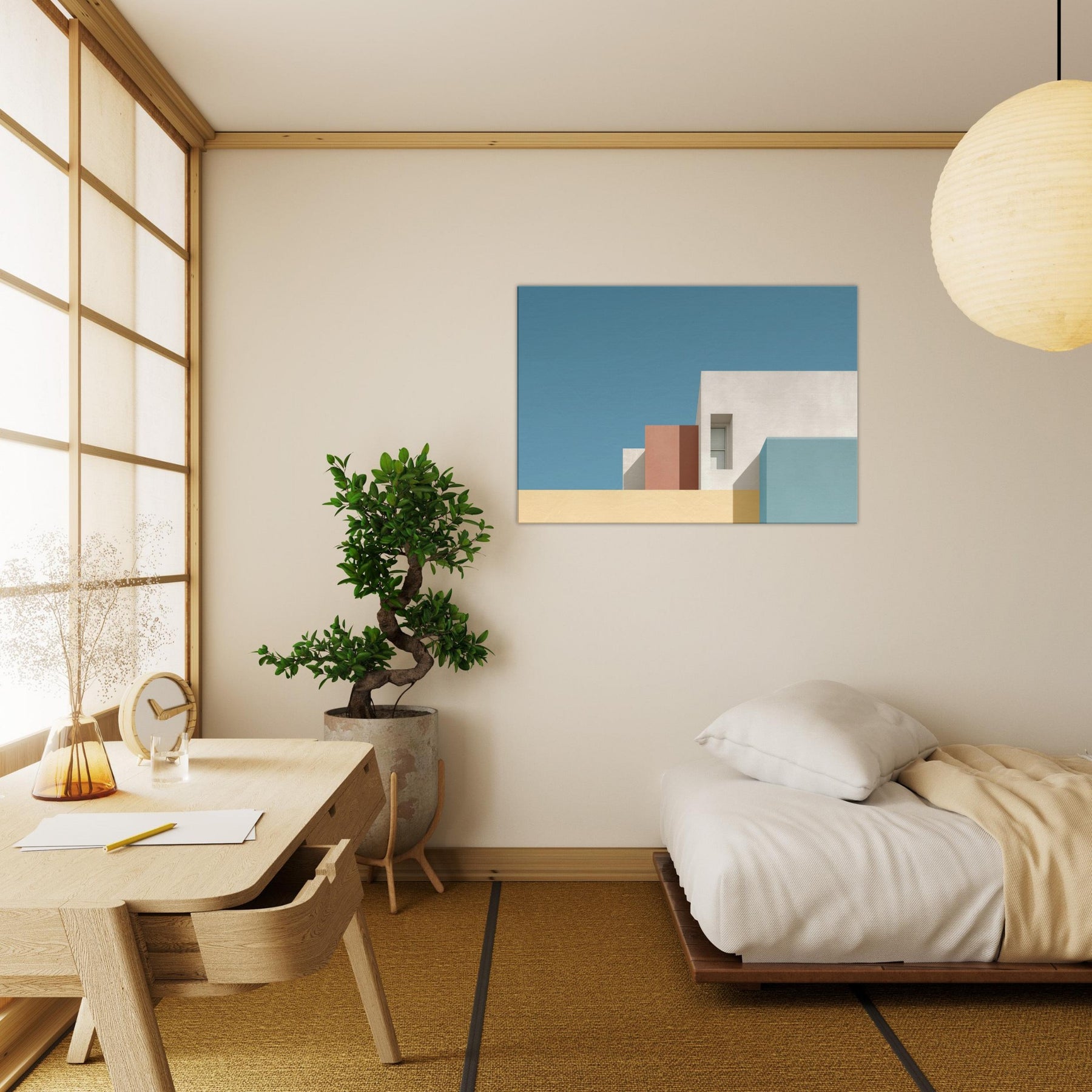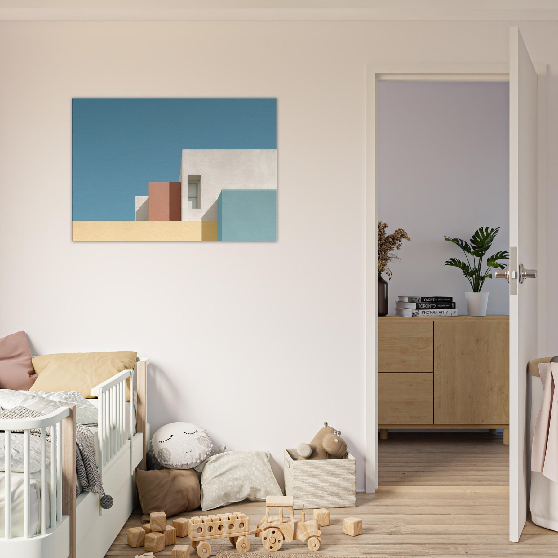 A measured study in light and form, Vancouver Quiet Lines dissolves a city into tactile blocks of sun washed color and shadow. The clean geometry evokes morning on a breezy terrace, where warm peach walls meet cool blues under a wide sky. The composition invites quiet reflection, making spaces feel more open, serene, and breathable. Hang it in a living room, hallway, or bedroom to bathe surfaces in gentle color and precise lines that frame conversation without shouting.