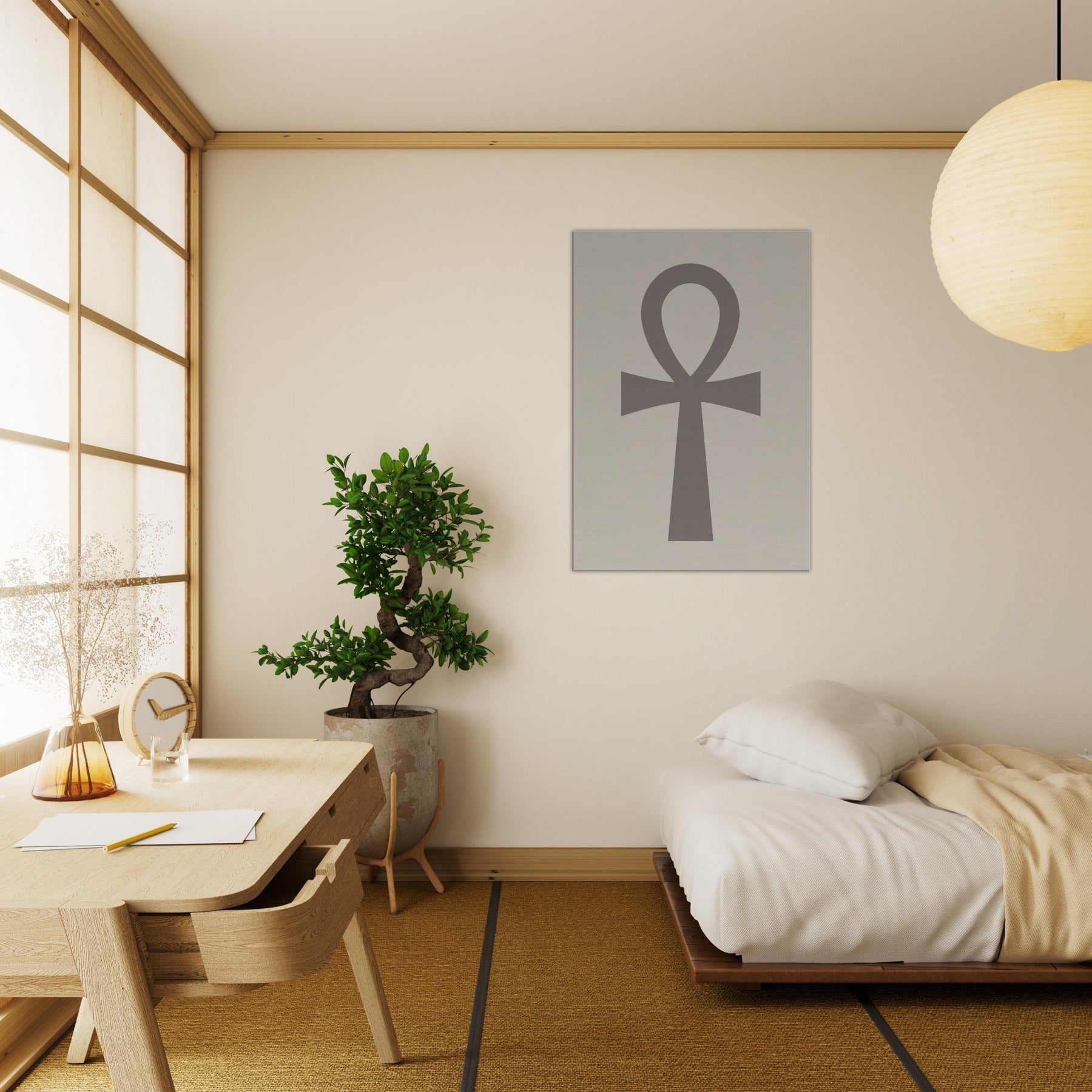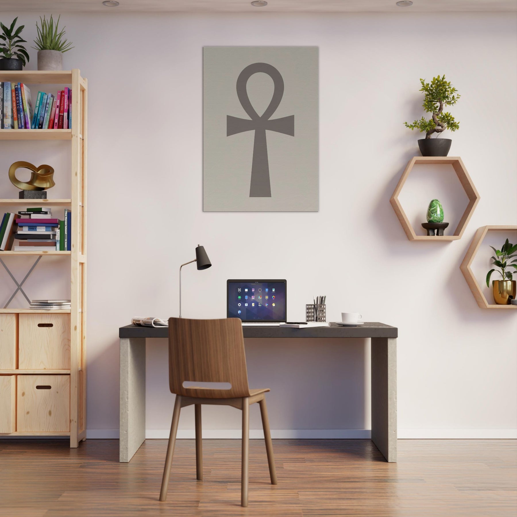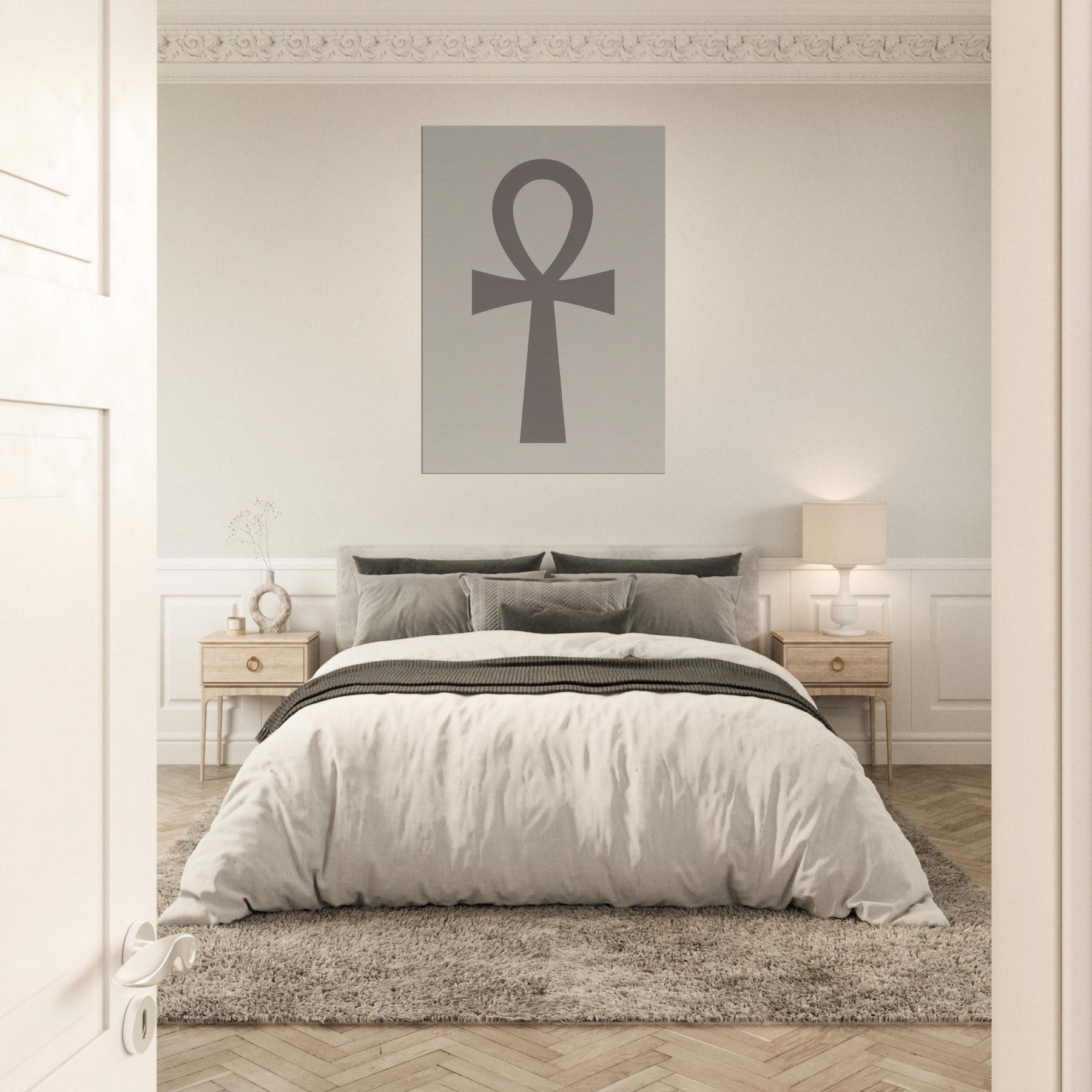 A minimal, meditative silhouette, the Ankh anchors the room with quiet authority. On a warm, parchment canvas, this timeless symbol breathes space between breath and stillness. The restrained palette and generous negative space invite reflection, turning a wall into a sanctuary. Perfect for a living room or study, it pairs with soft textures and muted lighting to evoke ancient echoes and modern calm.