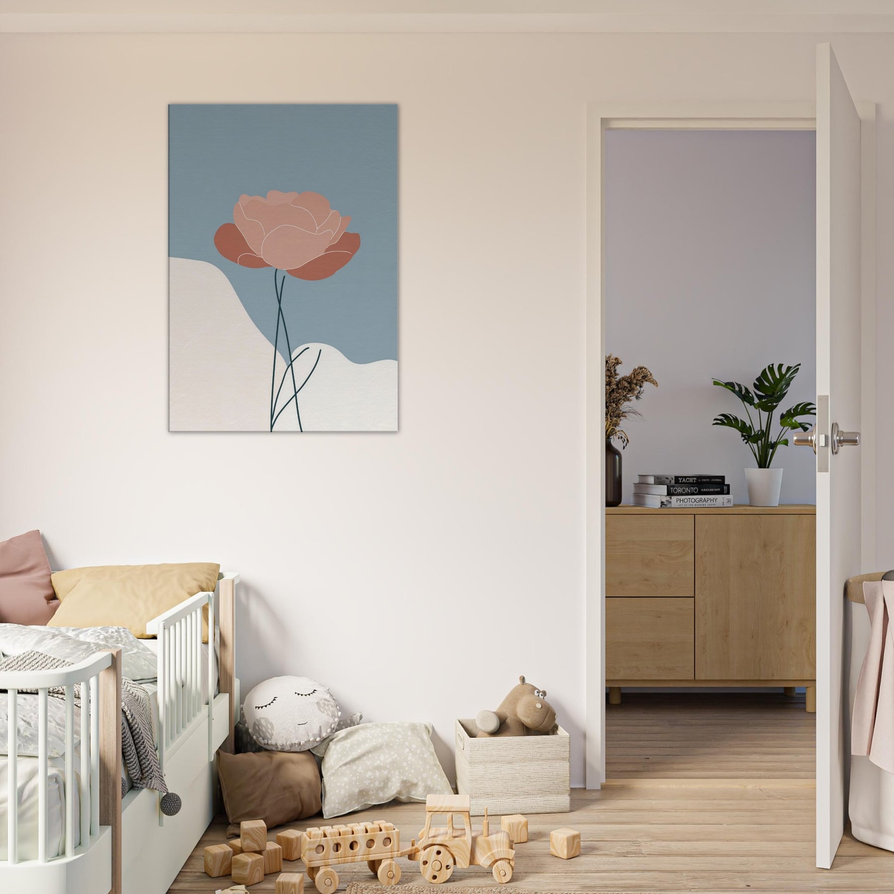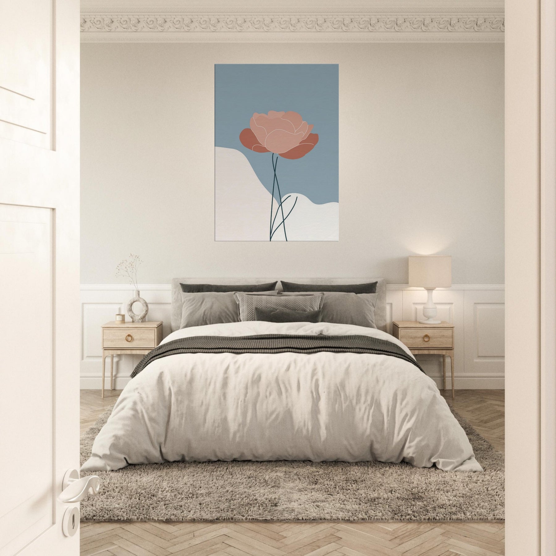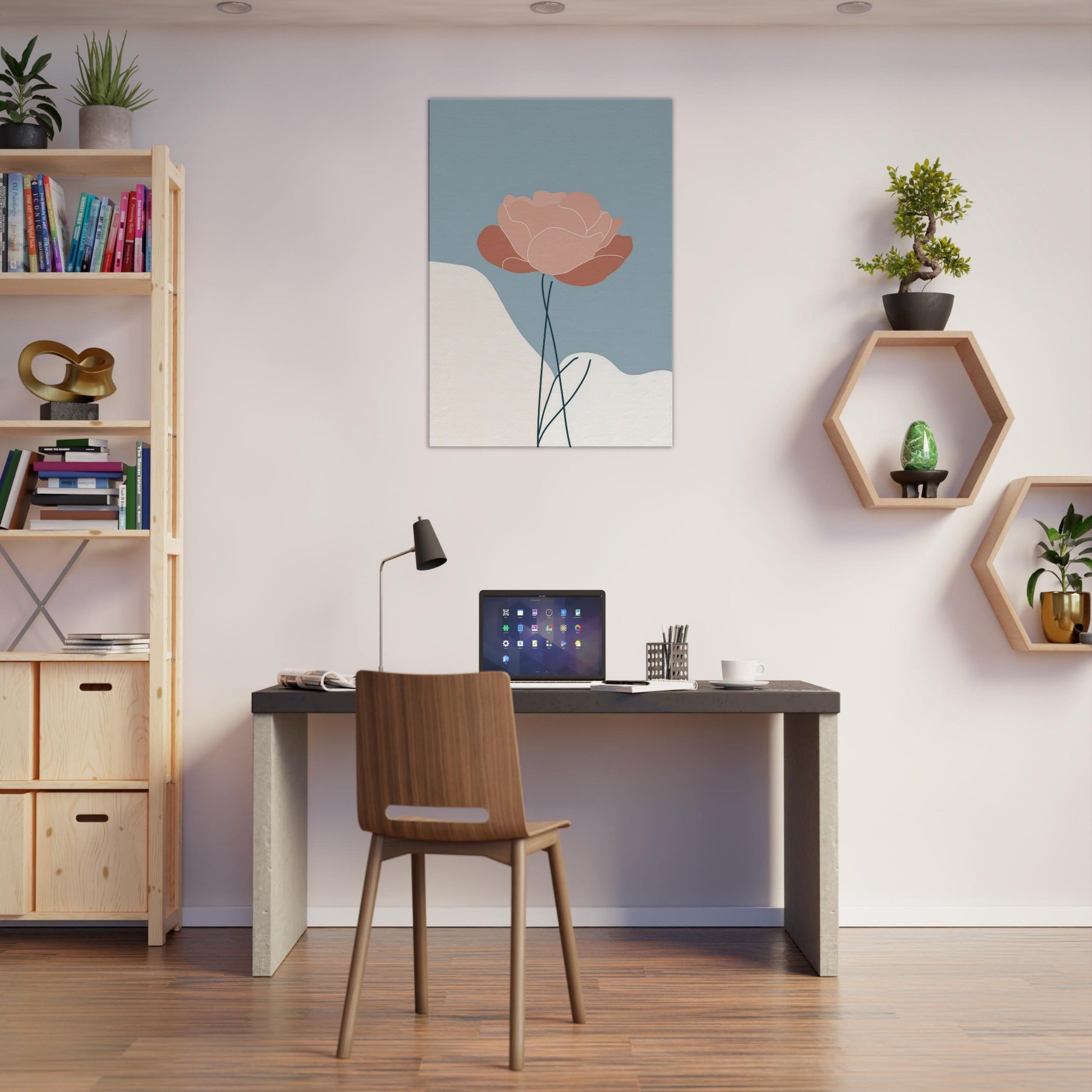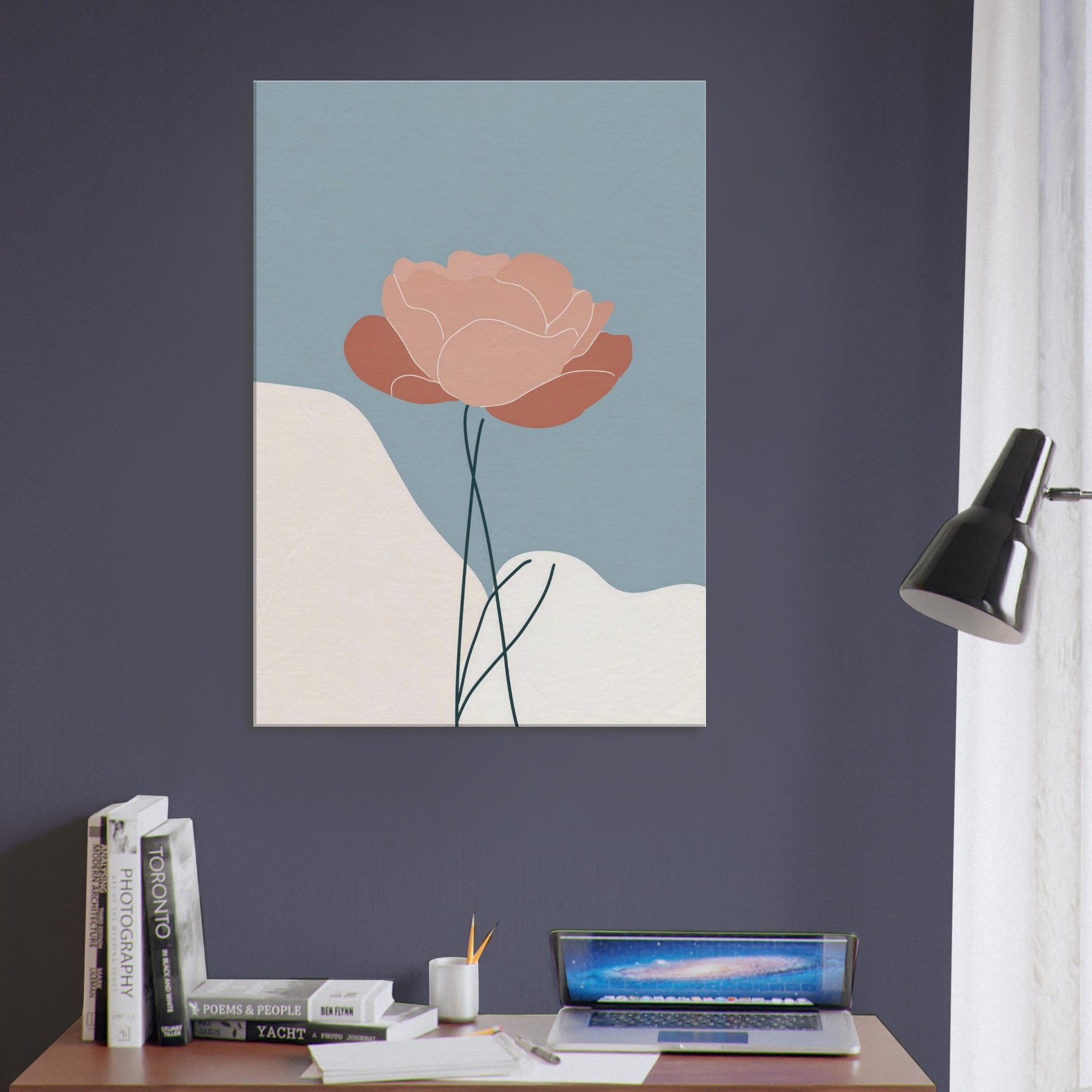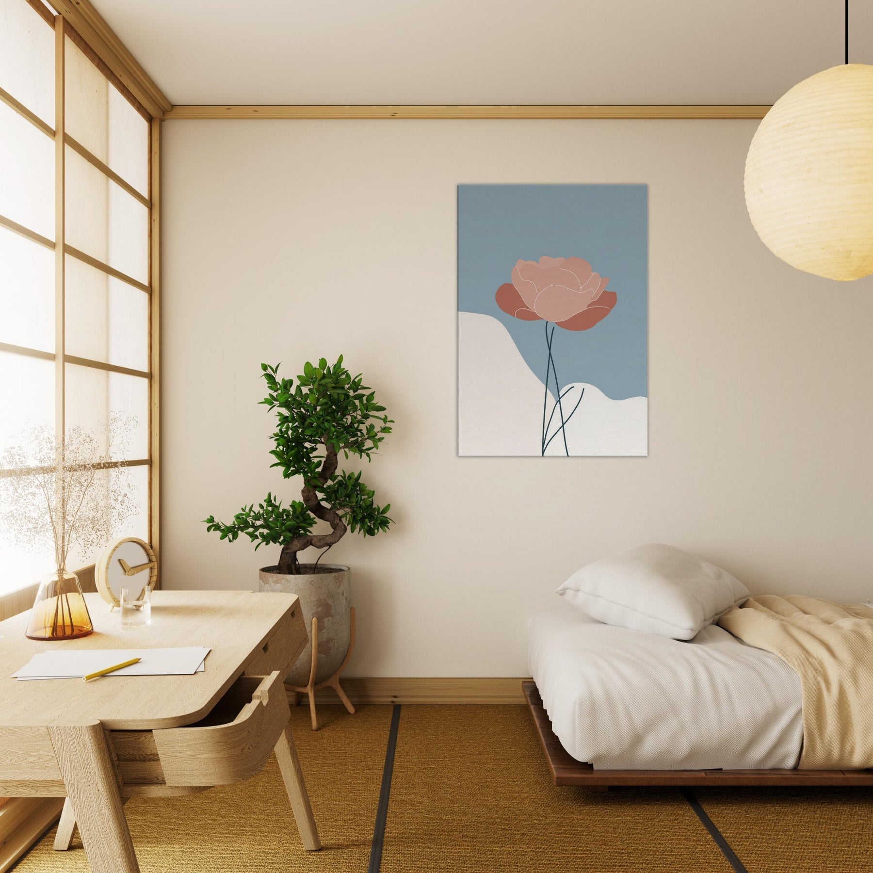 Under a calm slate sky, As the Primary Subject, the Ranunculus releases a soft, blush glow that softens any room. This minimalist study of nature distills a single flower into clean lines and warm tones, letting space breathe around it. The delicate pink petals spill over the muted horizon, while slender stems anchor the scene in quiet motion. Perfect for a living room or bedroom, it invites reflection, calm, and a timeless sense of ease an intimate accent that elevates color, light, and everyday rituals.
