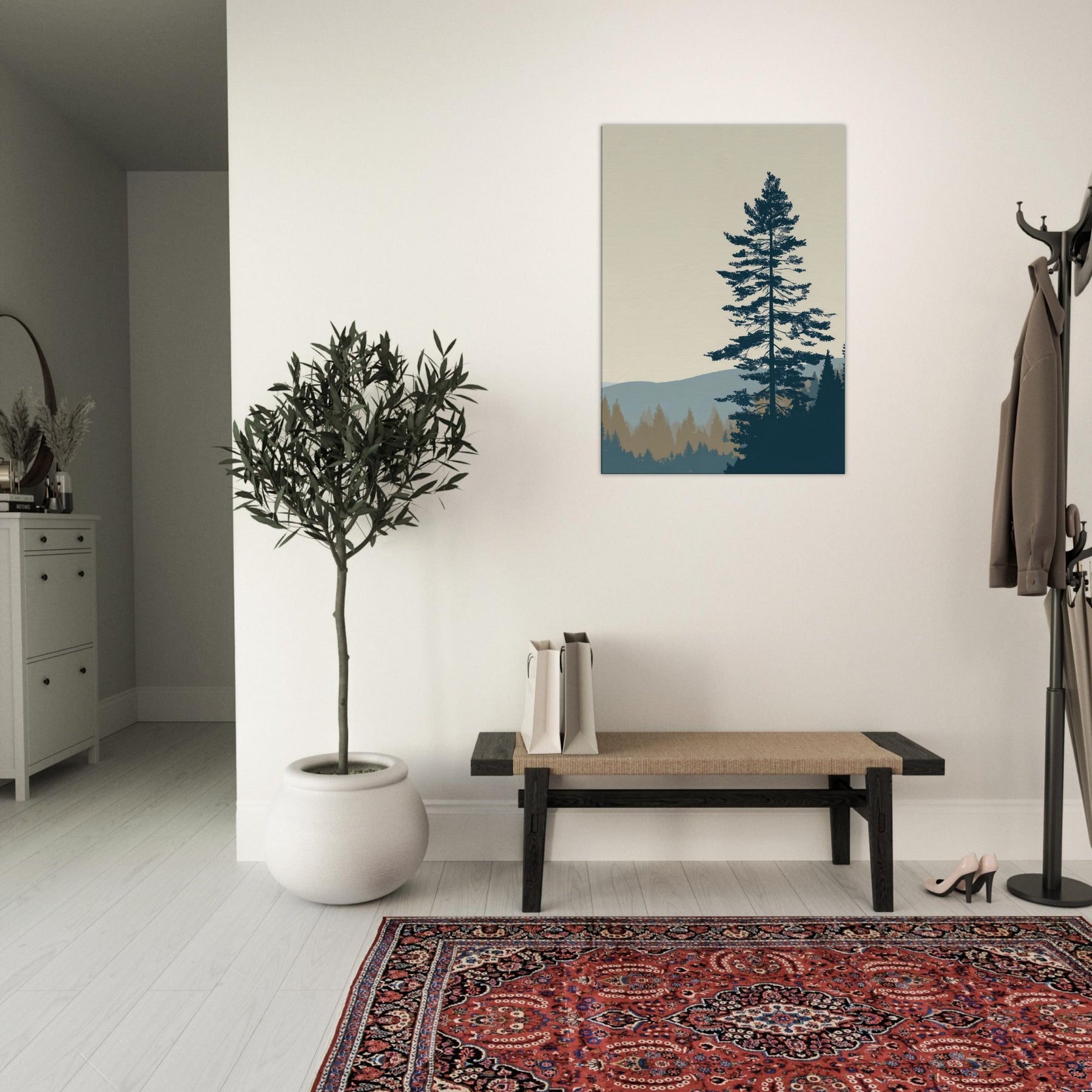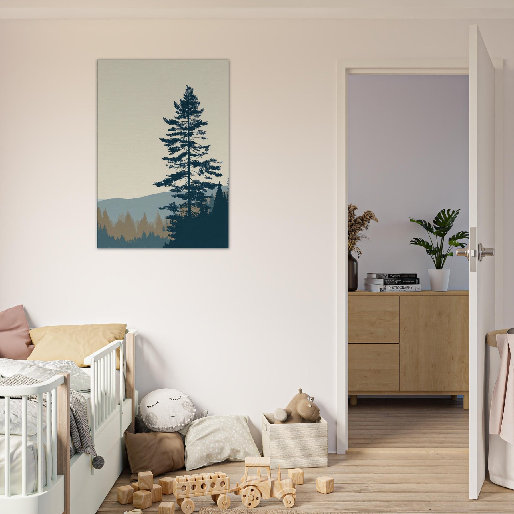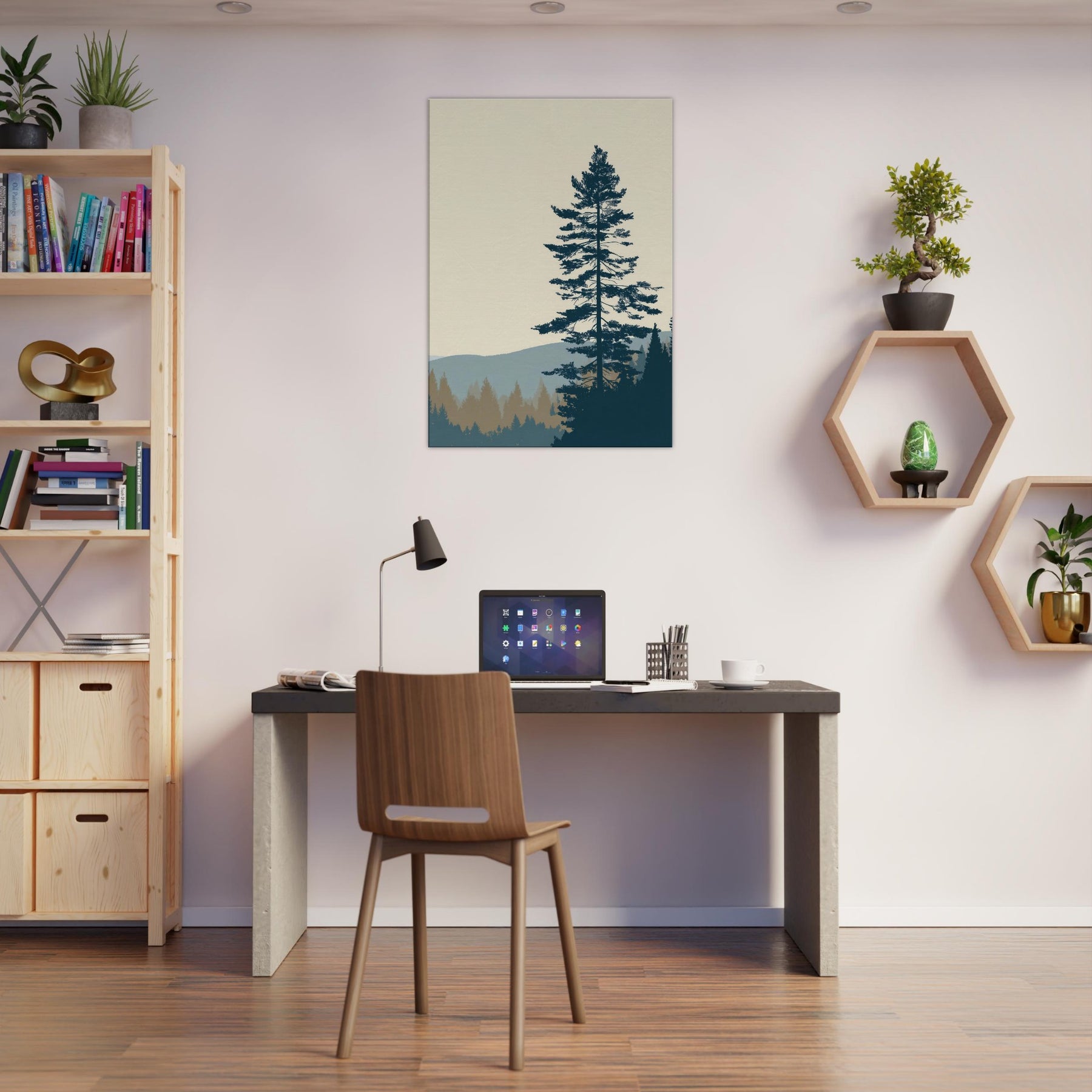 Step into the Boreal Forest through minimalist lens: a calm, monochrome silhouette set against soft horizons. This wall art uses negative space and restrained tones to echo quiet mornings, pine needles like delicate threads, and the distant hills in tranquil blues. In your living space, it grounds the room with stillness, inviting slow breaths and reflective moments. Perfect for a serene lounge, bedroom, or office, it brings nature’s hush into everyday life with elegant restraint.