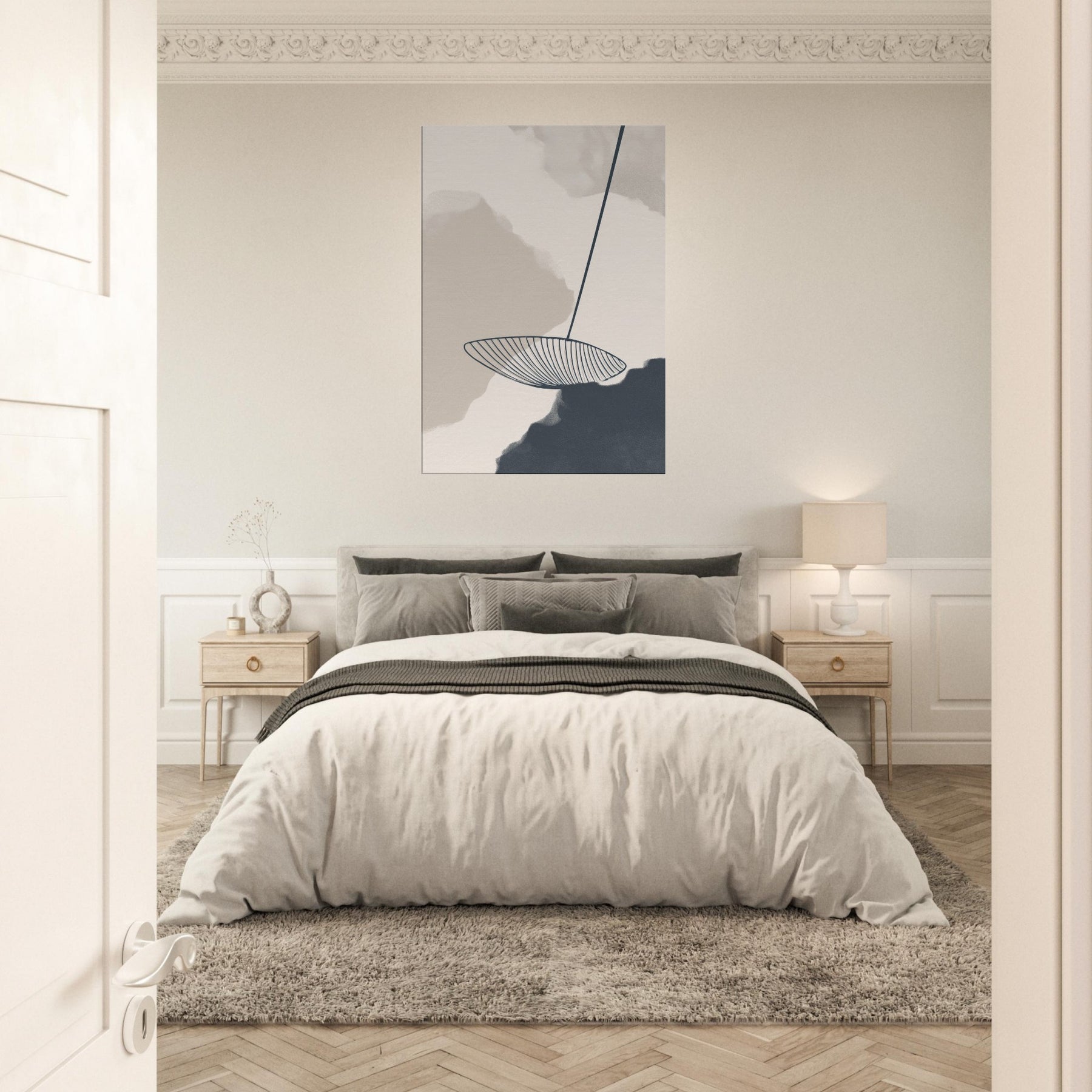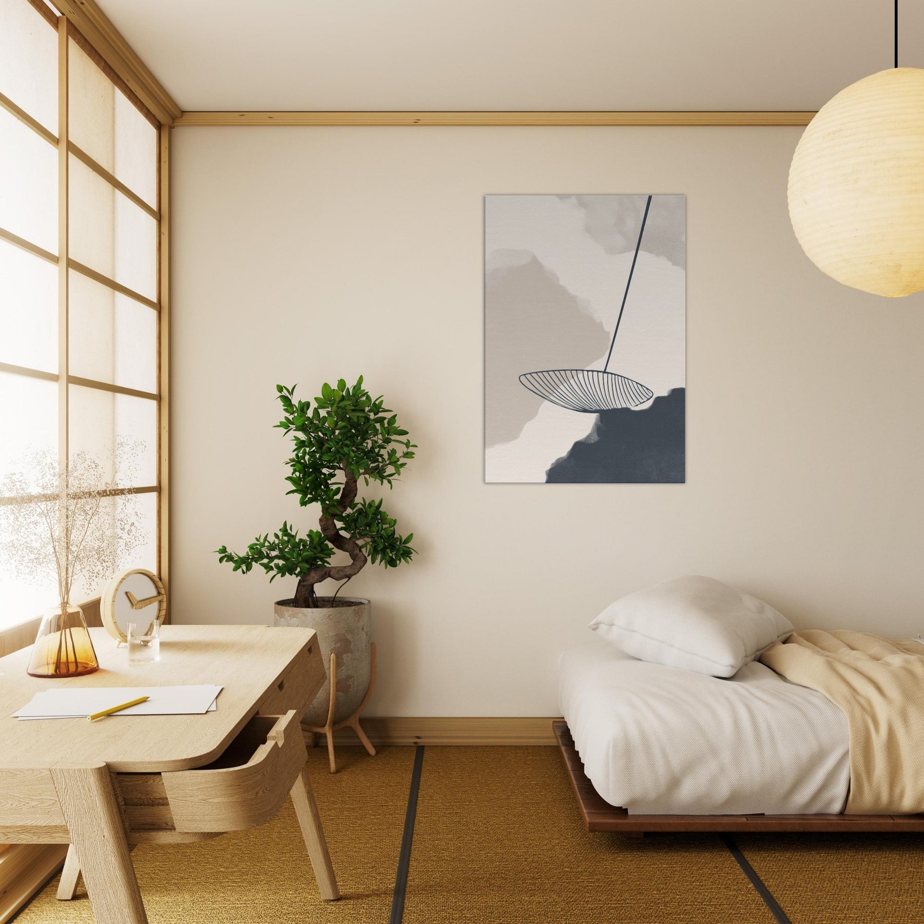 Calm, uncluttered lines trace a quiet horizon in Zen Garden Rake Lines. This minimalist composition invites a contemplative stillness, as if the rake's arc awakens the garden's memory in soft monochrome fields. The atmosphere feels meditative, bathed in gentle shadows that glow at dusk, making any wall a sanctuary. Place it in a living area, bedroom, or study to cultivate clarity, balance, and a subtle sense of movement nature distilled into a single, elegant gesture.