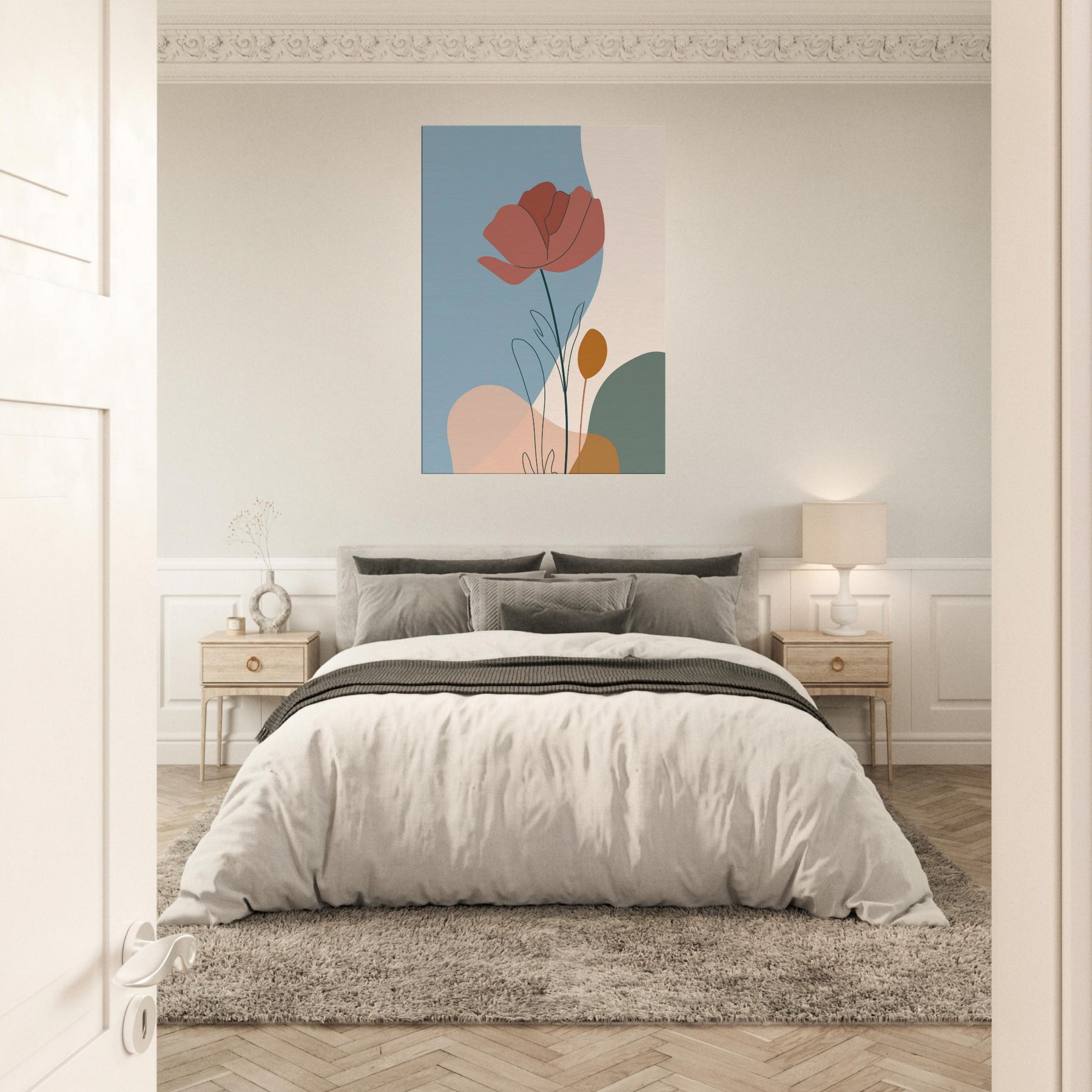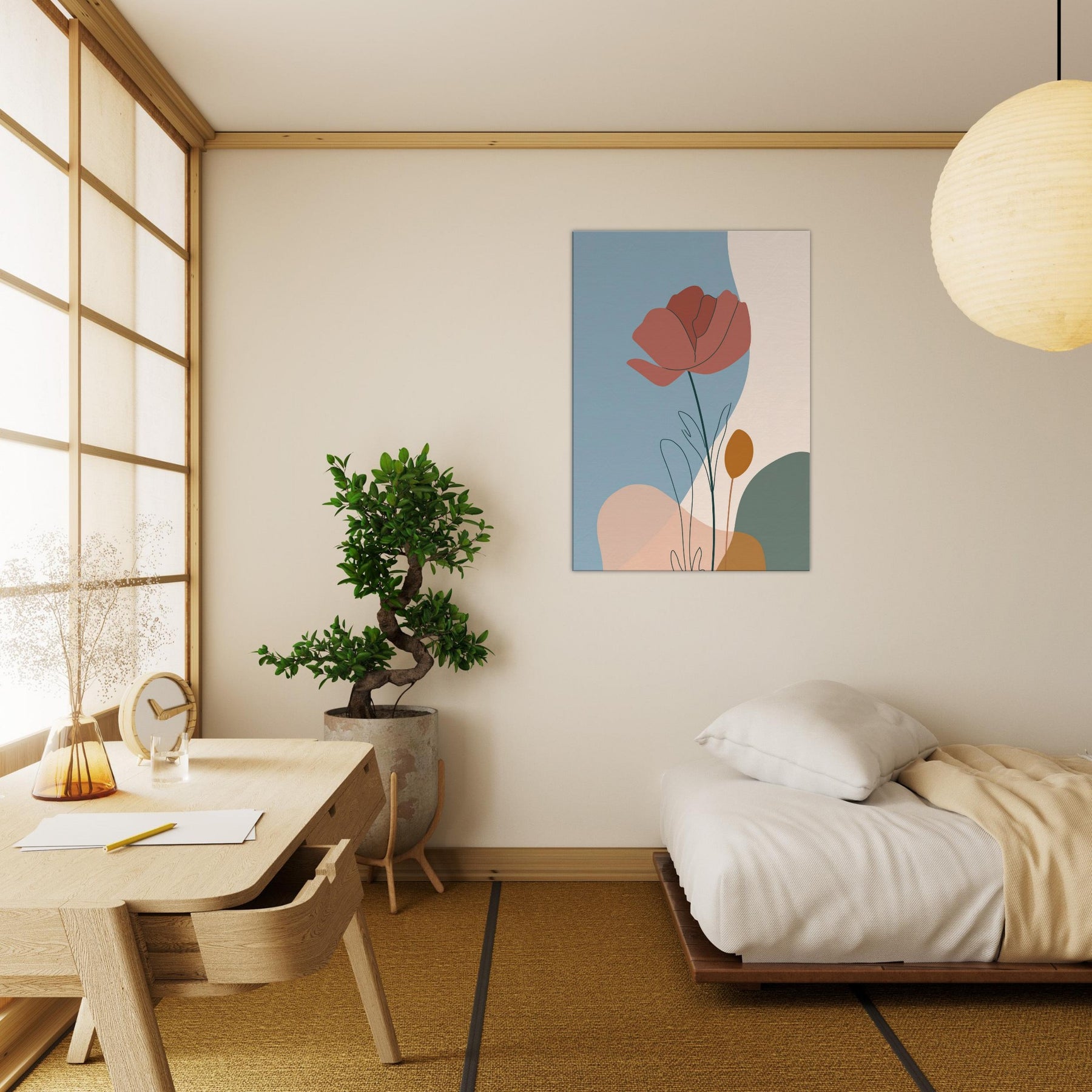 Ranunculus unfurls in a breath of calm, distilled to essential lines and soft fields of color. This minimalist study invites a slow, luminous mood sand, sage, and sea blue mingling with a warm blossom’s blush. The delicate stem threads a quiet tension through the composition, while negative space becomes a gentle window for reflection. Placed in a living room or bedroom, it elevates everyday living with serenity, turning walls into a contemplative retreat where the Primary Subject Ranunculus reminds us to pause and breathe.