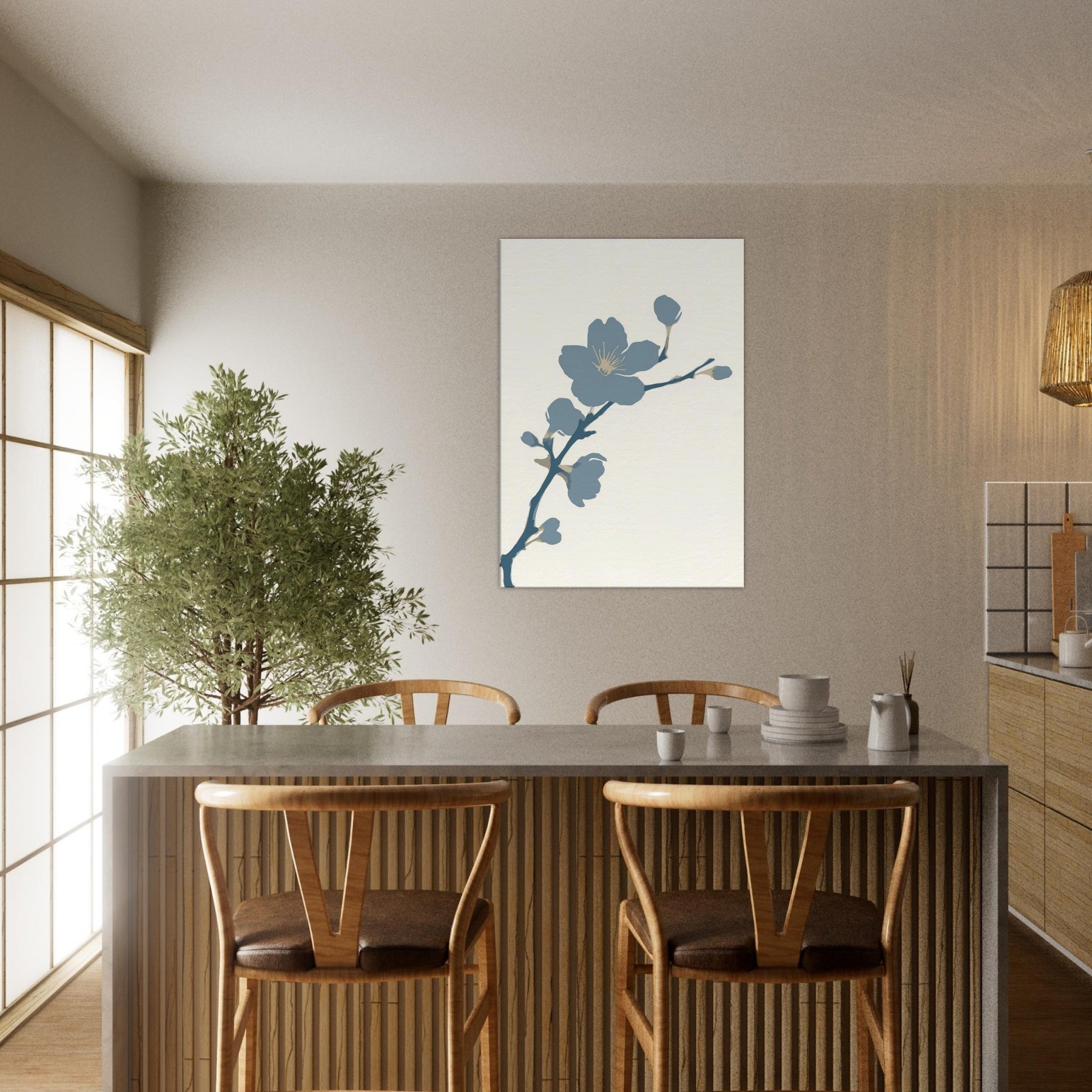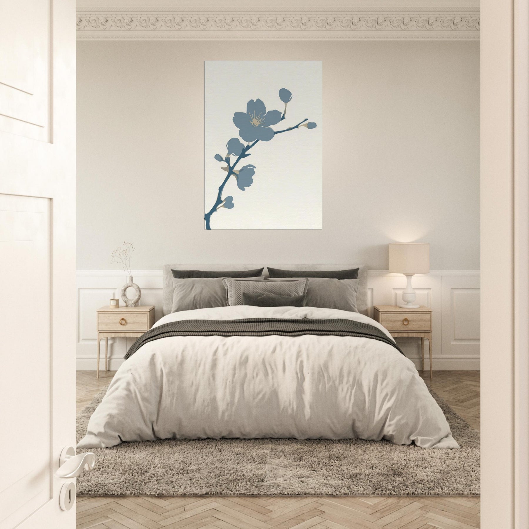 Invite a breath of calm into any room with the Sakura Branch print. The soft blue blossoms trace a quiet arc across a neutral field, each stroke evoking a moment of stillness before spring. The gentle contrast of tea toned stems against ivory creates a sensory lull airy, contemplative, and endlessly adaptable. Hung alone or in a staggered display, it elevates living spaces by slowing time, inviting reflection, and harmonizing with warm woods and pale textiles. A serene centerpiece for everyday serenity: Sakura Branch.