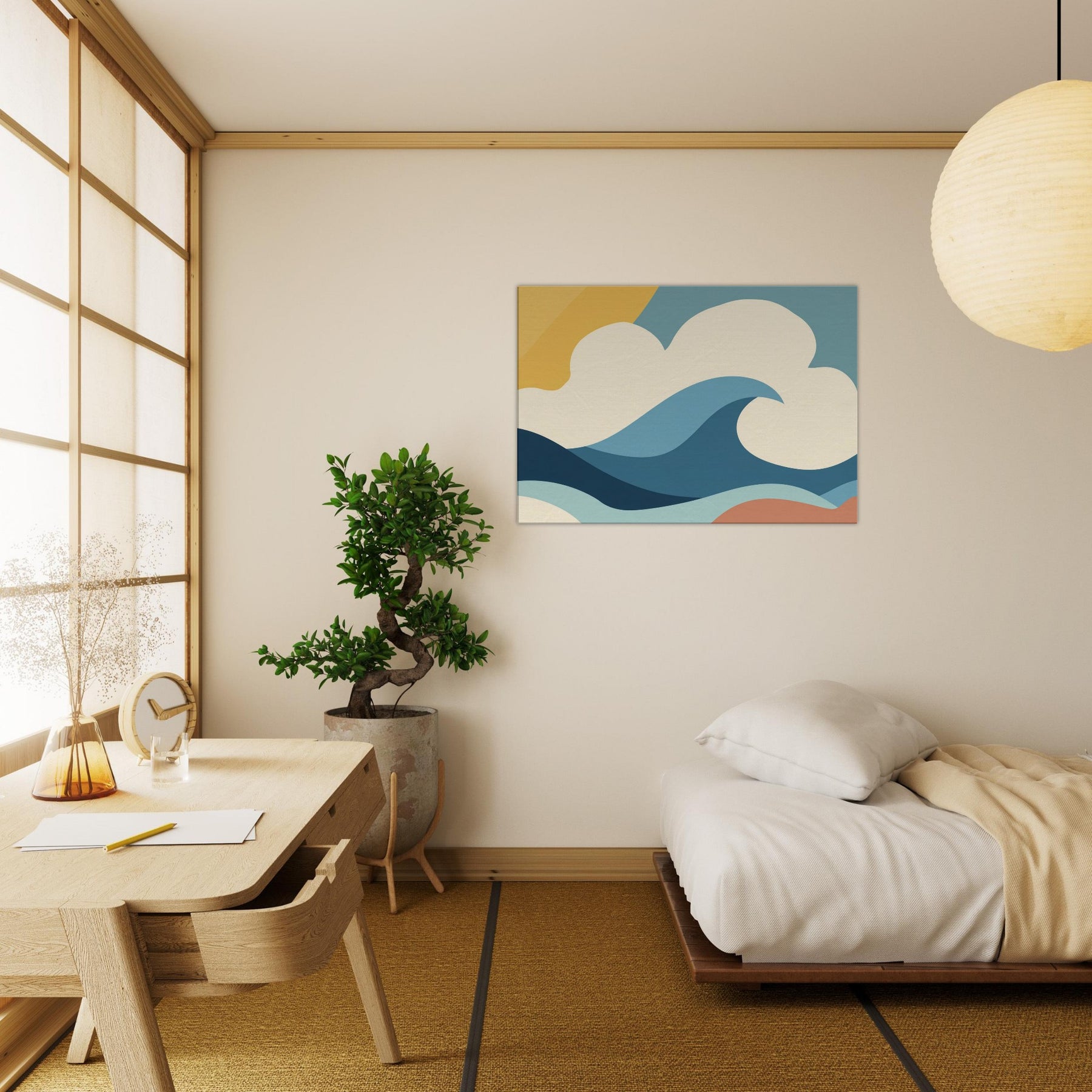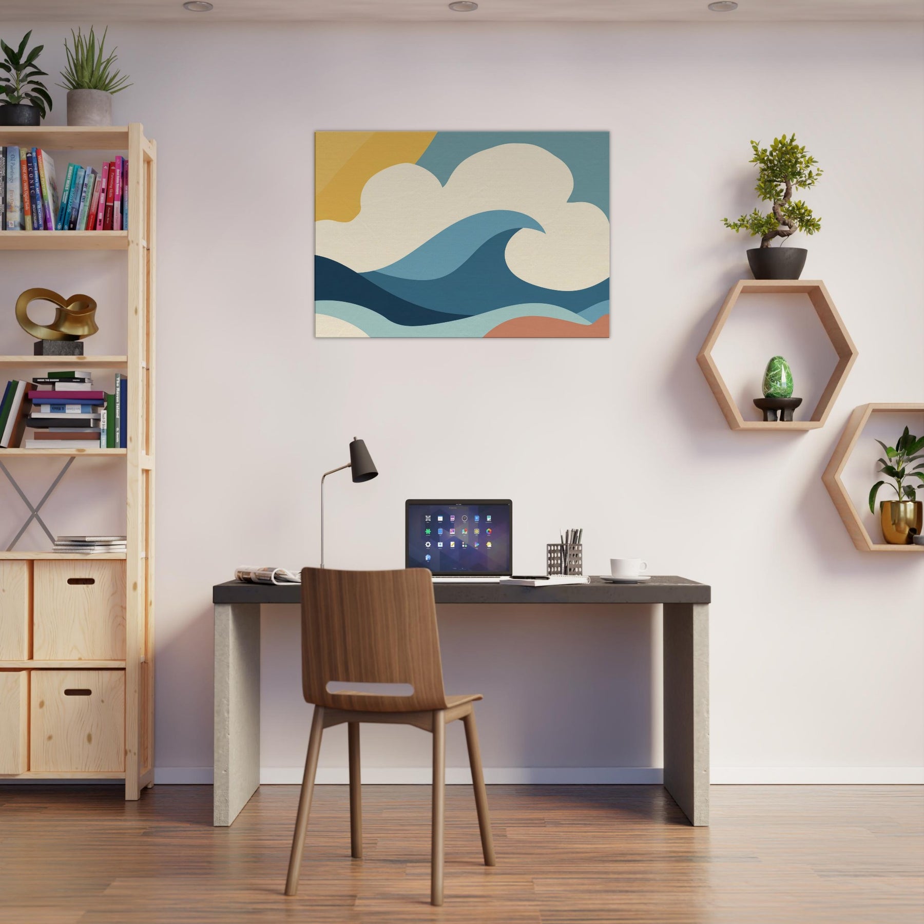 Stormy Sea unfolds through soft geometry and restrained palette, inviting a hush into the room. The sea's swell becomes a flowing silhouette, a calm rebellion against clutter, with layered blues curling beneath a pale sky. In this minimalist composition, the Primary Subject Stormy Sea breathes as a presence in space, not a distraction an atmosphere of wind, salt, and distant thunder. Hang it in a living room or study to foster focus, evoke memory of shoreline walks, and grant the senses a quiet, expansive horizon.
