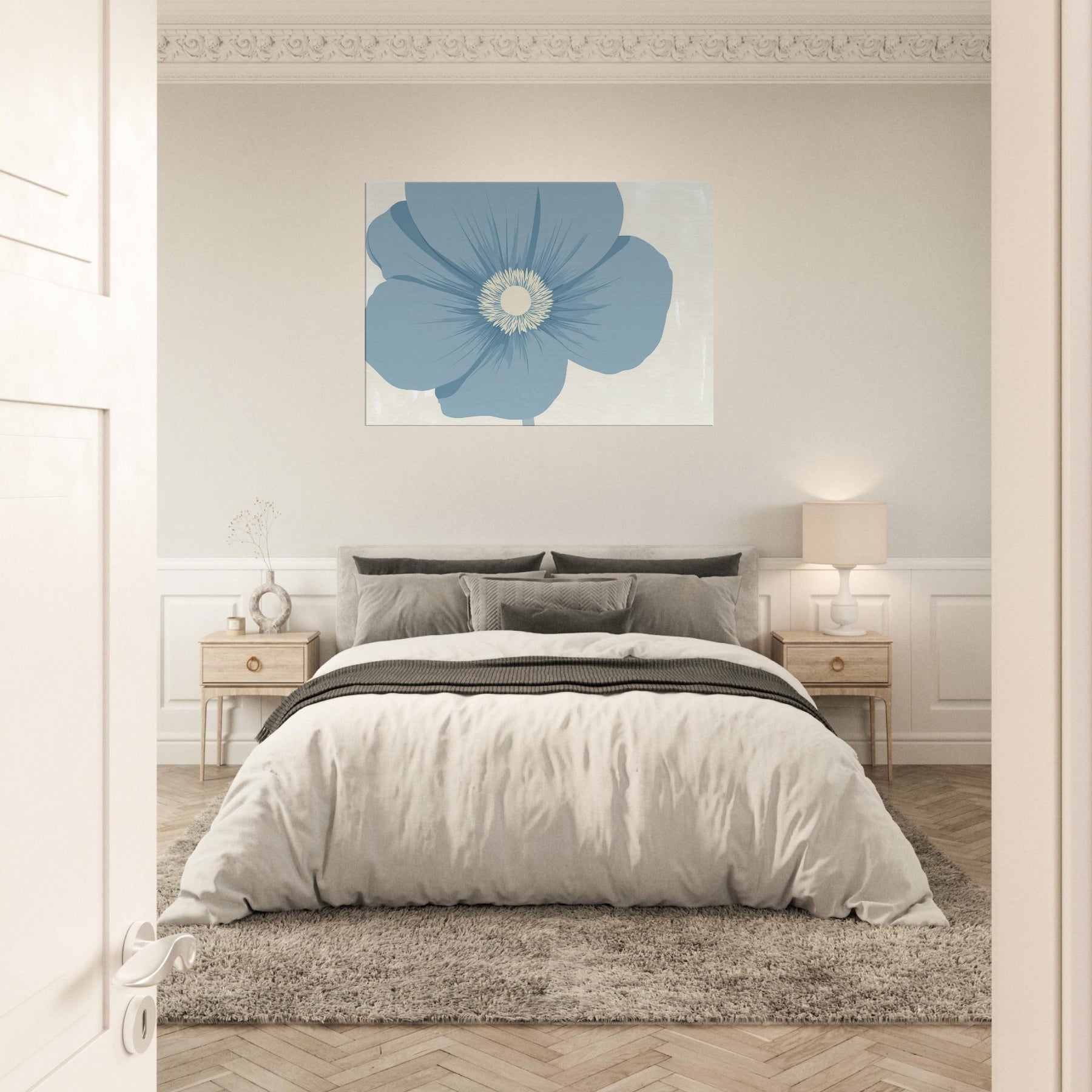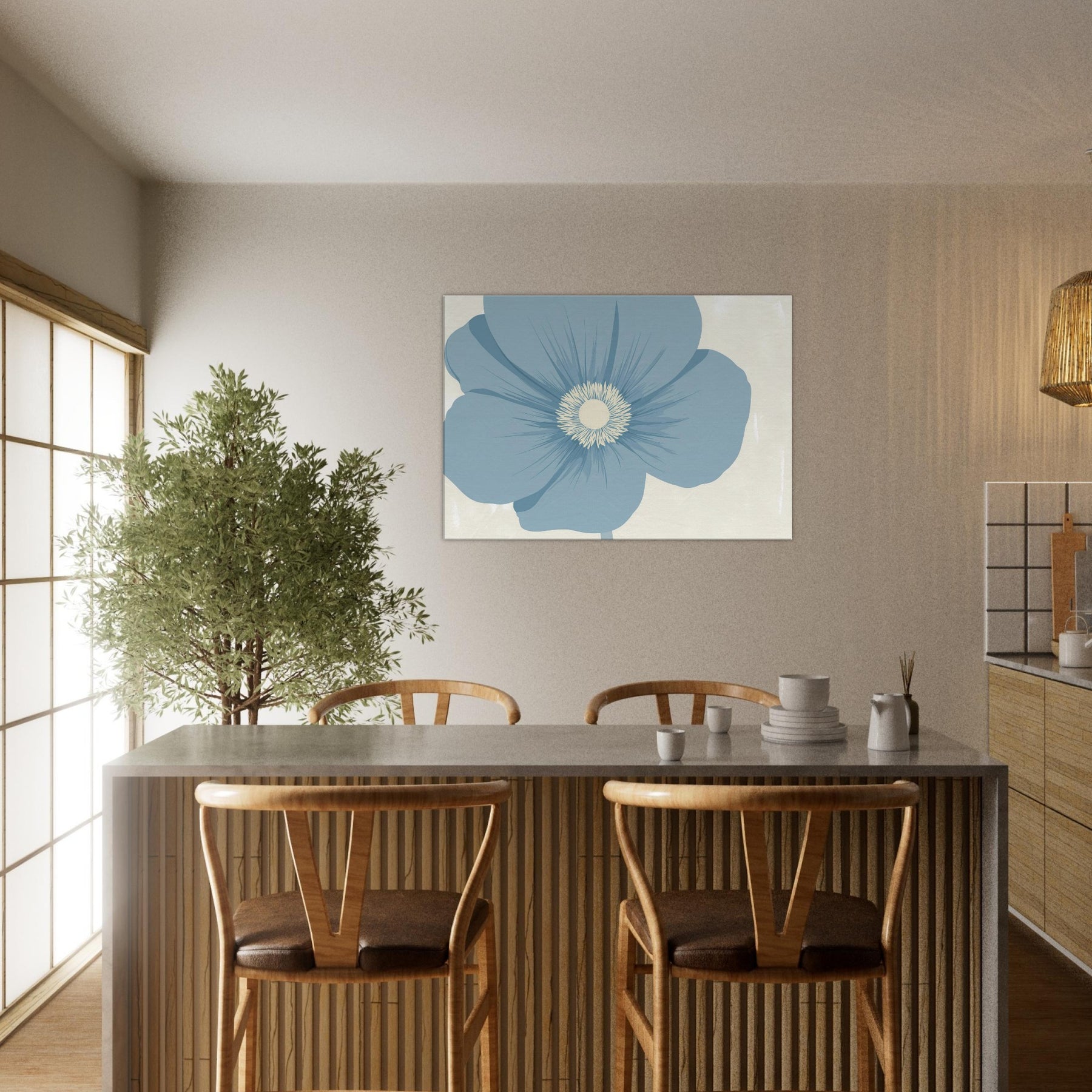 Soft, serene, and quietly luminous, this minimalist study of Anemone blooms invites calm into any room. The cool blue petals radiate from a pale center, like a whisper of wind through a quiet garden, creating a sense of spacious air and contemplative light. Perfect for a living room, hallway, or bedroom, it pairs effortlessly with neutral textures and clean lines, turning walls into a subtle stage for everyday moments of pause and renewal.