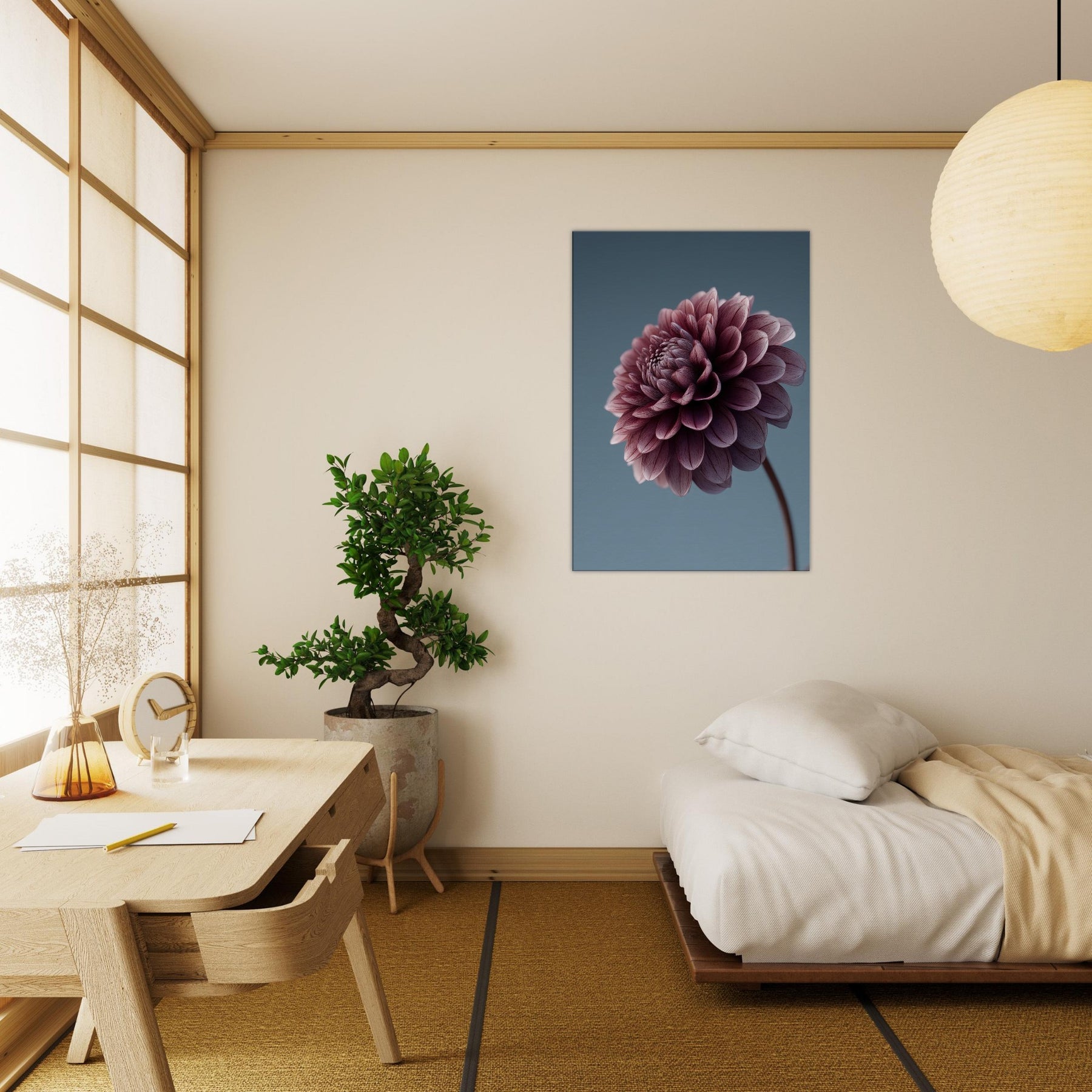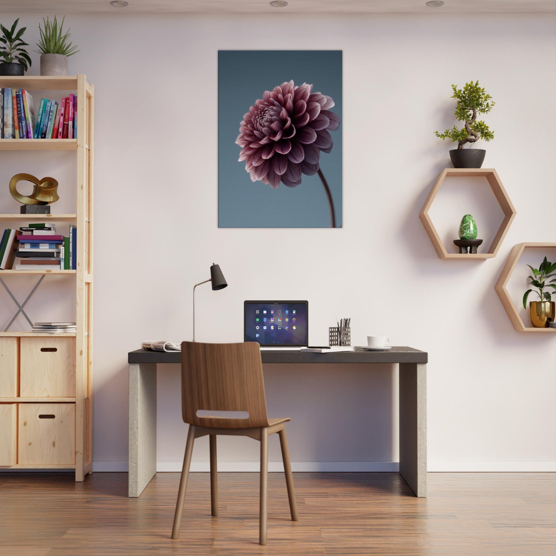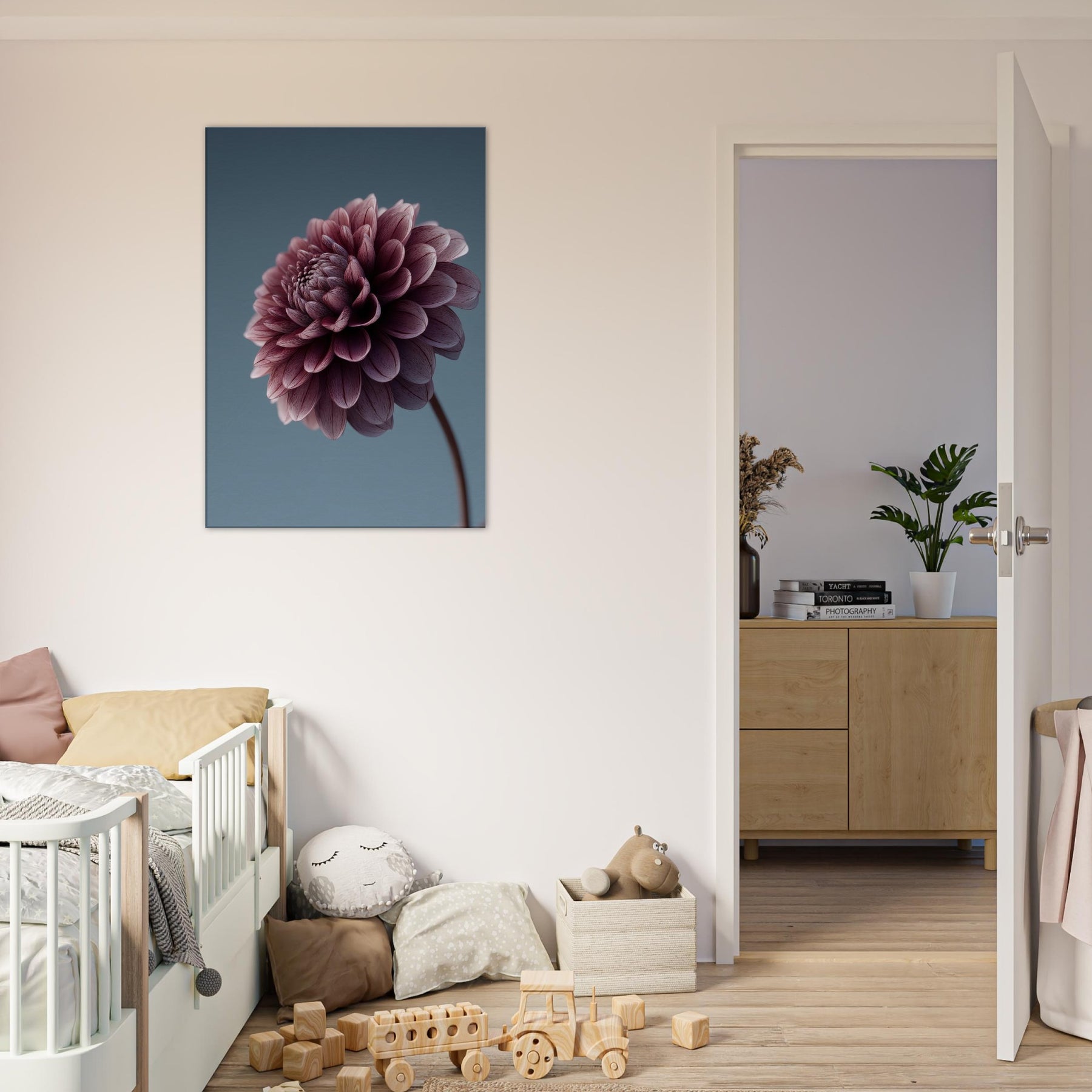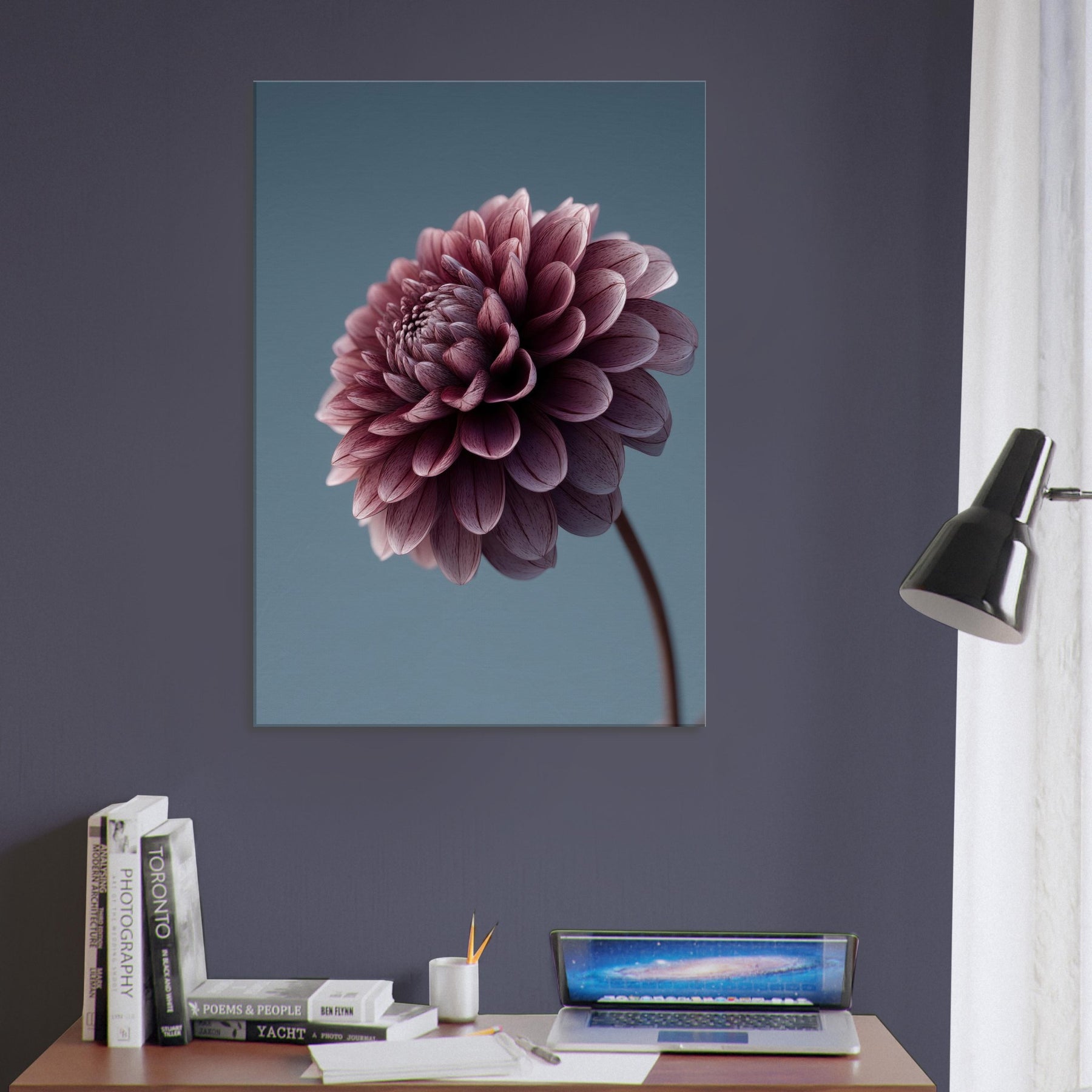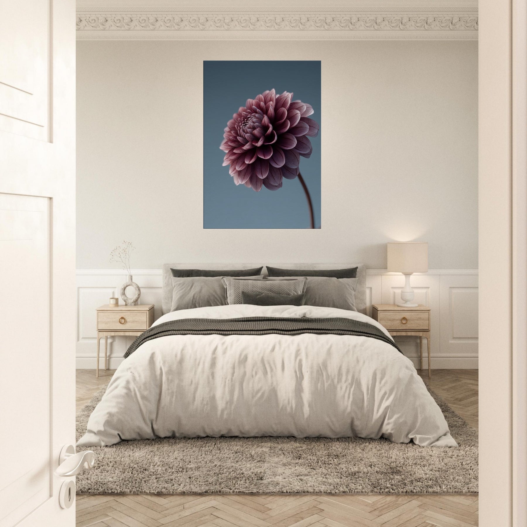 An intimate study of the Dahlia, this surreal composition invites a dreamlike stillness into the room. Petals coil in soft, ceremonious spirals, blush and mauve edges catching the light as if memory were blooming anew. The image dissolves boundaries between nature and imagination, turning a single flower into a portal for mood and meaning. Hung in a living space, it lends a calm, seductive atmosphere echoes of twilight, quiet wonder, and a touch of the fantastical that deepens conversation and rests the eye.