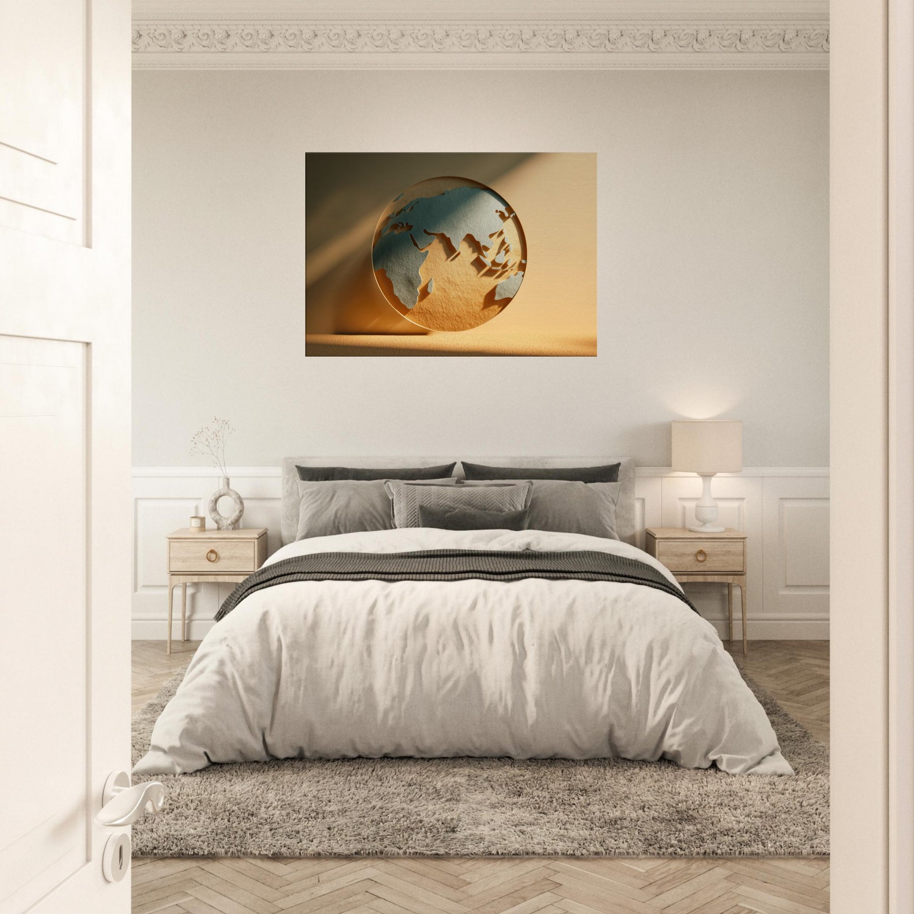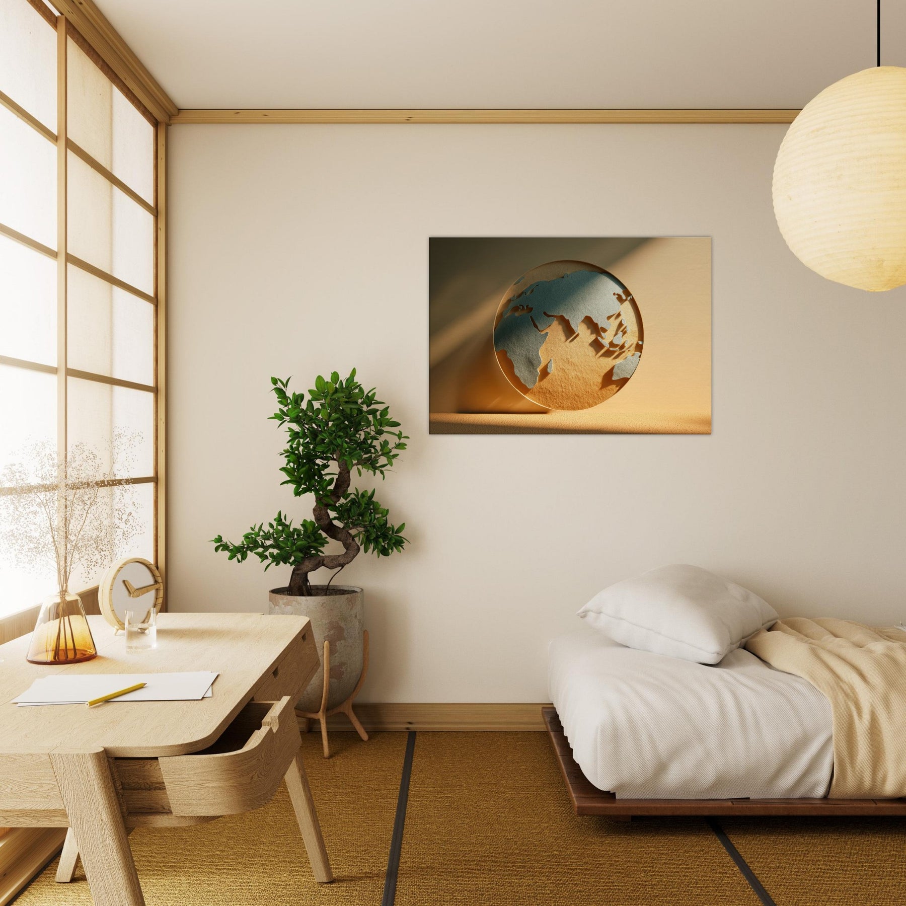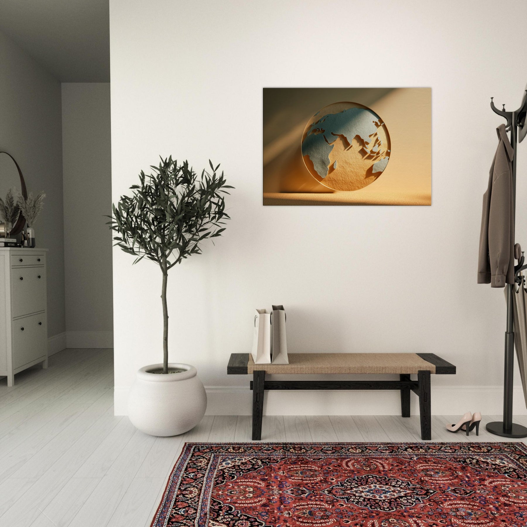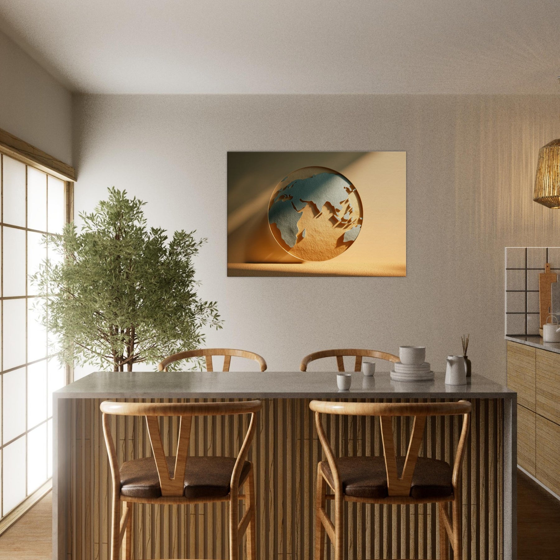 Globe Silhouette drifts between dream and geography, a surreal cutaway inviting the eye to wander. Soft, tactile textures catch light, casting warm shadows that ripple across walls, like continents waking at dawn. This piece breathes stillness into a room, a quiet counterpoint to daily motion, pairing the weight of travel with playful, imaginative geometry. Placed above a sofa or desk, it invites conversation and curiosity, turning everyday space into a tranquil, globally minded sanctuary.