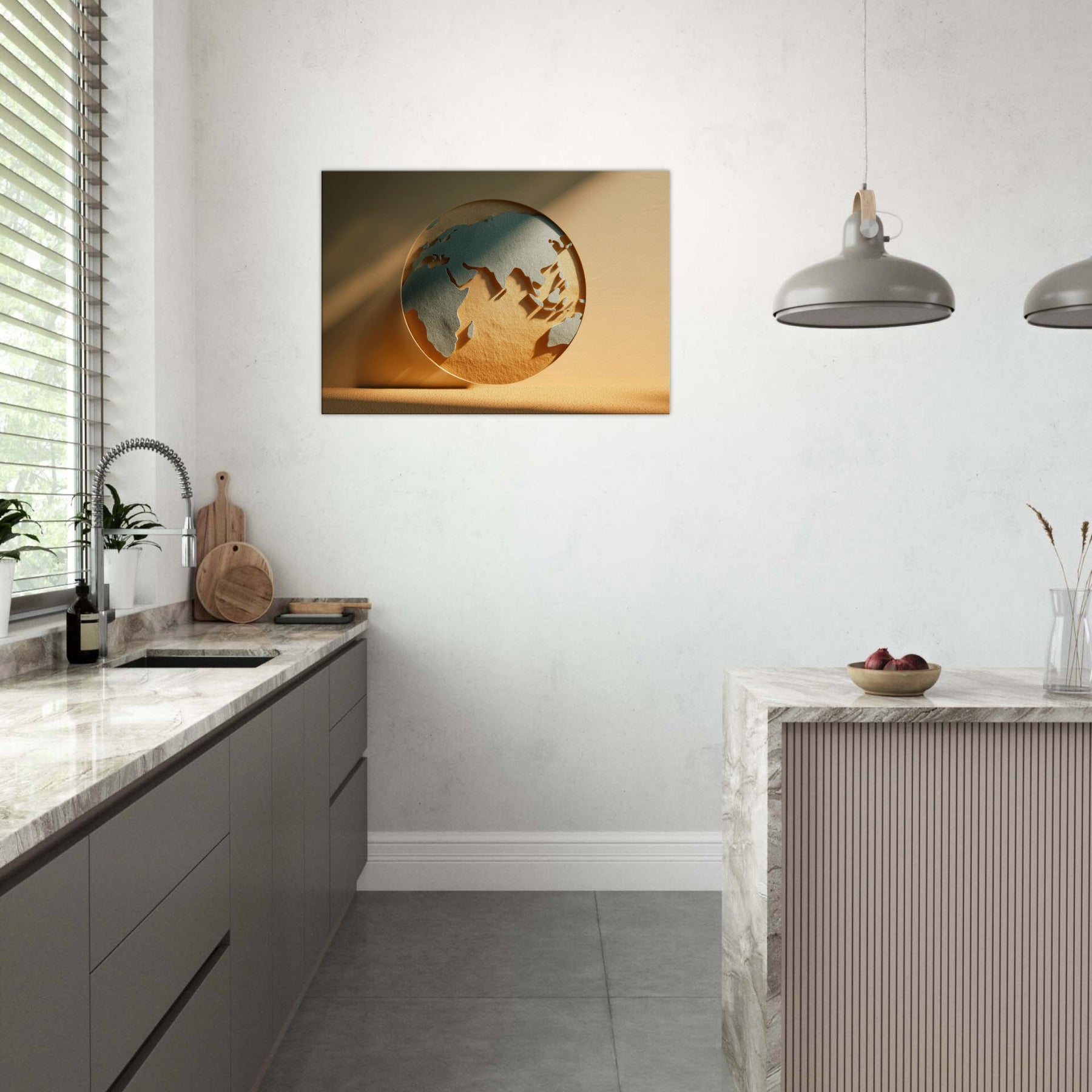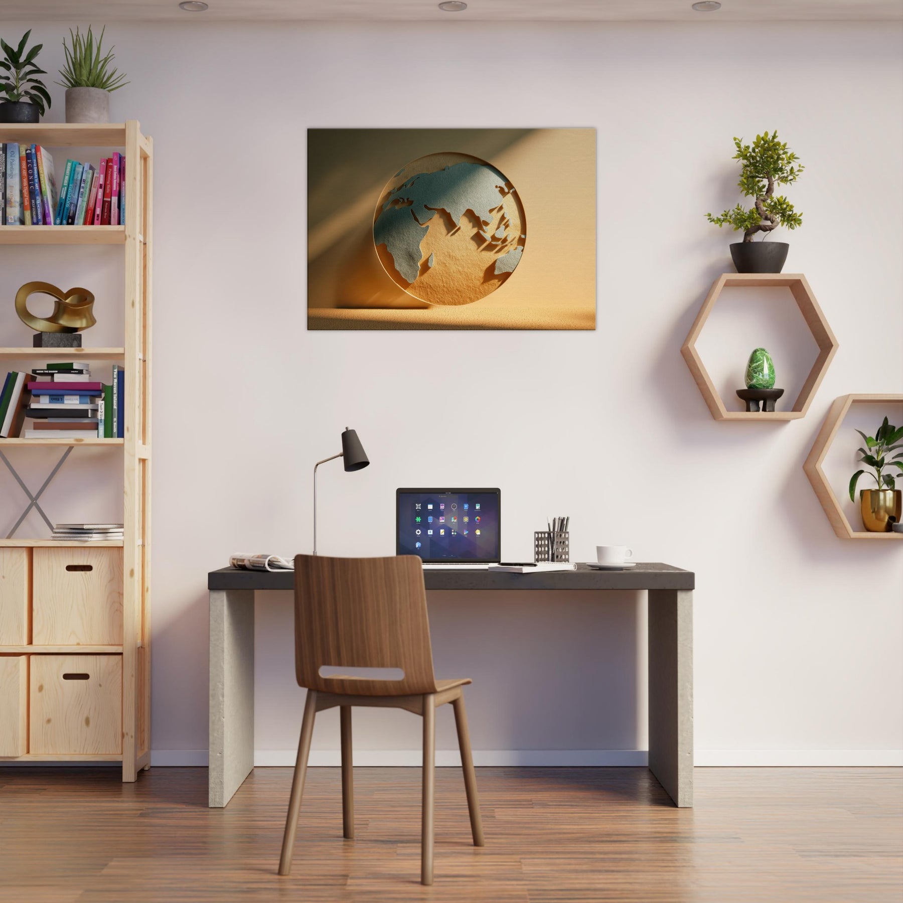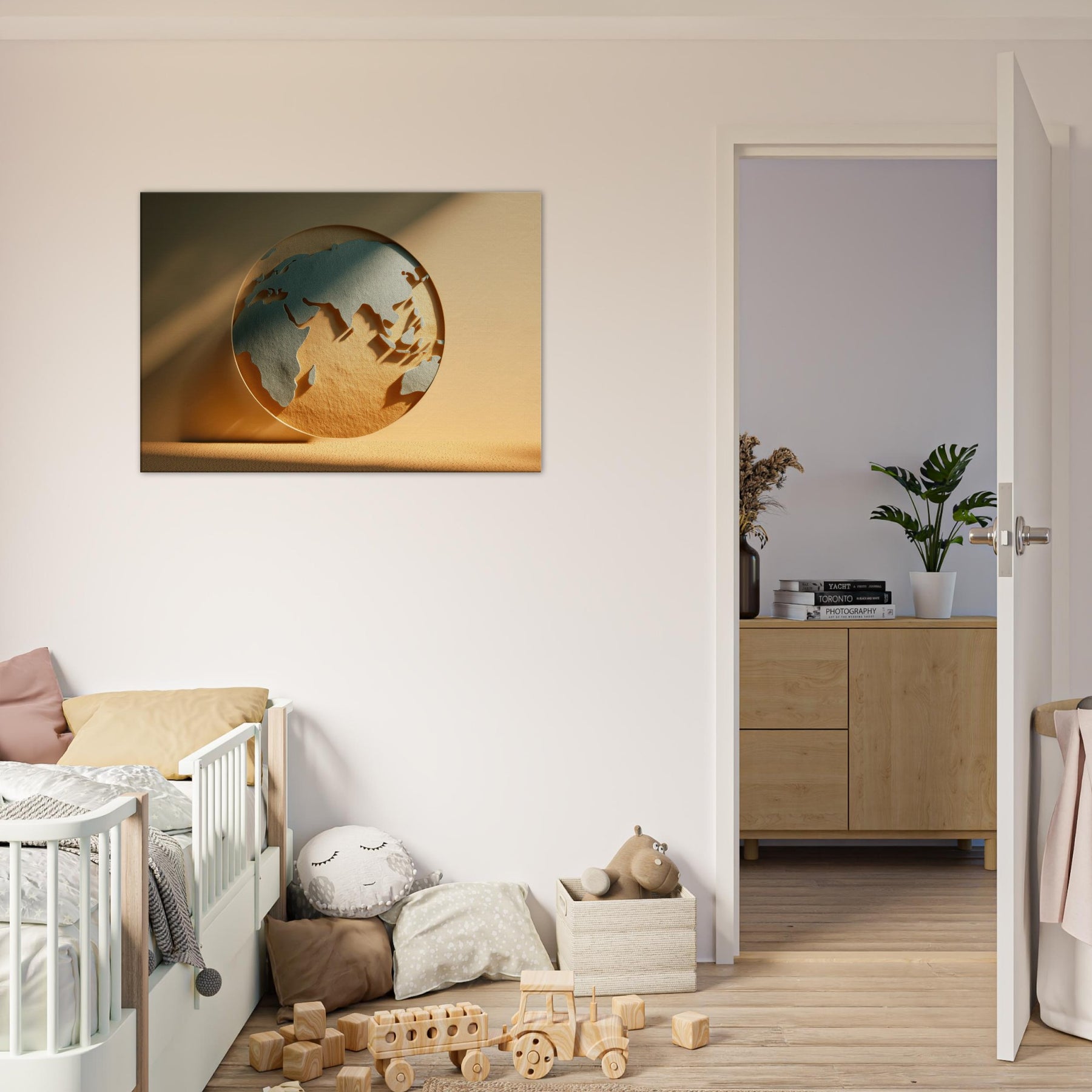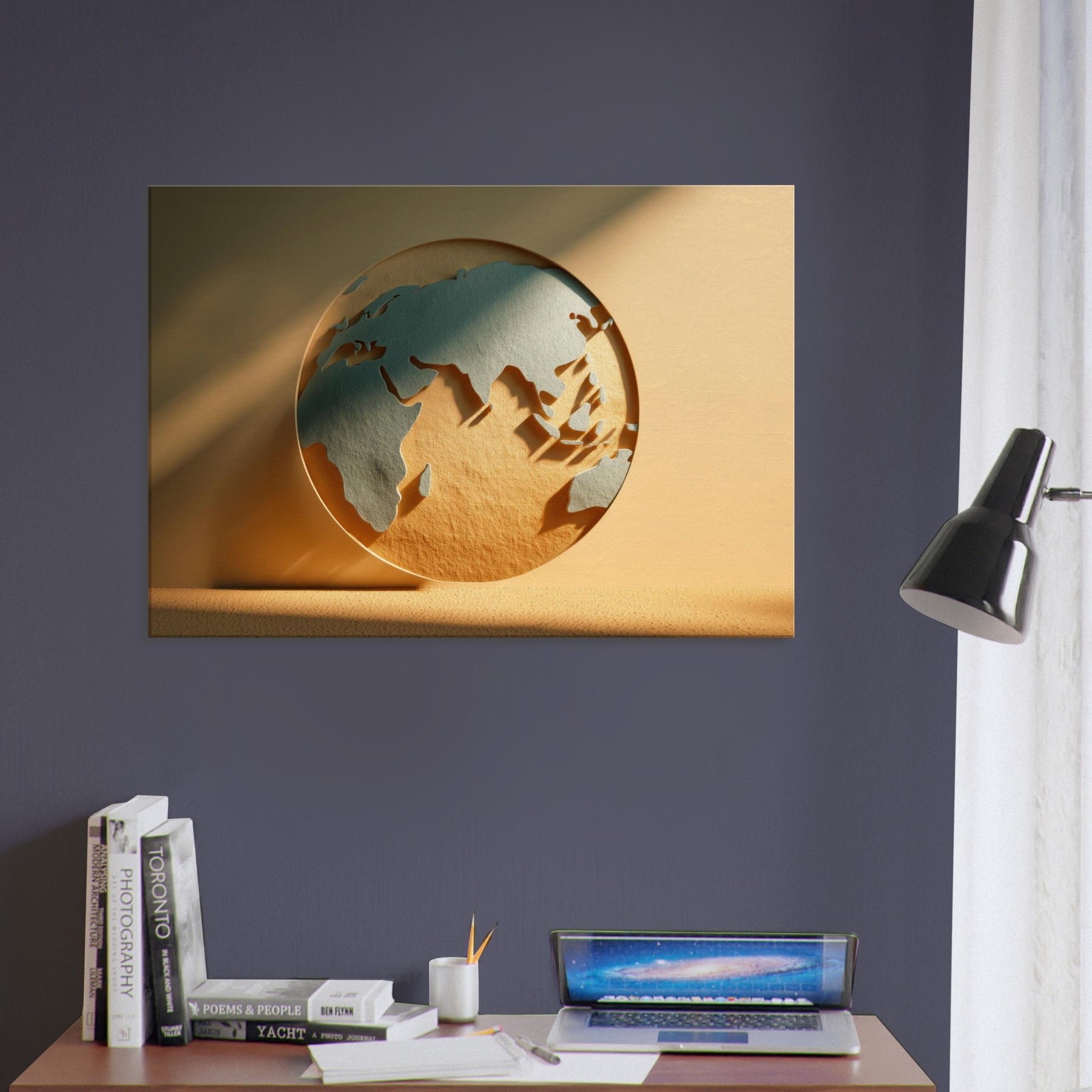 Globe Silhouette drifts between dream and geography, a surreal cutaway inviting the eye to wander. Soft, tactile textures catch light, casting warm shadows that ripple across walls, like continents waking at dawn. This piece breathes stillness into a room, a quiet counterpoint to daily motion, pairing the weight of travel with playful, imaginative geometry. Placed above a sofa or desk, it invites conversation and curiosity, turning everyday space into a tranquil, globally minded sanctuary.
