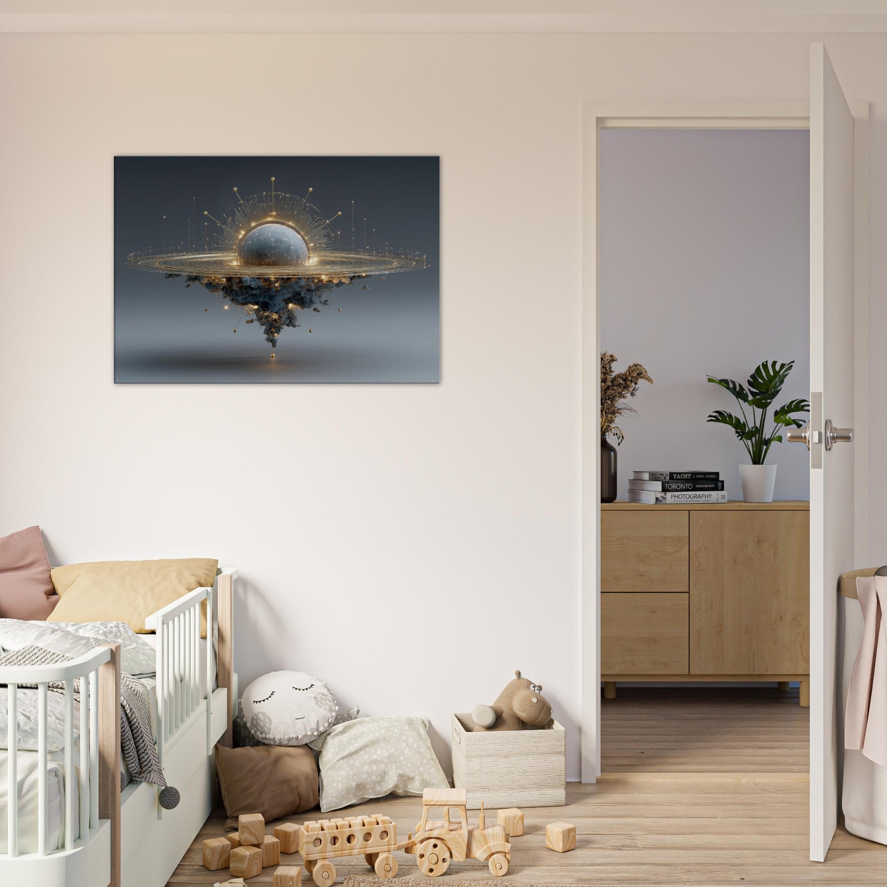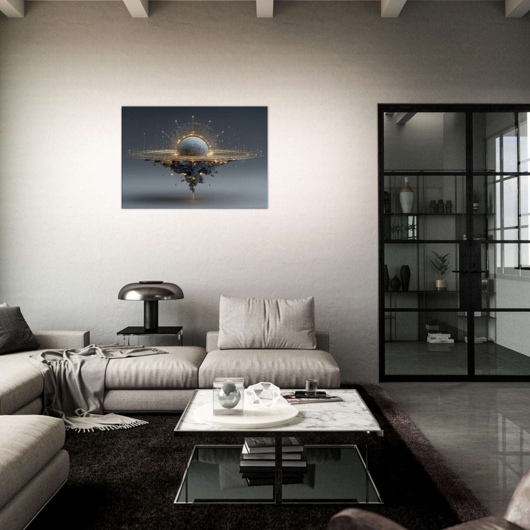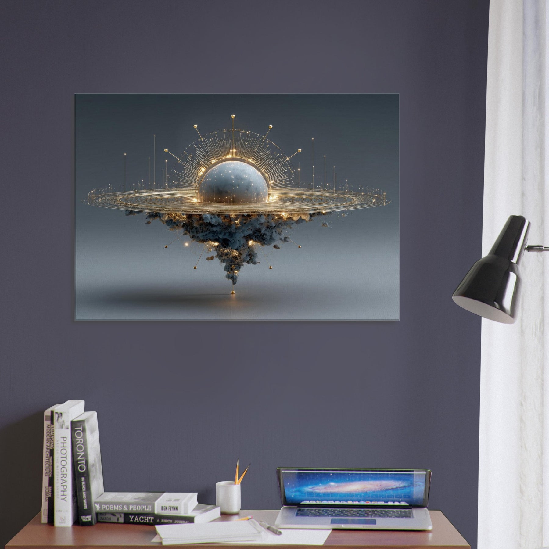 Zodiac Constellation (Minimal Line) unfolds as a moonlit allegory, a delicate arc of light hovering above a cloud of unseen gravity. In the center, a radiant sphere glows with inner storm and starlight, while a lattice of golden lines traces patient rings around it. The piece breathes a quiet, otherworldly mood that softens concrete walls and invites long, contemplative pauses. Perfect for a living room or study, it lends mystery, balance, and a celestial touch to everyday rituals.