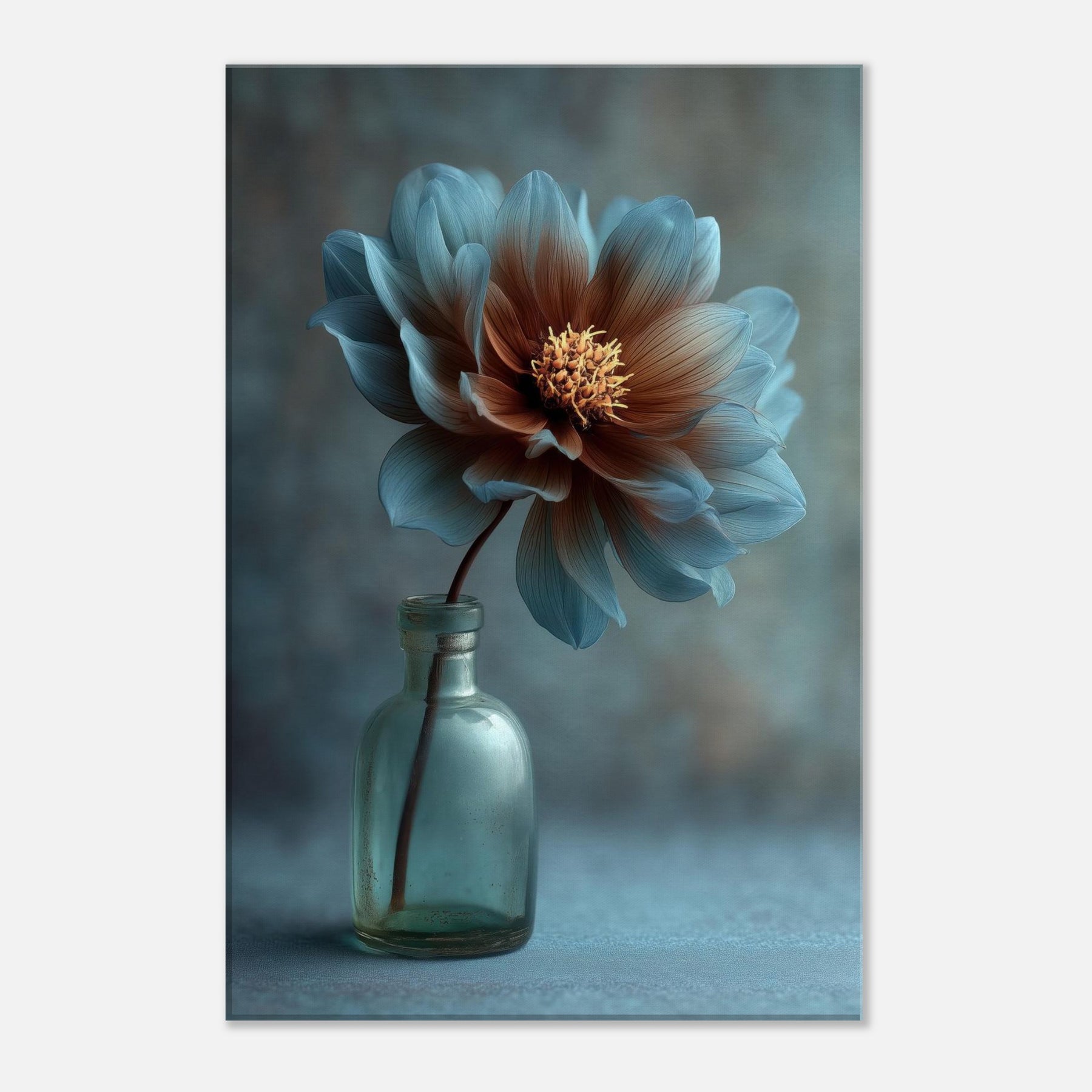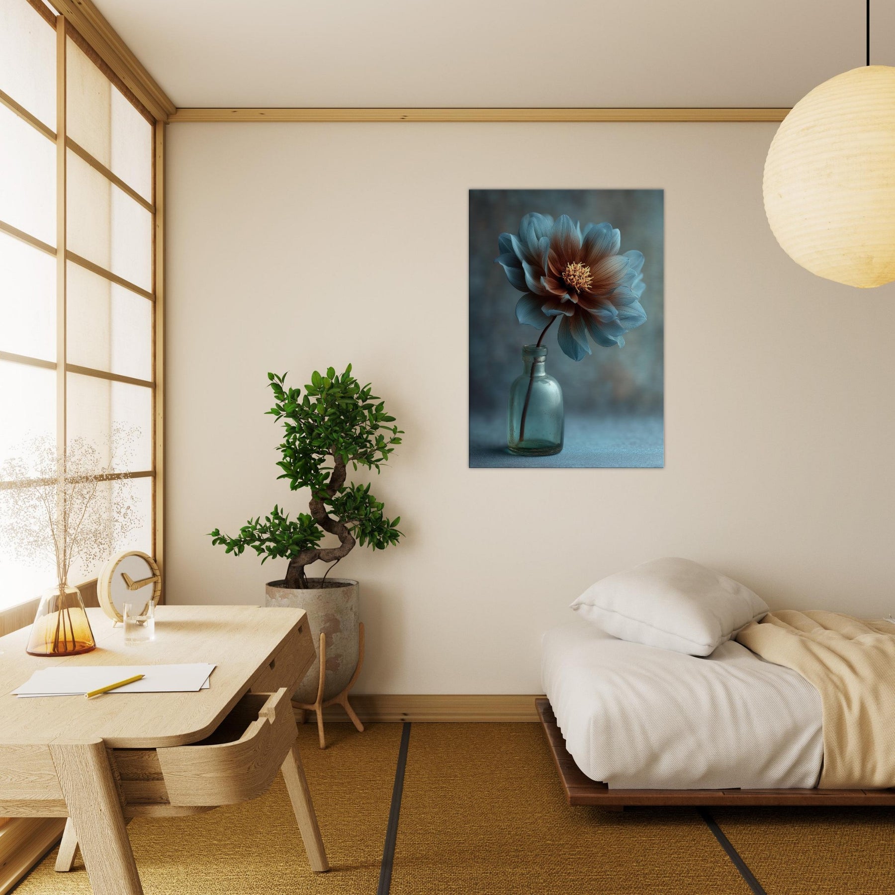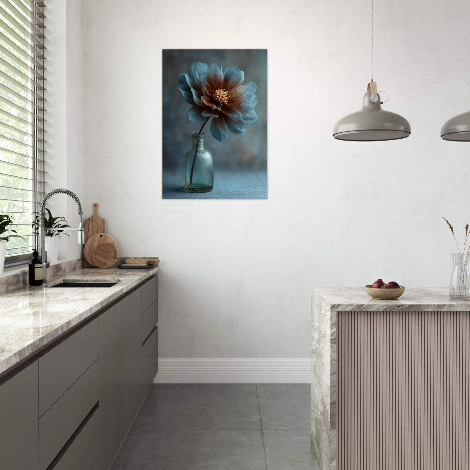 Single Flower in Vase blooms within a glass bottle, a dreamlike presence that shifts light and mood rather than form. Surrealized by teal tones and copper highlights, the petals curl like a whispered secret, inviting you to linger. The scene radiates calm, a soft glow that enhances a living room with intimate texture and quiet drama. It turns daily space into a contemplative refuge, where emotion and memory unfurl with every glance, and ordinary corners become portals to wonder.