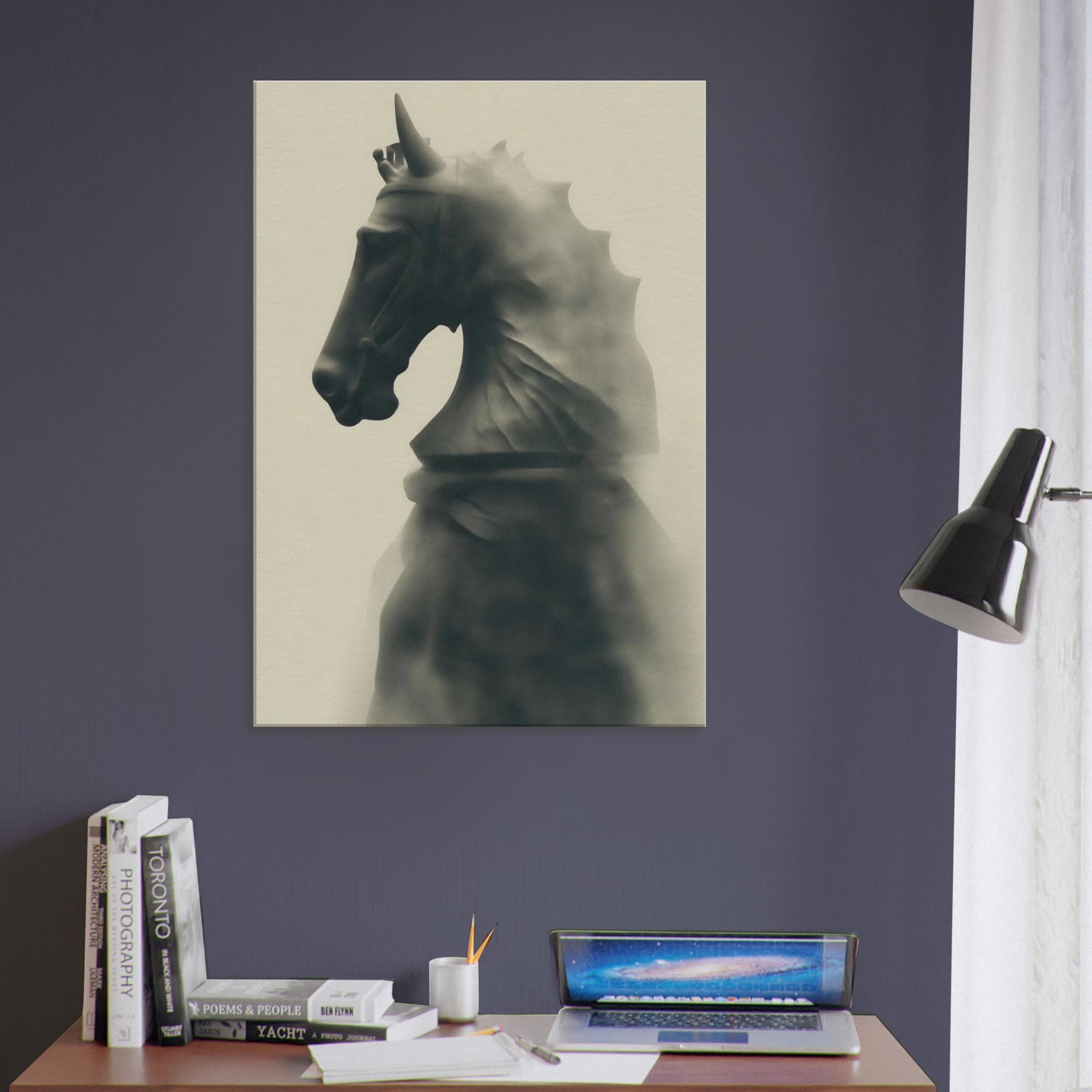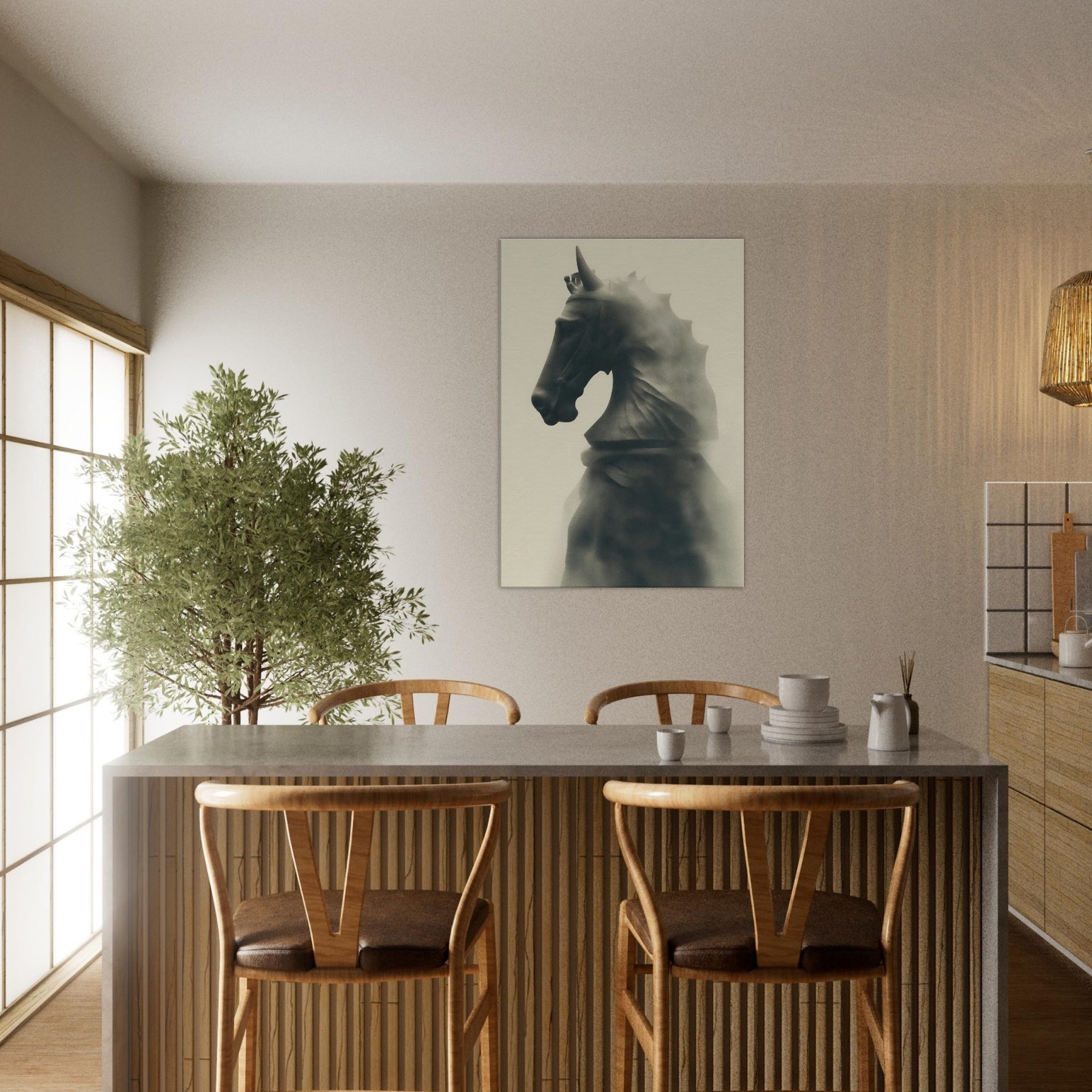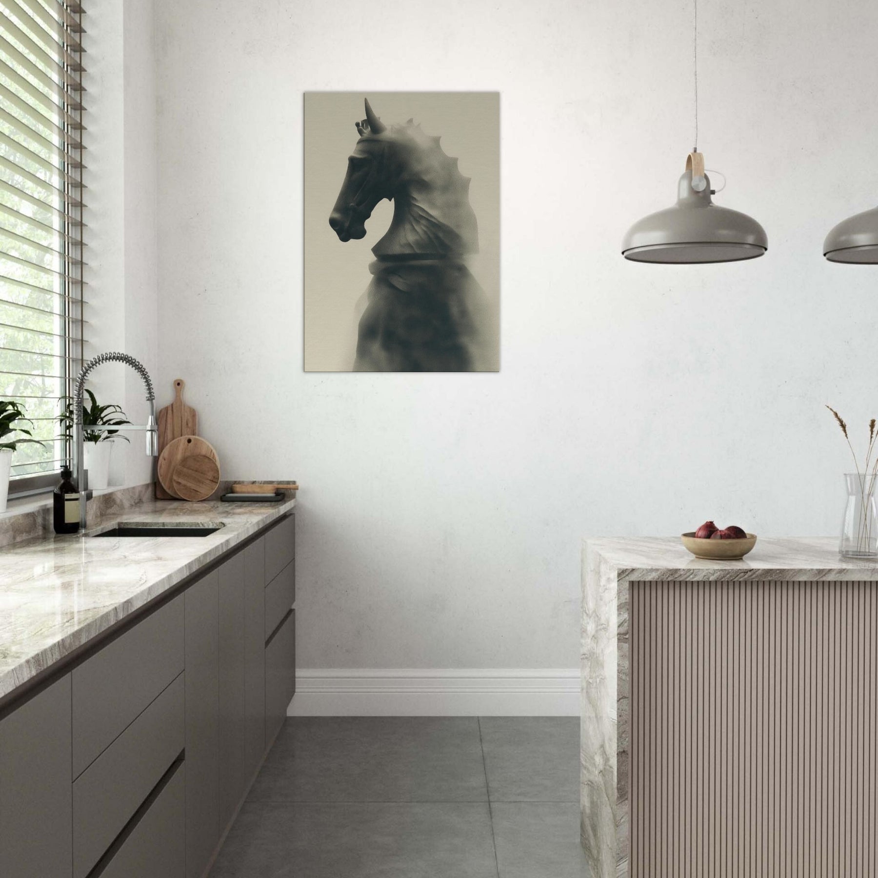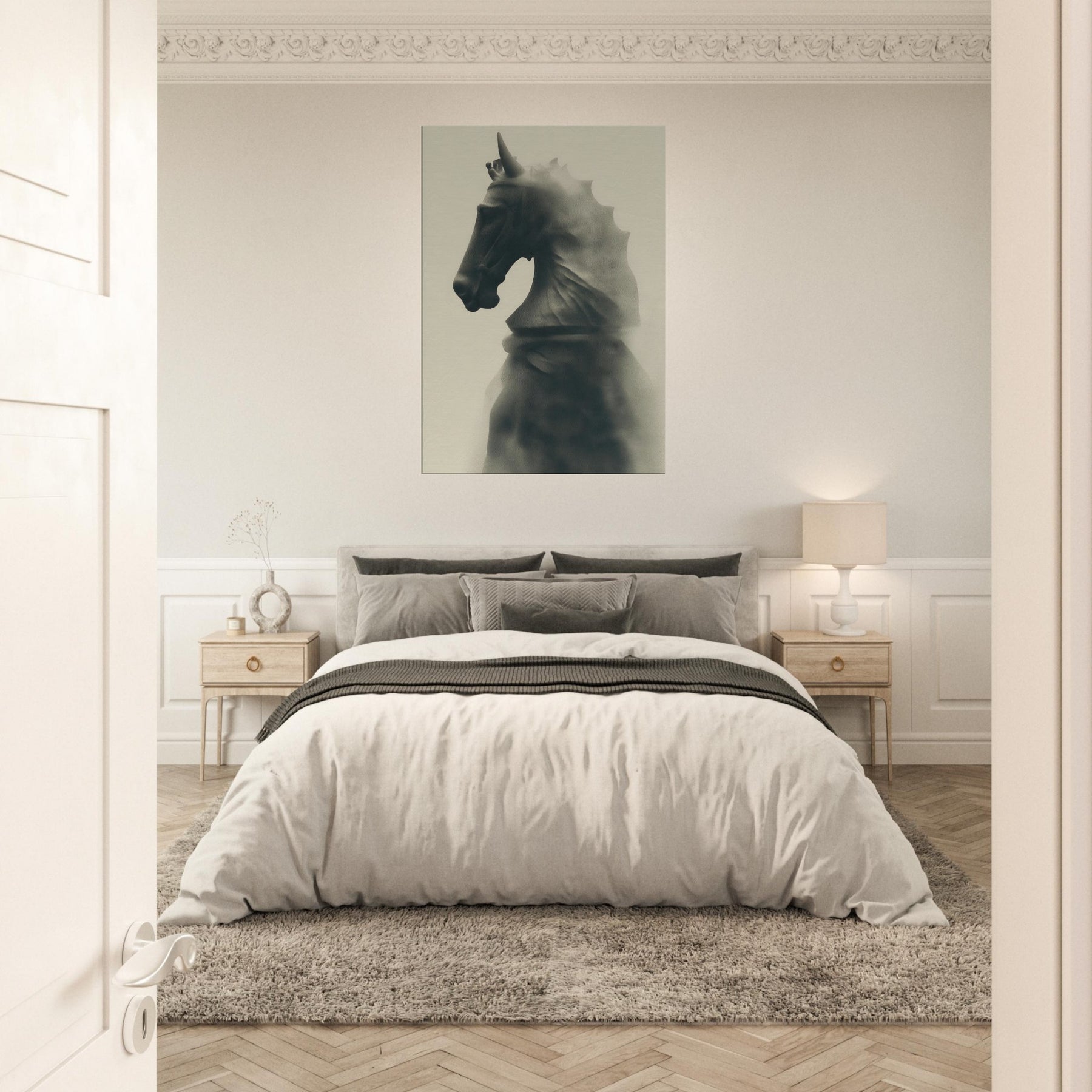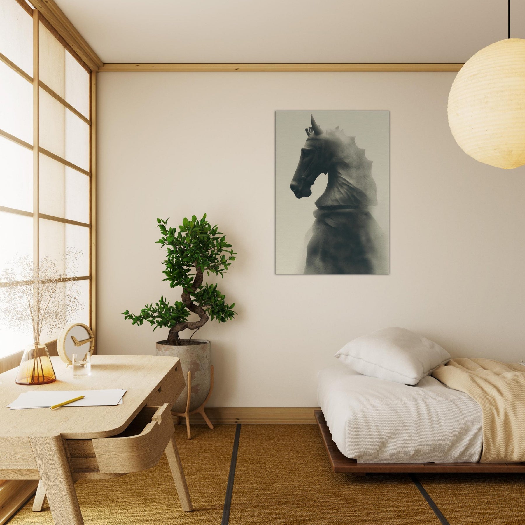 From a misty veil emerges a Chess Knight, its noble silhouette softened by dreamlike fog. This surreal study folds strategy into atmosphere, inviting quiet reflection as light dissolves into shadow. The muted tones and hazy edges render space with a timeless calm, perfect for a living room, library, or foyer. The Chess Knight anchors conversations with grace, while the ethereal ambience wraps the room in a contemplative serenity that evolves with the day.