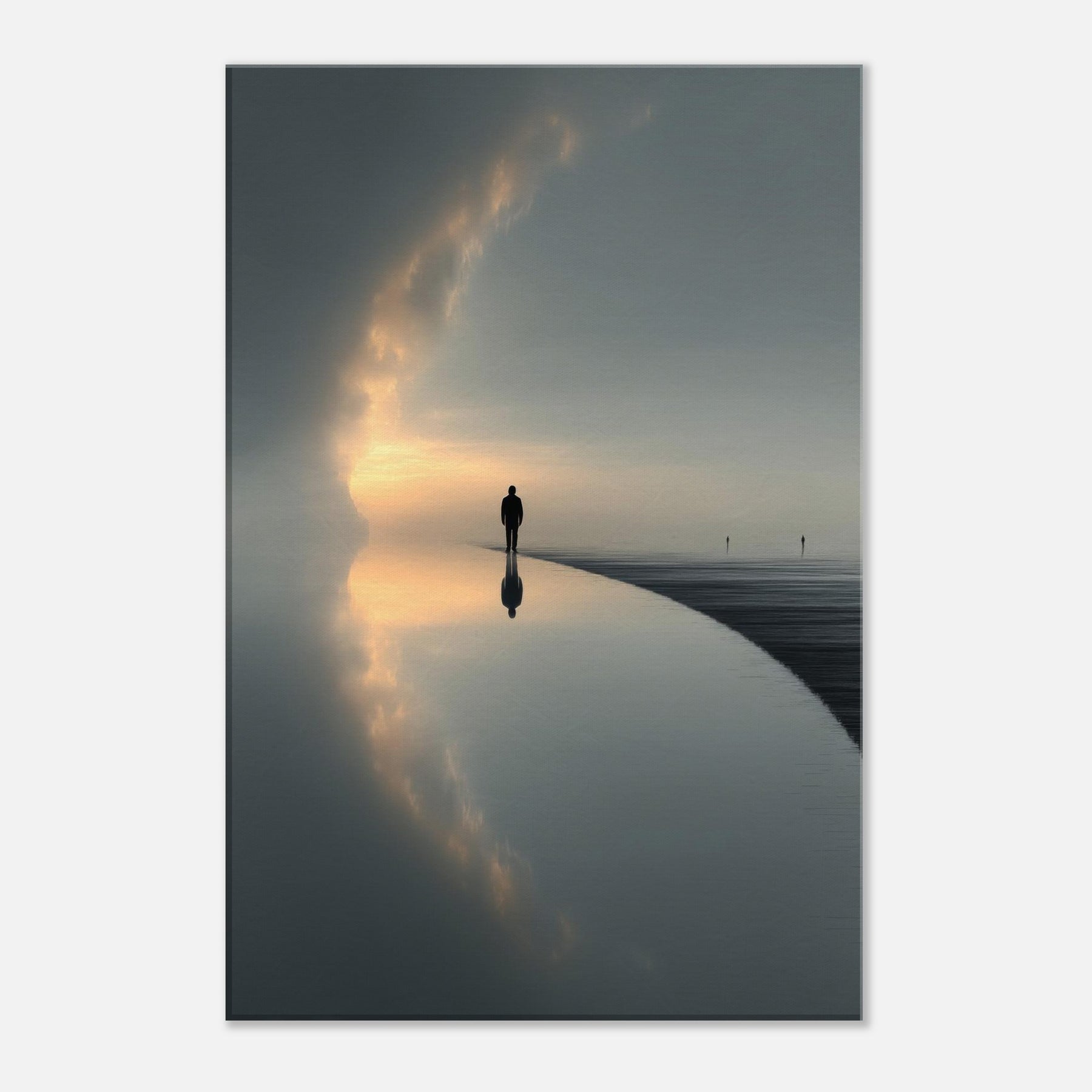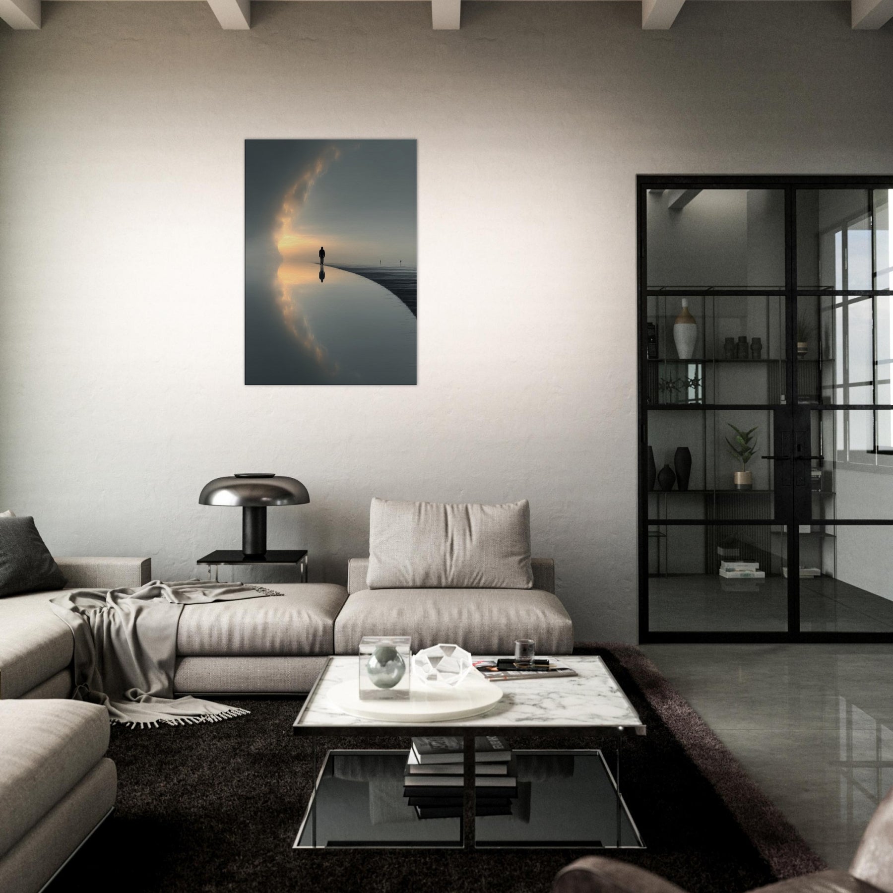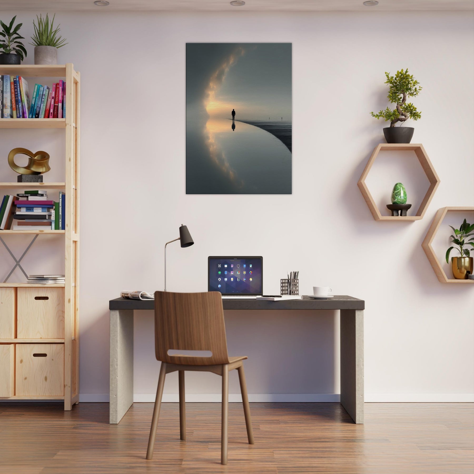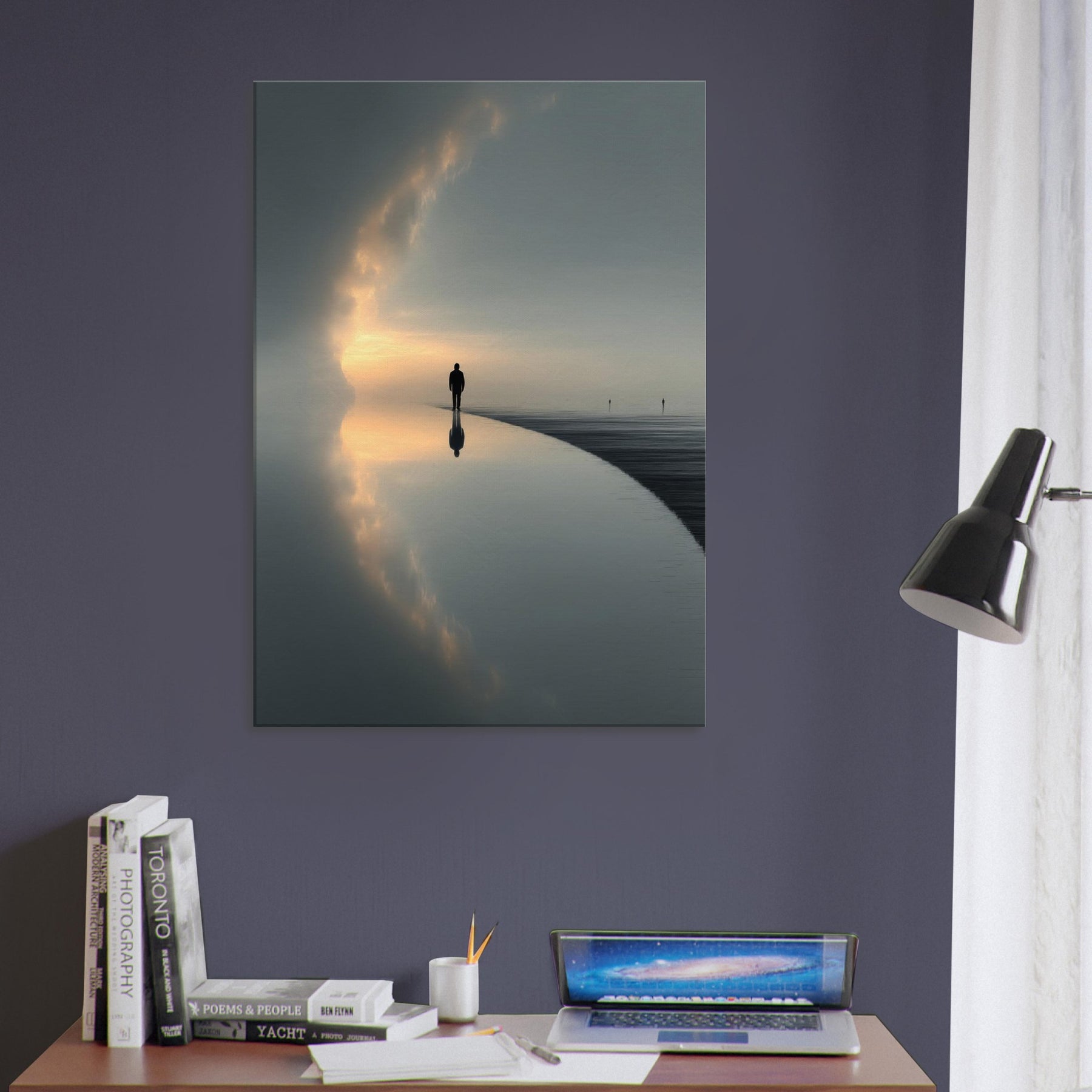 Focus on the Primary Subject, a Vinyl Record, standing at the edge of a glassy horizon where daybreak stretches into song. This surreal scene blends tactile memory with liquid geometry, turning sound into light and memory into . The atmosphere hums with quiet mystery, inviting slower moments, intimate corners, and conversations that drift beyond the room. Printed on fine gallery canvas with a luminous finish, it elevates a living space with elegance, texture, and a whisper of timeless rhythm.