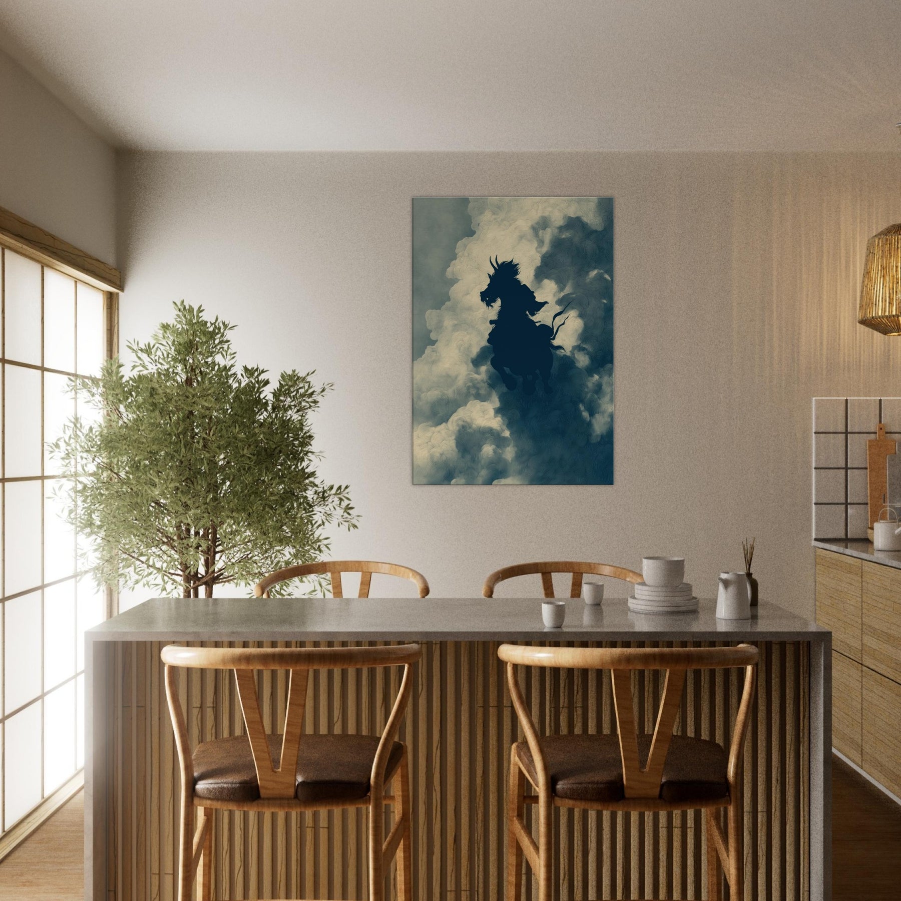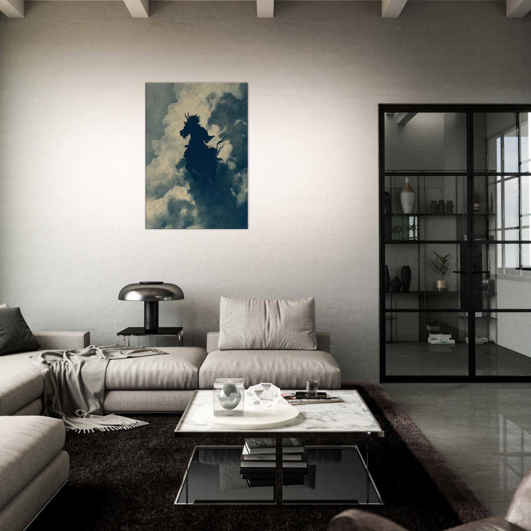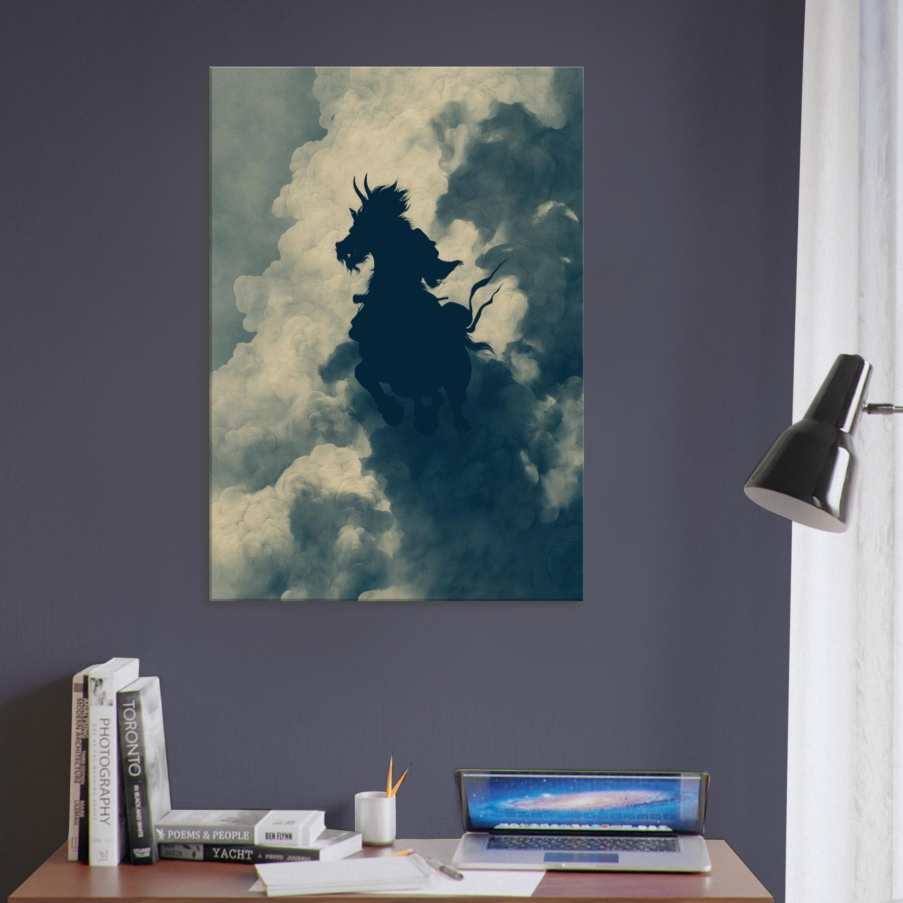 Suspended between cloud and midnight, this surreal invites the eye to follow the Qilin as it strides through a dreamscape of lithe vapors. The creature's horn gleams like a distant star, embodying virtue and quiet strength. Rich indigo fog wraps your walls in a soft, cool glow, turning hallways into a tranquil shrine. Hang this piece in a living room or study to slow the day, invite contemplation, and let the imagination roam beyond ordinary boundaries.