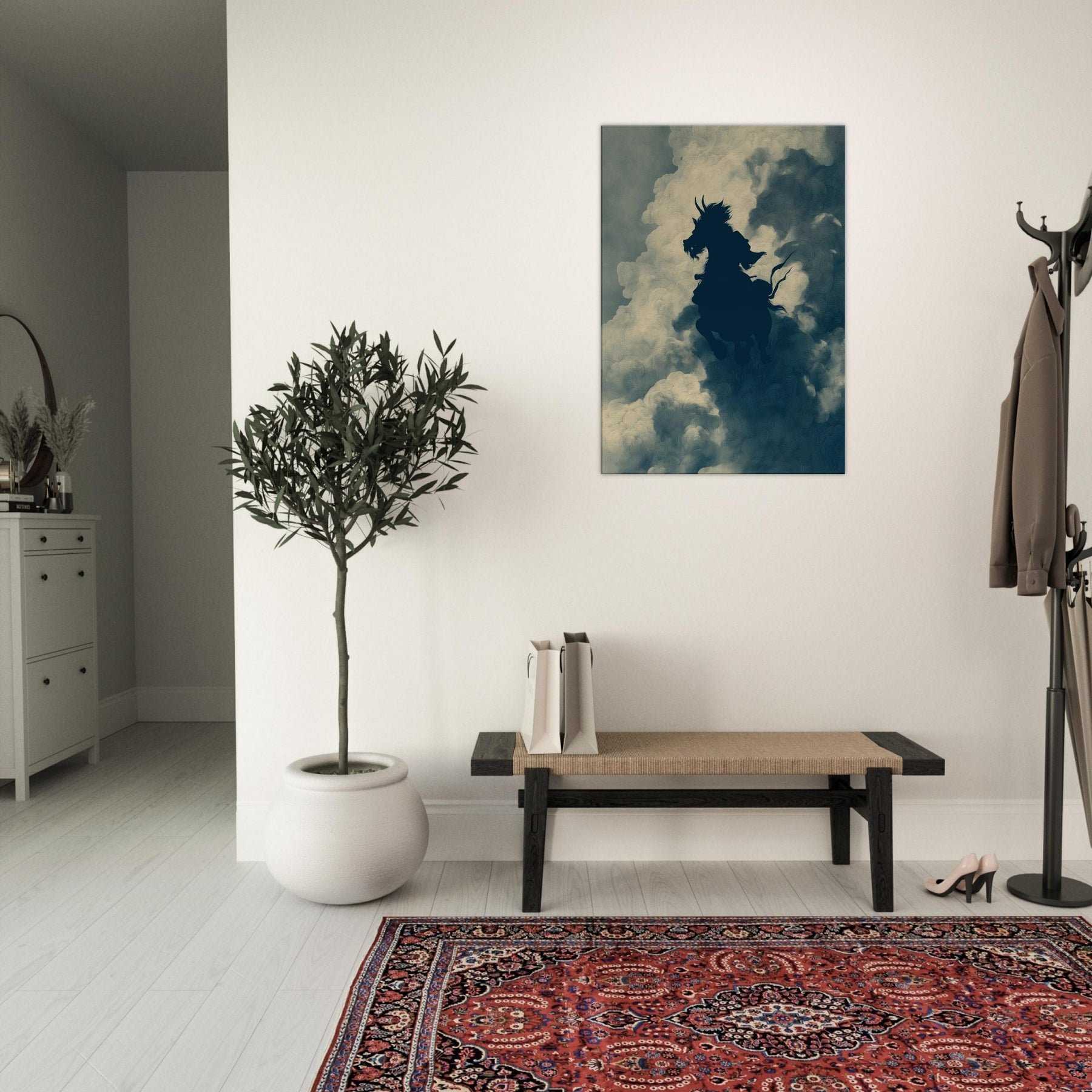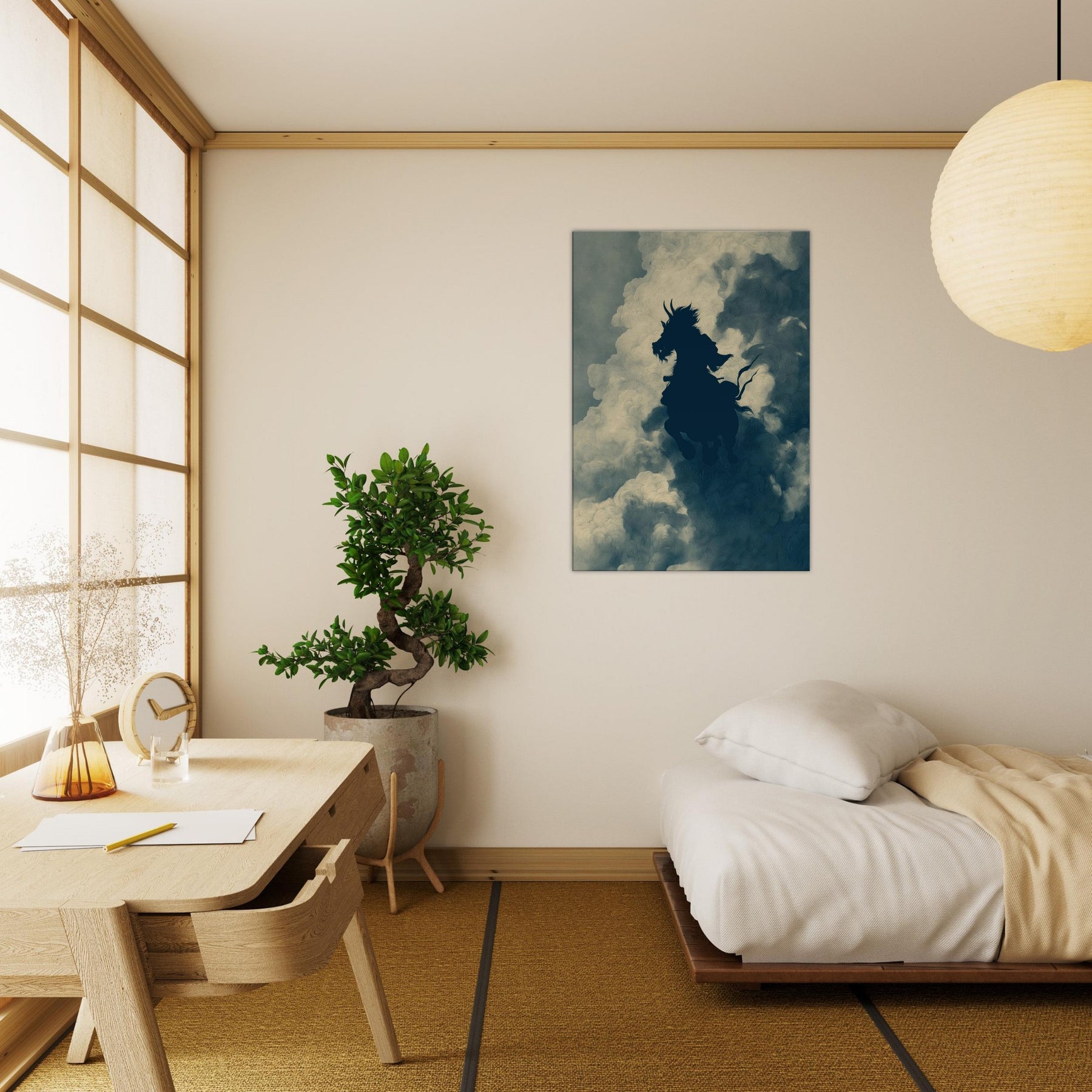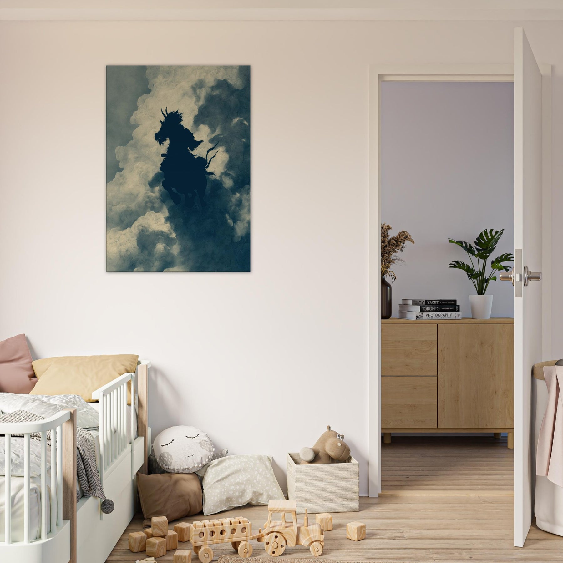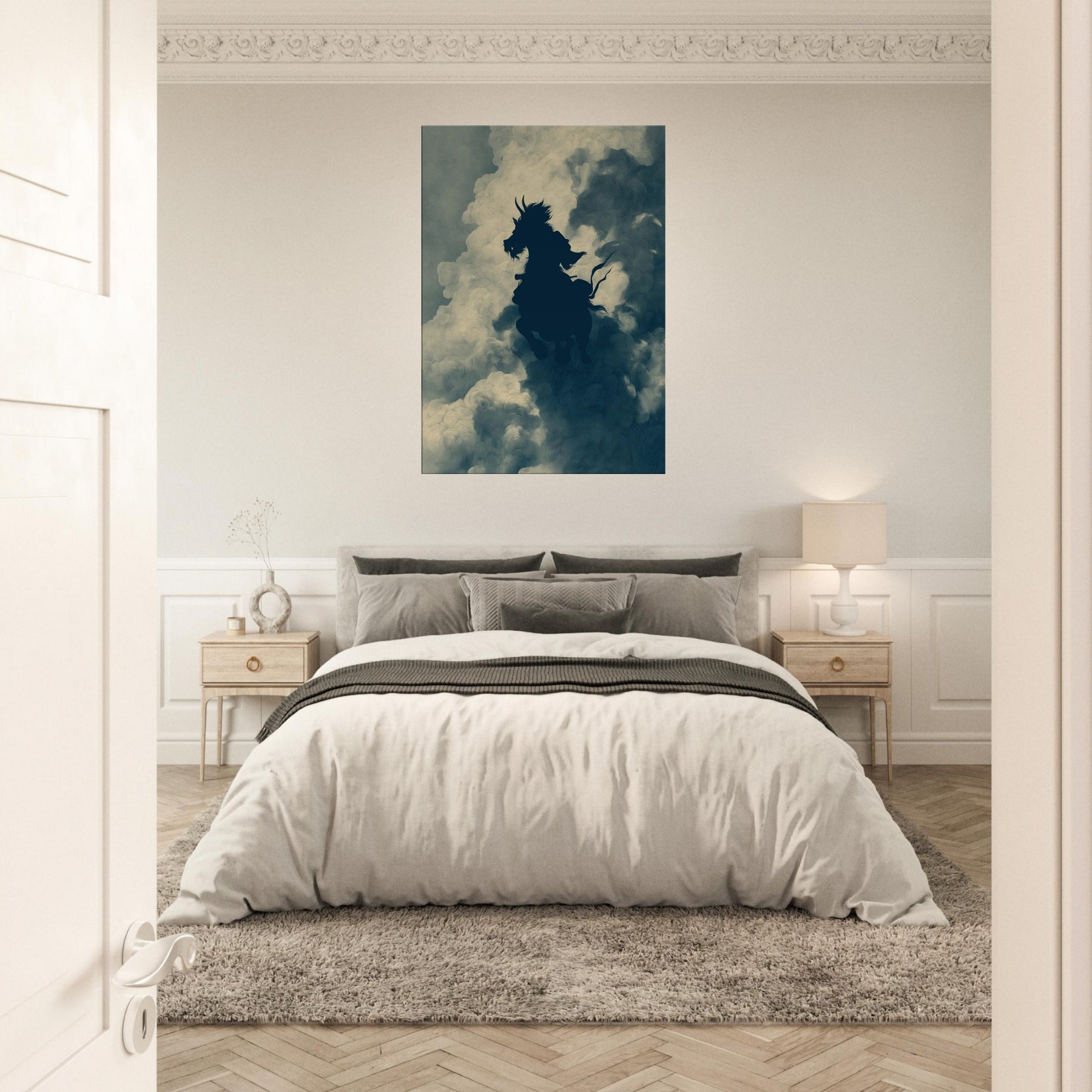 Suspended between cloud and midnight, this surreal invites the eye to follow the Qilin as it strides through a dreamscape of lithe vapors. The creature's horn gleams like a distant star, embodying virtue and quiet strength. Rich indigo fog wraps your walls in a soft, cool glow, turning hallways into a tranquil shrine. Hang this piece in a living room or study to slow the day, invite contemplation, and let the imagination roam beyond ordinary boundaries.