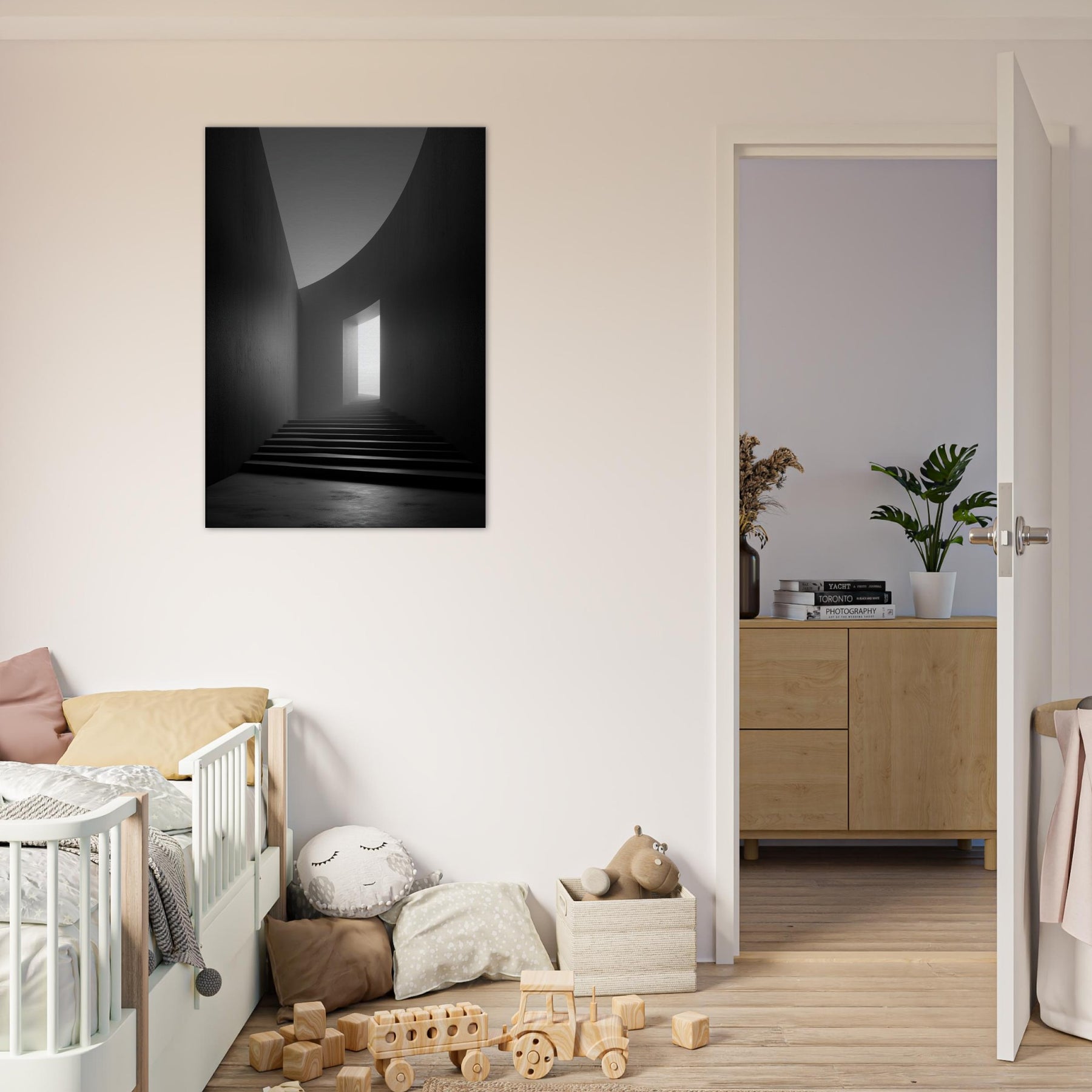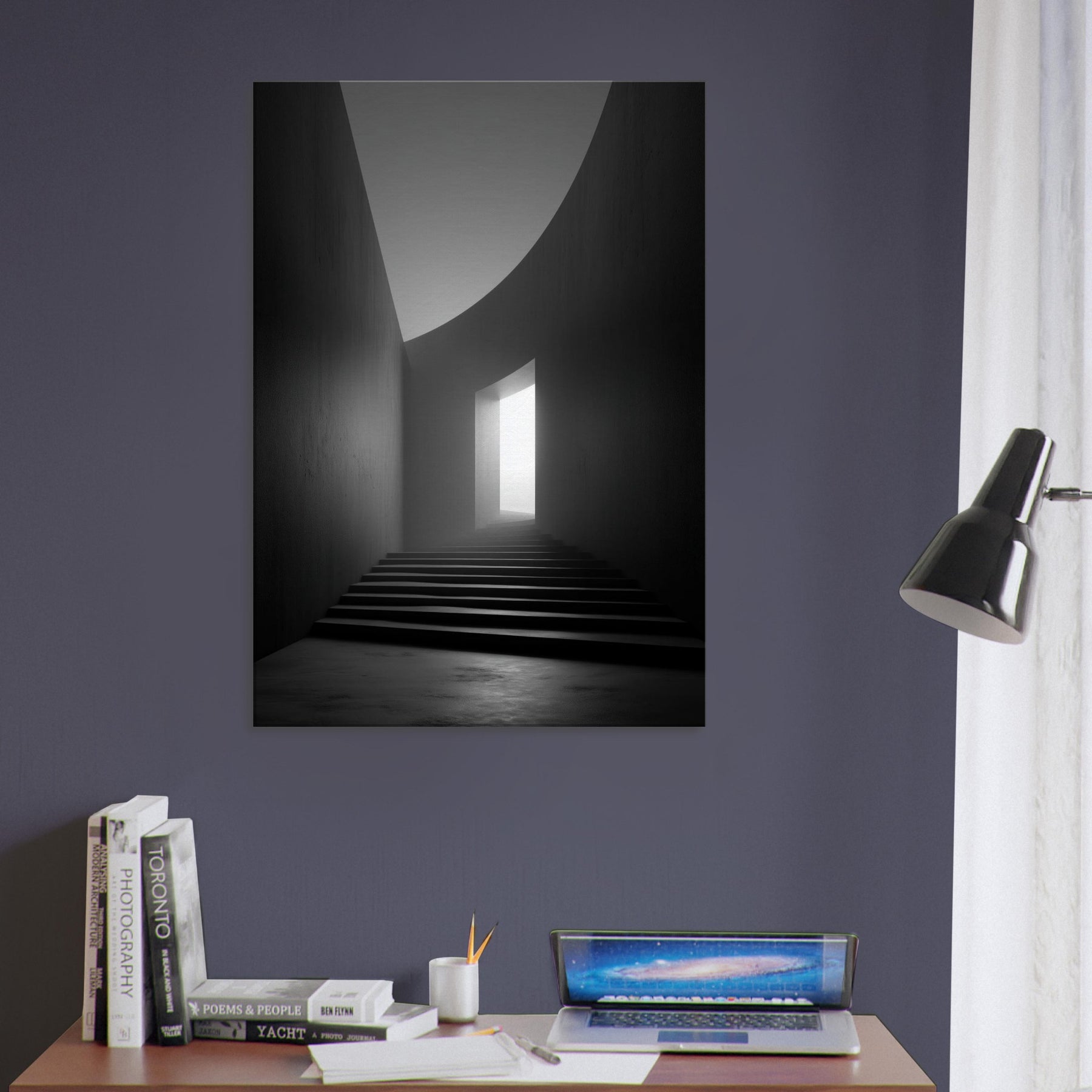 Staircase Switchback unfurls like a dream drawn in concrete two walls curving toward a distant light, steps bending back into themselves. In this monochrome reverie, architecture becomes memory, a quiet ascent that asks you to linger at the threshold of possibility. The atmosphere is hushed, almost sacred, where shadows sketch a map of intention and depth gathers around each iterative turn. Perfect for a living room or study, it invites contemplation, giving space to breathe, escape, and reimagine your everyday horizons.