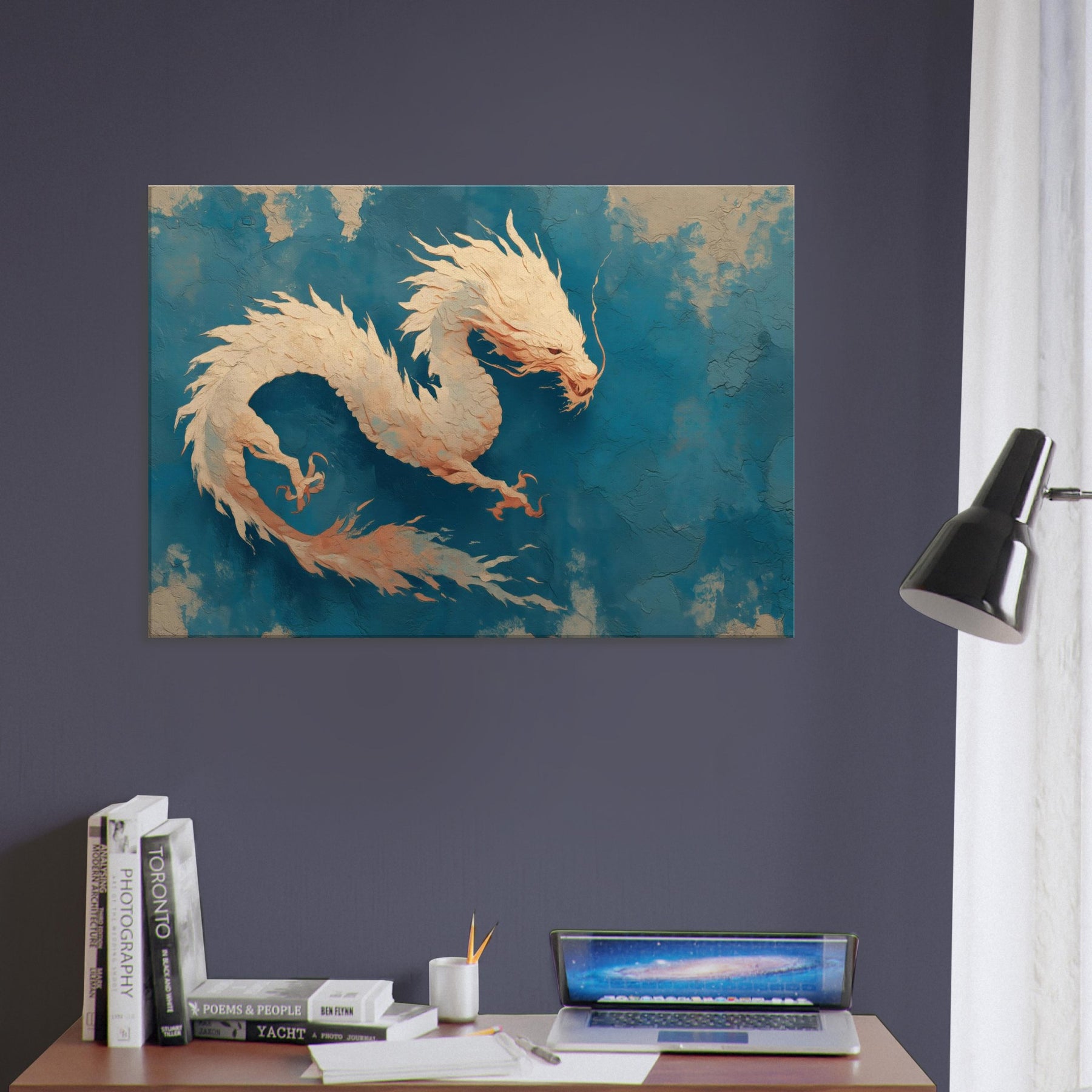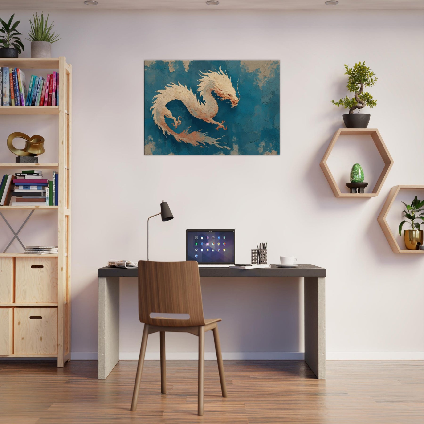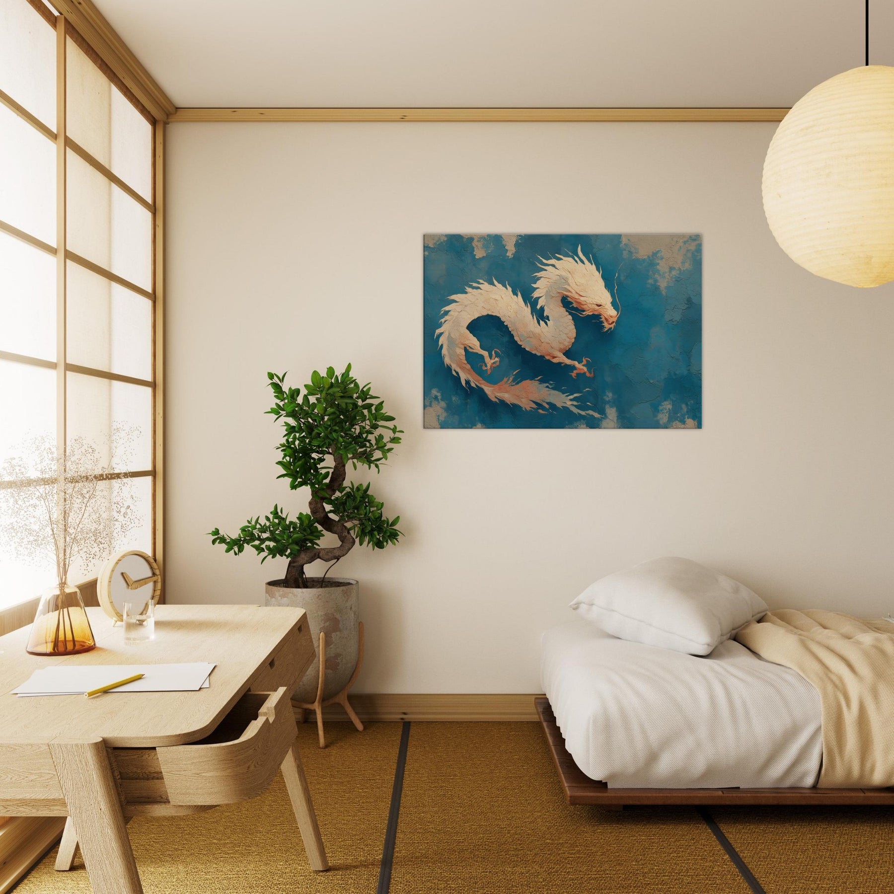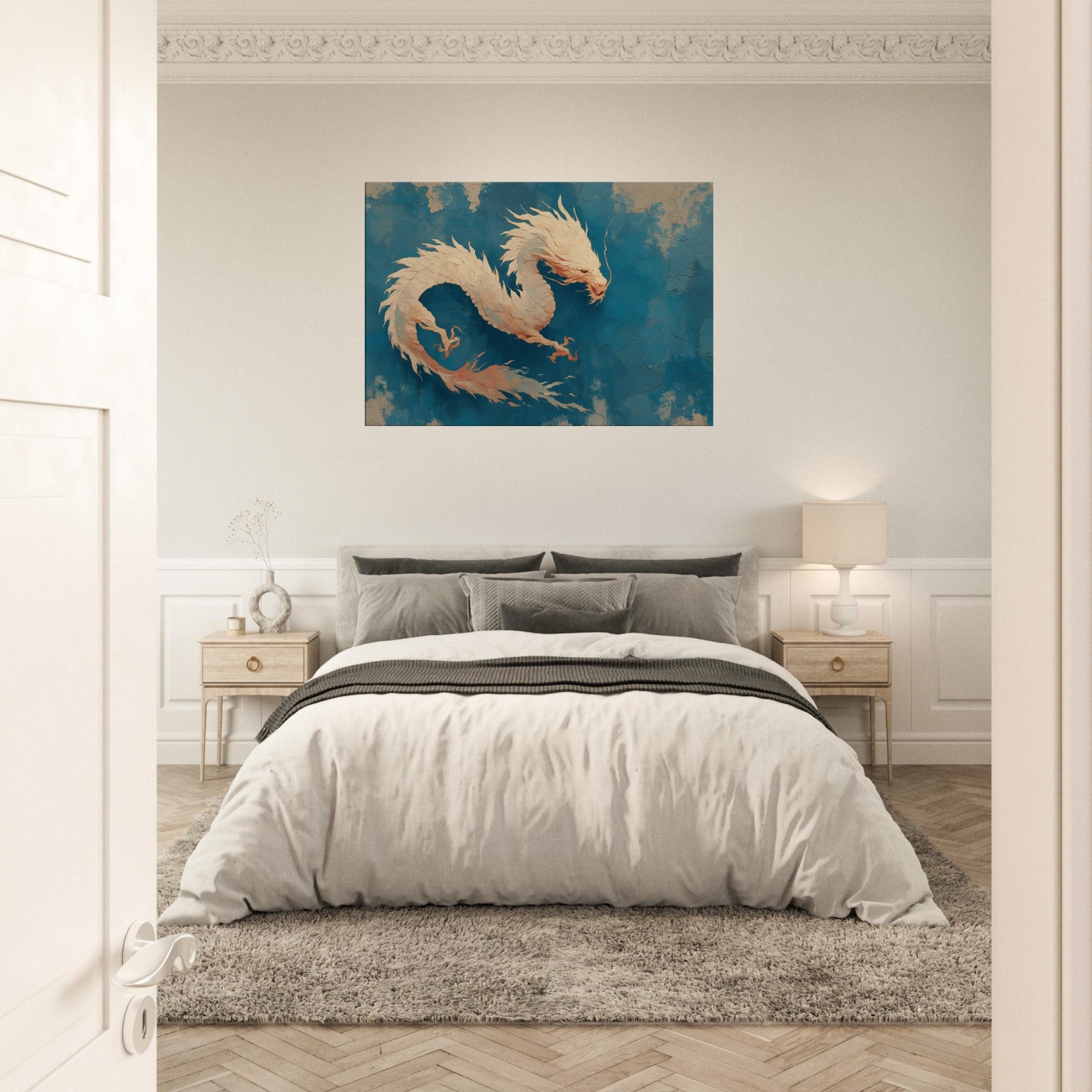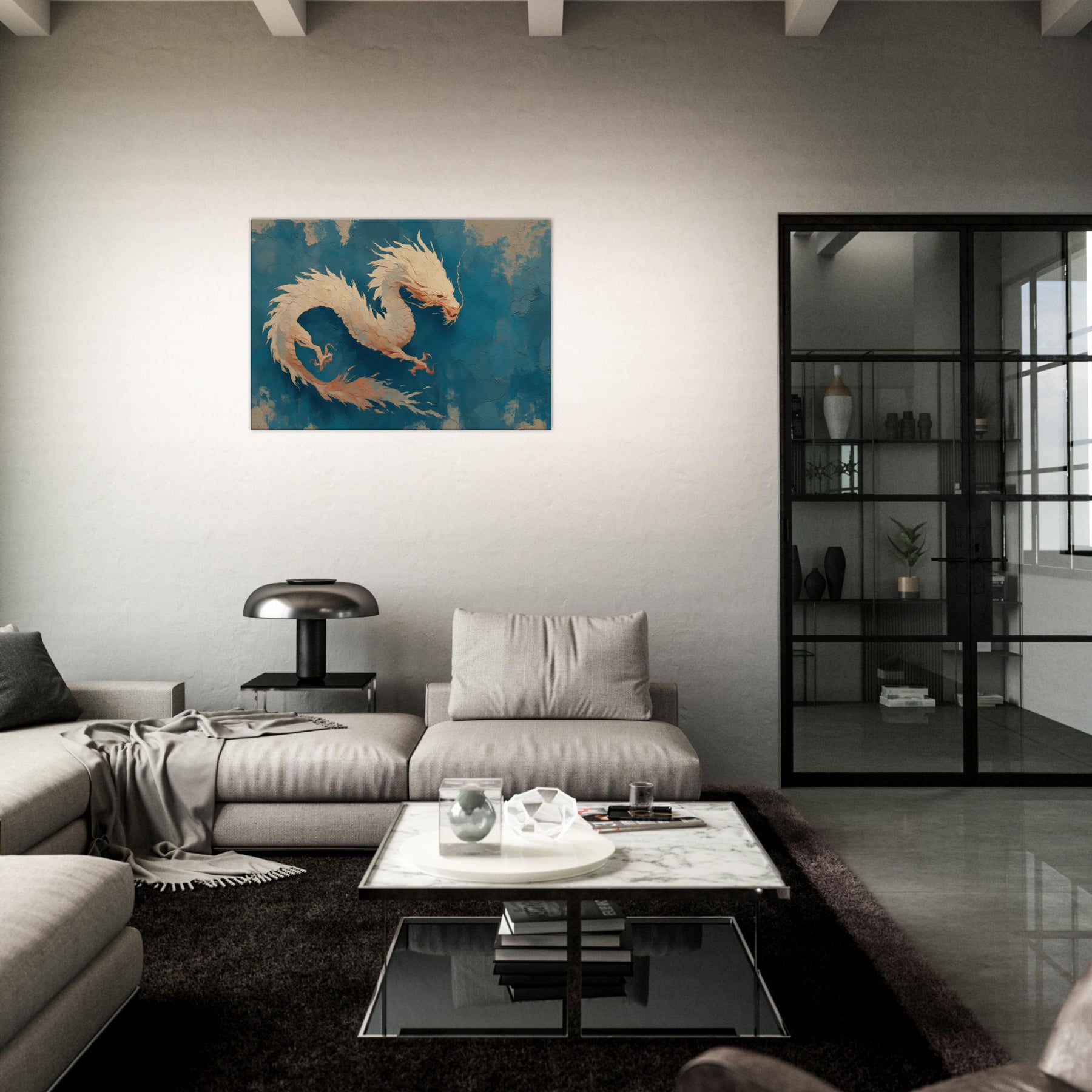 Let your walls breathe with the Ancient Chinese Dragon as it coils through a dreamlike sea of blue. This surreal unites sun warmed scales with shadowed currents, inviting quiet awe and contemplation. The creature’s serpentine form glides between memory and myth, turning a living room into a temple of wonder. Texture and light mingle in a tactile, painterly atmosphere perfect for a statement wall or a tranquil corner. In this piece, history and fantasy awaken the space, encouraging slow, imagined journeys.