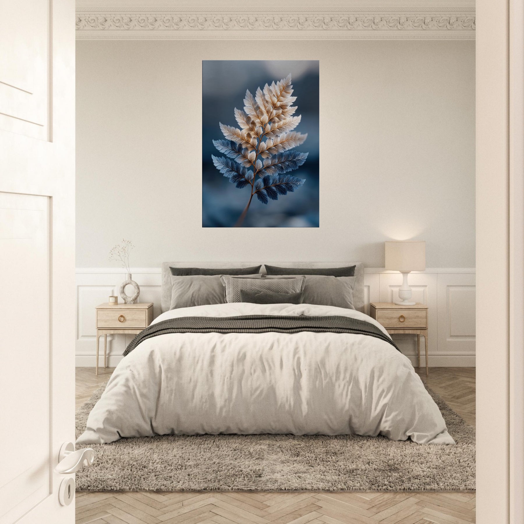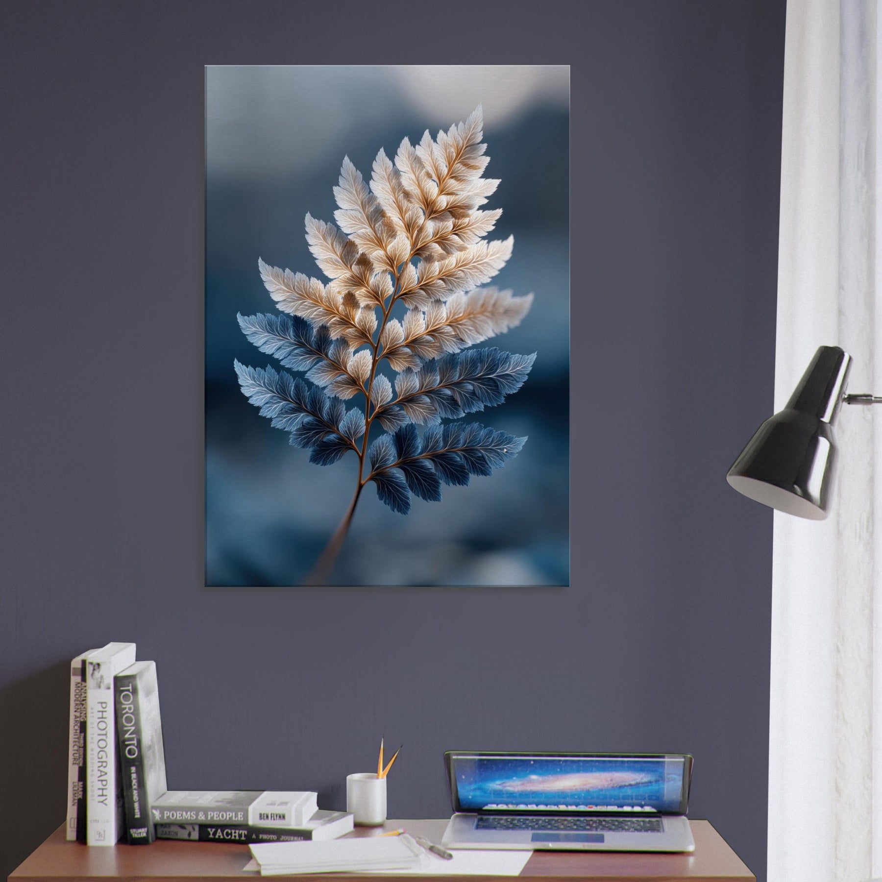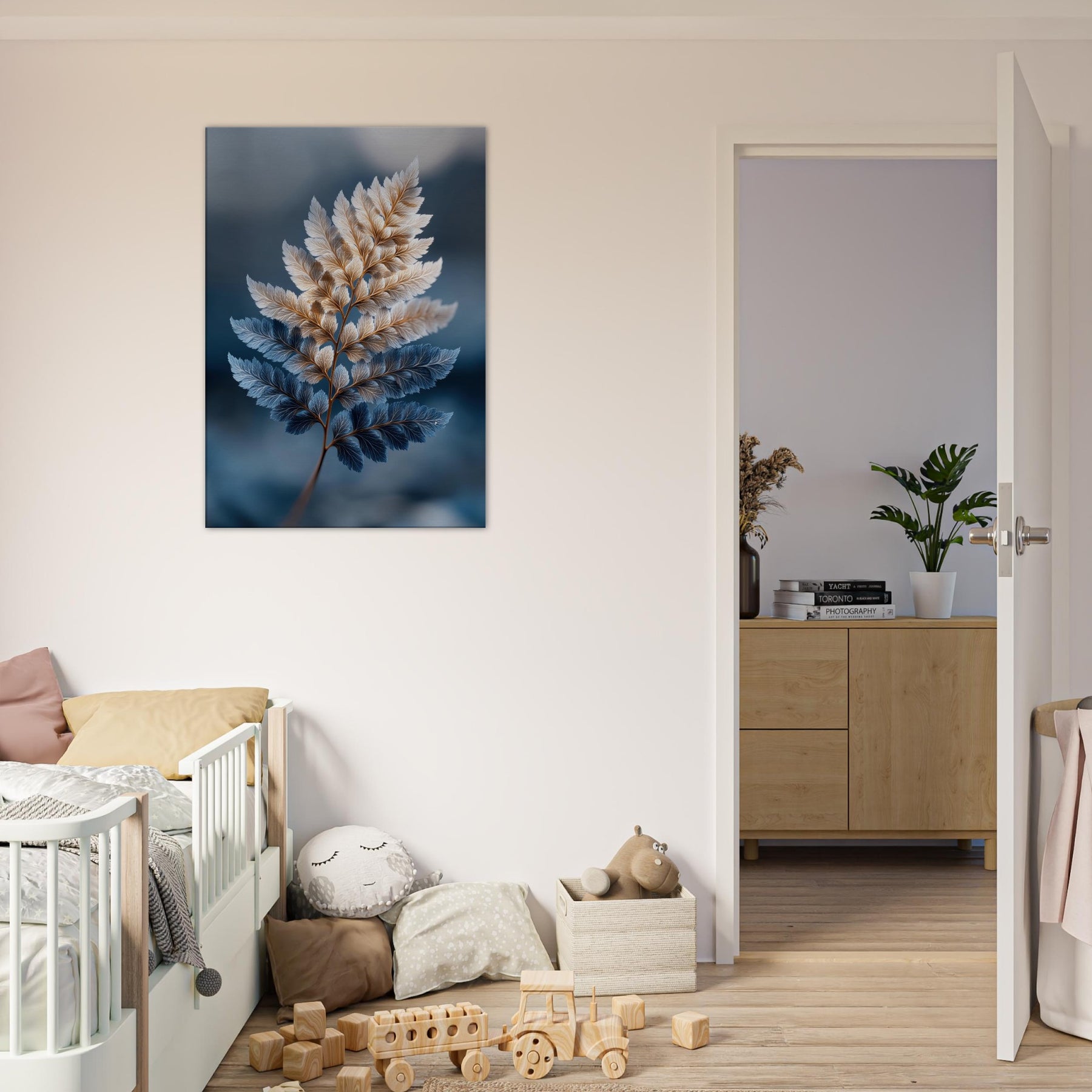 Where the ordinary garden dissolves into a lucid dream, this Fern unfurls as a quiet chorus of light and shadow. The composition pools cool blues with warm bronze, a velvet backdrop that invites calm and contemplation. Its surreal contours drift with the hush of a breeze, offering a feeling of spaciousness without noise. Perfect for a living room or bedroom, it anchors color and mood, turning walls into a window of nature’s mystery. A single plant, endlessly expansive in your space.