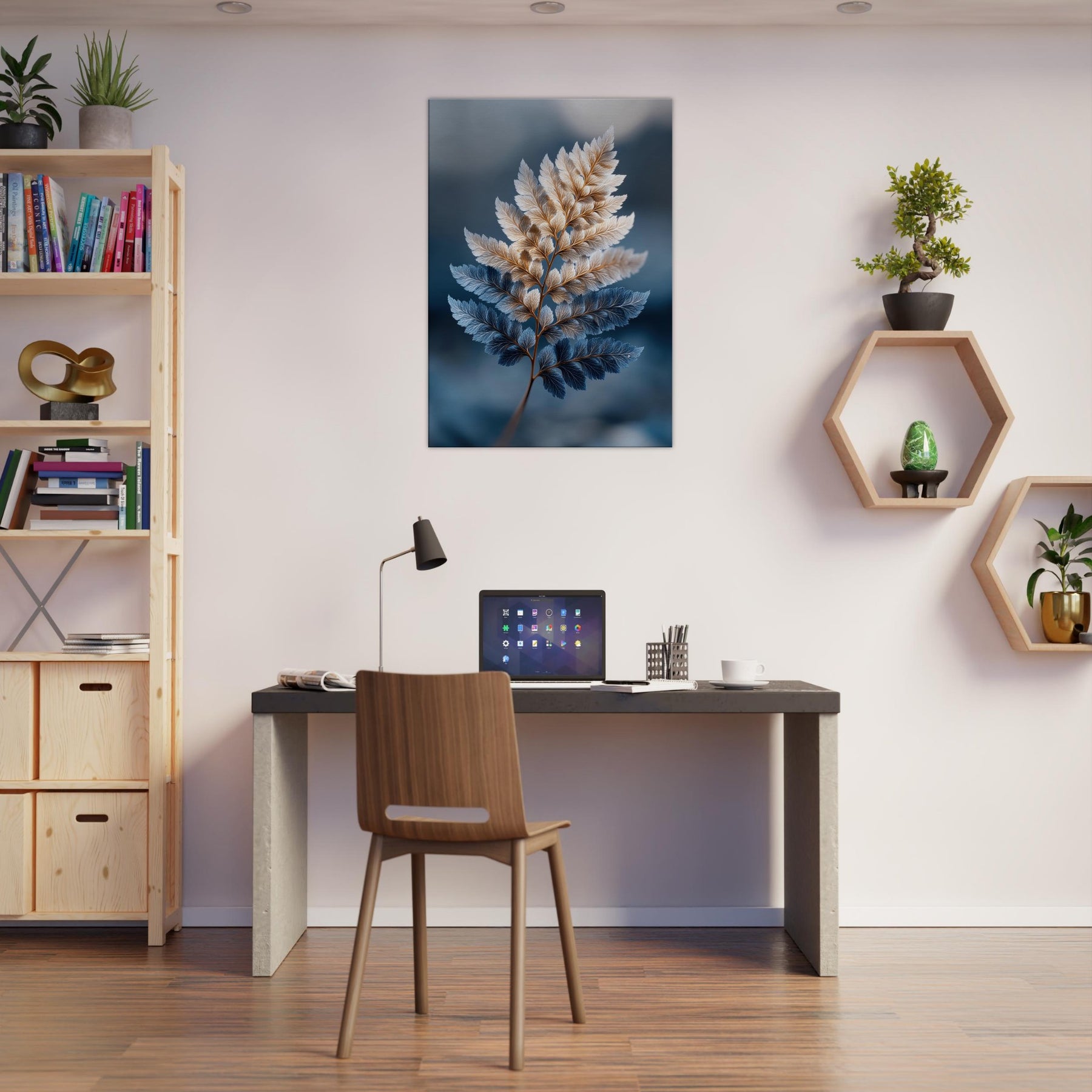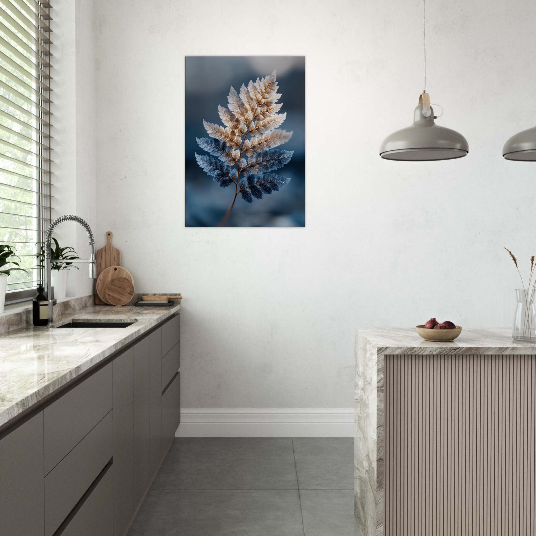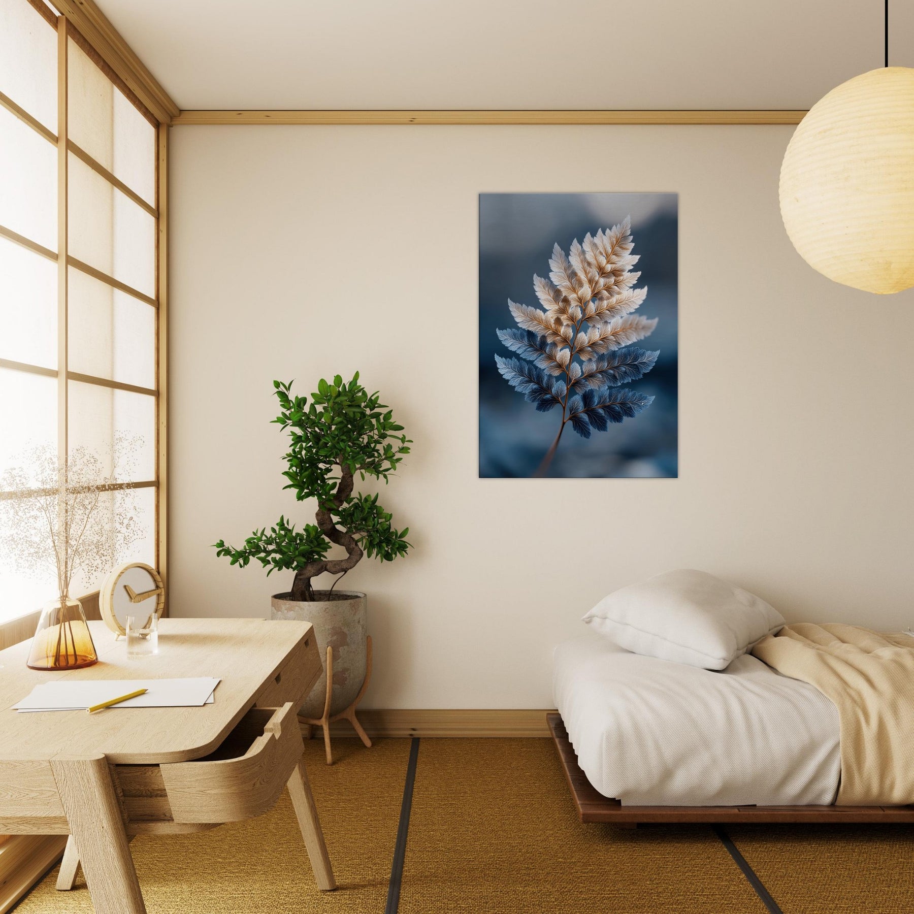 Where the ordinary garden dissolves into a lucid dream, this Fern unfurls as a quiet chorus of light and shadow. The composition pools cool blues with warm bronze, a velvet backdrop that invites calm and contemplation. Its surreal contours drift with the hush of a breeze, offering a feeling of spaciousness without noise. Perfect for a living room or bedroom, it anchors color and mood, turning walls into a window of nature’s mystery. A single plant, endlessly expansive in your space.