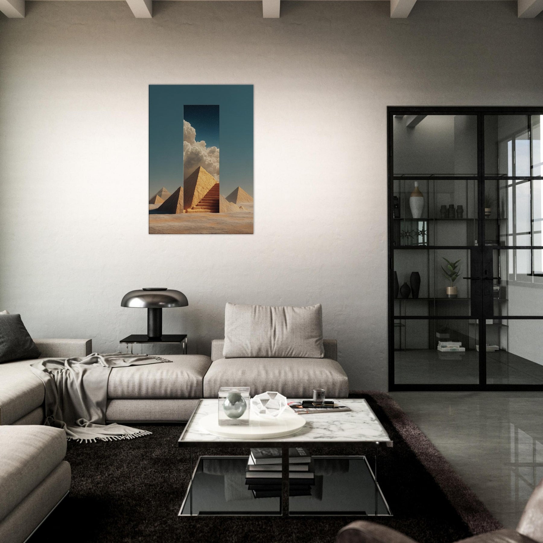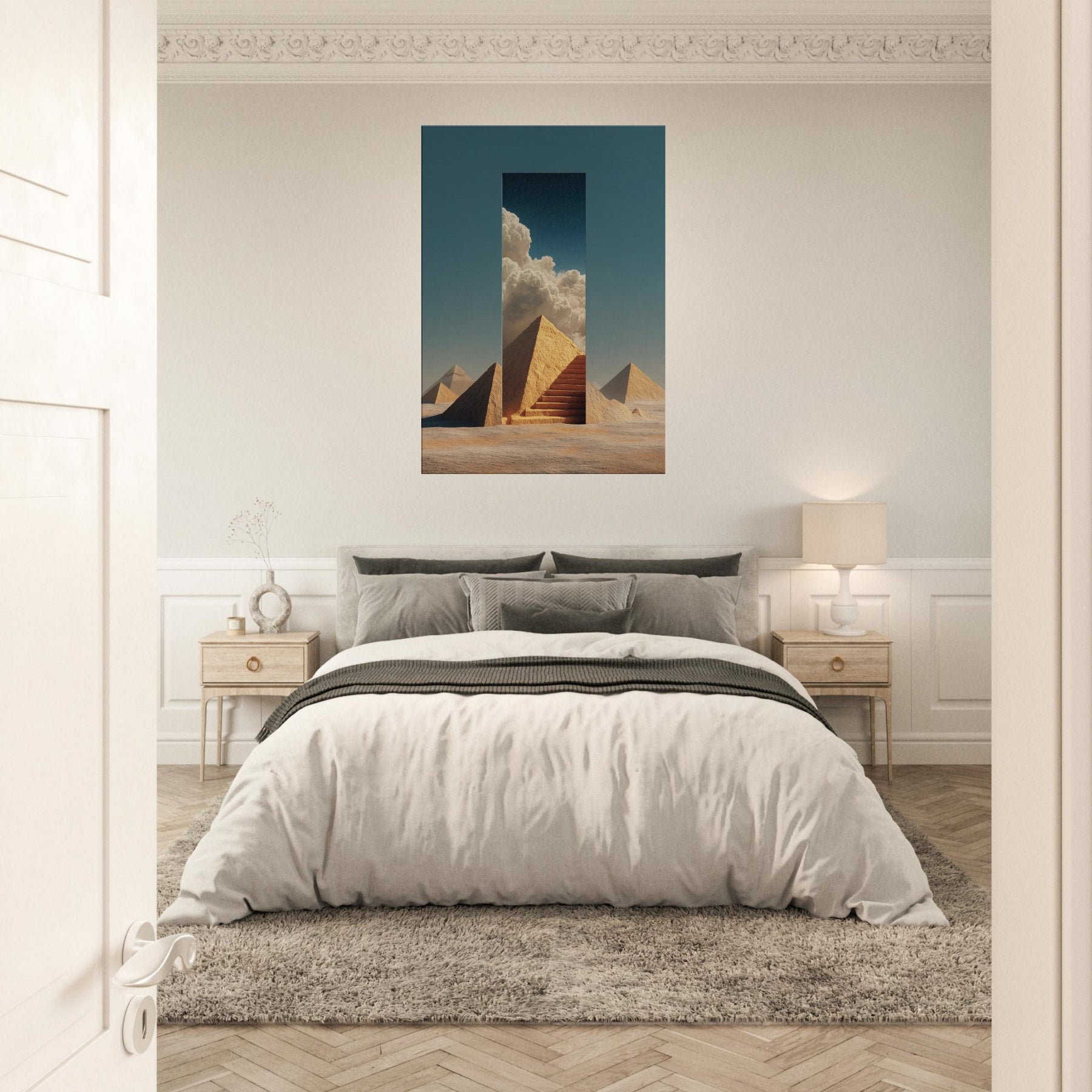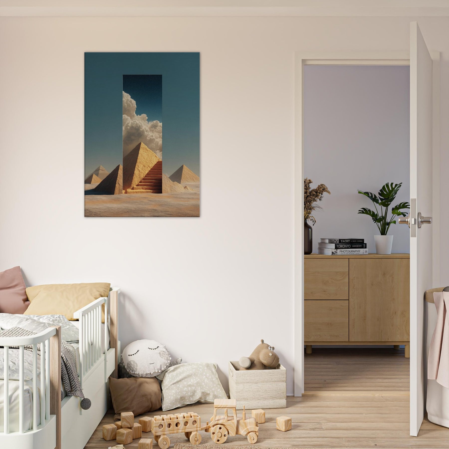 Let the Pyramids of Giza rise as a doorway to another plane, where warm sand meets a midnight sky. This surreal composition invites the room to breathe soft light pours along the stone, cloud stitched horizons echoing in your living space, turning walls into a quiet horizon. The enclave frames a dreamscape of geometry and memory, a reminder that structure can hum with wonder. Hang it to ground conversation, spark imagination, and soften angles with timeless calm.