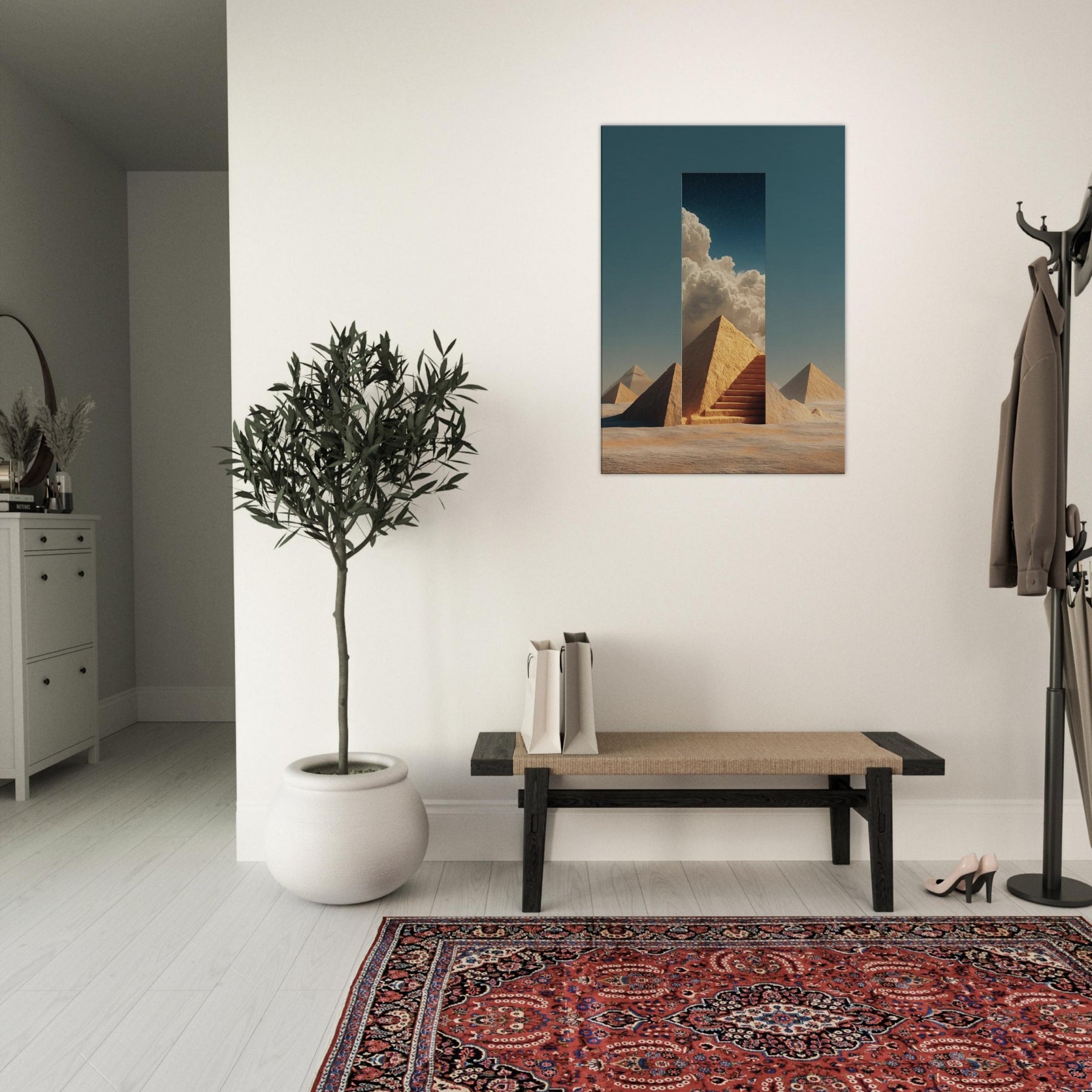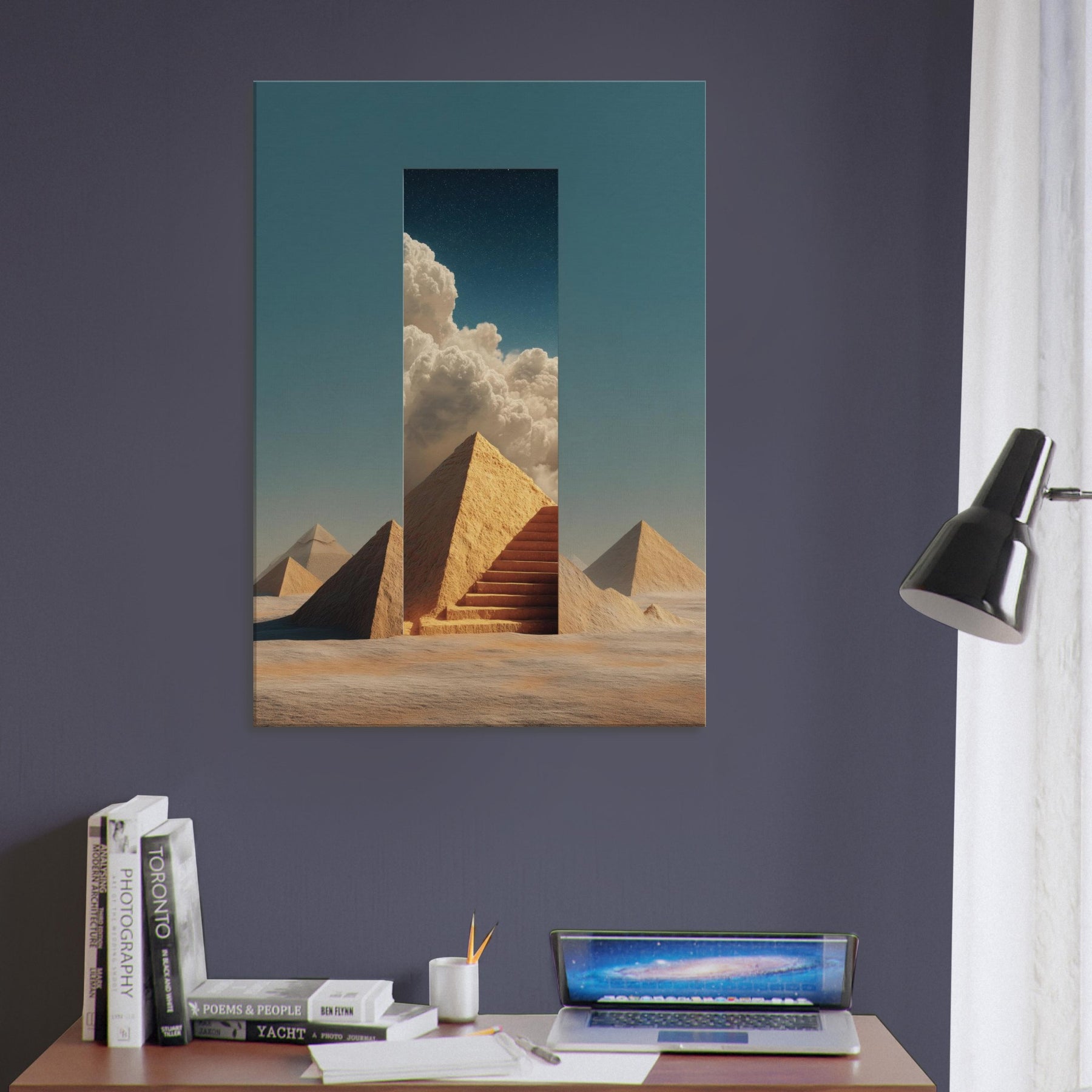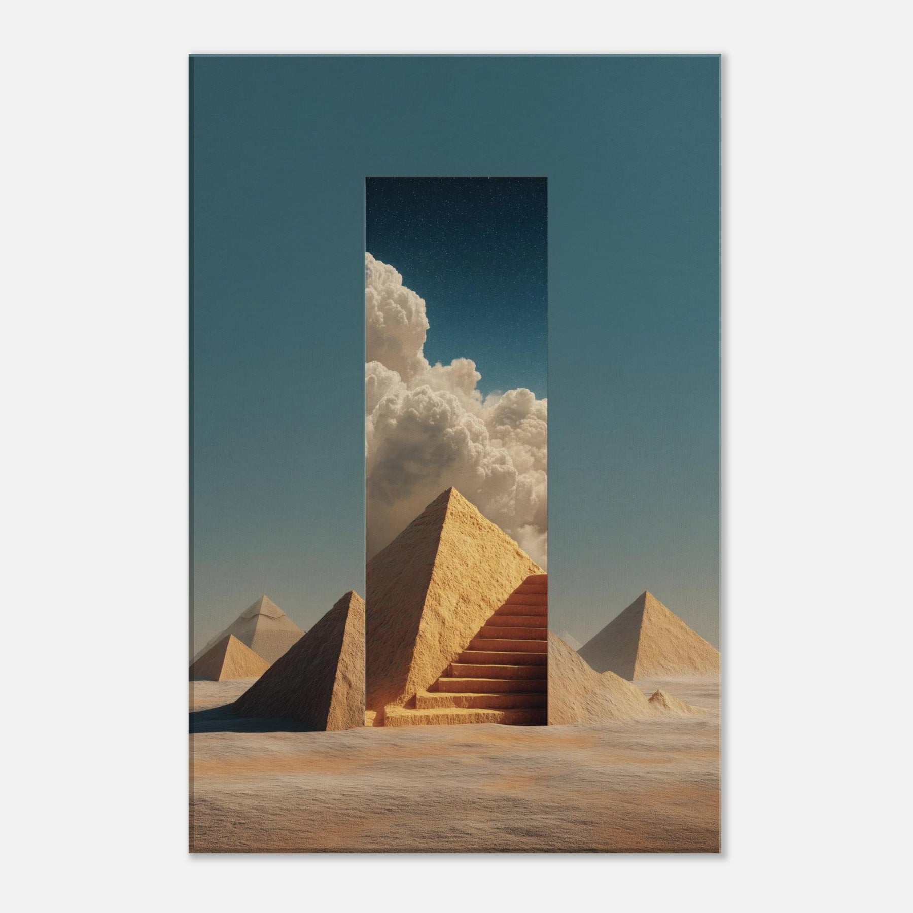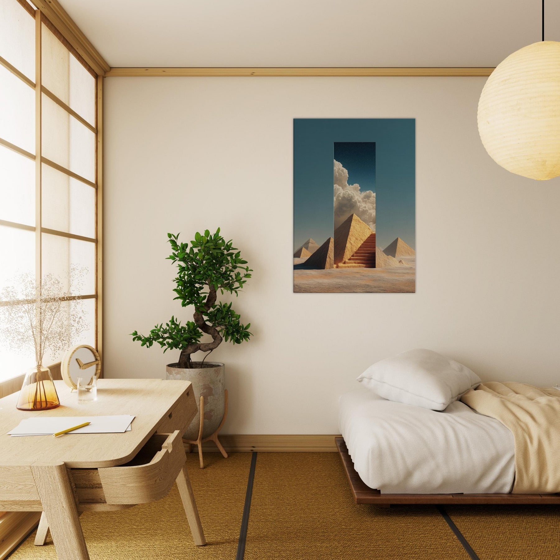 Let the Pyramids of Giza rise as a doorway to another plane, where warm sand meets a midnight sky. This surreal composition invites the room to breathe soft light pours along the stone, cloud stitched horizons echoing in your living space, turning walls into a quiet horizon. The enclave frames a dreamscape of geometry and memory, a reminder that structure can hum with wonder. Hang it to ground conversation, spark imagination, and soften angles with timeless calm.