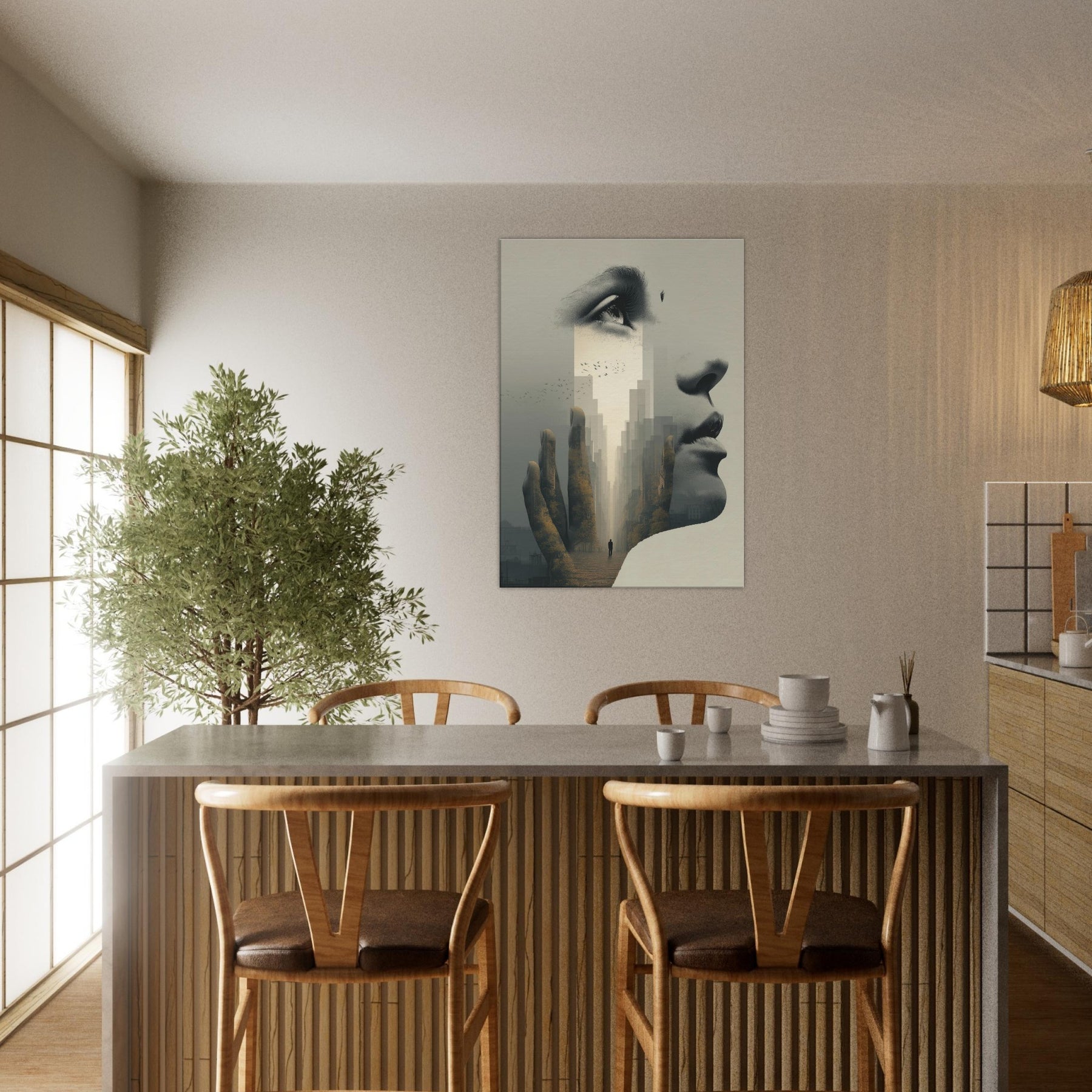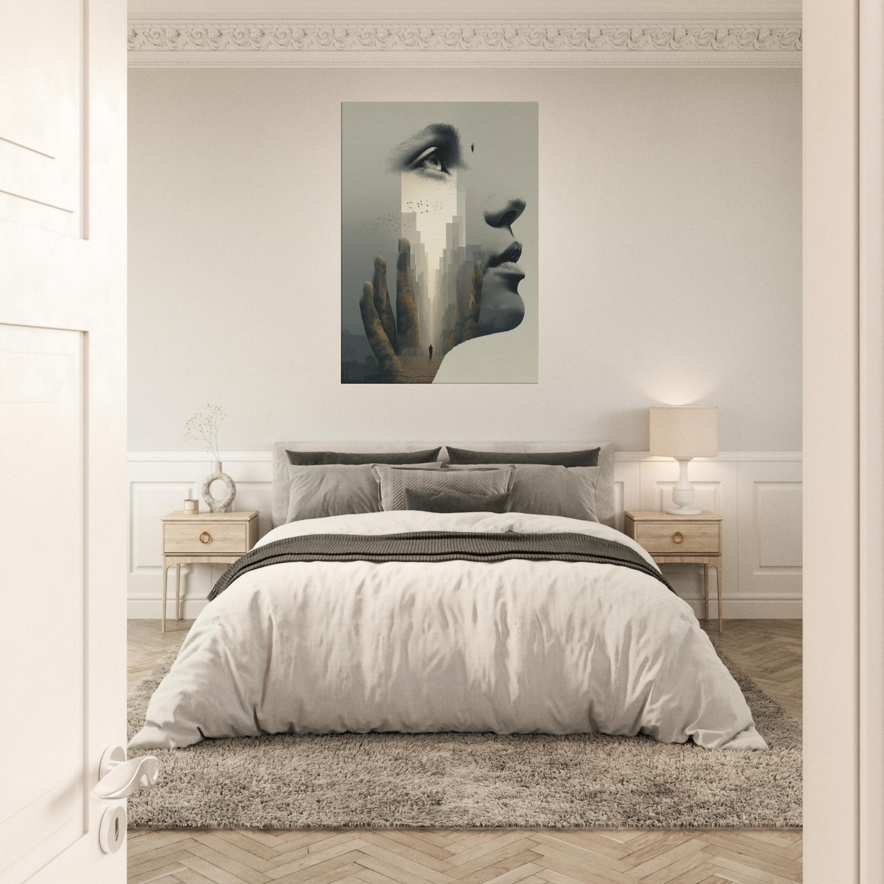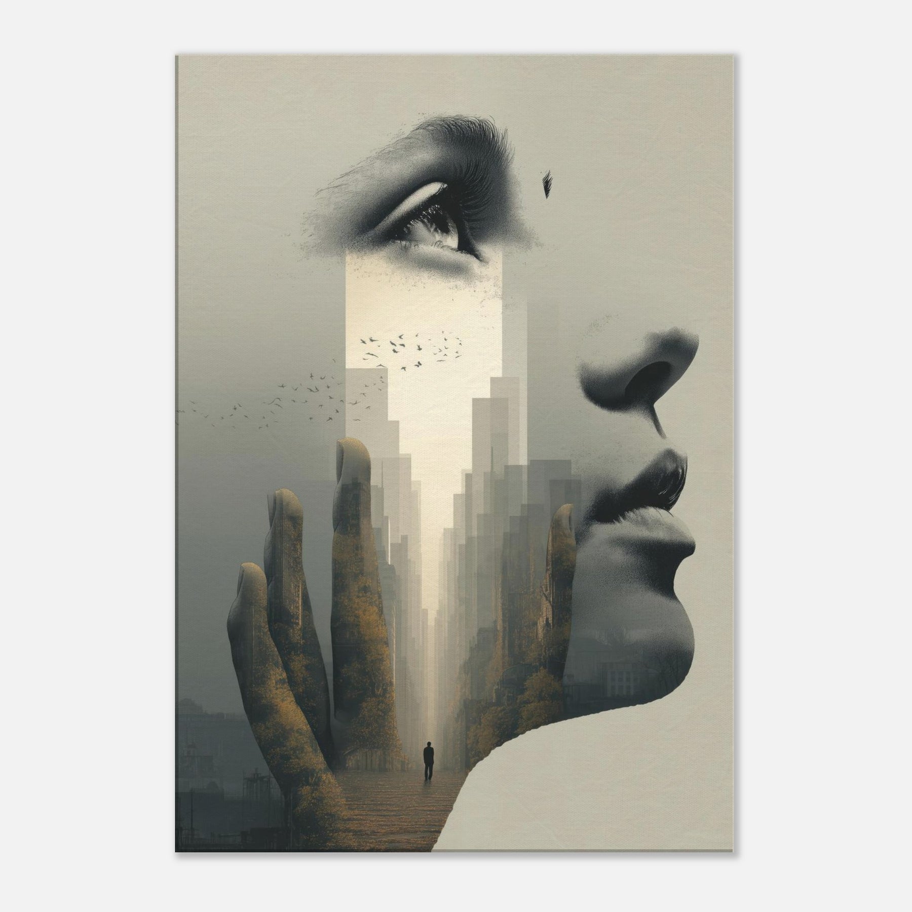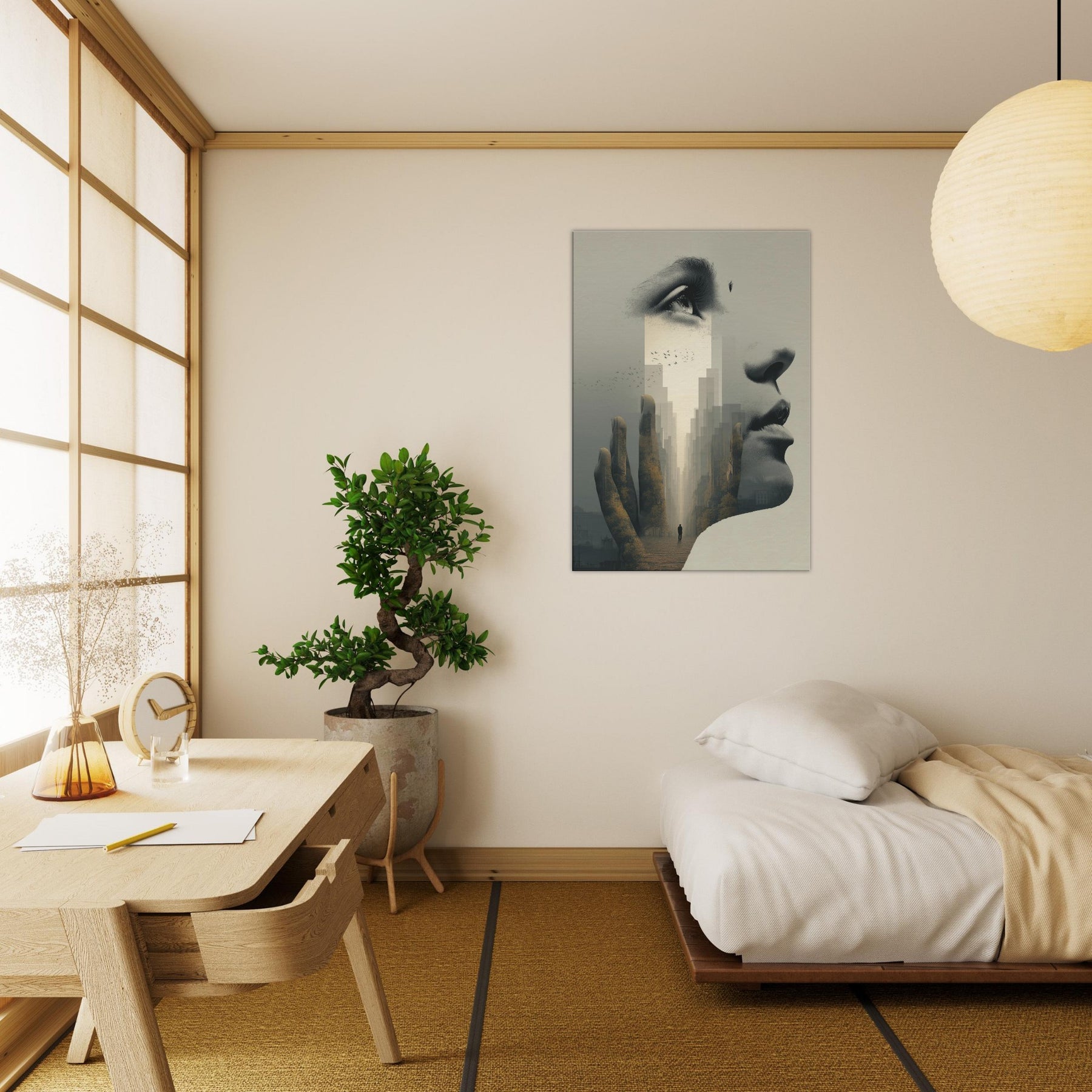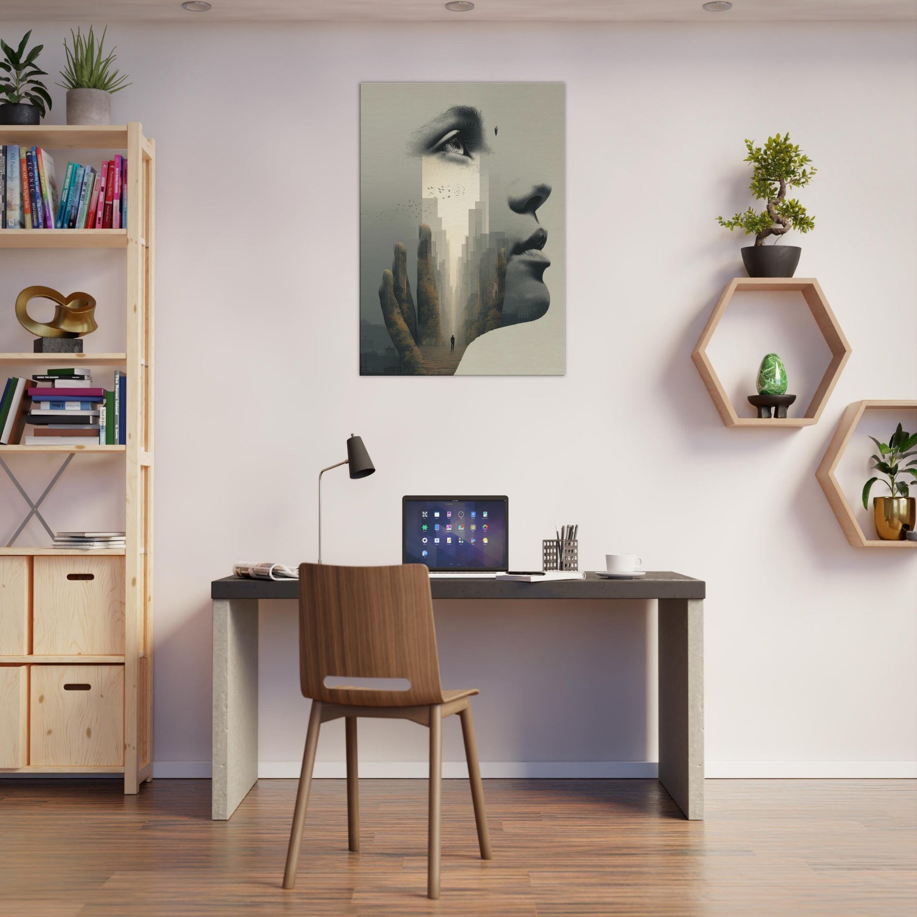 Hands Line Art rises from an urban skyline, where a lone hand fractures light into towers and a distant figure steps into the seam between flesh and facade. The composition whispers of memory and ascent, inviting the viewer to trace lines with the eye and feel the quiet weight of the urban dusk. It anchors a living space with a calm, cinematic presence, blending tactile graphite texture with airy abstraction to transform any wall into a contemplative horizon.