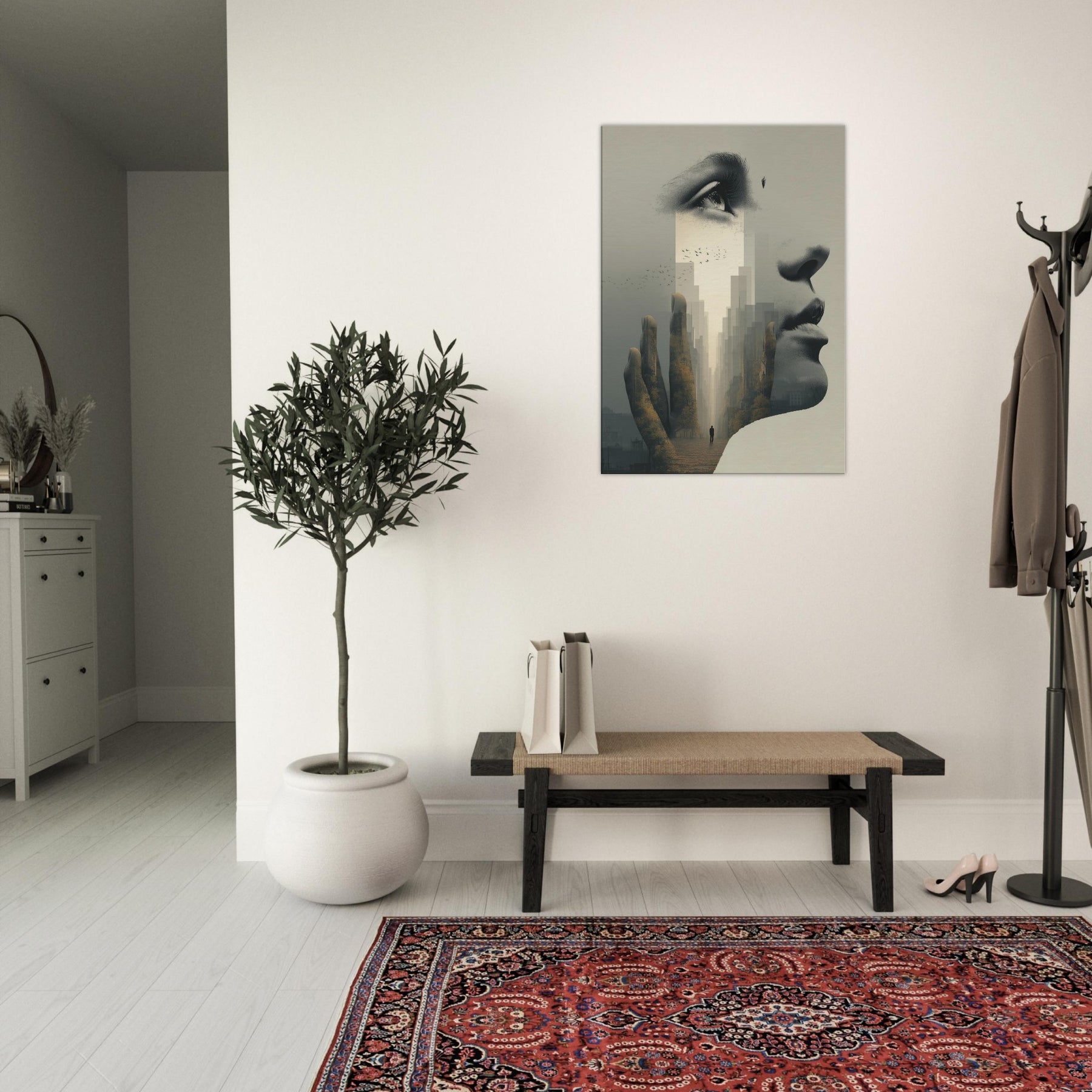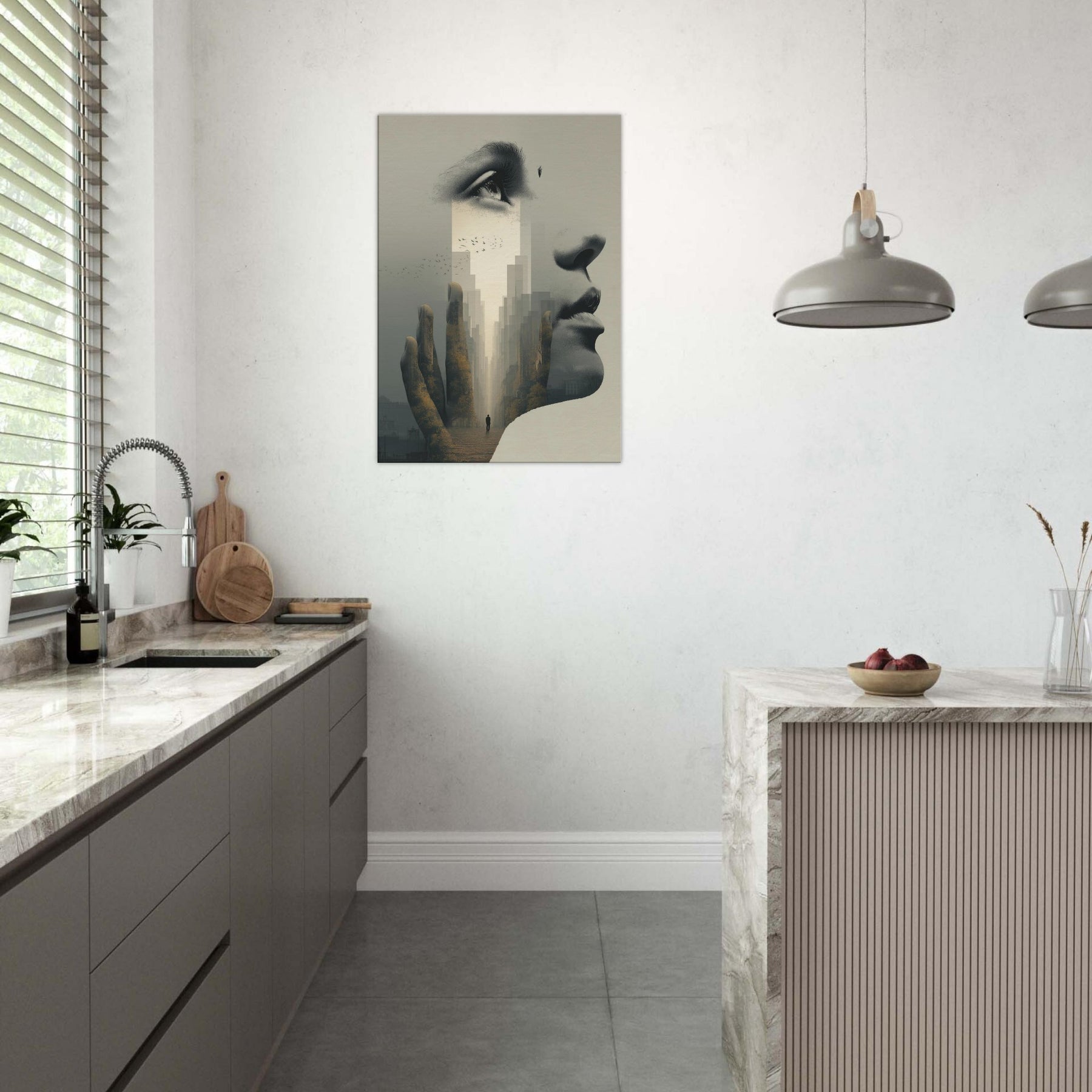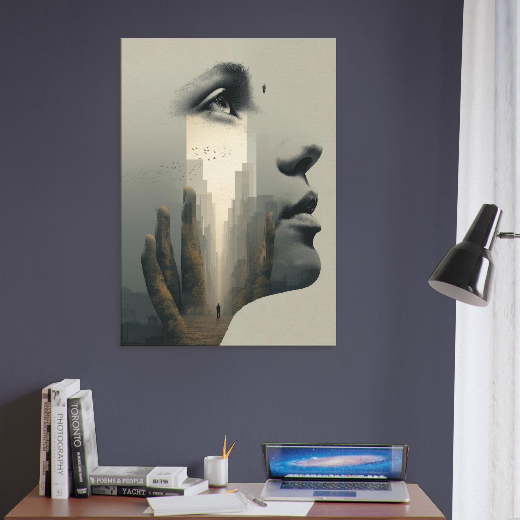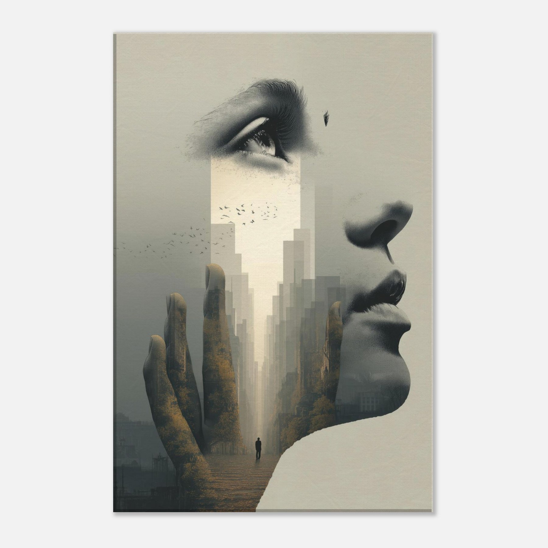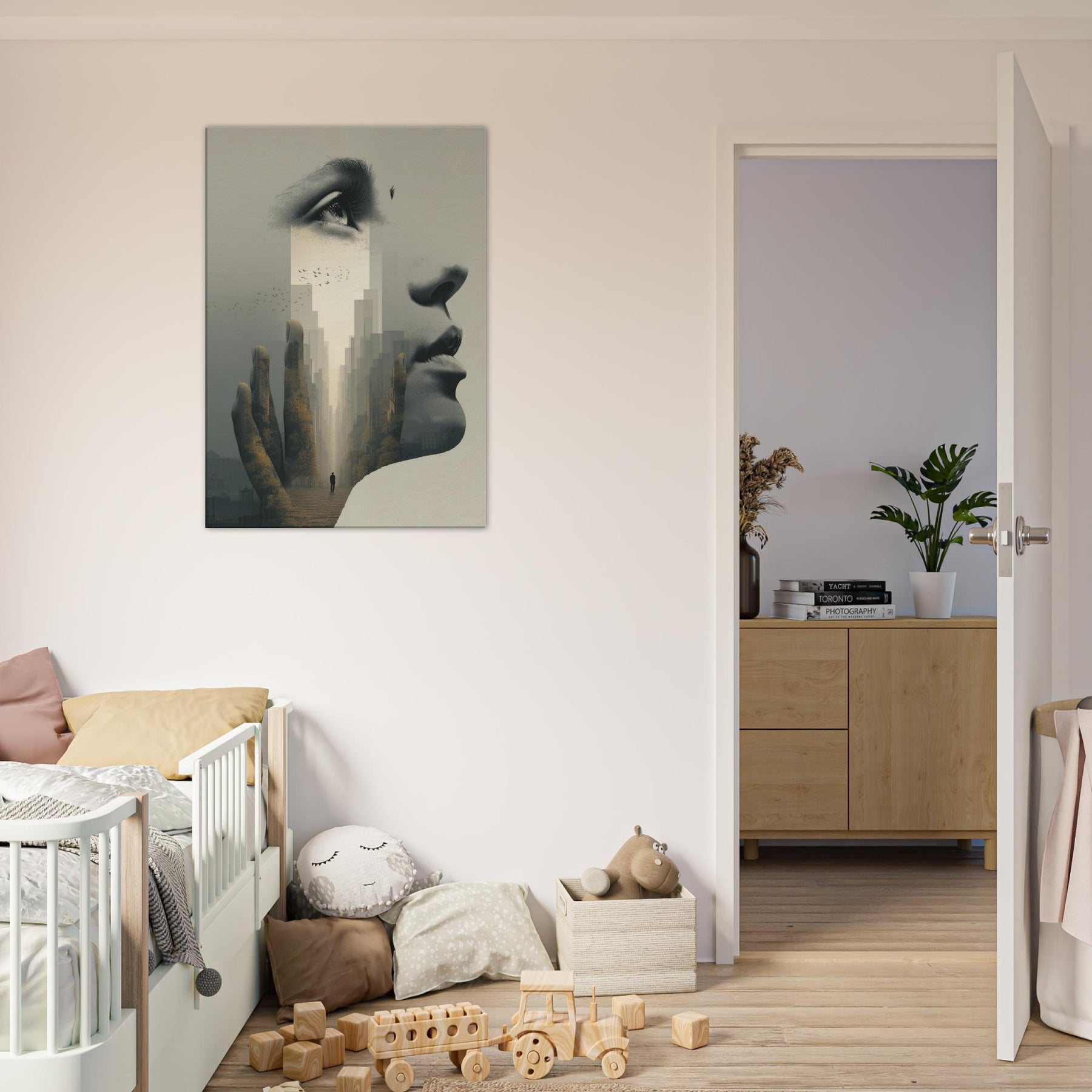 Hands Line Art rises from an urban skyline, where a lone hand fractures light into towers and a distant figure steps into the seam between flesh and facade. The composition whispers of memory and ascent, inviting the viewer to trace lines with the eye and feel the quiet weight of the urban dusk. It anchors a living space with a calm, cinematic presence, blending tactile graphite texture with airy abstraction to transform any wall into a contemplative horizon.