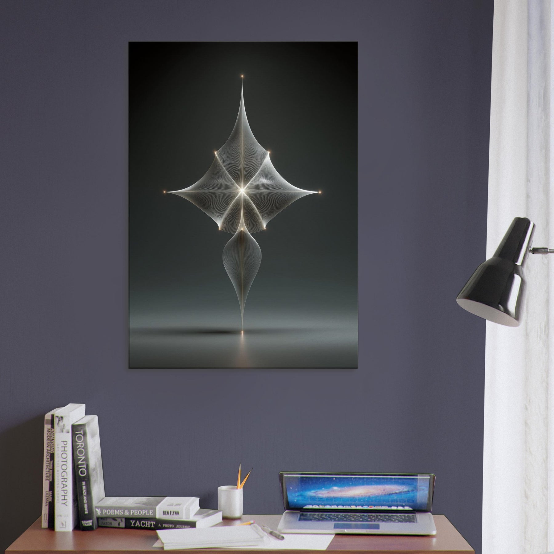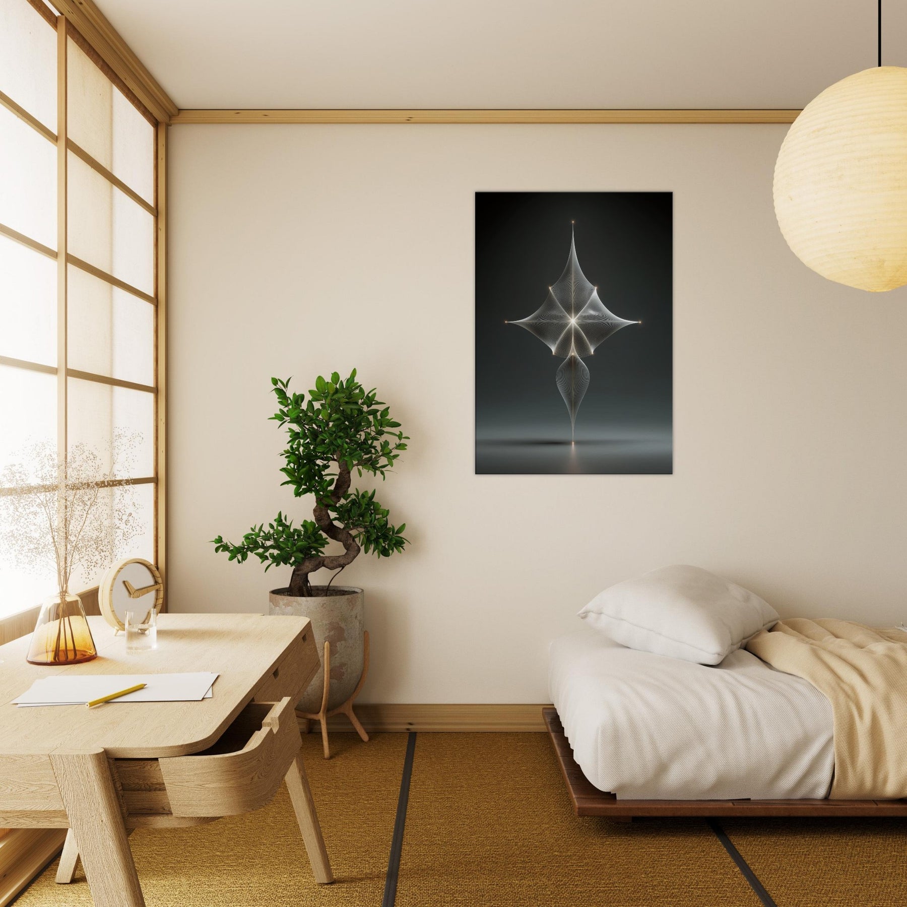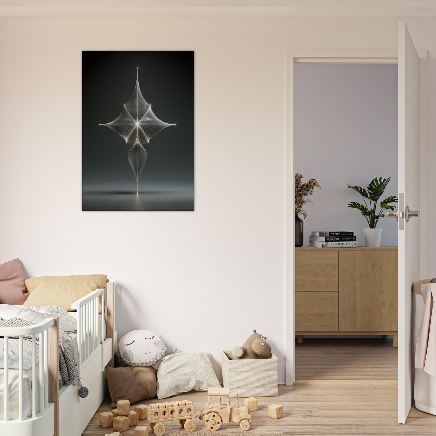 Trace a delicate Zodiac Constellation (Minimal Line) across a velvet night, where surreal light threads converge in a single, soft point. This mystical composition unfurls with lucid precision, yet yields an otherworldly mood that feels both ancient and freshly imagined. The minimal lines glow with a restrained radiance, inviting quiet contemplation and a gentle, dreamlike presence in any living space. Perfect above a sofa or bed, it transforms walls into a celestial horizon of calm and wonder.