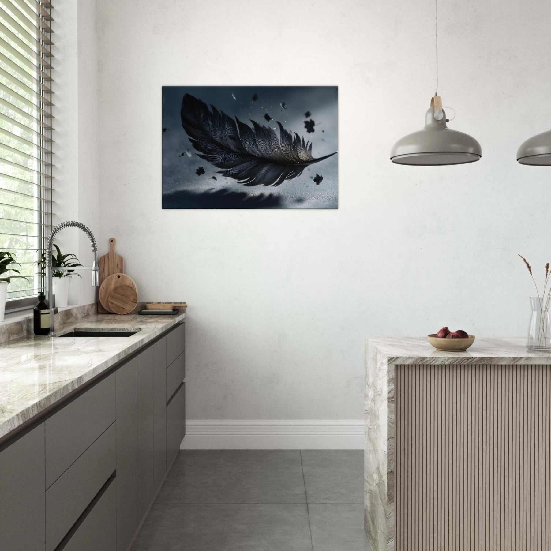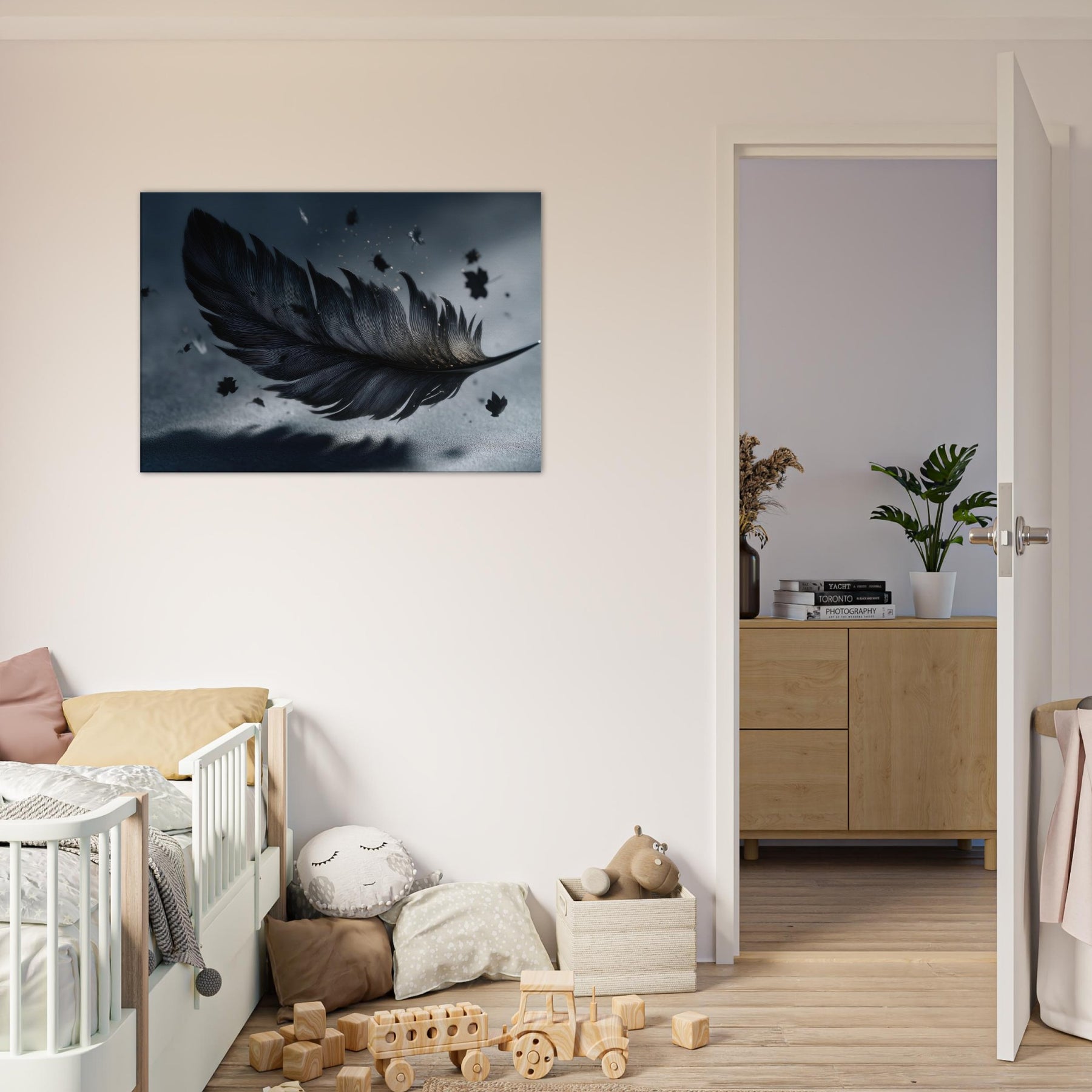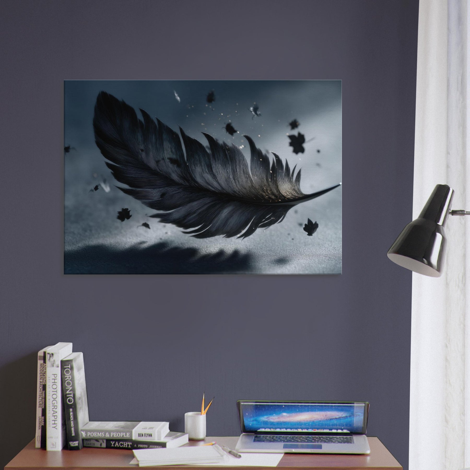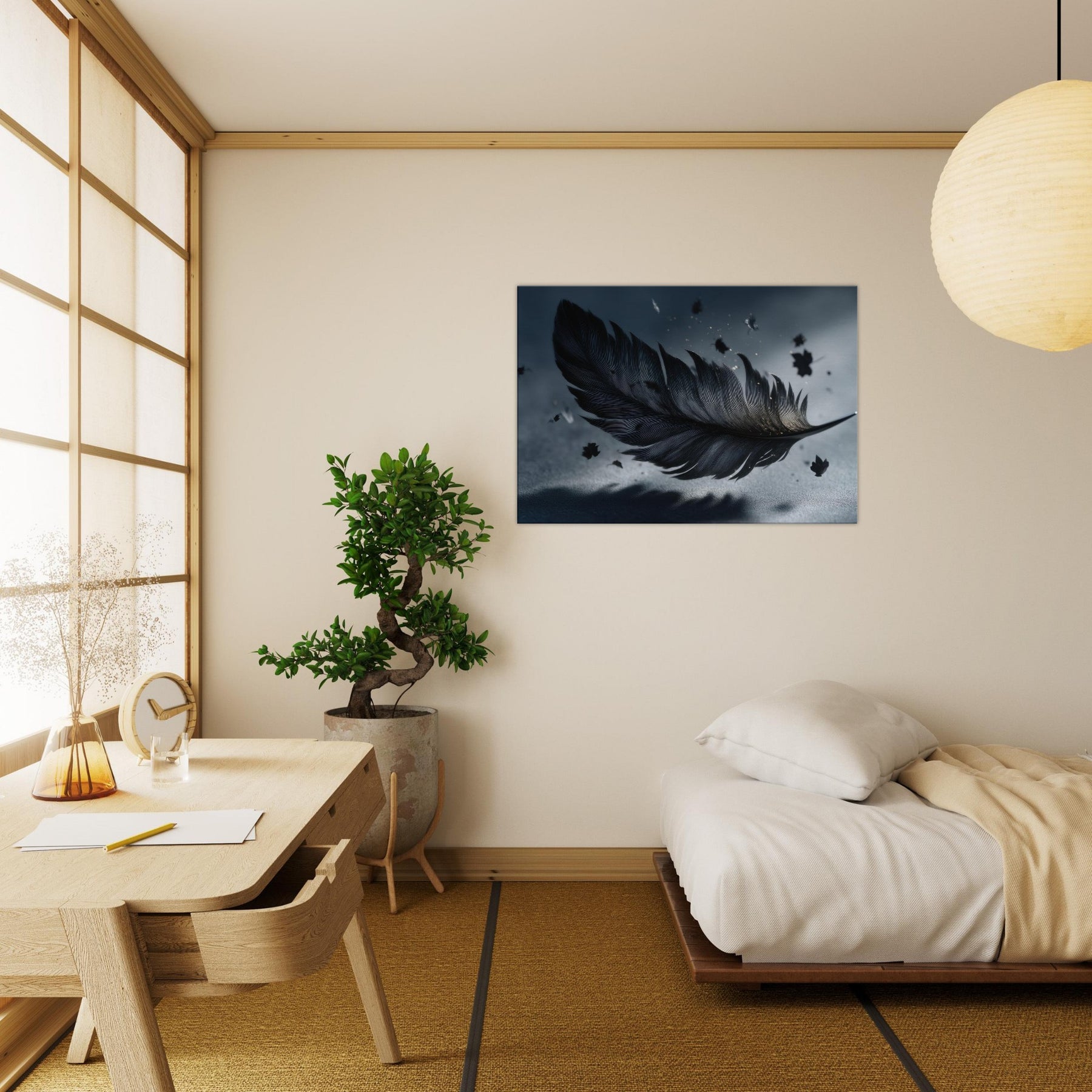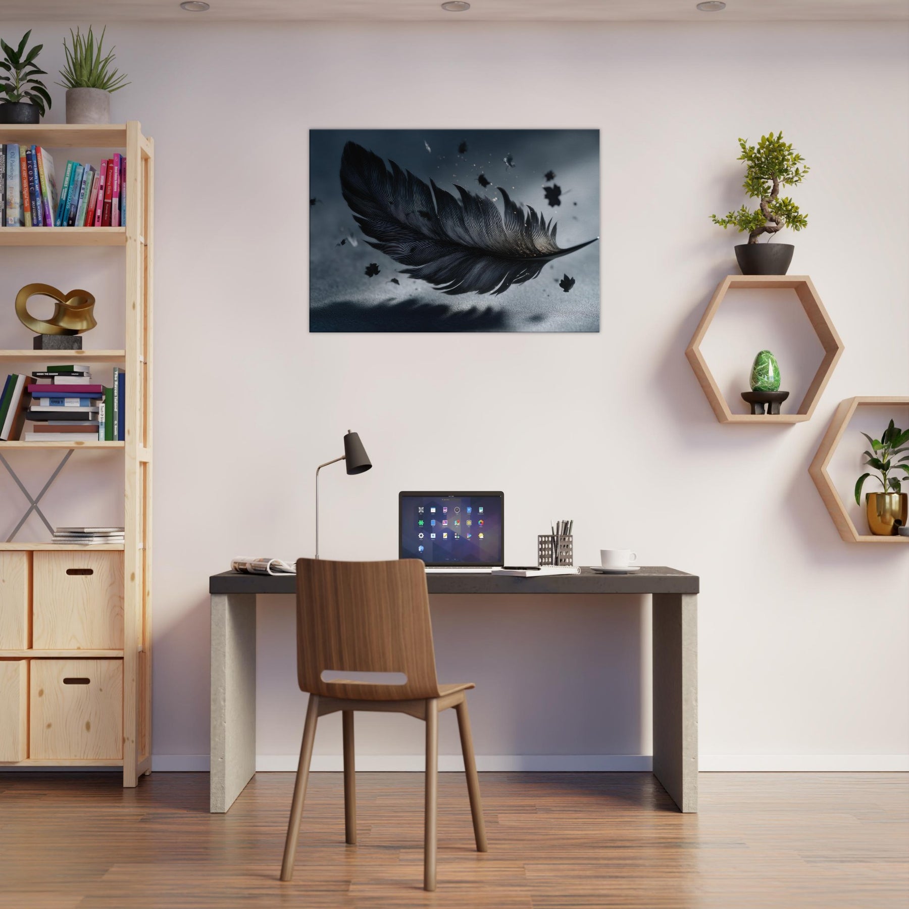 An arresting study in flight and memory, this piece suspends a single Feather Quill against a moody, wind swept horizon. Surreal currents ripple through its barbed silhouette, turning a familiar writer’s tool into a whisper of dream and possibility. The atmosphere is hushed and cinematic, inviting a calm, contemplative mood that enhances a living space with depth and quiet drama. Perfect above a workstation or sofa, it invites slow, magical moments as light skims the feather’s edge and shadows gather like rain.