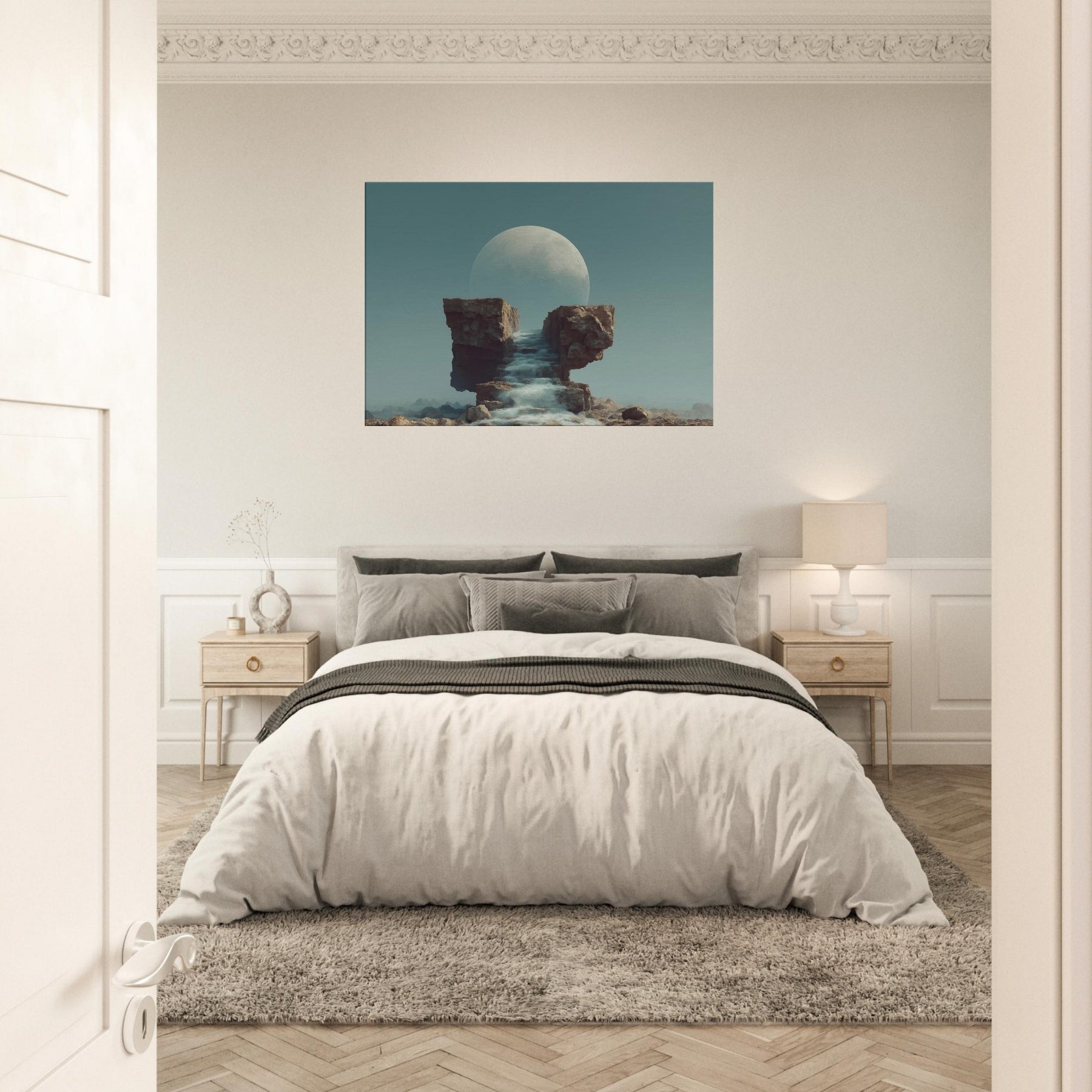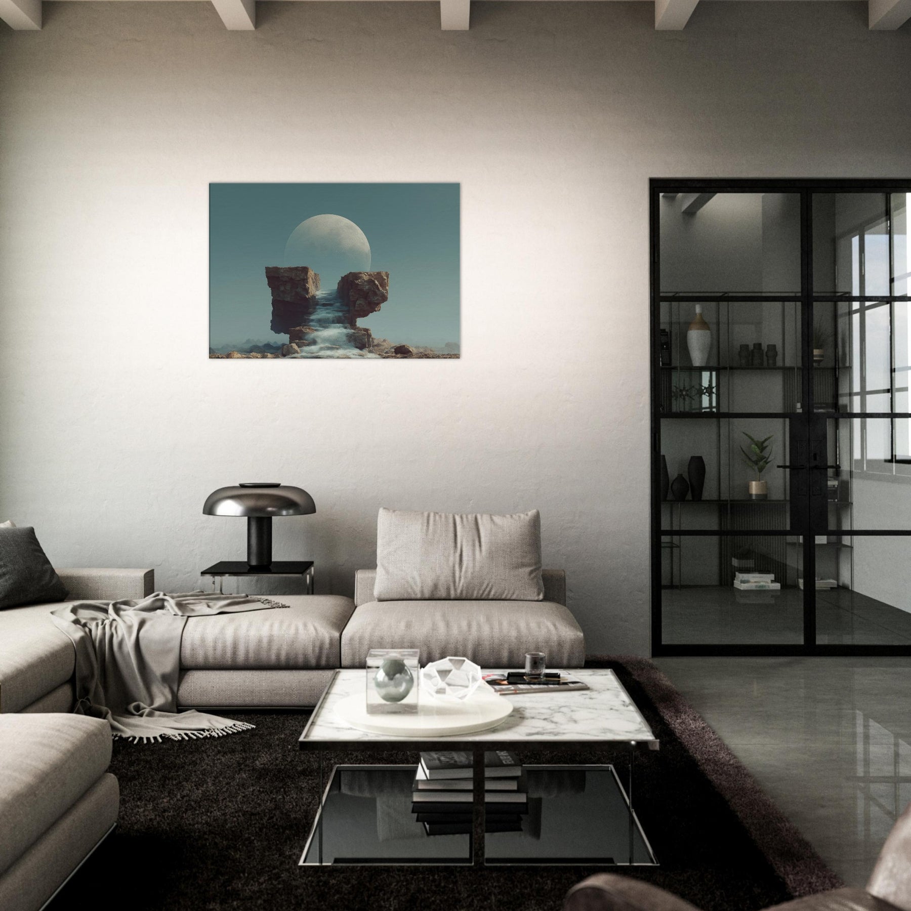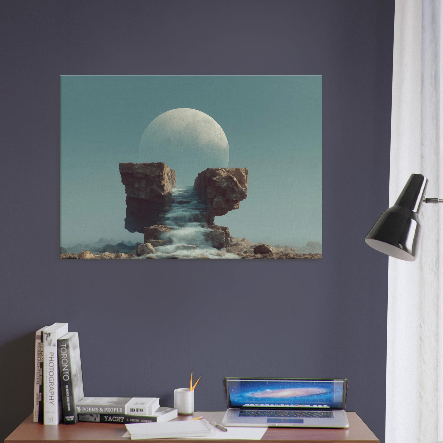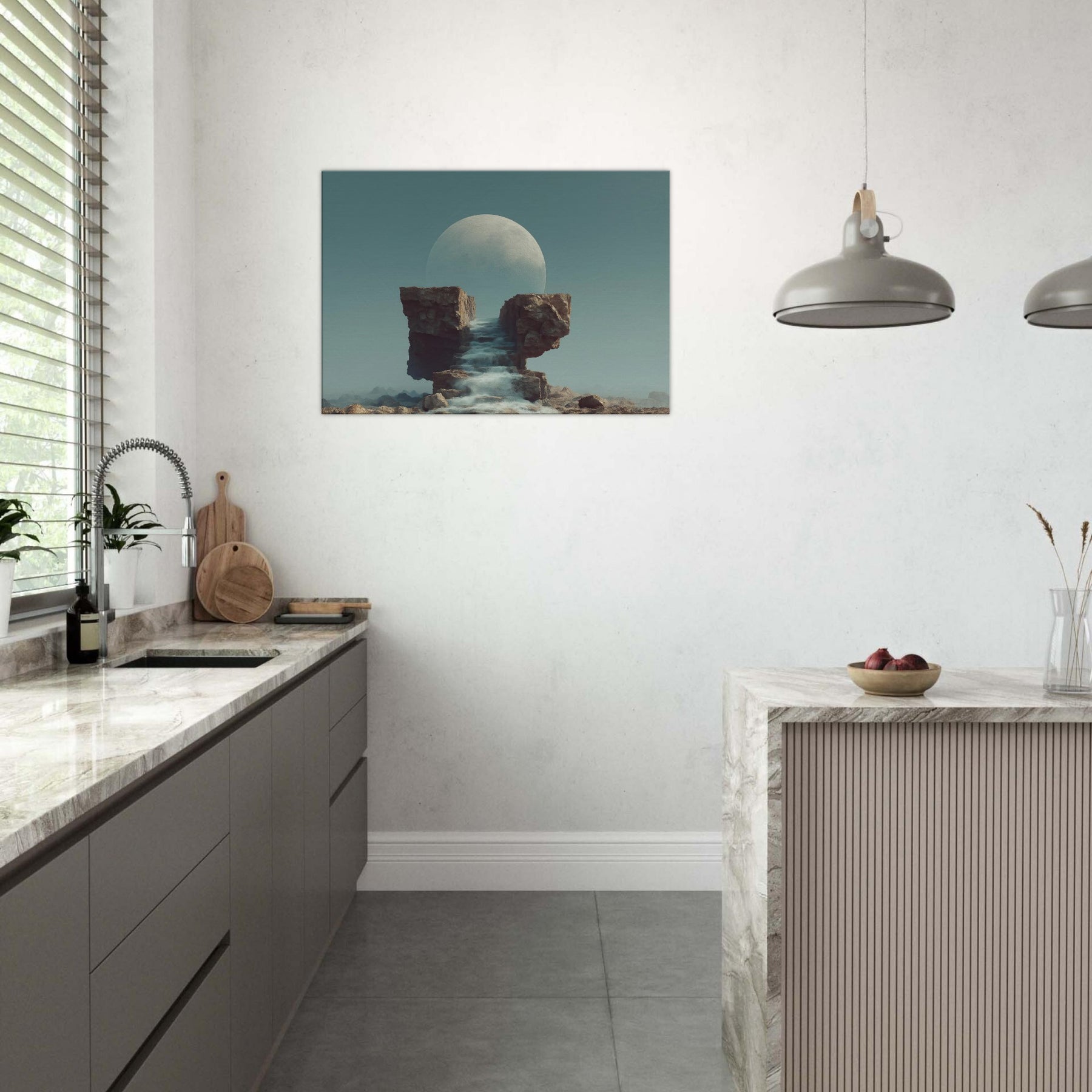Coastlines blur into dream in this Coastal Cliffs composition, where surf becomes mist and time leans against impossible rock stairs. A moon looms behind the rugged gaps, bathing the scene in a cool, silver hush that slows the heartbeat. The framing invites contemplation, turning your wall into a portal to ocean air, salt scent, and the hush of distant tide. A sophisticated focal point for living rooms or studios, it delivers serenity, wonder, and a conversation starting sense of otherworldly space.