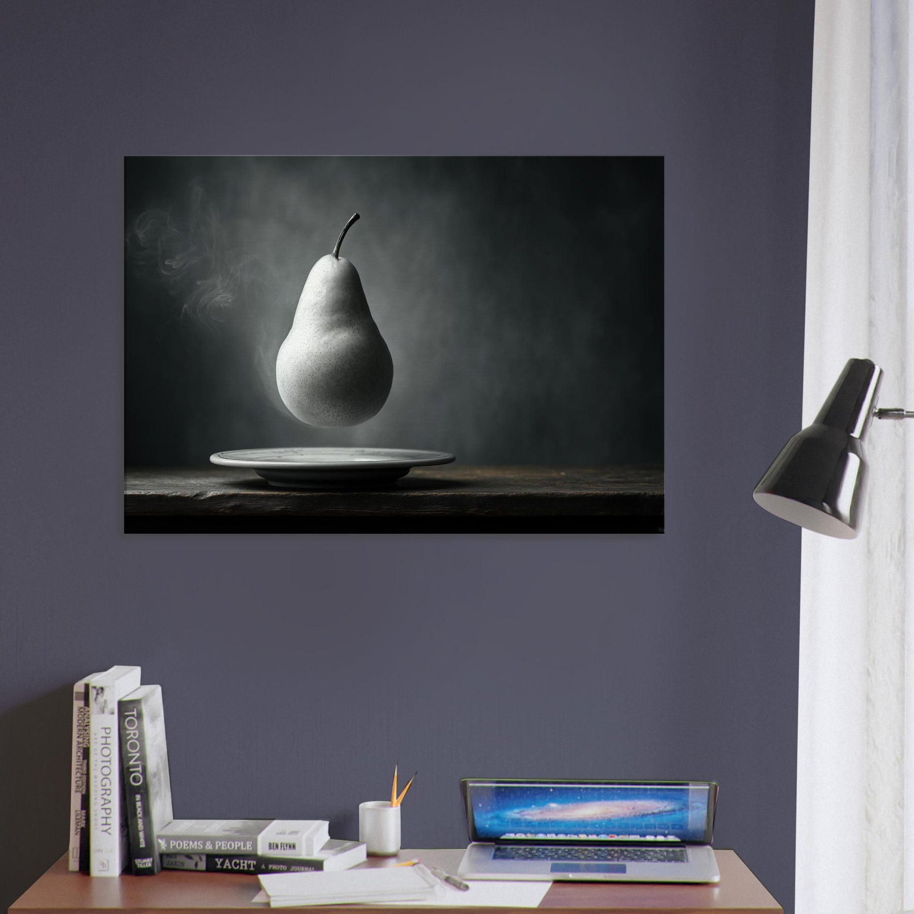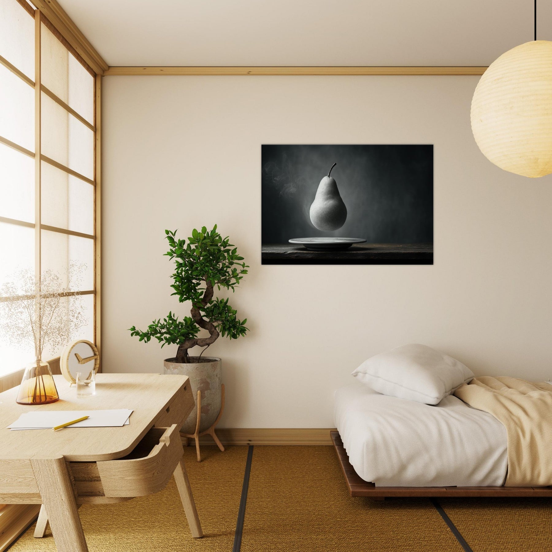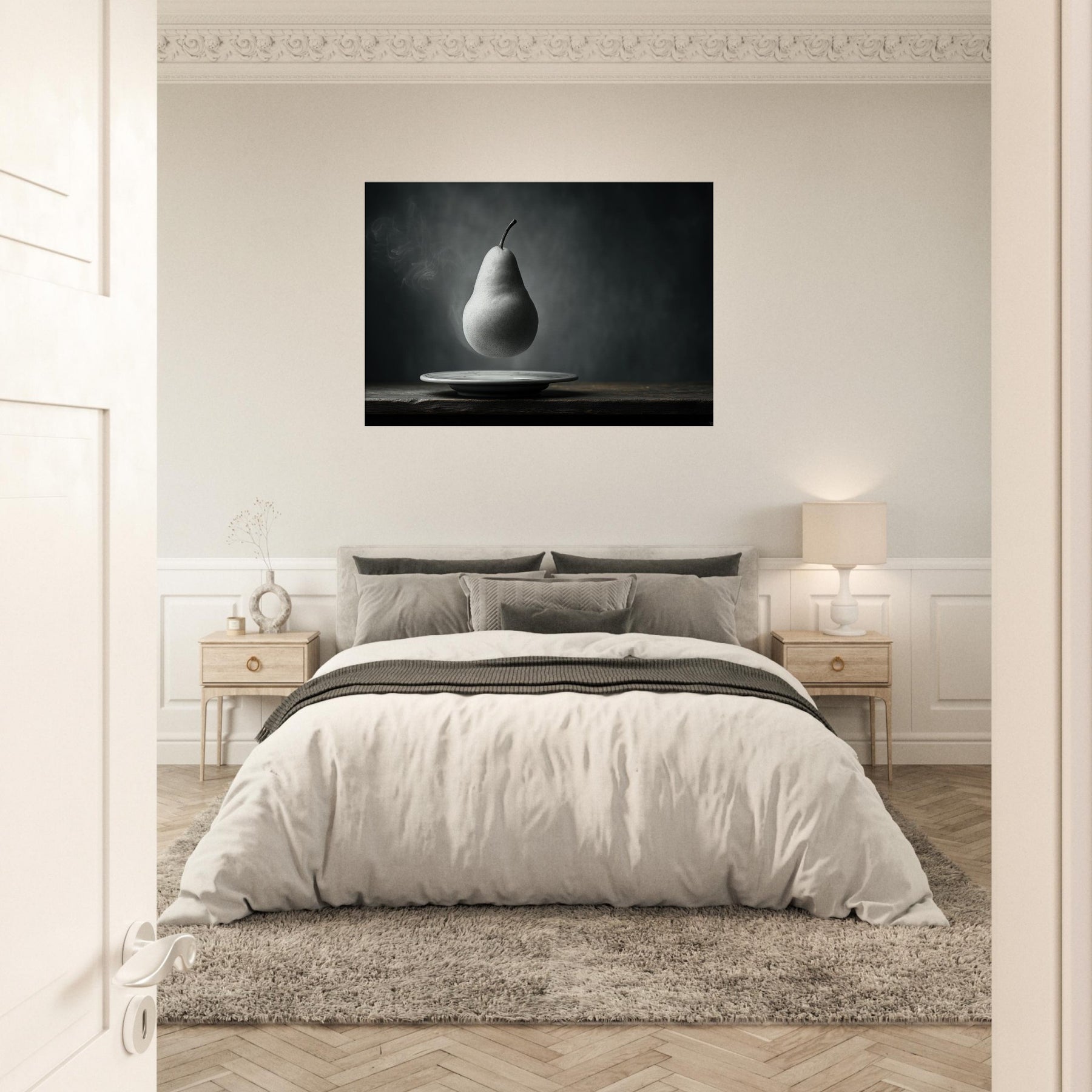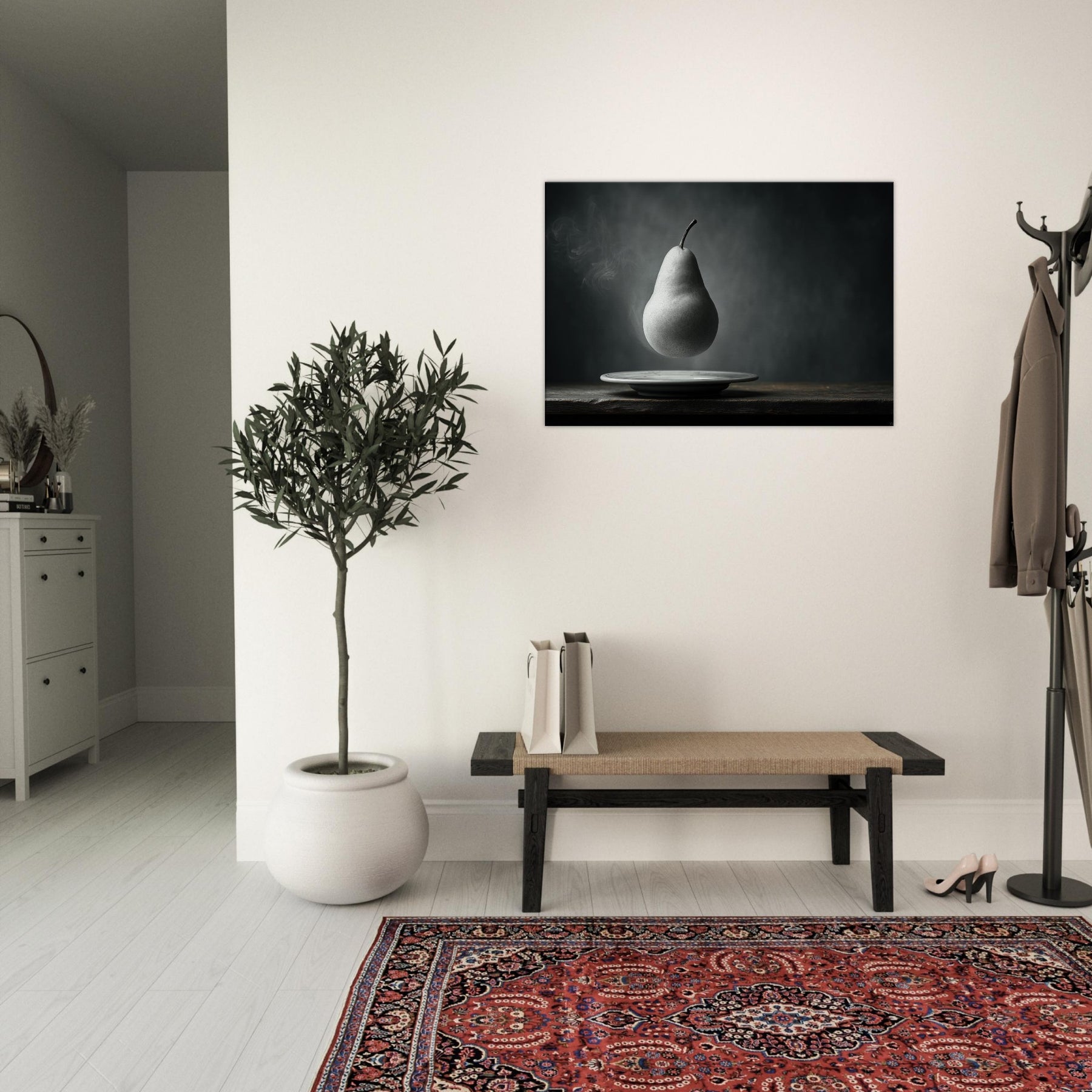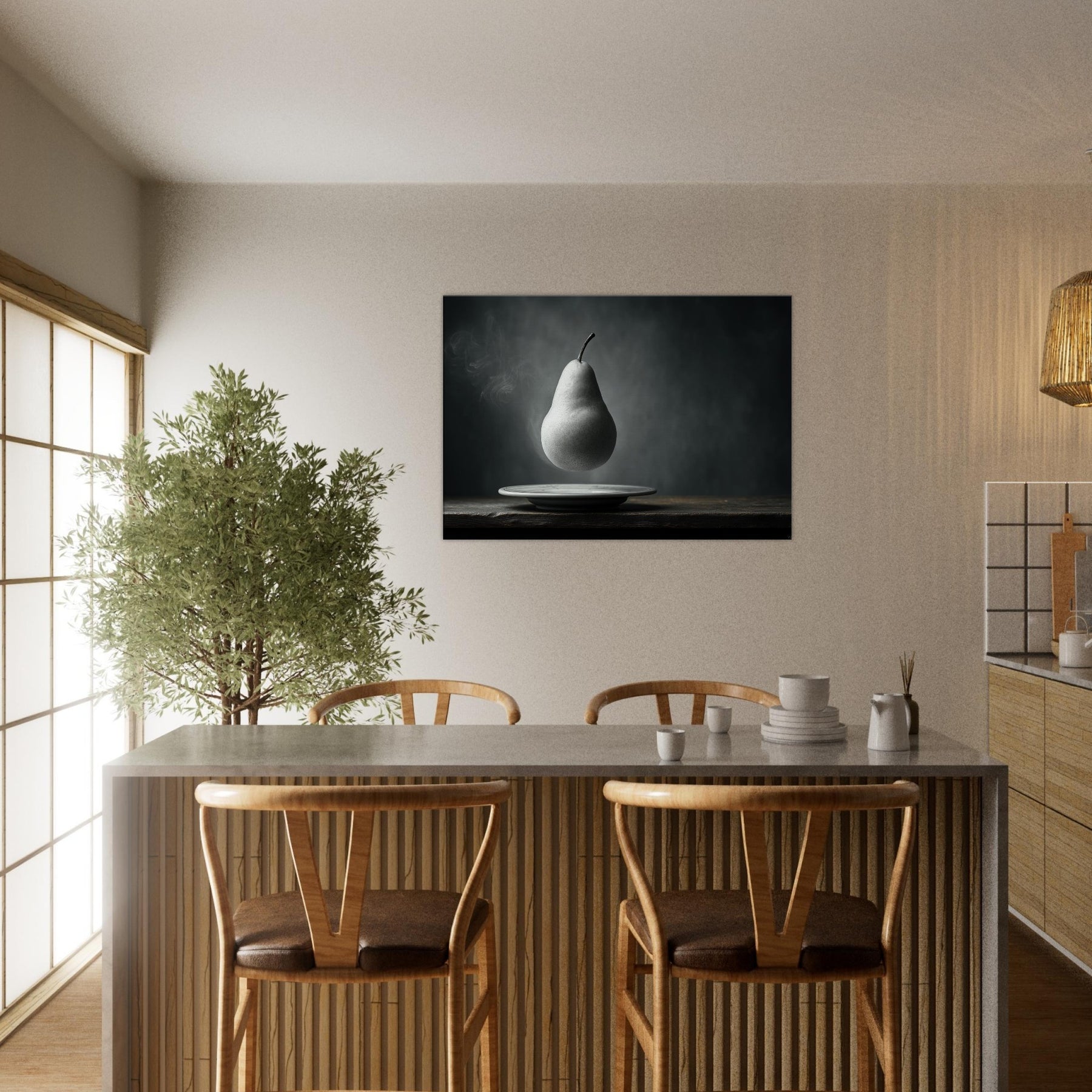 This surreal study halts time as a Pears on Plate hovers above a pale dish, a quiet gravity bending across a smoky studio. Light grazes the fruit’s surface, feathering shadows along the wooden table and the sleepy plate beneath. The composition invites contemplation, turning daily bread into a moment of mystery. In a living room, it becomes a slow ritual of wonder an invitation to pause, exhale, and let the ordinary ripen into dreamlike resonance.