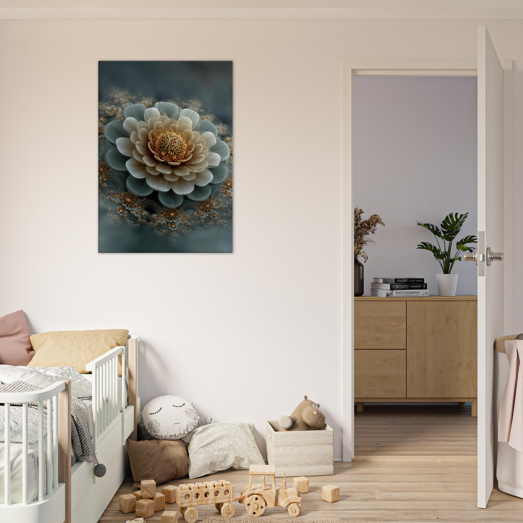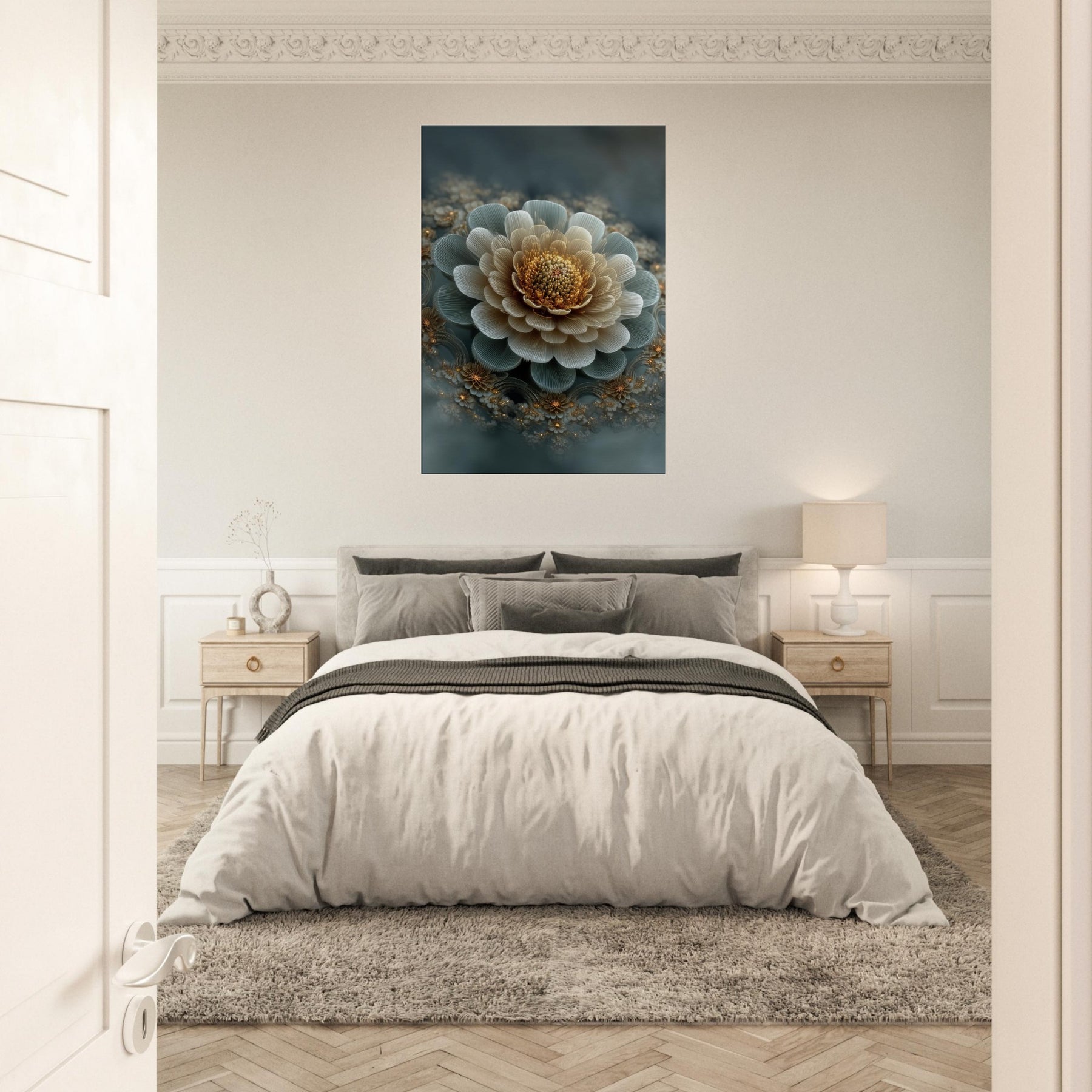 Immerse your space in the Seed of Life's quiet geometry, reborn as a surreal bloom that unfolds beyond the frame. Soft blues and gilded centers dance in a living courtyard of petals, inviting reflection and wonder. This mystical wall art hums with a gentle, almost meditative energy, turning a room into a sanctuary where imagination grows alongside everyday rhythms. Perfect above a sofa or bedside, it invites conversation, silence, and a sense of timeless balance.