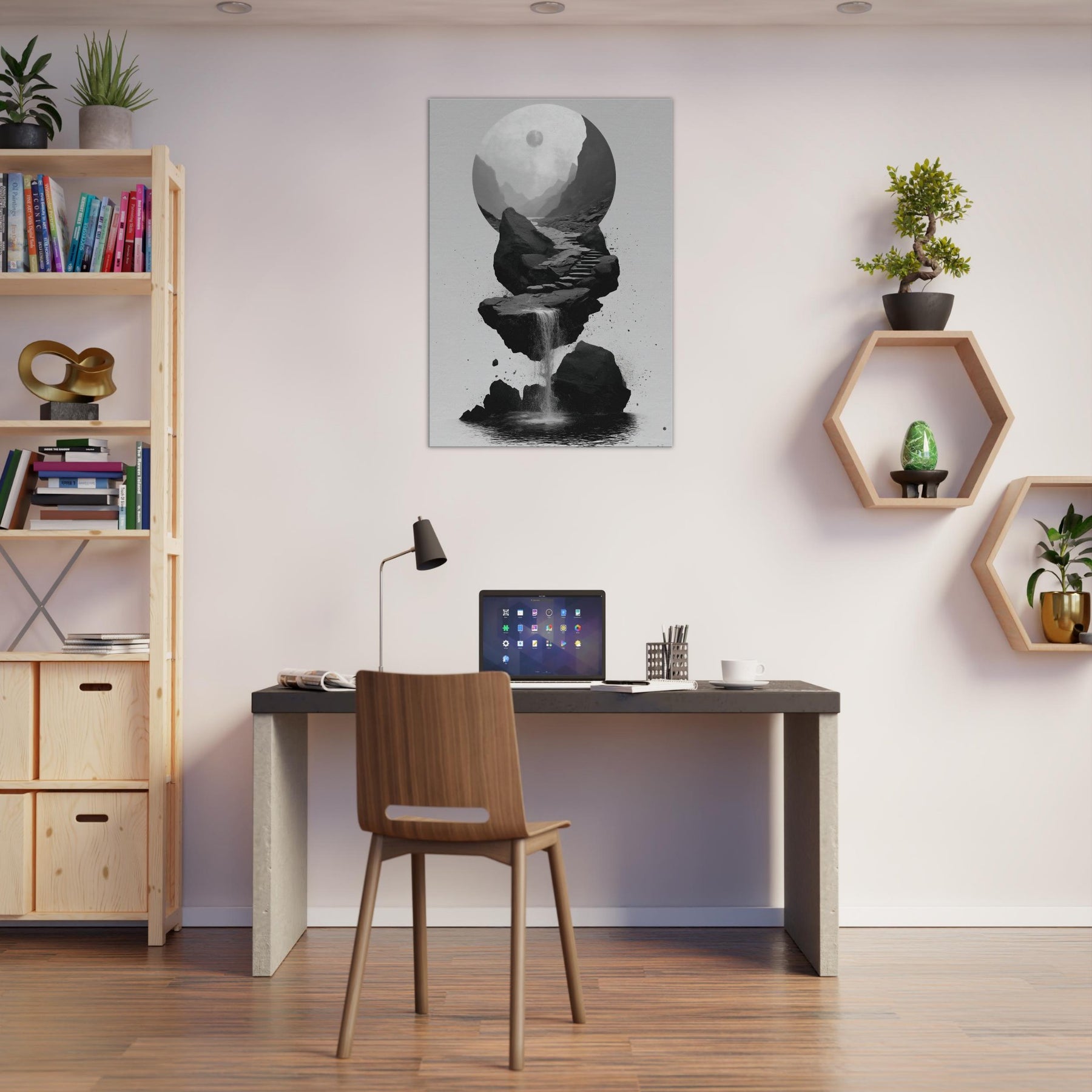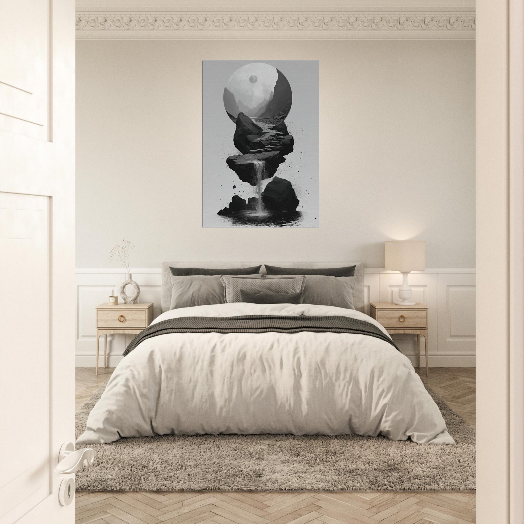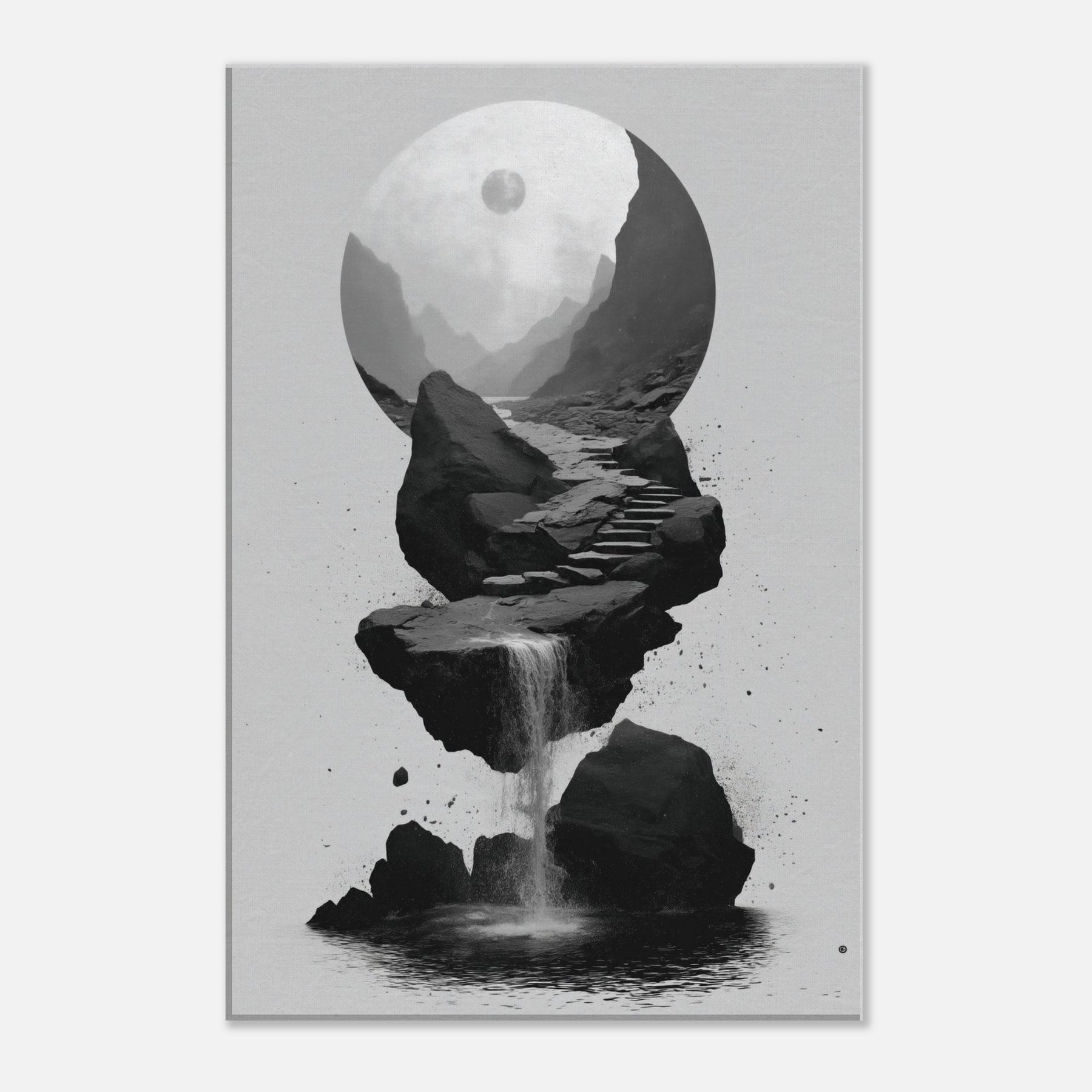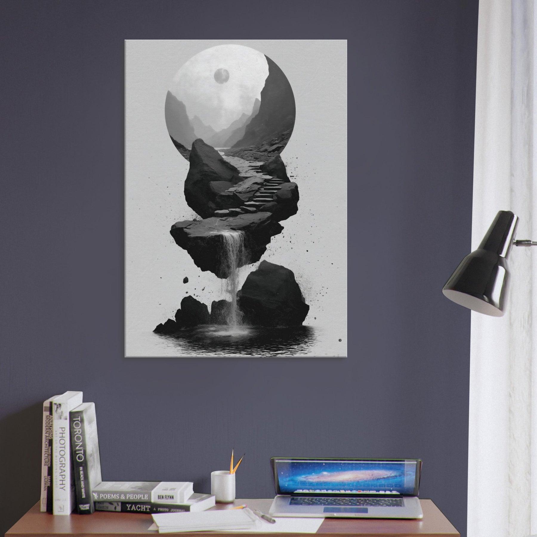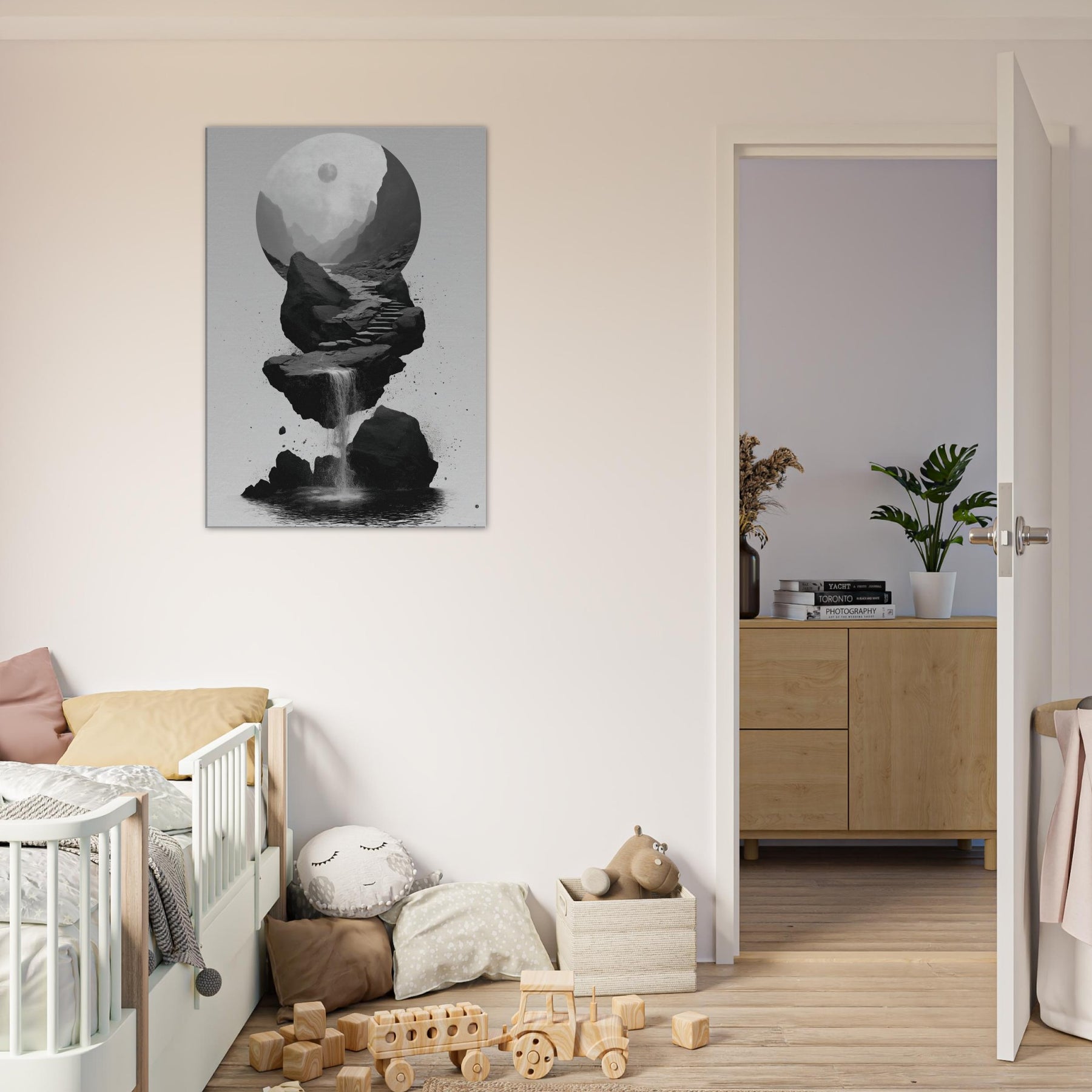 Let the Stormy Sea become the backdrop for your living room reverie. This surreal composition draws the eye through a luminous circle, where jagged cliffs, a winding stair, and a curtain of water converge into a dreamscape. The palette of charcoal and moonlit gray creates both tension and calm, inviting contemplation and conversation. Hang it where you want a doorway to imagination to open an accent of nature’s raw force that still feels intimate, timeless, and restorative.