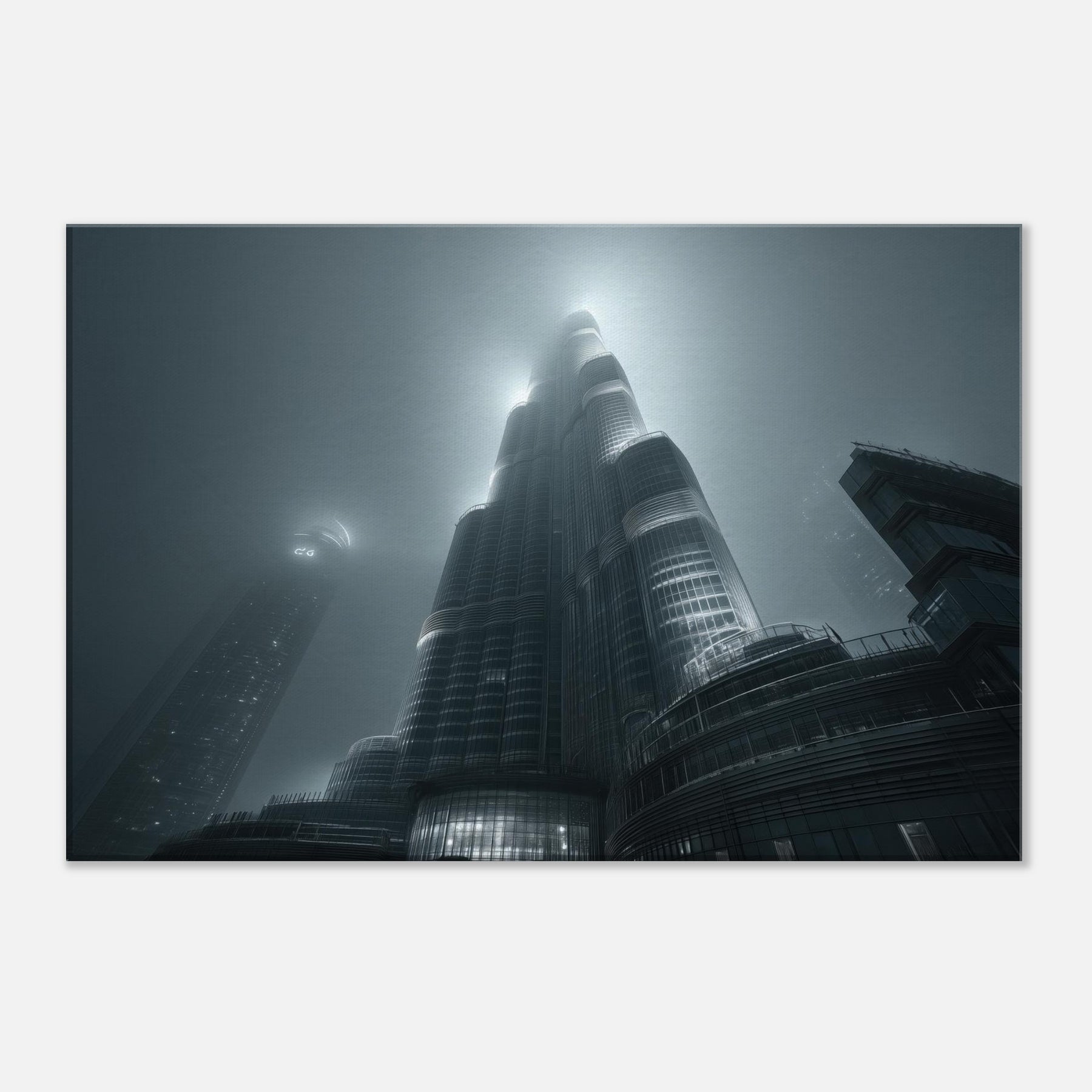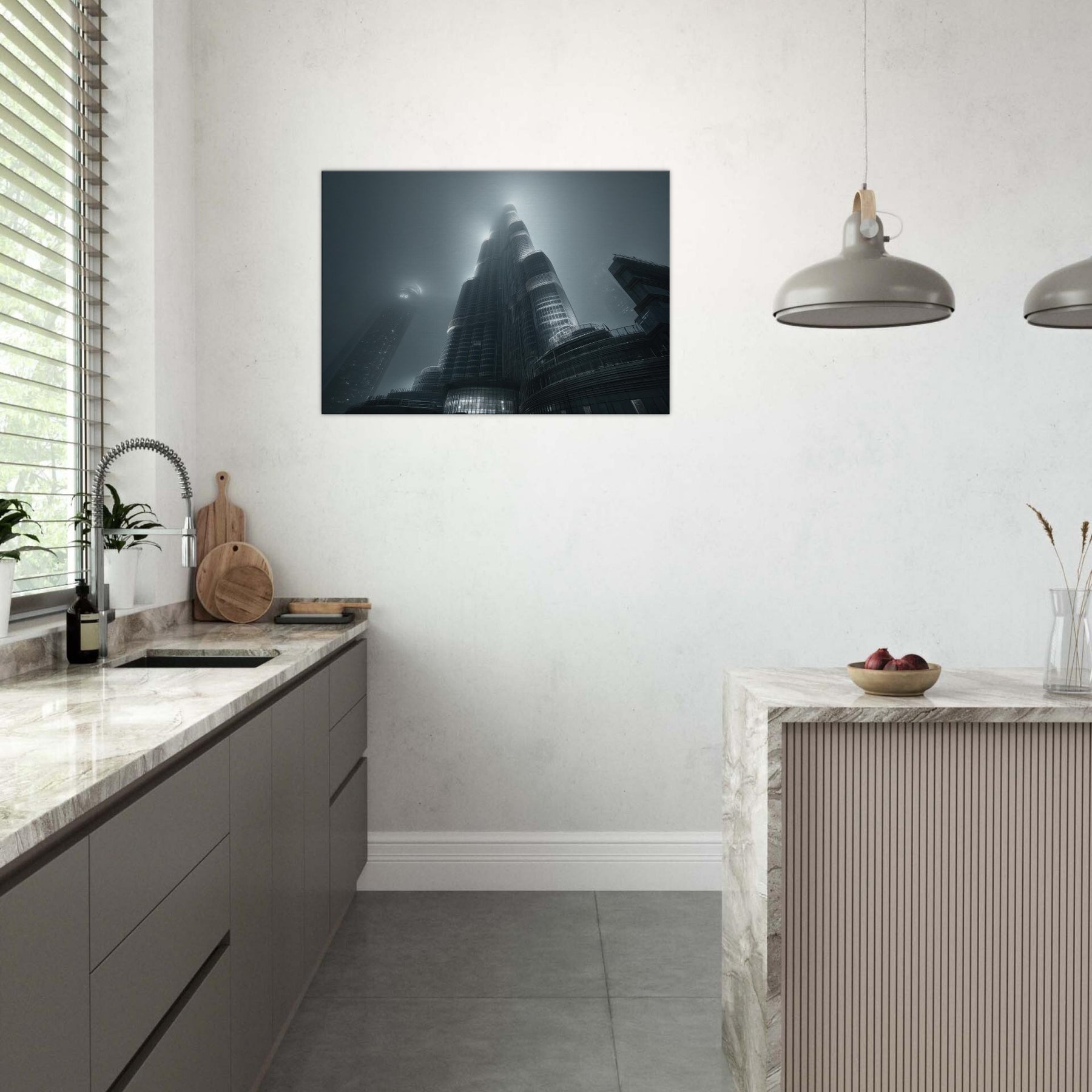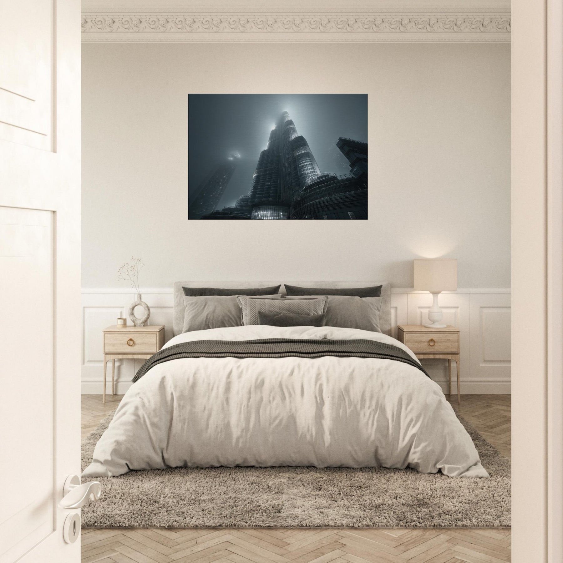 Succumb to a hush of steel and starlight as this surreal tableau suspends the Burj Khalifa in a dreamlike tide of glass and fog. The towers curve into impossible crescents, reflecting a city that breathes in echoes and neon, where gravity loosens its hold and time drifts like river mist. This print invites a calm, cinematic aura to a living room or study, turning everyday walls into a portal for contemplation, aspiration, and the quiet thrill of urban wonder.