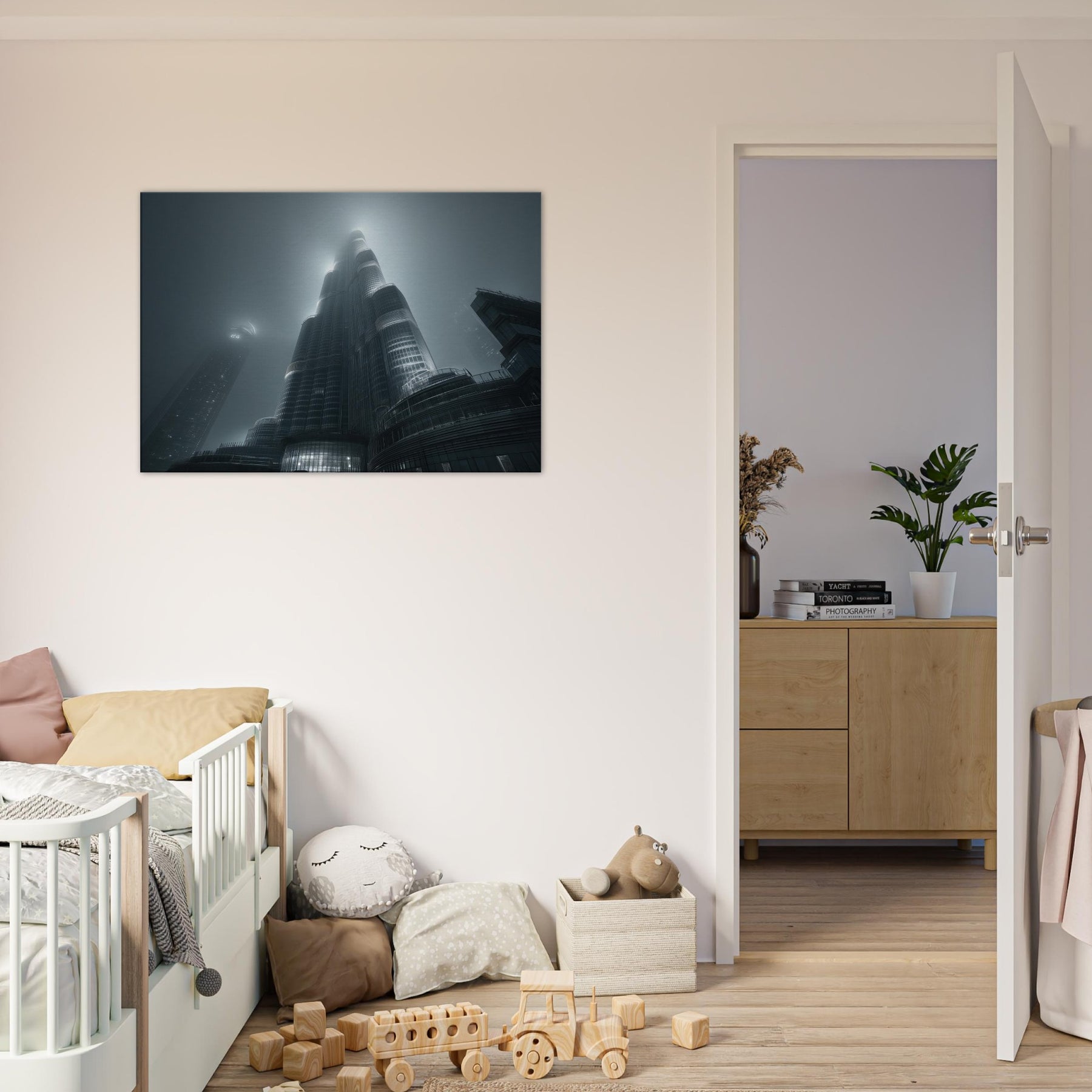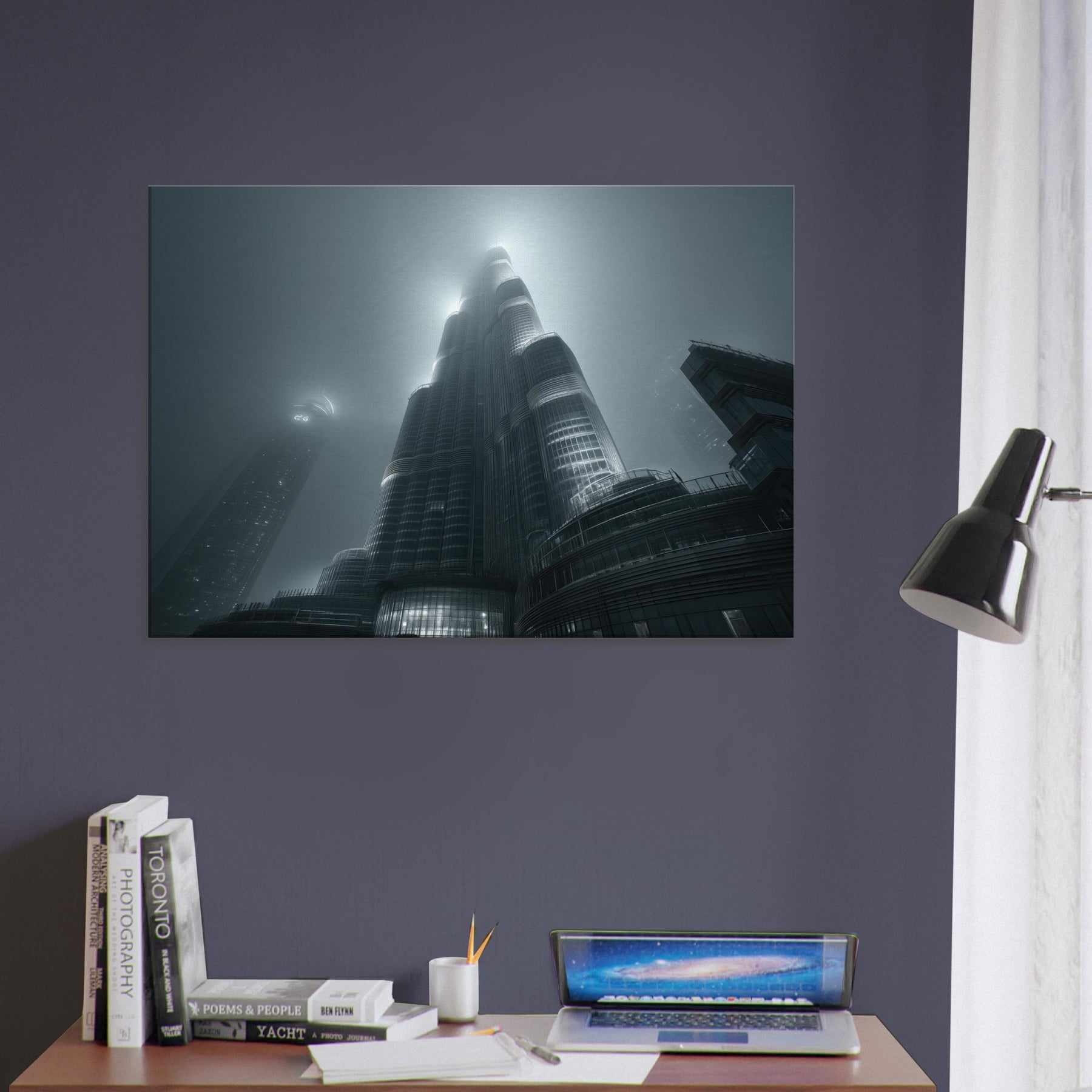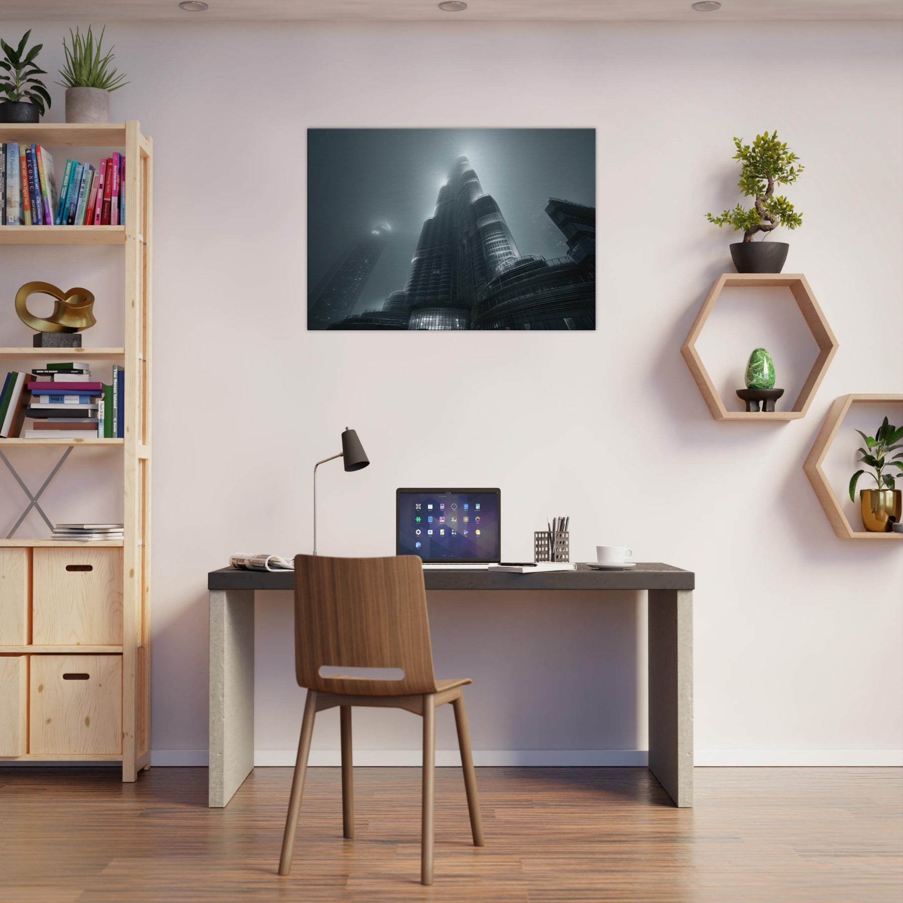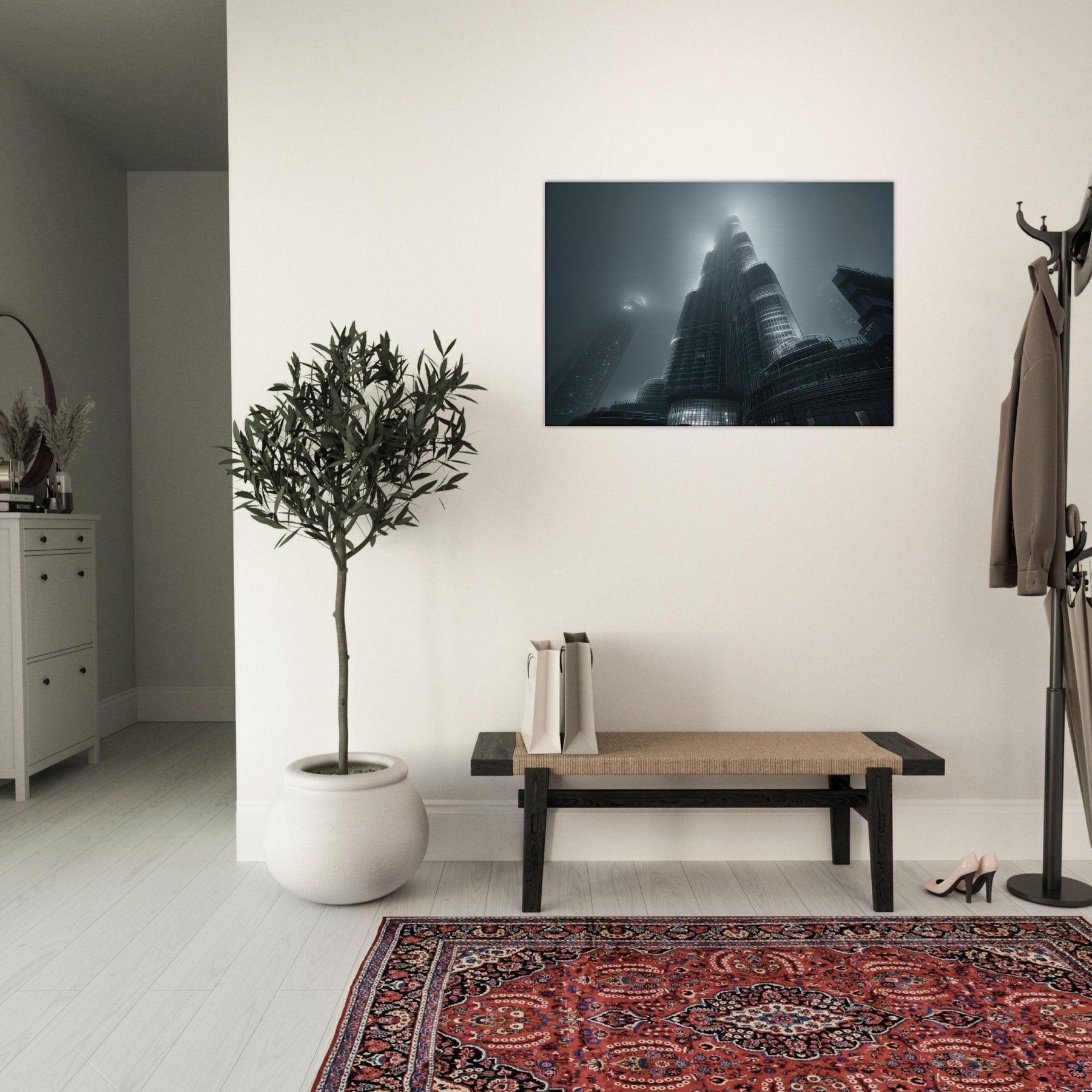 Succumb to a hush of steel and starlight as this surreal tableau suspends the Burj Khalifa in a dreamlike tide of glass and fog. The towers curve into impossible crescents, reflecting a city that breathes in echoes and neon, where gravity loosens its hold and time drifts like river mist. This print invites a calm, cinematic aura to a living room or study, turning everyday walls into a portal for contemplation, aspiration, and the quiet thrill of urban wonder.
