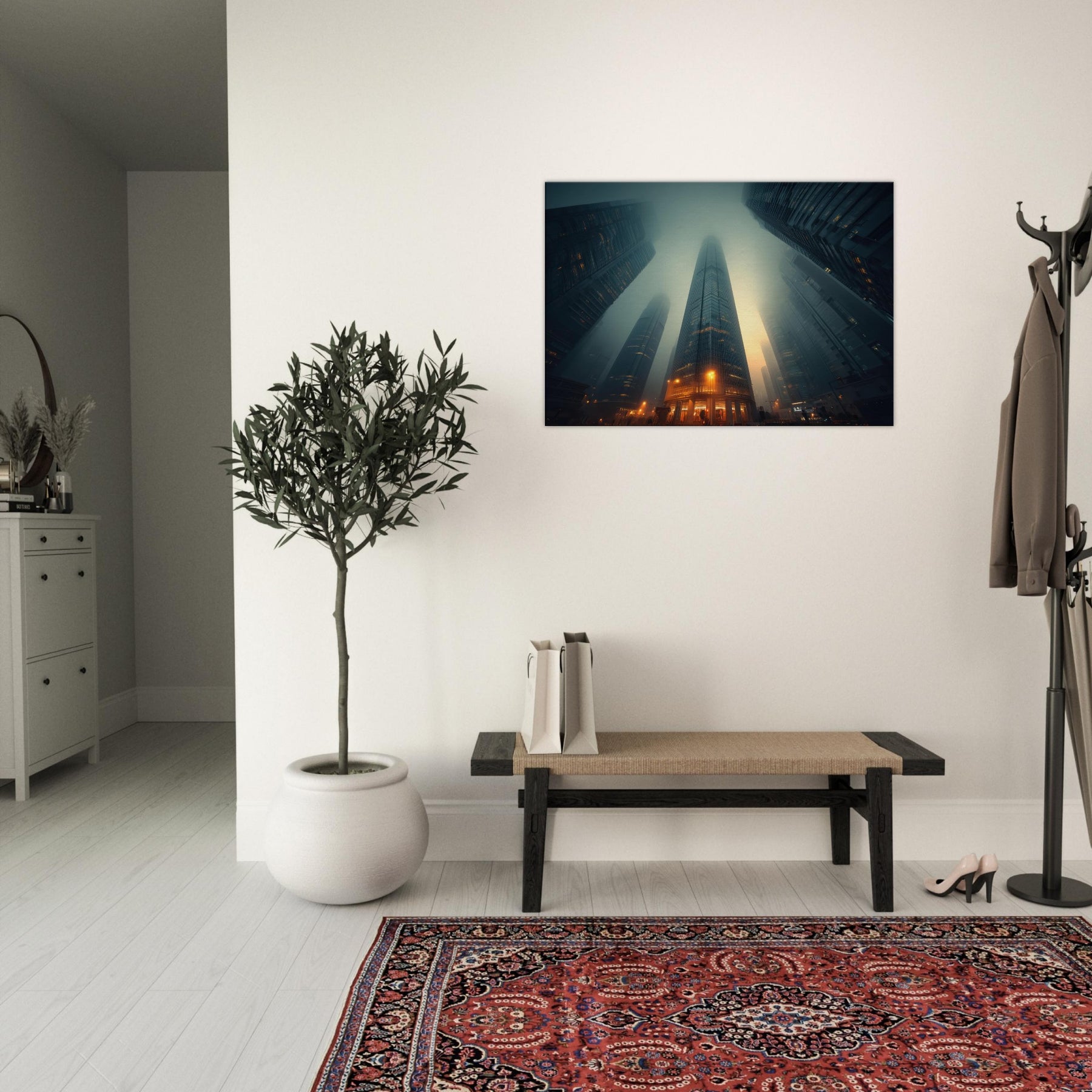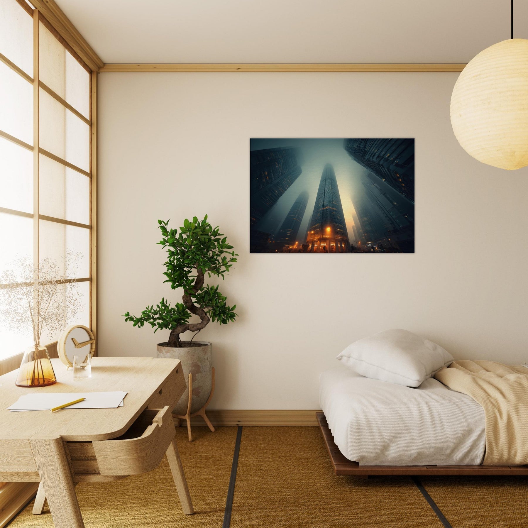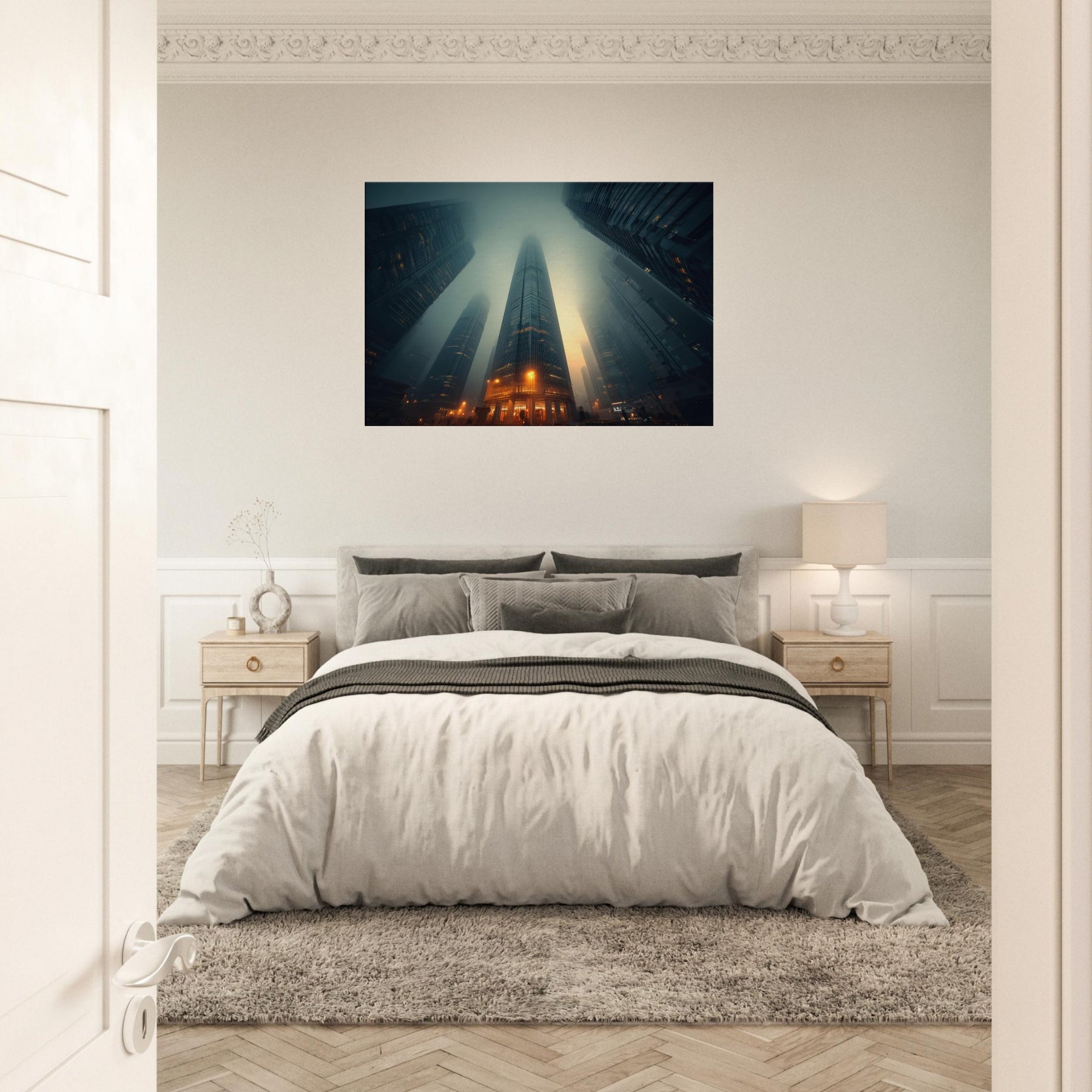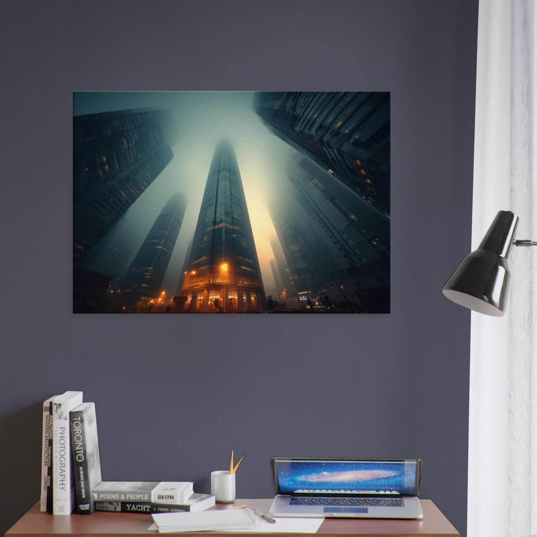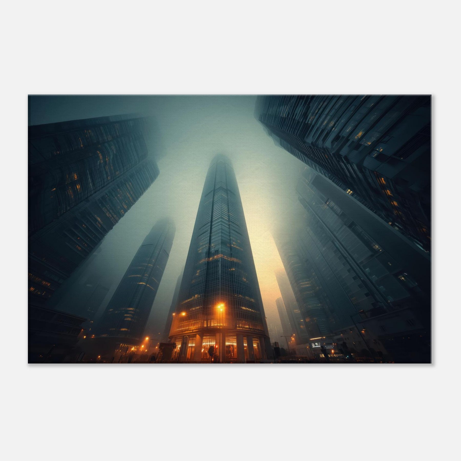 In this surreal meditation on Hong Kong, towers bend toward the dawn as if listening to the city breathe. A dream of glass and light rises from the street, wrapped in mist and a gentle copper glow. The image invites quiet awe, turning a wall into a window that expands a living space into a nocturnal skyline. Hang it where morning light first lands or where dim evenings soften every edge; the piece invites contemplation, conversation, and a new sense of scale.