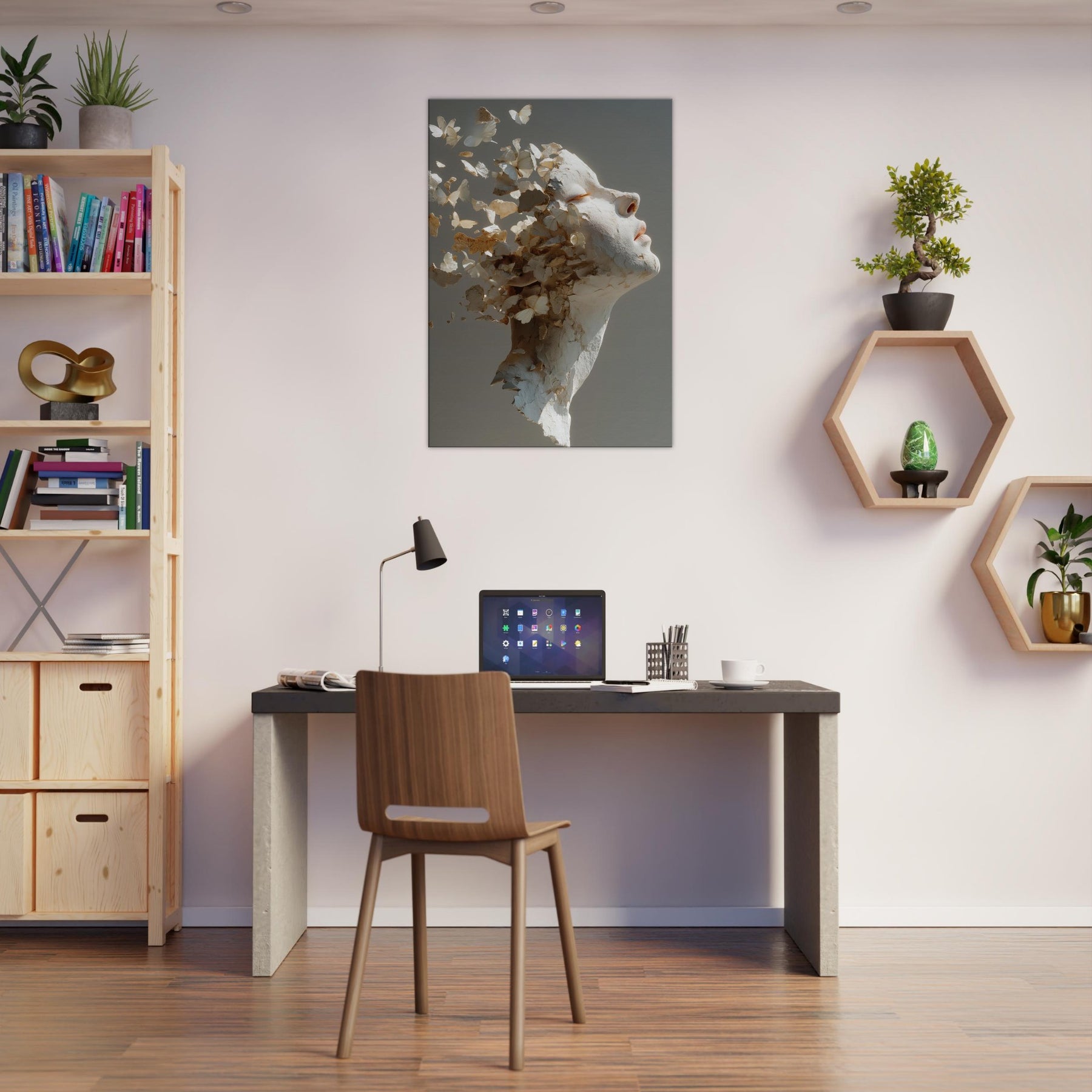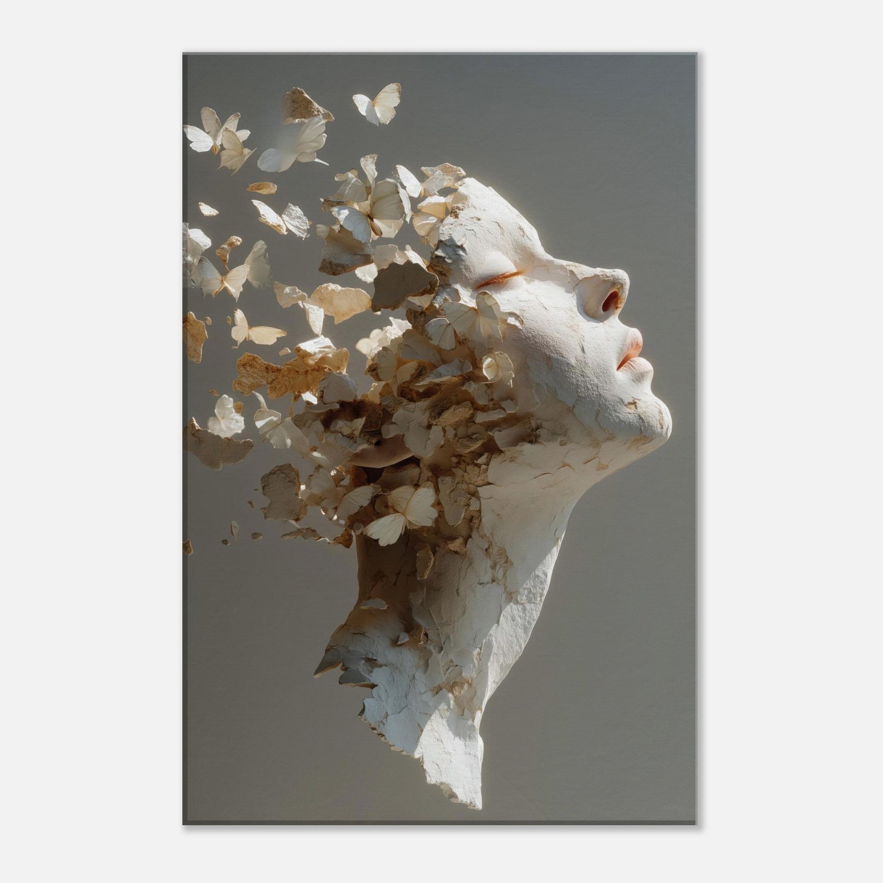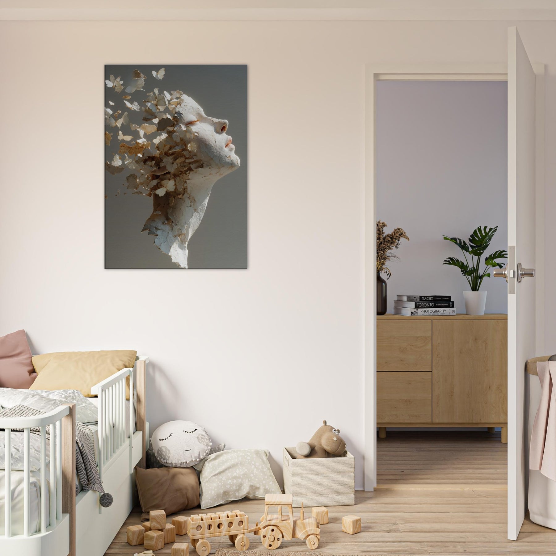 This Sculptural Bust dissolves into a chorus of papery petals and butterfly fragments, an illusion where memory peels away to reveal sensation. Dreamlike and tactile, it invites the viewer to drift between form and flight, light and shadow. The alabaster skin catches warm tones, while the edges crumble into delicate motes that seem to release time itself. Placed in a living room or hallway, it casts a subtle, surreal glow a conversation piece that invites reflection, curiosity, and a gentler, artful awe.