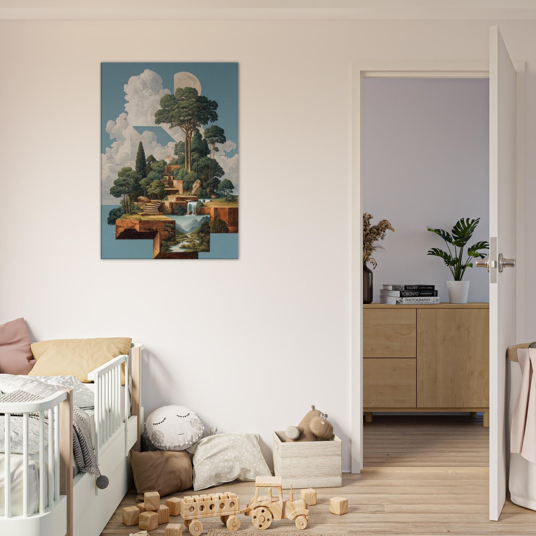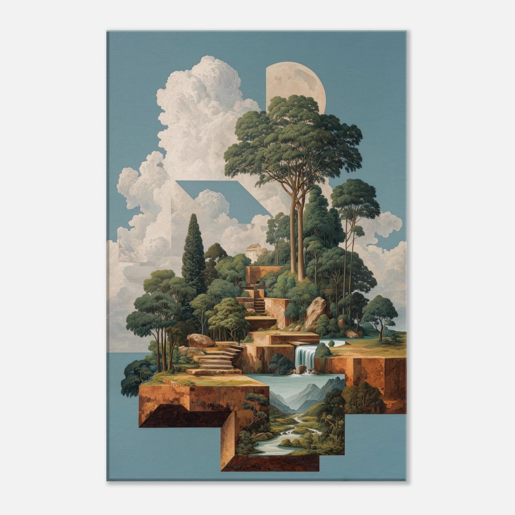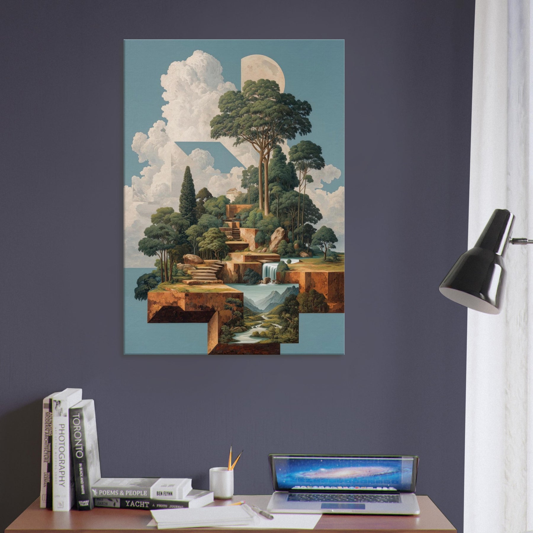 Step into a jungle of dreamlike geometry where earth tones meet airy skies. This surreal threads lush trees with floating stair steps, letting the room breathe with quiet wonder. The Jungle unfurls across layered planes, inviting contemplation as light and shadow dance along carved stone and cascading water. A statement piece that adds depth and mystery to living spaces, it invites slow, inspired hours at home, turning walls into a portal between nature’s rhythm and our own living, breathing interiors.