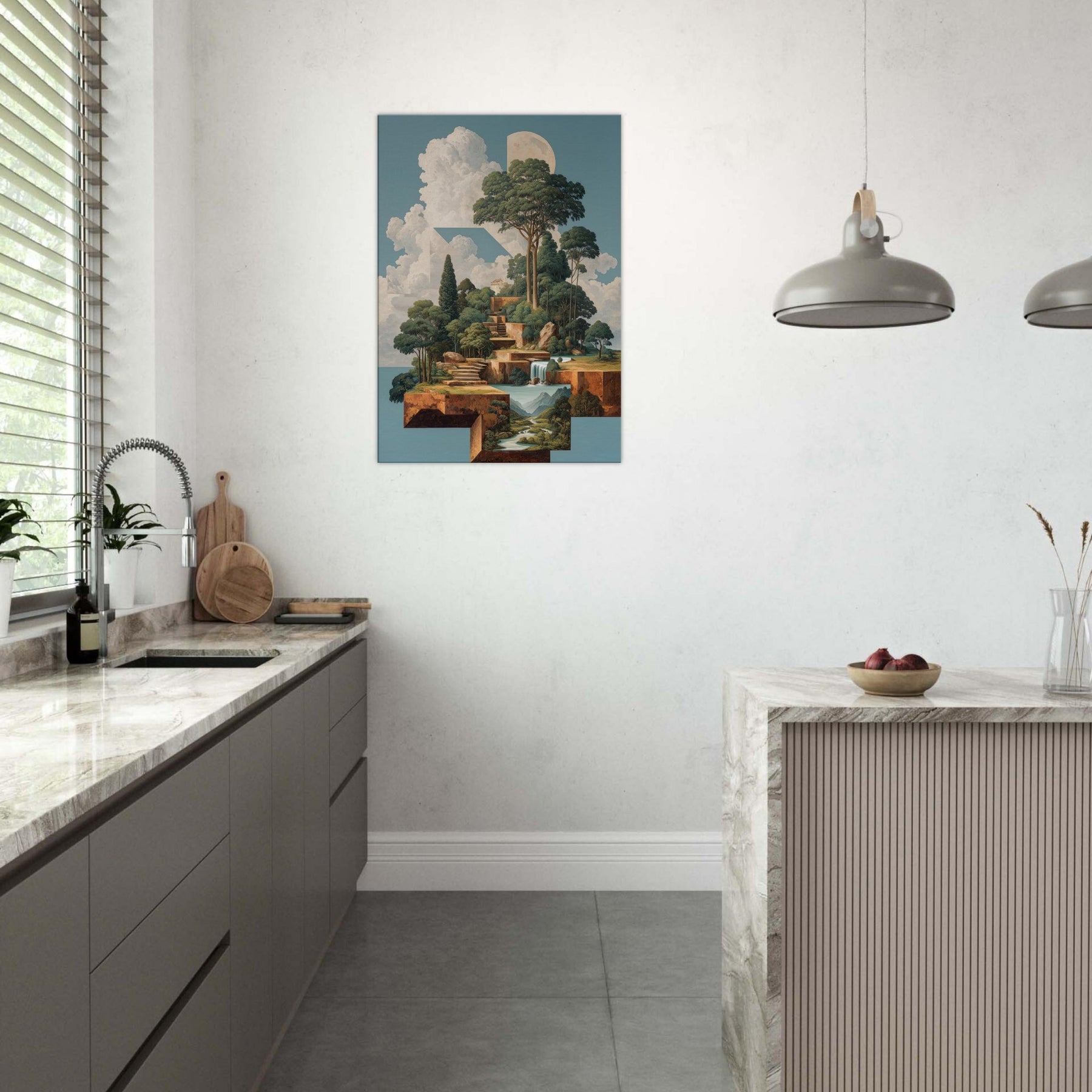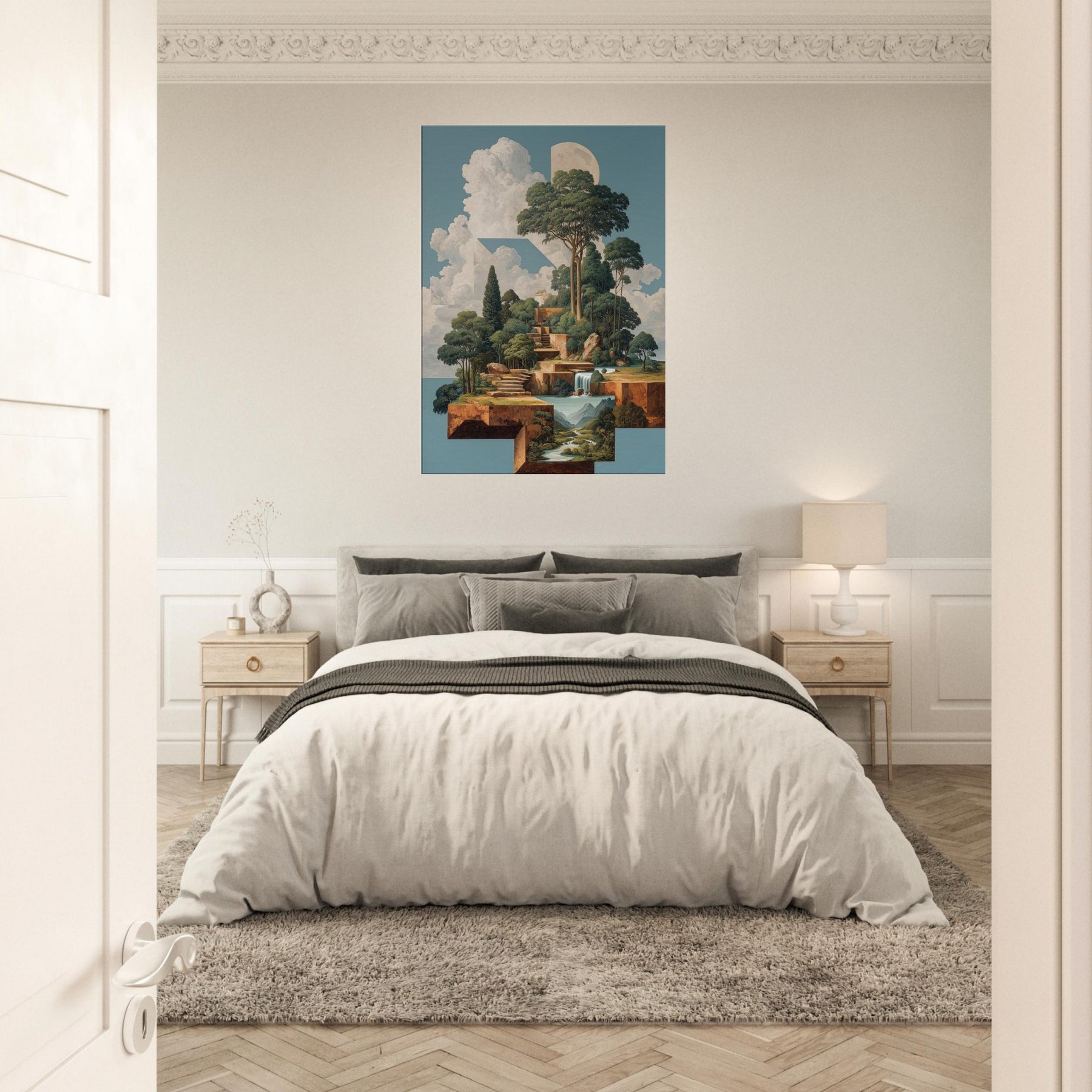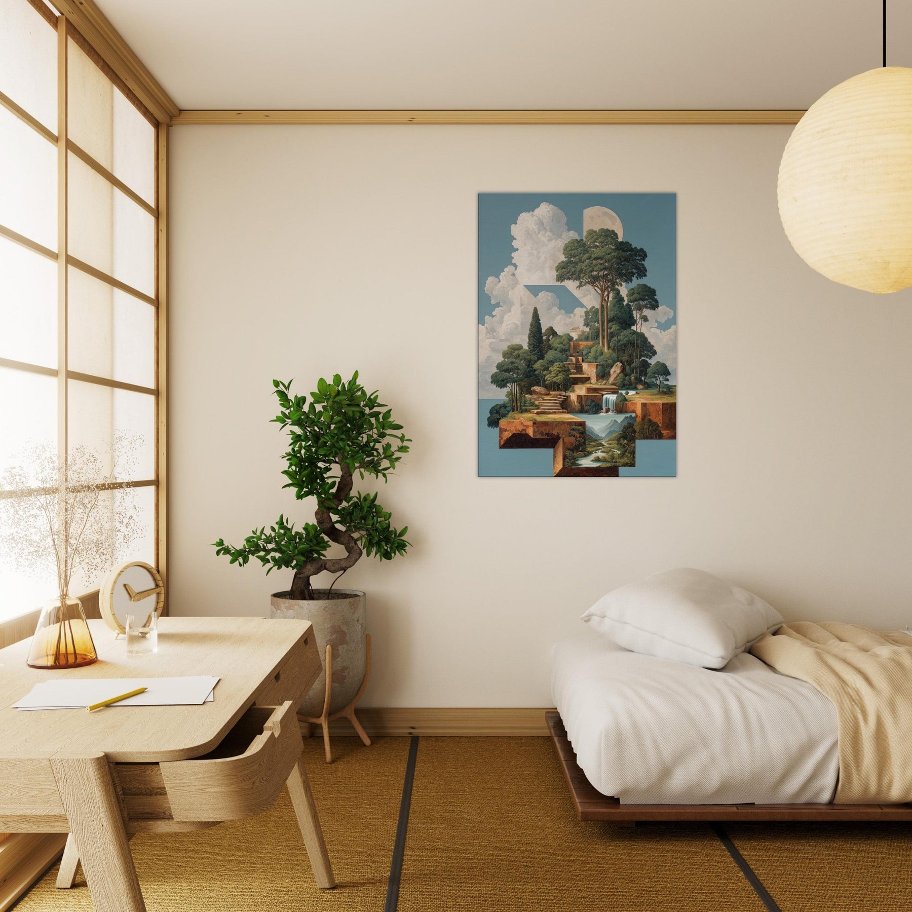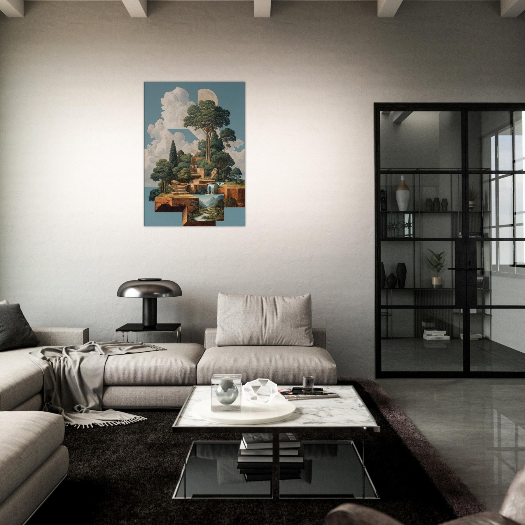 Step into a jungle of dreamlike geometry where earth tones meet airy skies. This surreal threads lush trees with floating stair steps, letting the room breathe with quiet wonder. The Jungle unfurls across layered planes, inviting contemplation as light and shadow dance along carved stone and cascading water. A statement piece that adds depth and mystery to living spaces, it invites slow, inspired hours at home, turning walls into a portal between nature’s rhythm and our own living, breathing interiors.