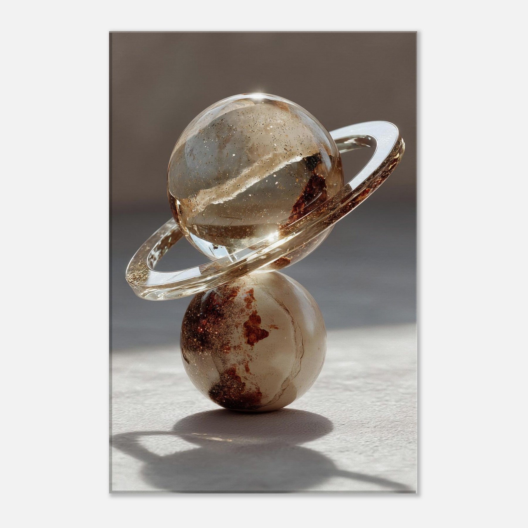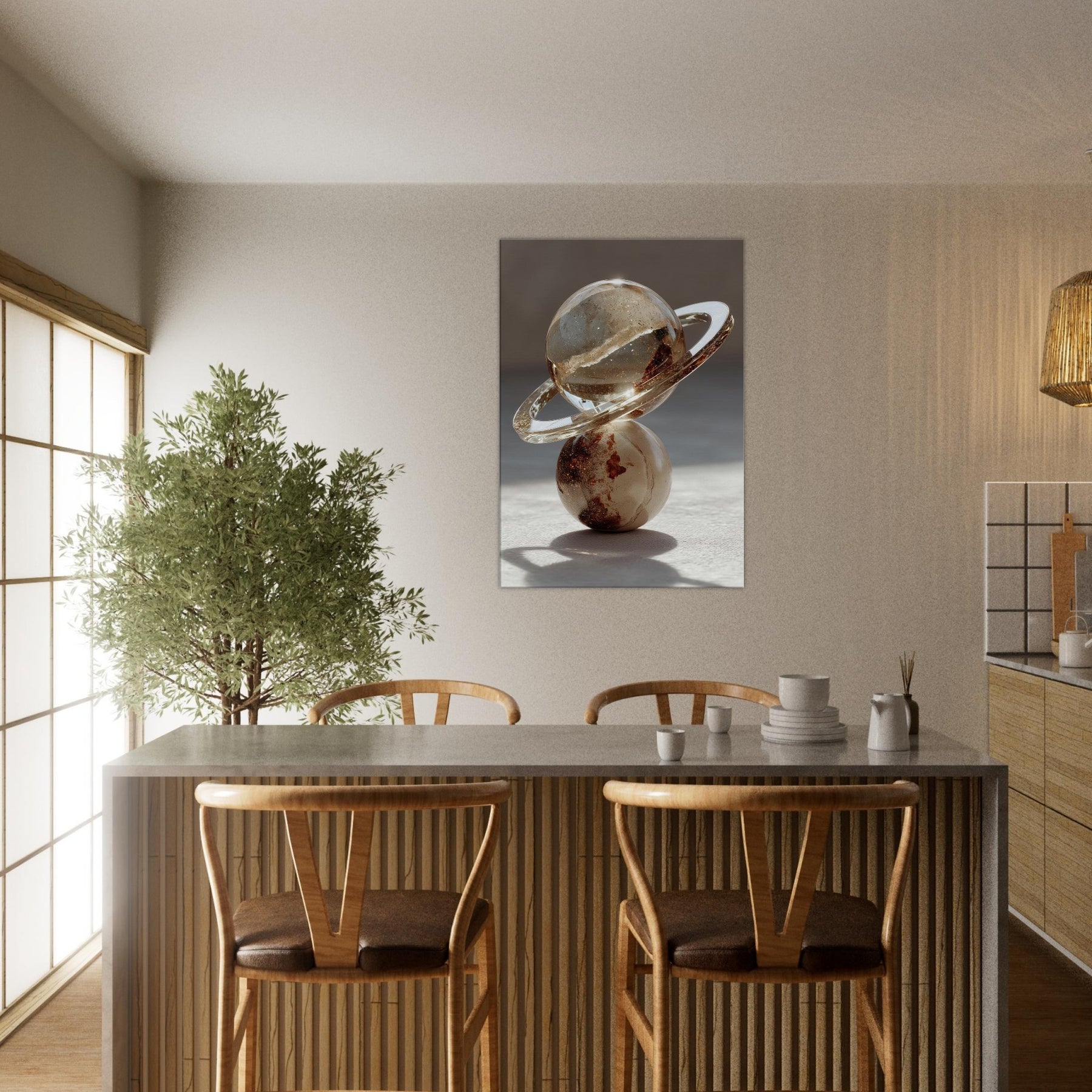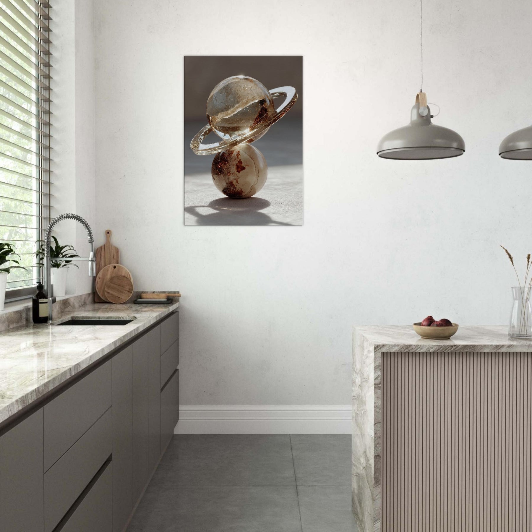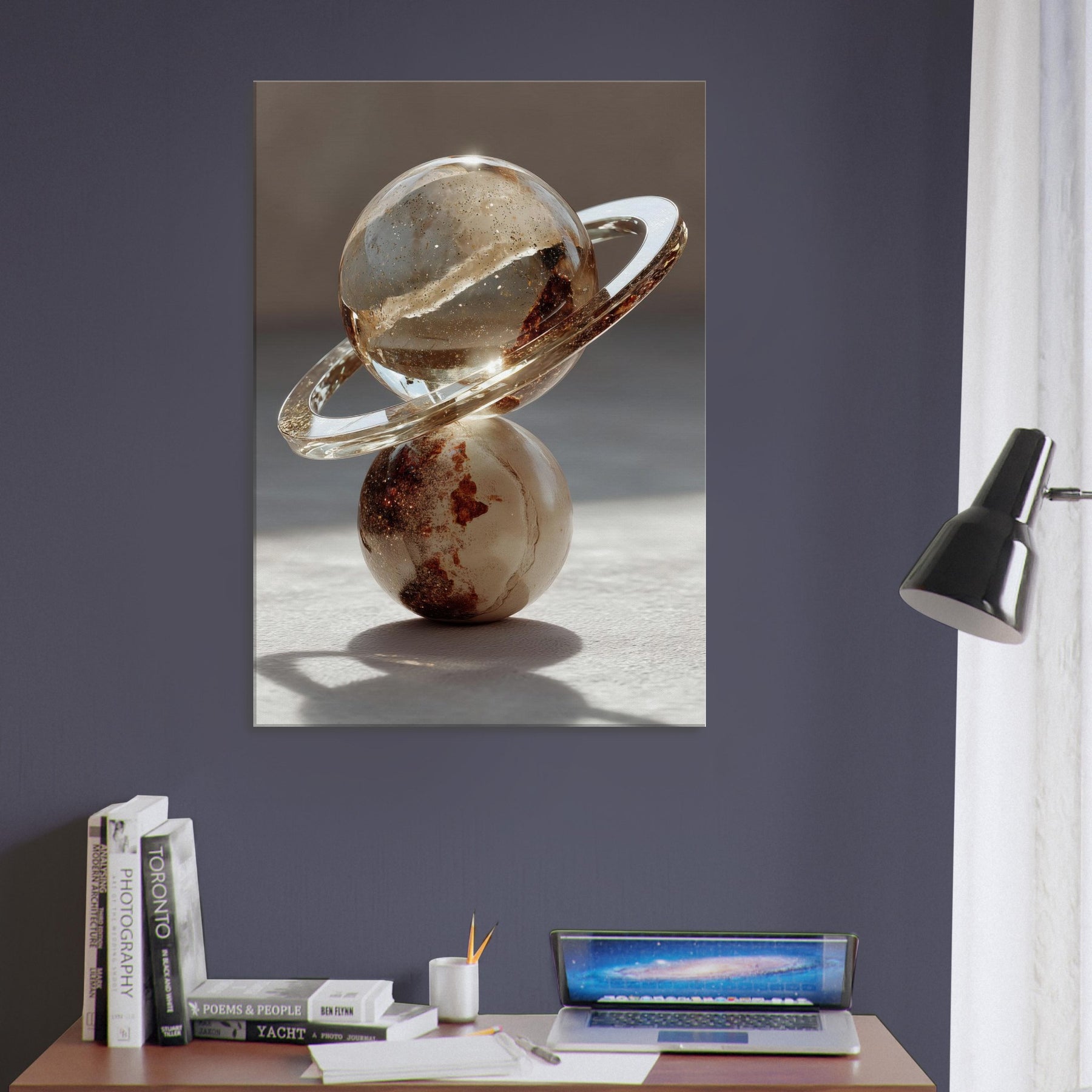 An illusion made tangible, this piece centers the Sun as a luminous, living companion in a dreamlike orbit. A crystal clear sphere rests atop a marbled core, encircled by a defiant ring that catches light and breathes it back in warm, molten tones. The surreal balance evokes dawn and a whispered prophecy, turning any wall into a window of possibility. Hang it in a living room or bedroom to invite quiet wonder, soft radiance, and a subtle sense of prophecy to your everyday space.